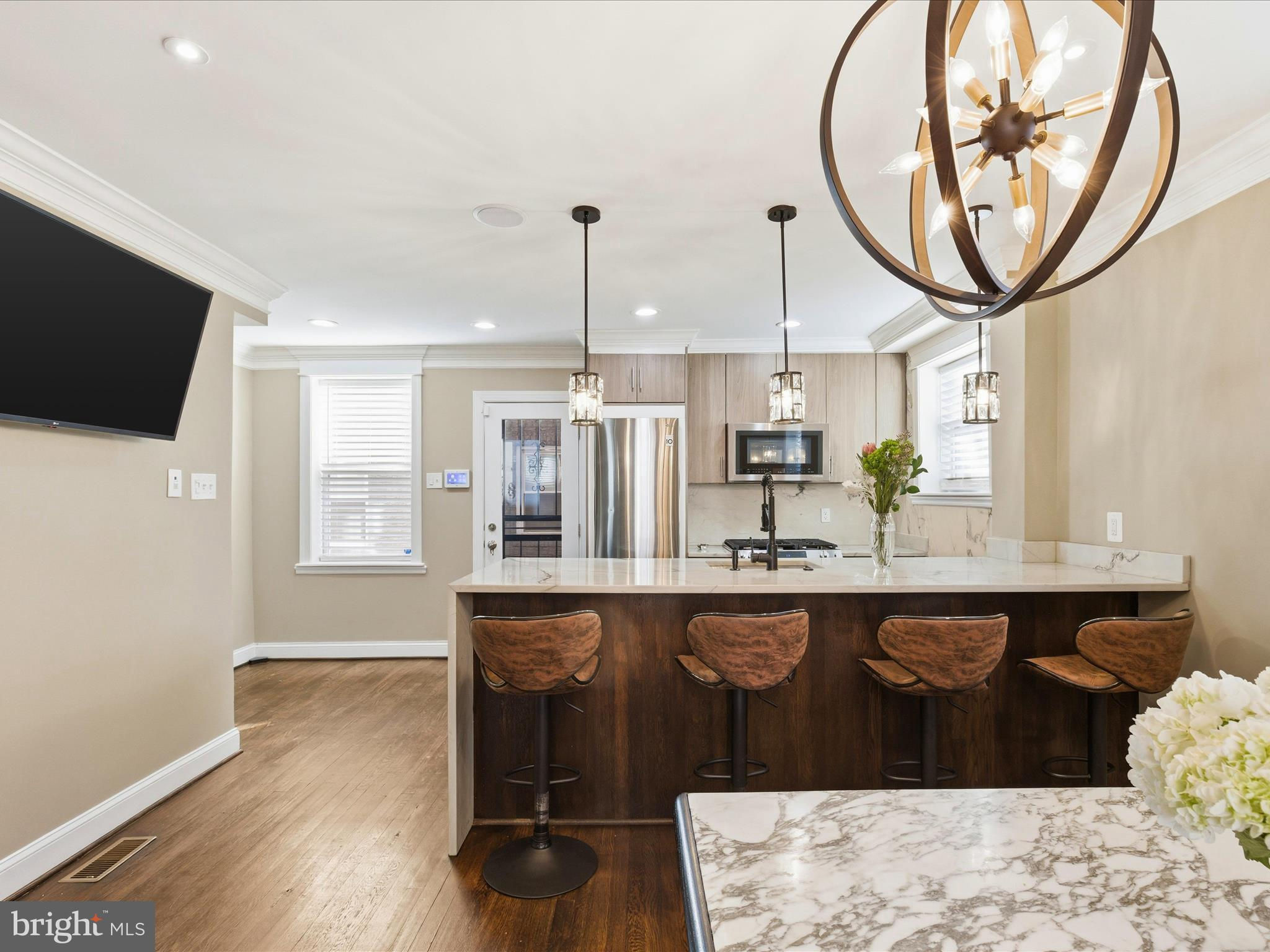 Welcome to this lovely brick home in the sought after Hill Crest Community! Featuring an inviting two-level primary suite with an office and a private staircase leading up to the serene bedroom retreat. Enjoy the full bath, sitting area, fireplace, walk-in closets, and relaxing view. This home also has 2 well-appointed additional bedrooms and 2 full baths upstairs. The main level is a great family gathering place to include an open family room with a fireplace leading to the sunroom perfect for al fresco dining and entertaining. The kitchen showcases marble countertops, stainless steel appliances, dining area and beautiful hardwood flooring. The lower level offers a welcoming living area complete with a kitchenette, full bathroom, and direct access to the rear patio. Step outside to a cozy backyard for year-round enjoyment. Additional highlights include a one-car garage and a parking pad accommodating up to three vehicles. Conveniently located near community recreation, shopping, public transportation, commuter routes, and local attractions—this home truly combines comfort, style, and convenience.