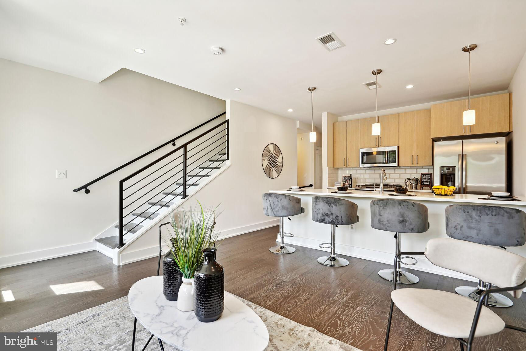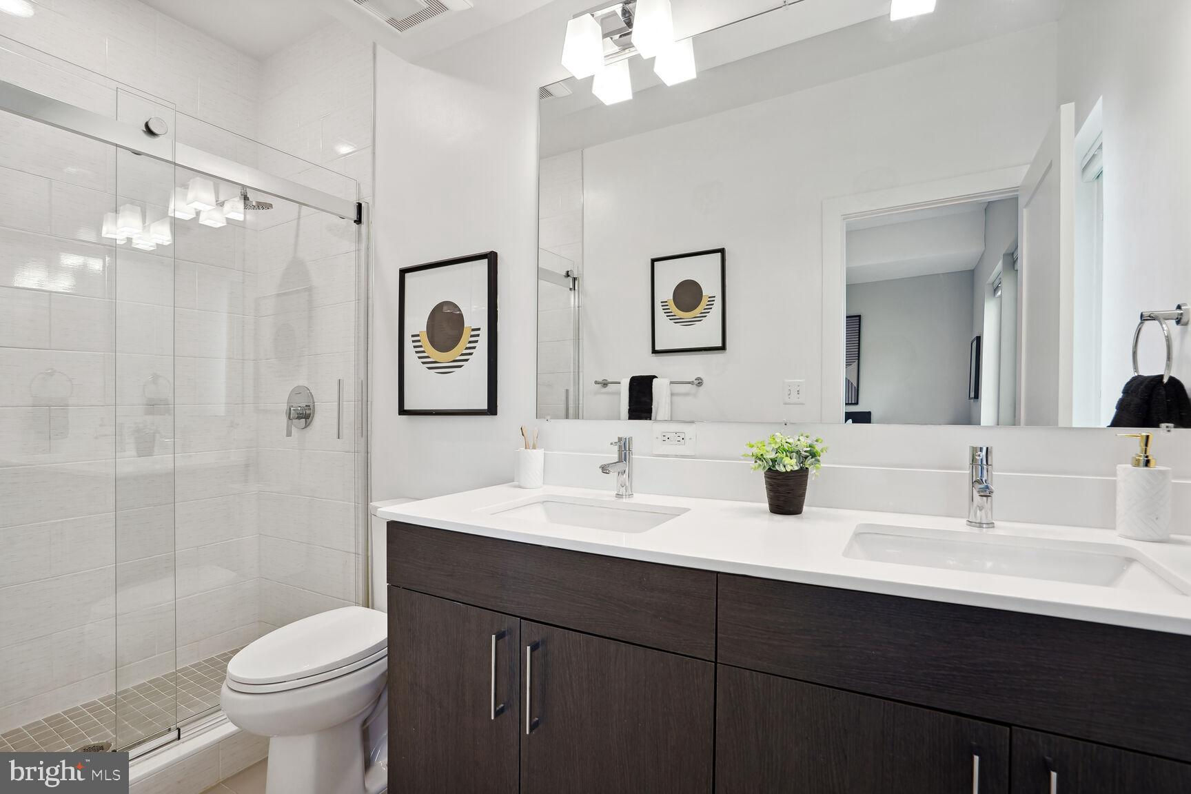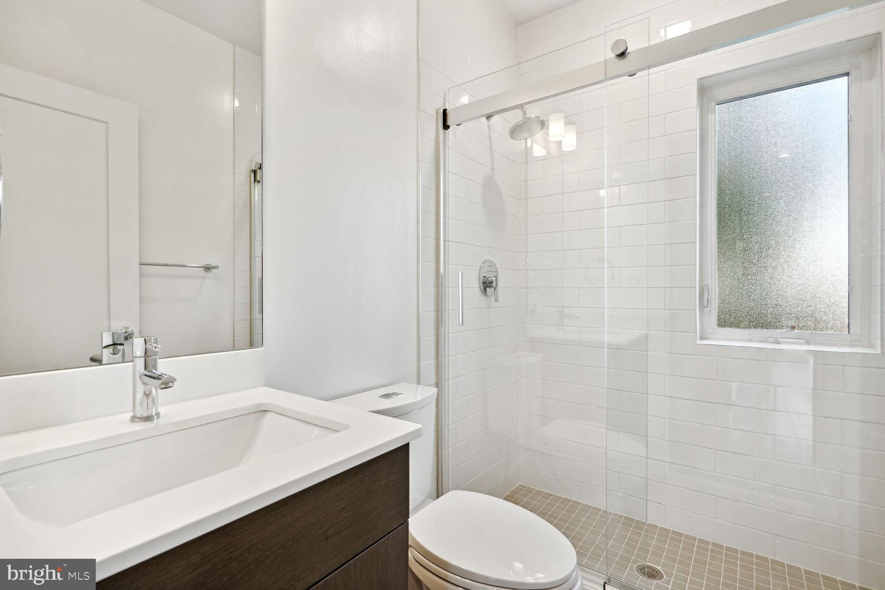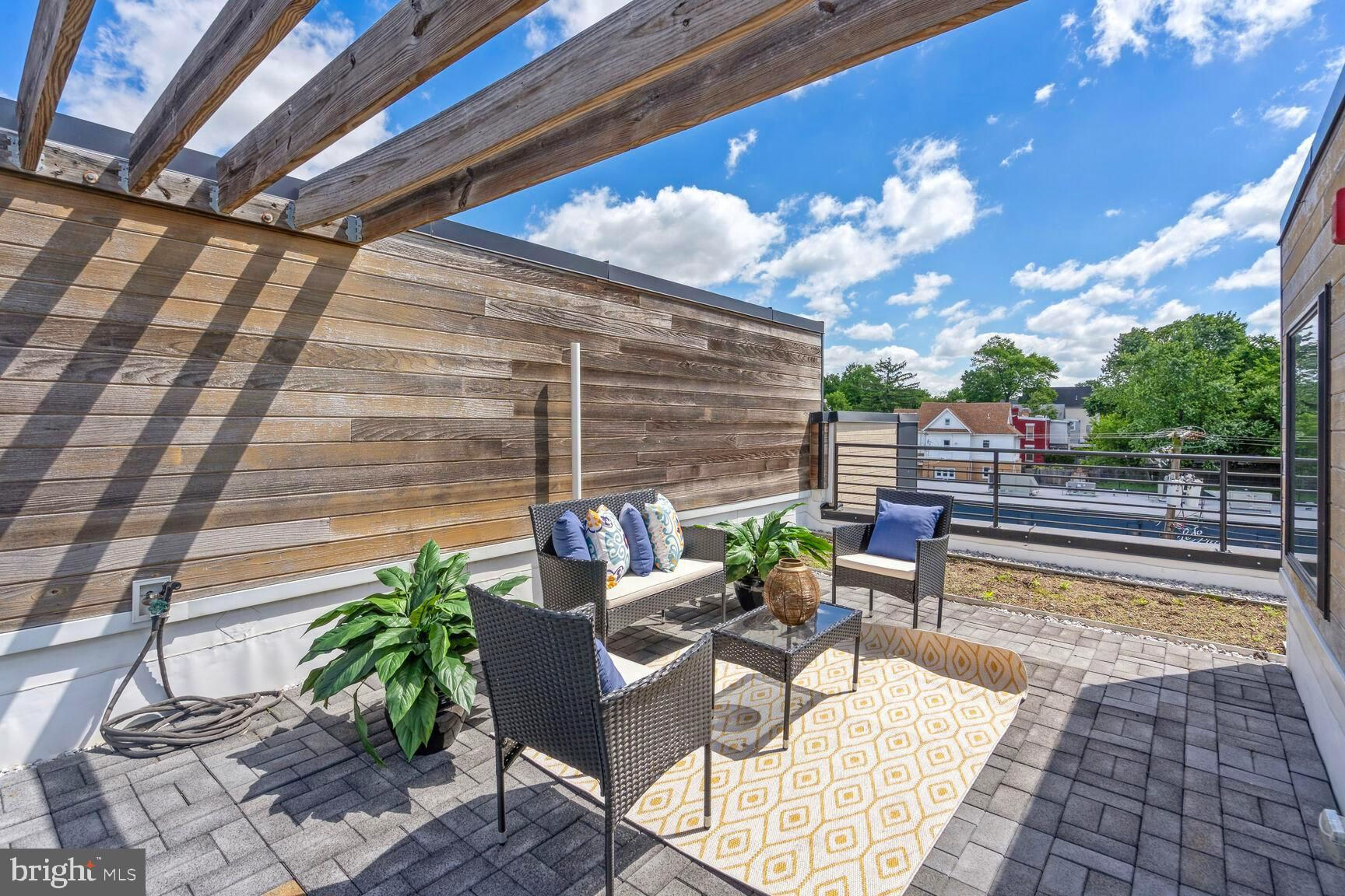 Welcome to 2724 12th Street NE Unit 4, a townhome condo spread across three levels of living space featuring a private rooftop and one assigned parking spot. The main level presents an open concept floorplan with floor-to-ceiling windows, bathing the space in natural light, ideal for entertaining guests, family gatherings, or daily living. The gourmet kitchen boasts stainless steel appliances and quartz countertop with custom cabinetry, a spacious pantry, and an oversized island—a dream for any chef or for preparing daily meals. Also on this level, a versatile bedroom can serve as a home office, gym, or guest room, conveniently located adjacent to a full bathroom. Ascending to the upper level, you'll find two generously sized bedrooms with ample closet space. One bedroom serves as the primary suite with its own en suite bathroom with double vanity and stunning views, while the other bedroom features private balcony access. The washer and dryer are conveniently located on this floor. Moving up to the green roof rooftop, this space is perfect for entertaining friends or enjoying morning coffee and afternoon relaxation with breathtaking views of the monuments. The home includes assigned parking at the rear. Situated near a variety of neighborhood restaurants and bars such as Ledo’s Pizza, Calabash Tea, Primrose, and Brookland's Finest, as well as several parks, playgrounds, and dog parks nearby. The location offers easy access to Brookland and Rhode Island metro stations for a quick commute to Downtown DC, and provides convenient access to major highways leading to Maryland and Virginia.