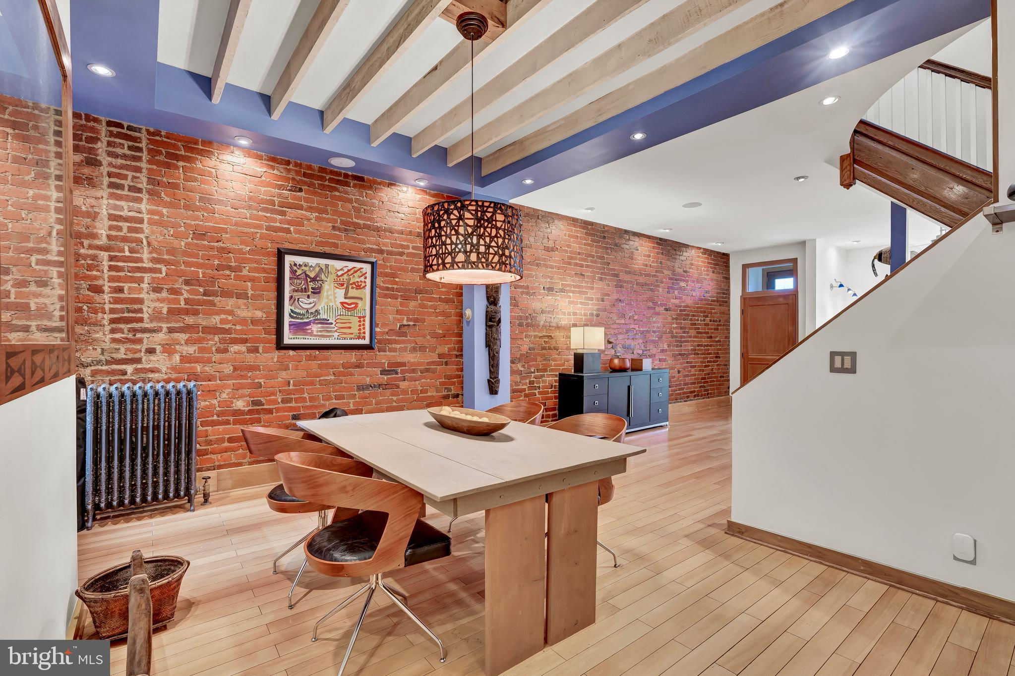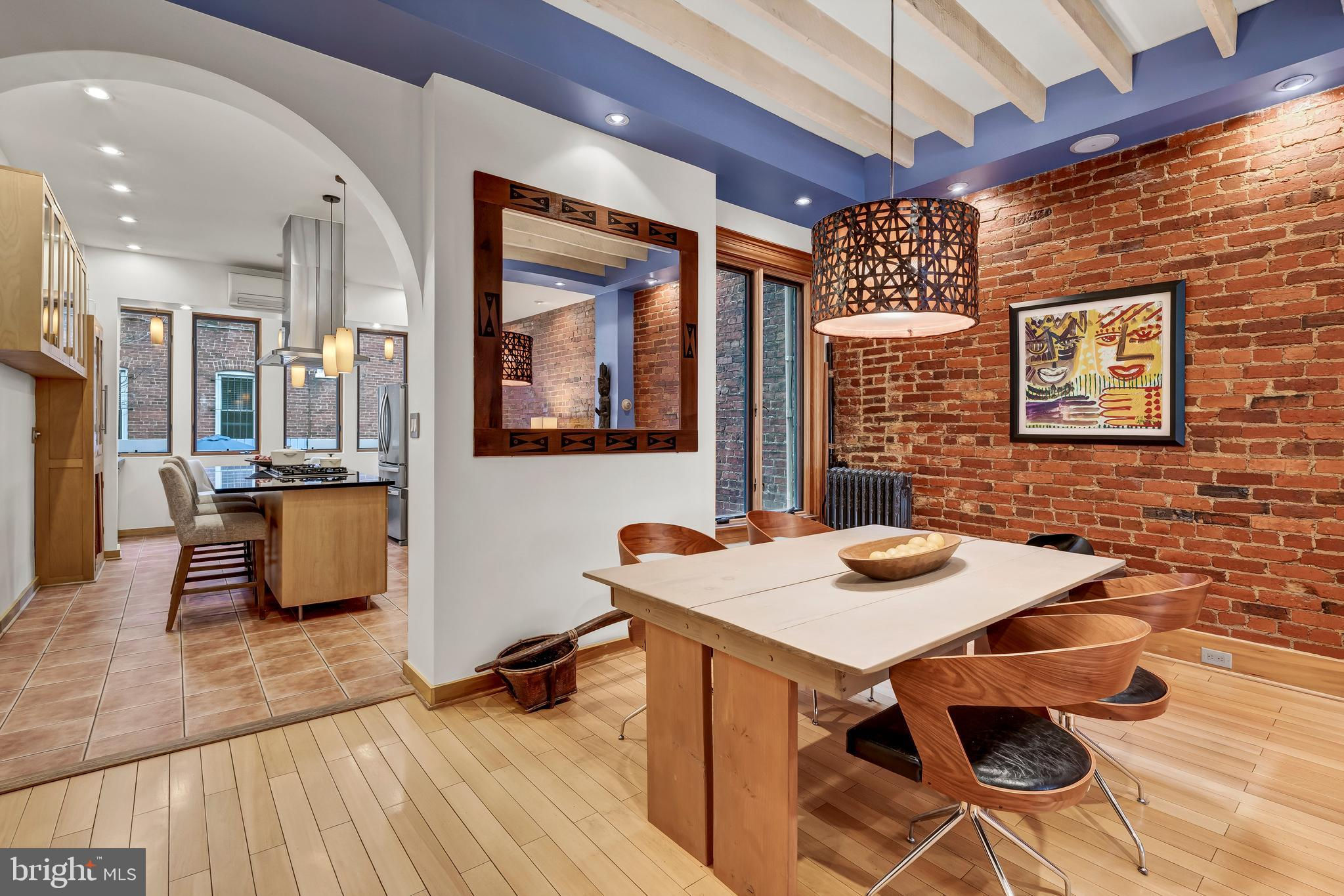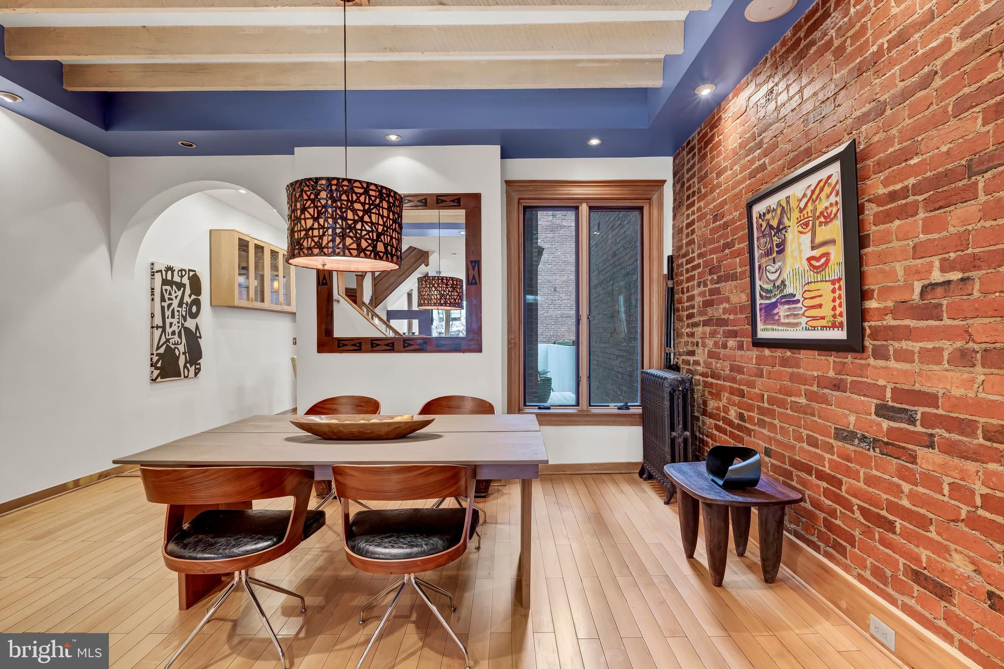 This captivating property beckons buyers into a luxurious 5-bedroom, 3-bathroom haven, meticulously detailed to showcase its allure and sophistication. Upon crossing the threshold, one is enveloped in a seamless blend of historical charm and modern refinement. Noteworthy features include the original wood staircase and exposed brick walls, exuding character and elegance. The kitchen, a culinary sanctuary, boasts a spacious layout with a large granite island, ample storage, and the added comfort of energy-efficient mini splits, ensuring heating and climate control efficiency throughout the home. Upstairs, a lavish primary suite with a serene terrace and additional bedrooms offer private retreats for family and guests alike. Outside, a meticulously landscaped backyard provides a tranquil escape, ideal for gatherings or relaxation. The finished basement adds versatility to accommodate various lifestyle needs, with front and rear access presenting the potential for generating rental income. Rental units in the area range from $1900 to $2400 per month, potentially offsetting a large portion of your monthly expenses. Nestled in the vibrant Columbia Heights neighborhood, this home enjoys close proximity to the Columbia Heights metro station, facilitating easy transportation access. It also resides near an array of shopping and dining options, as well as the lively U Street corridor, enriching residents with a cosmopolitan lifestyle. Architecturally, exposed ceiling beams and graceful archways enrich the space with rustic beauty and flow. Intricate moldings, decorative accents, and built-in shelving further enhance the aesthetic appeal, reflecting the homeowner's meticulous attention to detail and craftsmanship. In essence, this property's architectural elements work harmoniously to create an inviting and inspiring space, imbued with depth, character, and a profound sense of history, making it a truly exceptional place to call home.