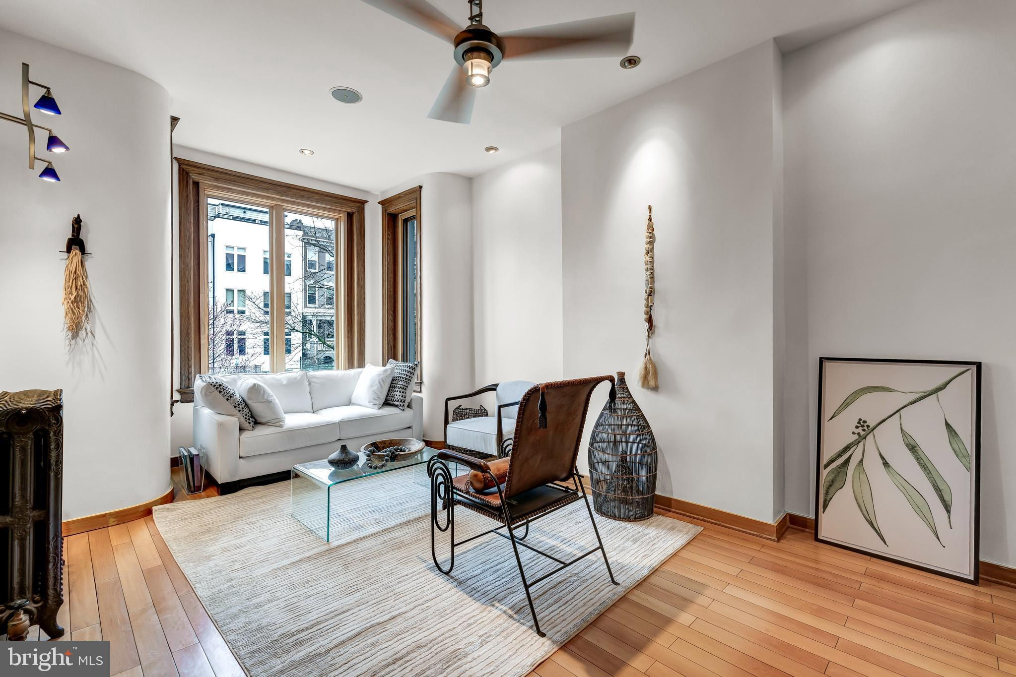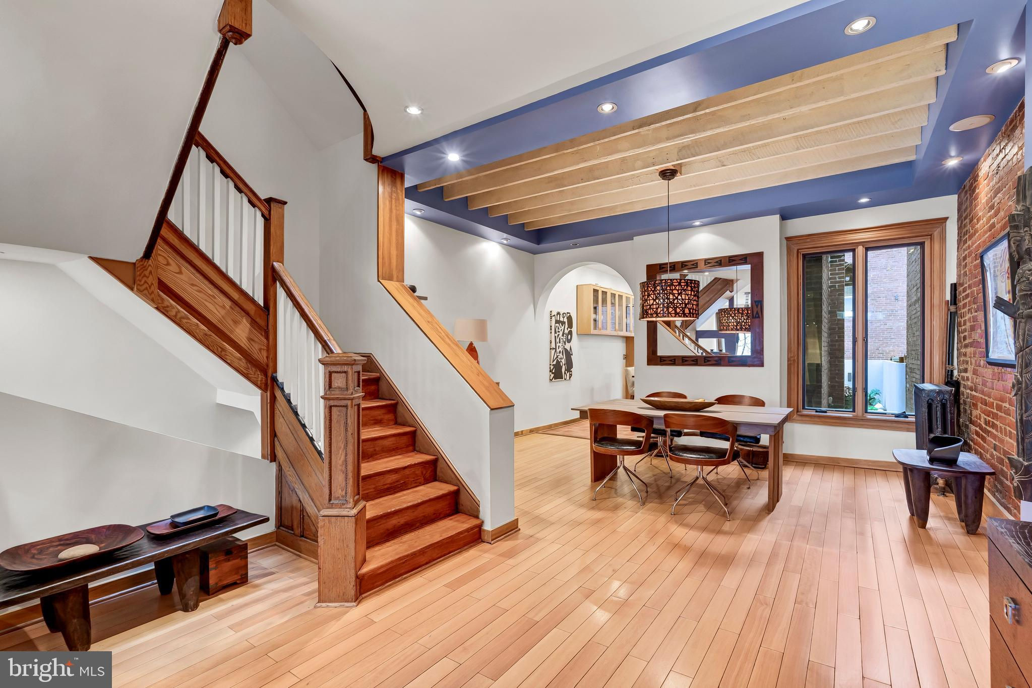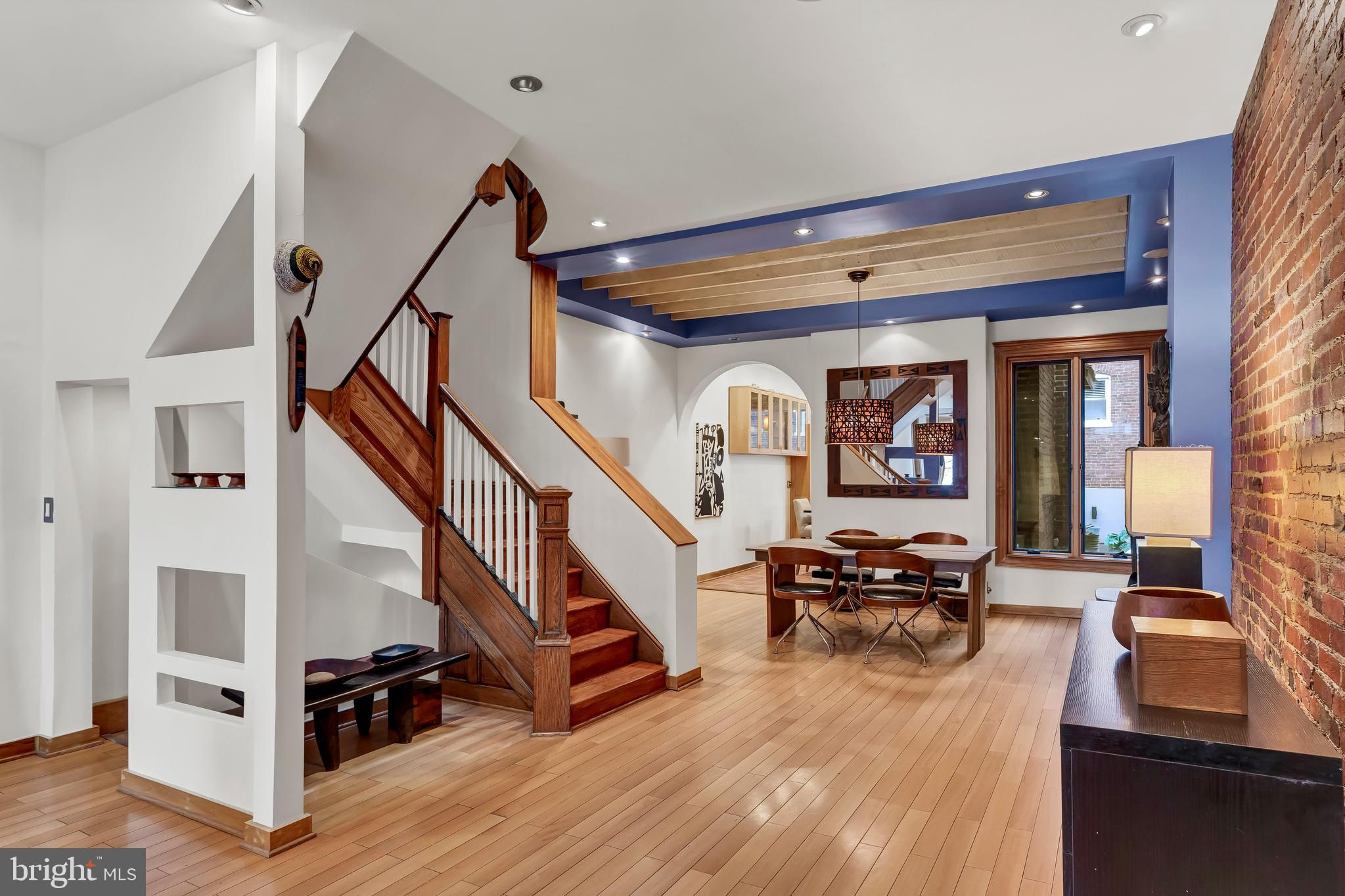 This captivating property beckons buyers into a luxurious 5-bedroom, 3-bathroom haven, meticulously detailed to showcase its allure and sophistication. Upon crossing the threshold, one is enveloped in a seamless blend of historical charm and modern refinement. Noteworthy features include the original wood staircase and exposed brick walls, exuding character and elegance. The kitchen, a culinary sanctuary, boasts a spacious layout with a large granite island, ample storage, and the added comfort of energy-efficient mini splits, ensuring heating and climate control efficiency throughout the home. Upstairs, a lavish primary suite with a serene terrace and additional bedrooms offer private retreats for family and guests alike. Outside, a meticulously landscaped backyard provides a tranquil escape, ideal for gatherings or relaxation. The finished basement adds versatility to accommodate various lifestyle needs, with front and rear access presenting the potential for generating rental income. Rental units in the area range from $1900 to $2400 per month, potentially offsetting a large portion of your monthly expenses. Nestled in the vibrant Columbia Heights neighborhood, this home enjoys close proximity to the Columbia Heights metro station, facilitating easy transportation access. It also resides near an array of shopping and dining options, as well as the lively U Street corridor, enriching residents with a cosmopolitan lifestyle. Architecturally, exposed ceiling beams and graceful archways enrich the space with rustic beauty and flow. Intricate moldings, decorative accents, and built-in shelving further enhance the aesthetic appeal, reflecting the homeowner's meticulous attention to detail and craftsmanship. In essence, this property's architectural elements work harmoniously to create an inviting and inspiring space, imbued with depth, character, and a profound sense of history, making it a truly exceptional place to call home.