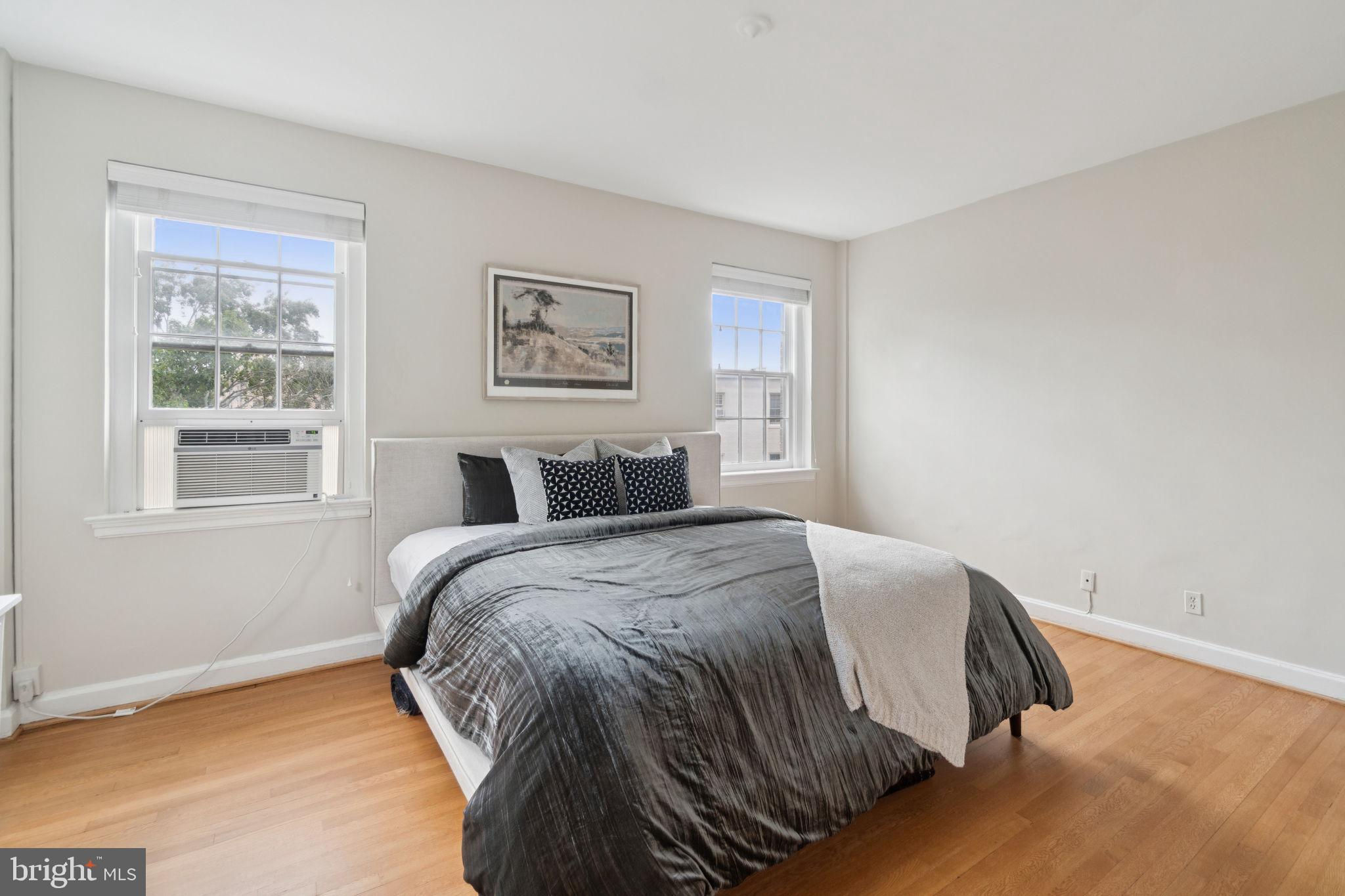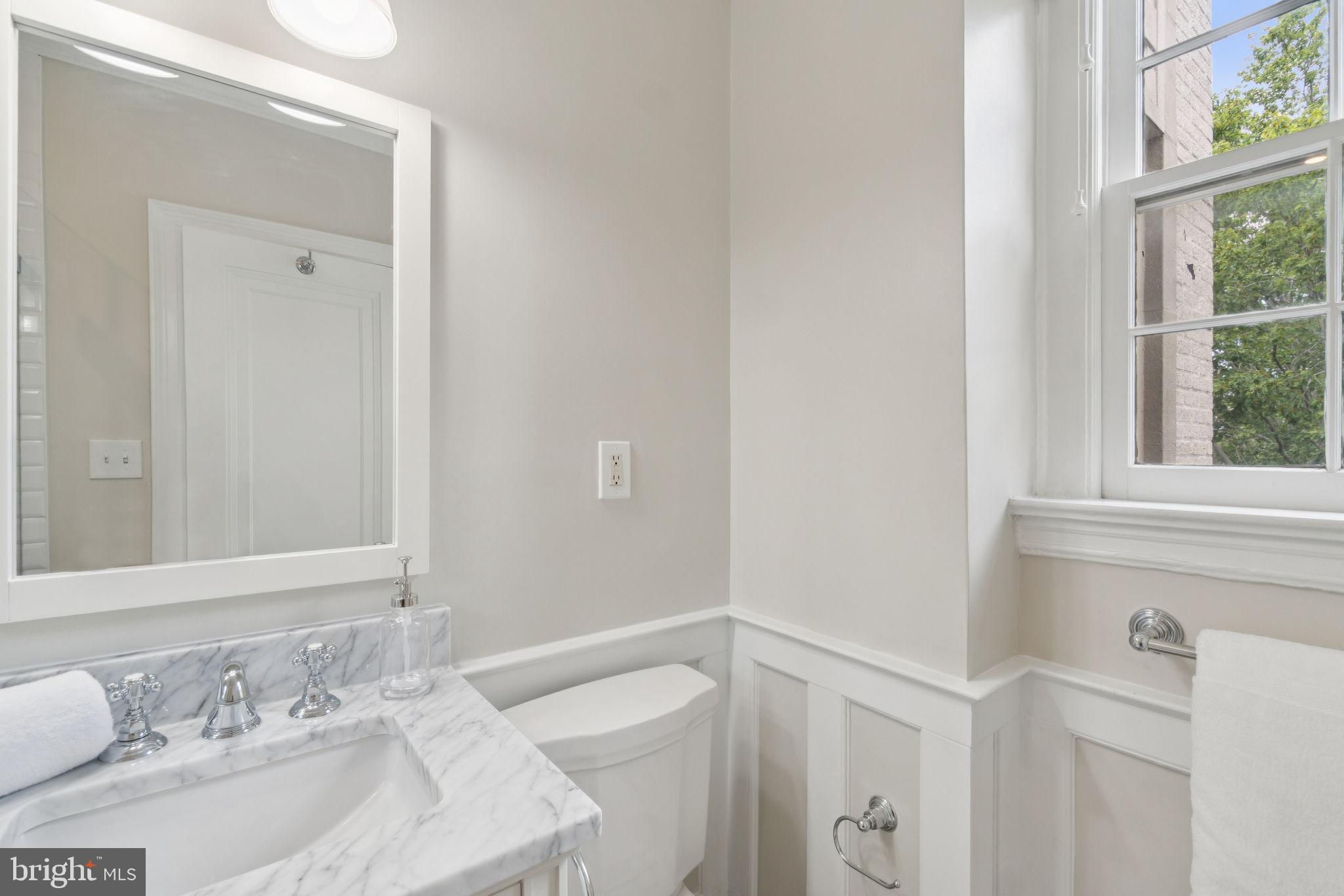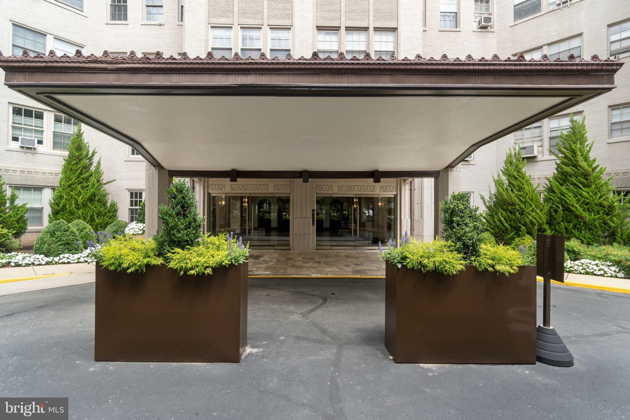 Find your spacious NW DC sanctuary in one of James Goode's "Best Addresses" landmark buildings designed by Louis T. Rouleau in the golden age of Connecticut Avenue corridor Architecture. A cool and leafy retreat, this fully renovated, top floor 2-bedroom 2 full bathroom condo in the renowned Aztec Art Deco Woodley Park Towers overlooks tranquil Klingle Valley, yet is only a short stroll from the charming, town-like Cleveland Park and Woodley Park shops and Metros as well as the National Zoo and the National Cathedral. The residence features a sun-filled solarium expanding on a spacious living room, entry foyer with a walk-in coat closet, and a sunny formal dining room all with re-finished oak floors, grand pointed arches and 9'+ ceilings. The thoughtfully renovated kitchen features a charming arched window architrave, solid wood cabinetry, stone counters, built-in Liebherr refrigerator, butler pantry and separate service entrance. The primary suite continues the treehouse theme with canopy views, a beautifully renovated marble bathroom and a large, walk-in closet. One must see it to experience the smart layout and flow that this unit has to offer. The doorman building also boasts a park-side patio within earshot of the babbling creek, featuring grills and a community herb garden for the last minute bouquet garni. It also features a 24-hour concierge, reasonable rental parking, unparalleled onsite management, formidable reserves, exercise rooms, saunas, party room, separate storage and more. Dogs of all sizes and cats are allowed; the WPT pet co-op is very popular with pet owners. And don't forget about the easy access to the Klingle Valley Trail and Tregaron Conservancy; not one, but two peaceful, natural oases in your backyard. Do not miss the very best that DC apartment living has to offer!
