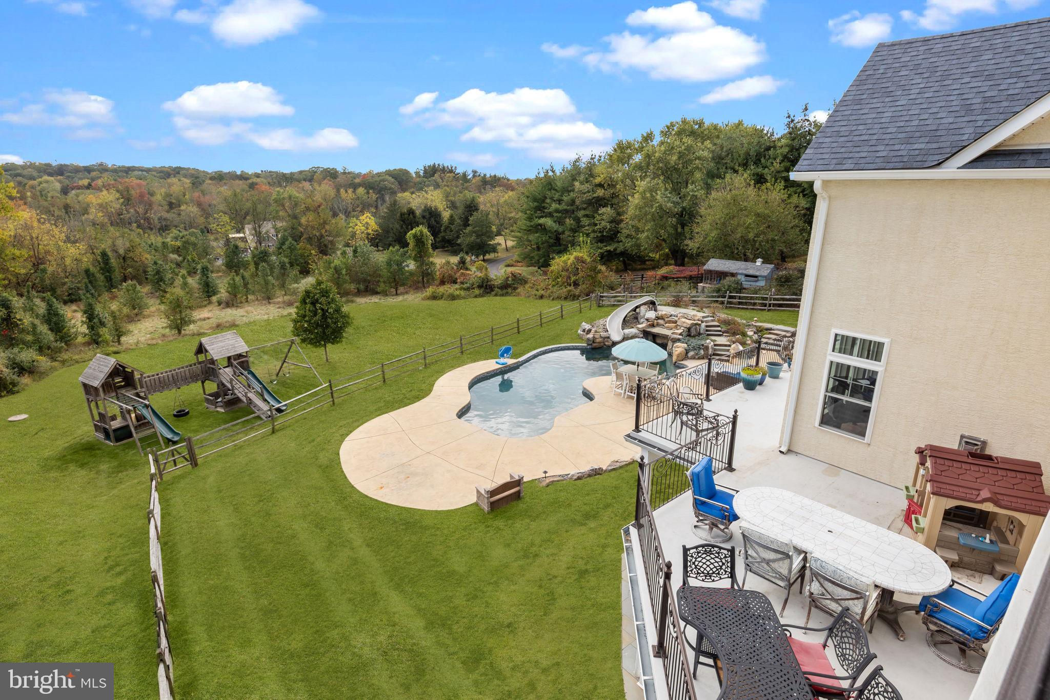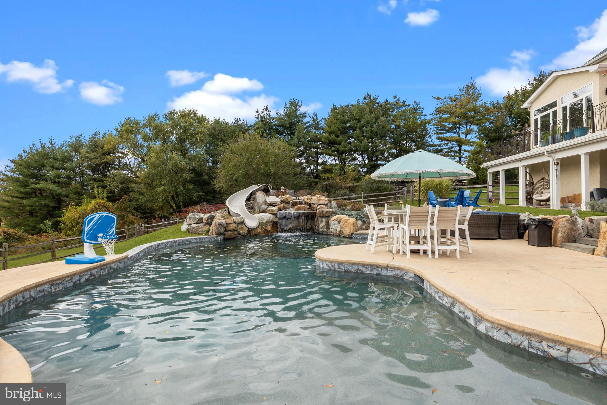 Custom Resort-Style Estate with Breathtaking Valley Views in Council Rock North School District Indulge in an unparalleled lifestyle within this custom-built, 5-bedroom, 5.5-bath single-family home, situated on a serene 5.40-acre lot with panoramic valley views. Enter the grand, two-story stone foyer and be greeted by sheer elegance and exquisite design. This sophisticated estate seamlessly blends luxurious indoor living with a magnificent resort-style outdoor oasis, creating the ultimate retreat for discerning buyers. The heart of the home is the chef's kitchen, featuring top-of-the-line appliances, including a Sub-Zero refrigerator/freezer, an Italian ILVE eight-burner gas range, a Miele dishwasher, and a walk-in pantry. Beyond the kitchen, you will find: A private, first-floor home office , A bright sunroom overlooking the landscaped backyard. The second floor features four large bedrooms, each with its own private bath and walk-in closets, plus a delightful secret bonus room currently set up as a playroom. Throughout the home, enjoy a built-in speaker and central vacuum system. This home features a convenient first and second-floor laundry rooms, with a dedicated dog shower on the main level. The newly finished basement elevates entertainment to new heights with a custom live-edge wet bar and kegerator, a temperature-controlled wine room, and a padded floor gym. Step directly from the basement into your outdoor paradise, which features a spectacular saltwater pool complete with a waterfall, waterslide, and enchanting grotto. The bluestone patio and covered deck with a built-in custom grill and second kegerator offer year-round entertainment possibilities. The property also includes a secure custom chicken coop. This extraordinary property provides the perfect combination of privacy, luxury, and entertainment for grand celebrations or quiet moments alike. All of this is located in the highly-acclaimed Council Rock North School district. This exceptional opportunity won't last long—schedule your private tour today. This home is withing a short drive to either Trenton or Doylestown Airports. NYC and Philadelphia are also with in a commutable distance.