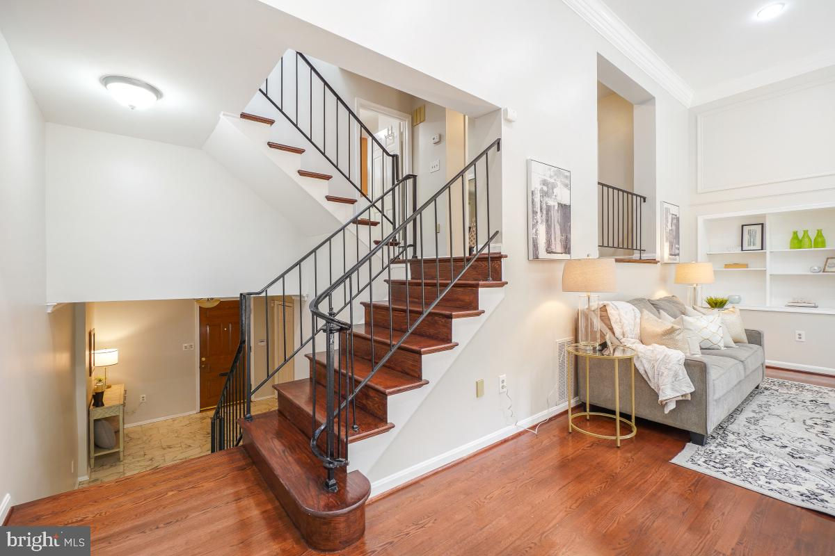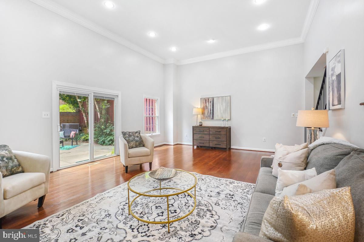 Spacious Brick Front Townhome in Prime Location! This stunning brick front townhome offers over 2,800 square feet of beautifully designed living space across three levels, featuring 3 bedrooms with 2 full and 2 half baths, including an attached garage. Welcoming entry with abundant storage, direct garage access, and steps down to a spacious family room complete with built-in shelving, a half bath, and a dedicated laundry area. On the main level, enjoy a bright and open living room with soaring two-story ceilings, elegant molding details, and a cozy fireplace. Glass doors open to a private patio surrounded by mature landscaping. A formal dining area offers plenty of space for gatherings, while the upgraded eat-in kitchen boasts granite countertops, custom cabinetry, an island with breakfast bar seating, and ample room for casual dining. Upstairs, the bedroom level features three comfortable bedrooms and two full baths. The expansive primary suite includes double closets and a luxurious ensuite bath with dual granite-topped vanities and built-in cabinetry for extra storage. The two secondary bedrooms are generously sized and share a well-appointed full bath. Ideally situated with easy access to major commuter routes, public transit, and just steps from Rock Creek Park, this home offers the perfect blend of comfort, convenience, and natural beauty. Schedule your showing today!