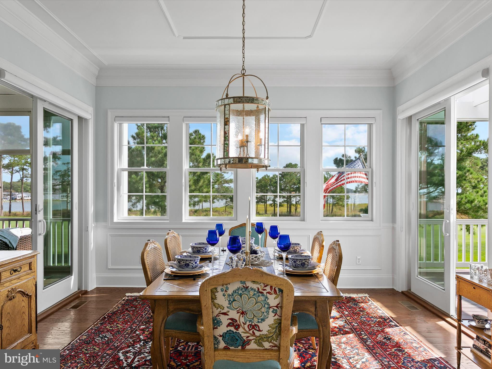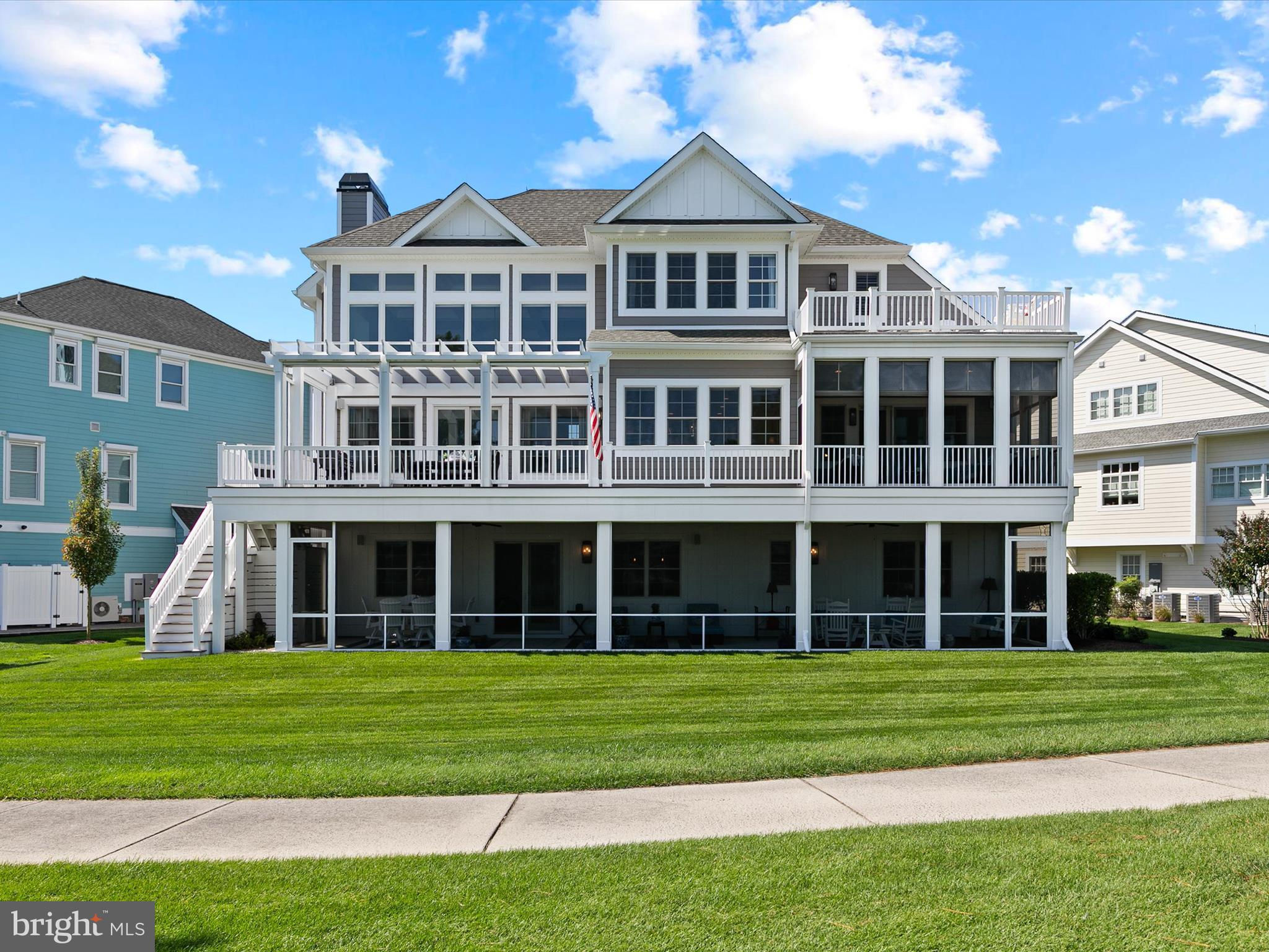 “ Reserve Golf Membership INCLUDED. For the golf enthusiast, a RESERVE GOLF MEMBERSHIP can be transferred to the buyer of the home, bypassing the wait list, with membership cost credited at closing.” An Exquisite Bayfront Residence with Championship Views, A Coastal Sanctuary in The Peninsula Welcome to 27725 Sunwalk Blvd, an Echelon-built masterpiece in the prestigious Sanctuary enclave of This custom luxury home embodies coastal sophistication, timeless design, and masterful craftsmanship, with panoramic waterfront views that set an unrivaled backdrop for daily living and entertaining. Perched on one of the community’s most coveted lots, the home commands 180-degree vistas of the Indian River Bay, the iconic Inlet Bridge, Lingo Creek, and the signature 8th hole of the Jack Nicklaus golf course. From nearly every room and vantage point, sweeping views unfold, where sunrises dance across the water, bald eagles soar overhead, and the rhythms of boating, kayaking, and paddleboarding animate the horizon. Designed for entertaining, the home offers five outdoor decks, including a spectacular 60-foot screened porch with swings, rockers, chaise lounges, and dining space. A second-level deck with a covered pergola invites alfresco meals, while the third-floor deck is the perfect perch for sunset cocktails with views as far as the eye can see. Inside, an expansive 25’ x 35’ family room, complete with a custom bar, fireplace, and seamless connection to the porch, provides a gathering place equally suited for lively celebrations or quiet evenings by the fire. The great room, formal dining room, and loft offer additional spaces for hosting and relaxation, while the indoor/outdoor Delaware room, with easy-glide vinyl windows, extends the entertainment season throughout most of the year. Every detail of the home has been carefully curated. The interiors are professionally designed blending bespoke wallpapers, custom headboards, and elegant draperies into a cohesive and sophisticated palette. Architectural finishes such as dramatic coffered ceilings, layered crown moldings, judges paneling, and hand-scraped hardwood floors underscore the home’s refinement. Built-in cabinetry, French doors with crystal knobs, custom closets, and exquisite lighting, from sparkling chandeliers to designer pendants, further elevate the interiors. The gourmet kitchen is a chef’s delight, featuring Café Series appliances, ceiling-height cabinetry with glass-front accents and custom lighting, a built-in wine chiller, and stone-tiled backsplash, all arranged with style and functionality in mind. The adjoining dining spaces and server counters ensure seamless entertaining. Retreat to the luxurious primary suite, where a spa-like bath with a clawfoot slipper tub promises indulgence. The 3-seasons room extends the suite with a serene retreat framed by water views. Additional bedrooms, each with custom closets and elegant design, offer comfort for guests and family alike. Beyond beauty, the home is meticulously maintained and enhanced with thoughtful upgrades, including Anderson windows and doors, a custom elevator, extensive recessed lighting, whole-home music with ceiling speakers, two fireplaces with striking mantels, a security system, and abundant storage. The homes interiors and exterior have been freshly painted in 2025. Outdoor spaces are equally refined, with professional landscaping by a renowned architect, bluestone garden pathways, custom stonework, up-lighting, and shaded porches that invite relaxation. Even the garage has been upgraded with a four-foot extension, epoxy flooring, and climate-controlled storage. For the golf enthusiast, Reserve Golf Membership is eligible to be transferred with purchase of the home. 27725 Sunwalk Blvd., is more than a home, it is a lifestyle defined by beauty, refinement, and connection to both nature and community.