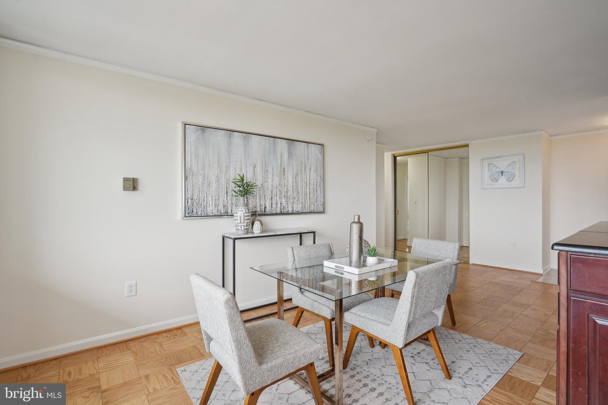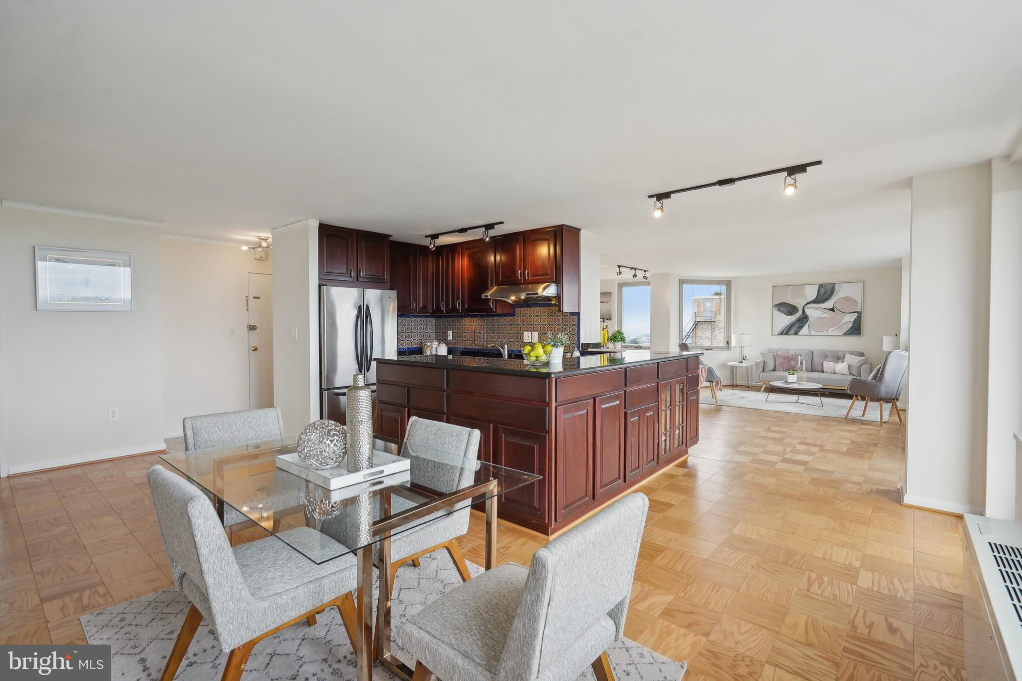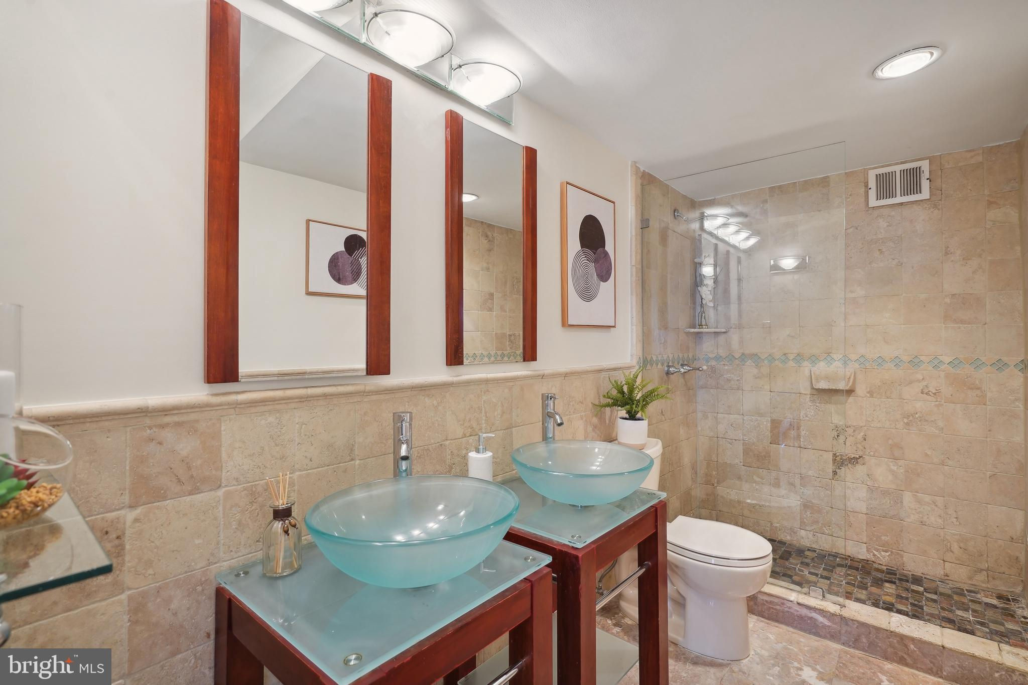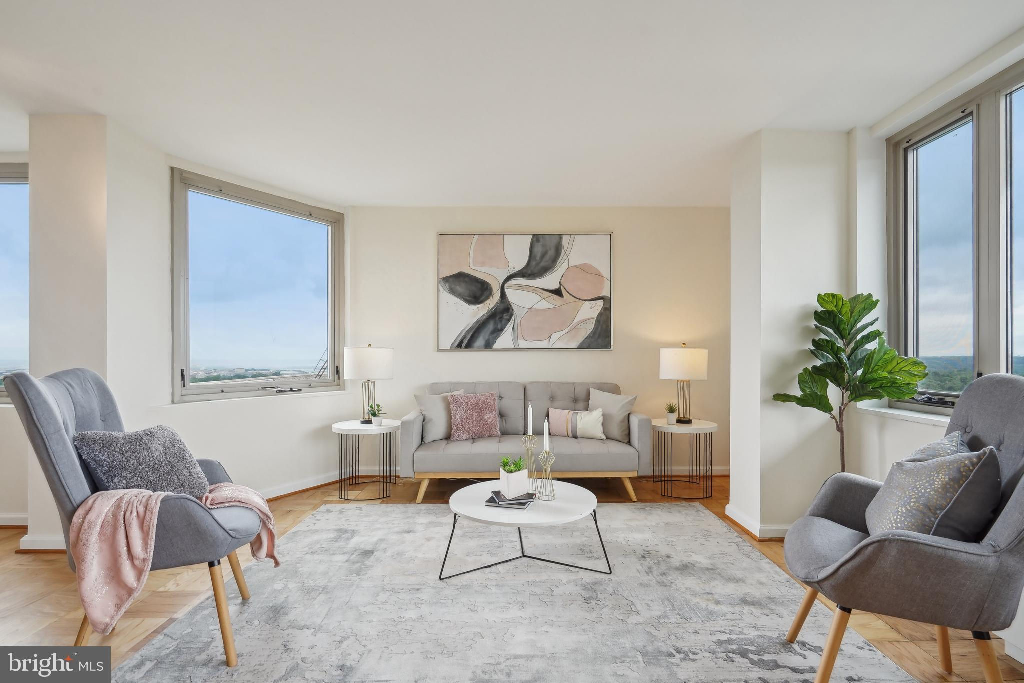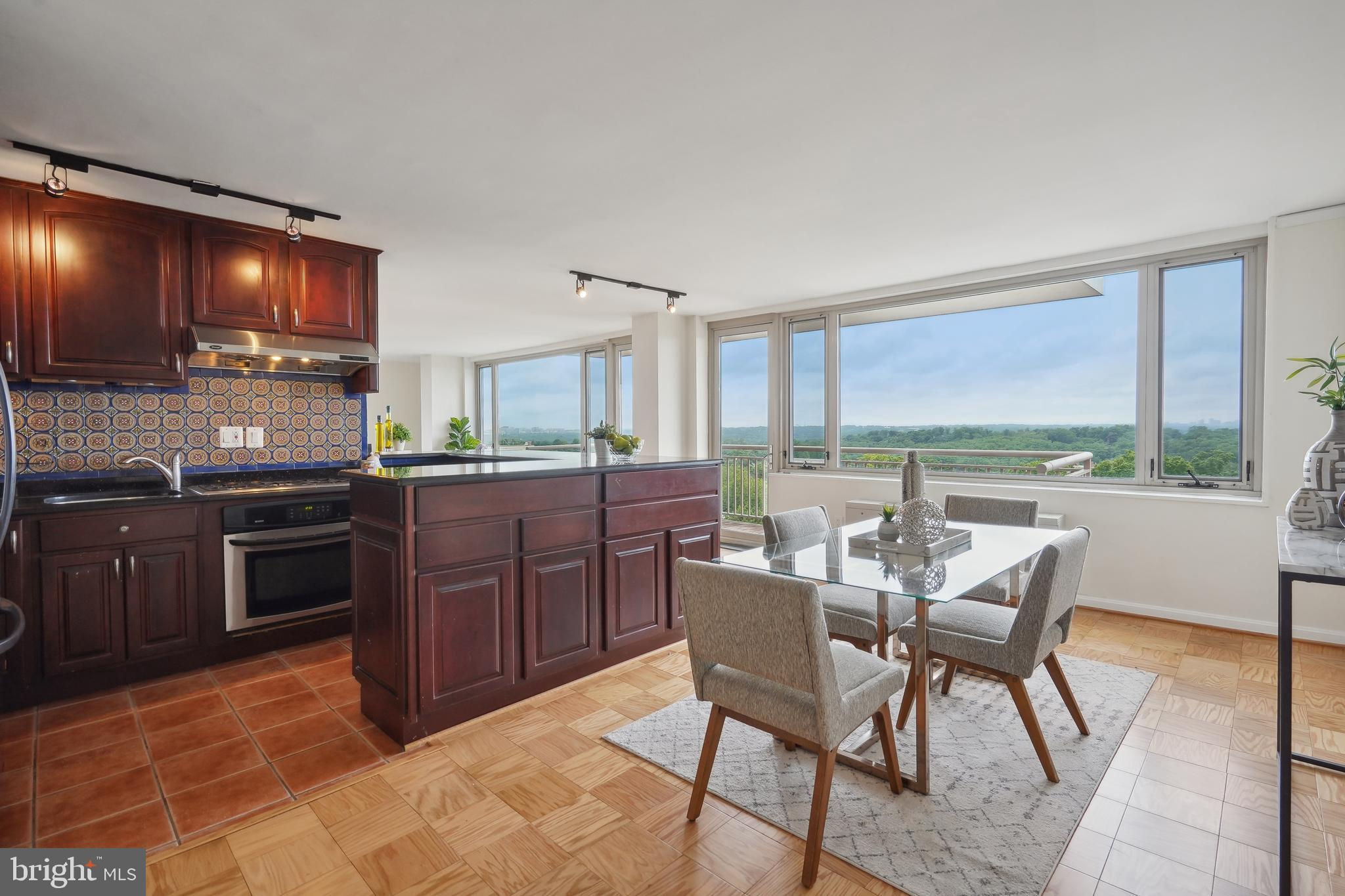 TRULY EXTRAORDINARY! THE VIEWS! THE SPACE! THE LOCATION! YOU MUST STEP INSIDE TO FULLY EXPERIENCE THIS stunning one-in-a-million property minus a million dollar price tag! Mere photos cannot do this penthouse apartment justice and priced well below it's recent appraised value. This two bedroom, two bath plus den "began life" (units 1003 and 1004) as two one bedroom units now artfully combined into an approximately 1,600 sf open floor plan top-floor unit featuring panoramic views to the south featuring the Washington Monument, the Capital, and the Potomac and Tysons Corner and Reston to the west. On a clear day even the mountains are visible!!! Step onto your 23' west-facing balcony and enjoy morning coffee or relax with your evening cocktail while regaled by spectacular sunsets. The gourmet kitchen boasts custom cabinets providing storage and glass doored display space, buffet- style serving counters of black Galaxy granite, stainless steel appliances including French door refrigerator with ice maker, gas range, self cleaning oven and new (May 2024) dishwasher. Customized baths -- one with jacuzzi, ceramic tile surrounds, and double vanity -- the other Turkish travertine tile shower and surround and shale flooring, double vanities with glass basins, custom lighting and "notions and lotions" cabinet for extra storage. The primary bedroom is accessed by a walk-in closet/walk through dressing room with custom shelving and drawers and another custom fitted closet. The second bedroom offers yet another walk-in closet and linen storage in hallway adjacent to bath. The den/wet bar alcove adjacent to the living room is perfect for settling down with a good book or use as office space with panoramic views . The area could also be configured as a third bedroom . Two separately deeded garage parking spaces are included. Located just two blocks south of Mass Avenue and the iconic National Cathedral, the apartment offers a walk score of 86. To the south just a few blocks you'll find Whole Foods, Trader Joe's and a host of restaurants and services. Less than a mile to the north is the Cathedral Commons retail area featuring Giant Foods and CVS plus DC Community Pool located at Hearst and membership to pool available at St. Albans (indoor) A front desk and security, common area laundry room and recently renovated lobby complete this one of a kind offering! Note: tax assessment for one unit only Taxes shown are correct for both units together.