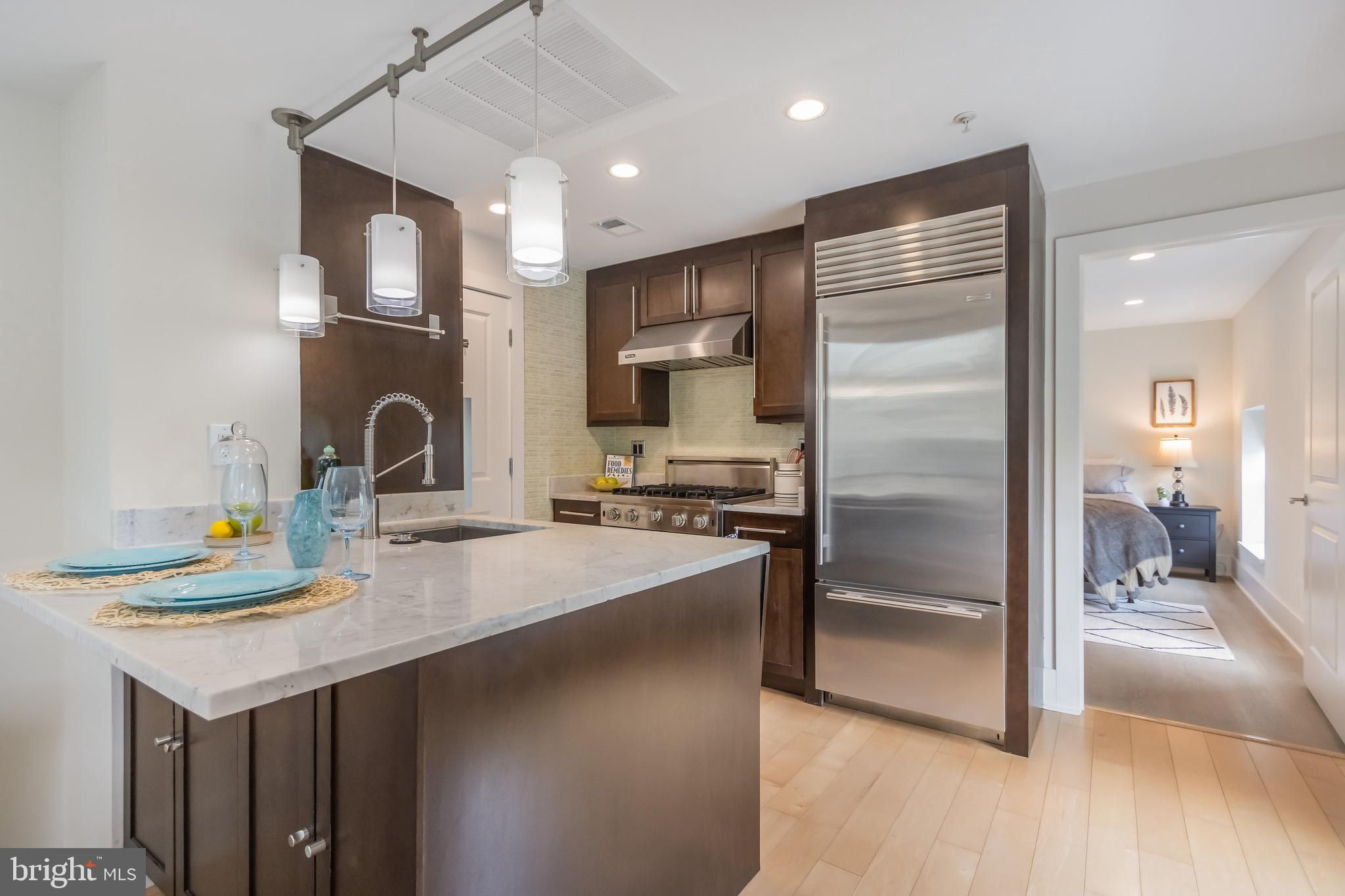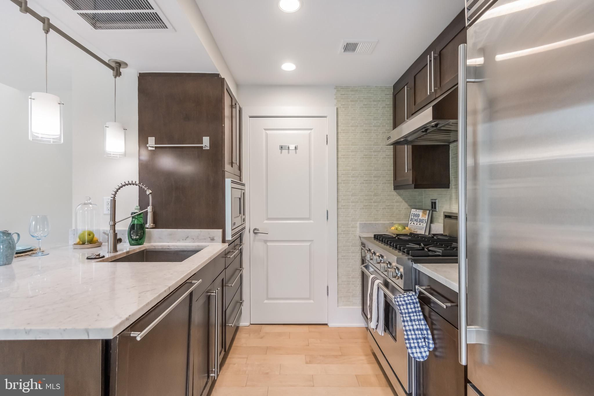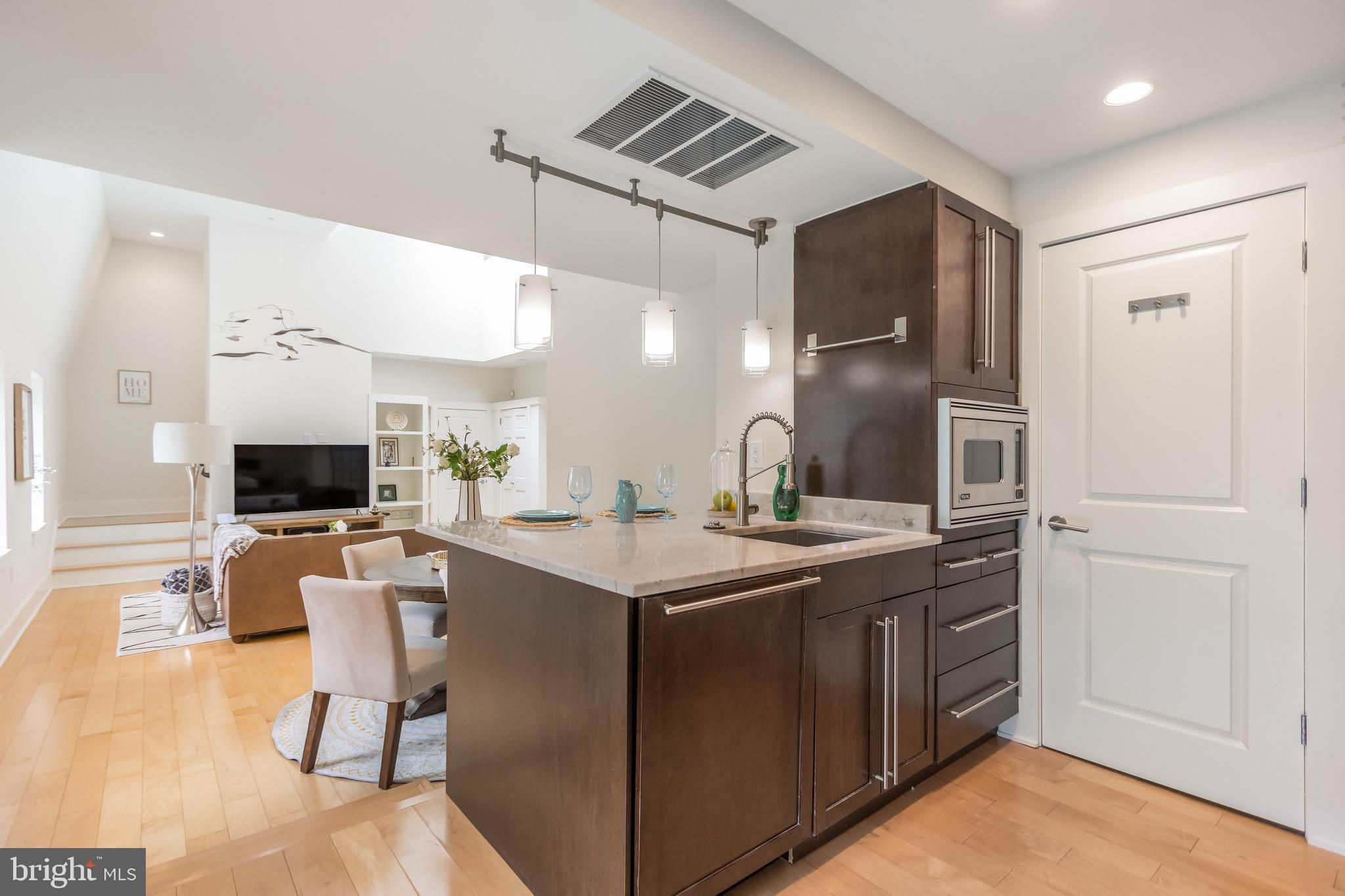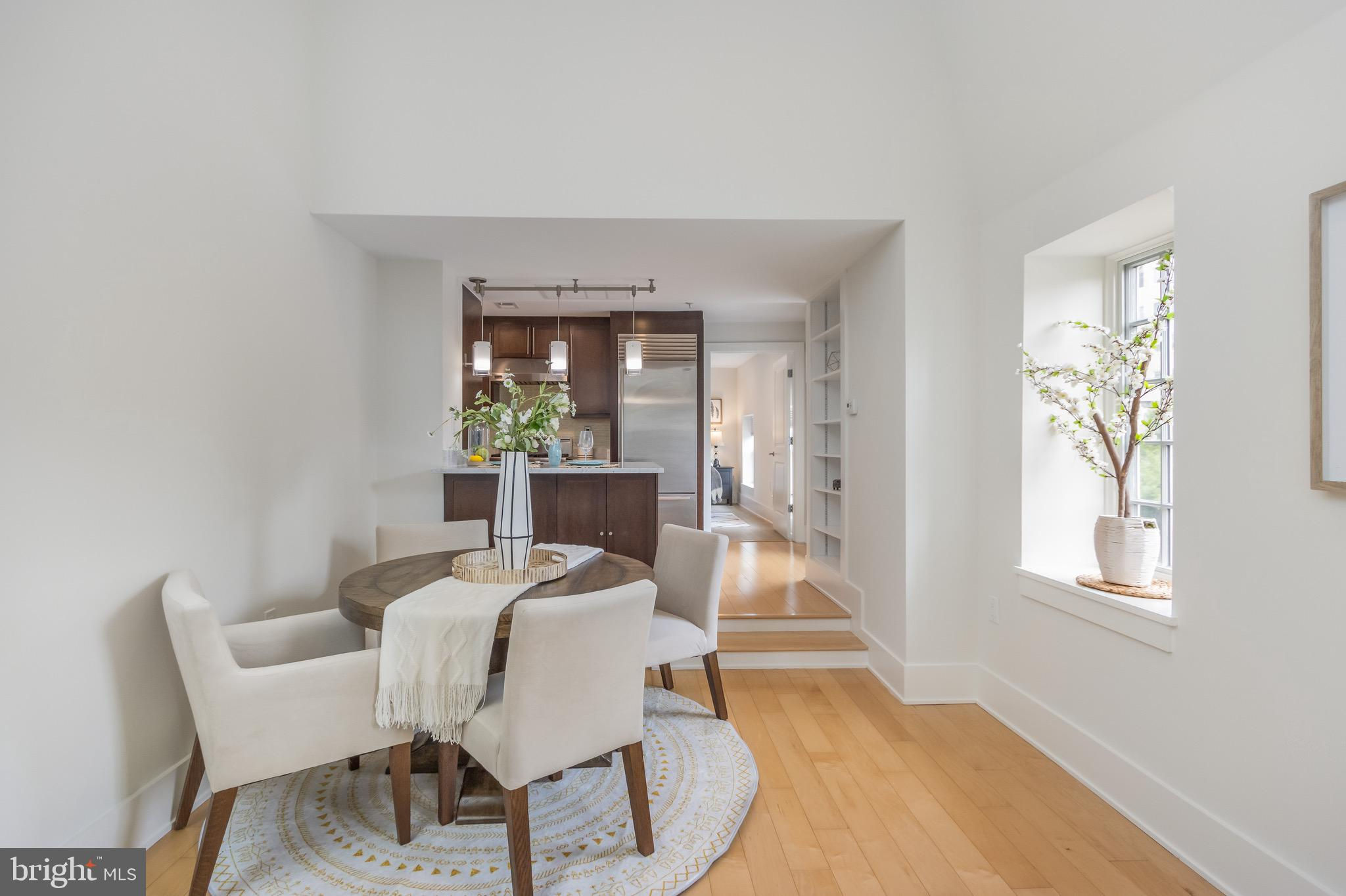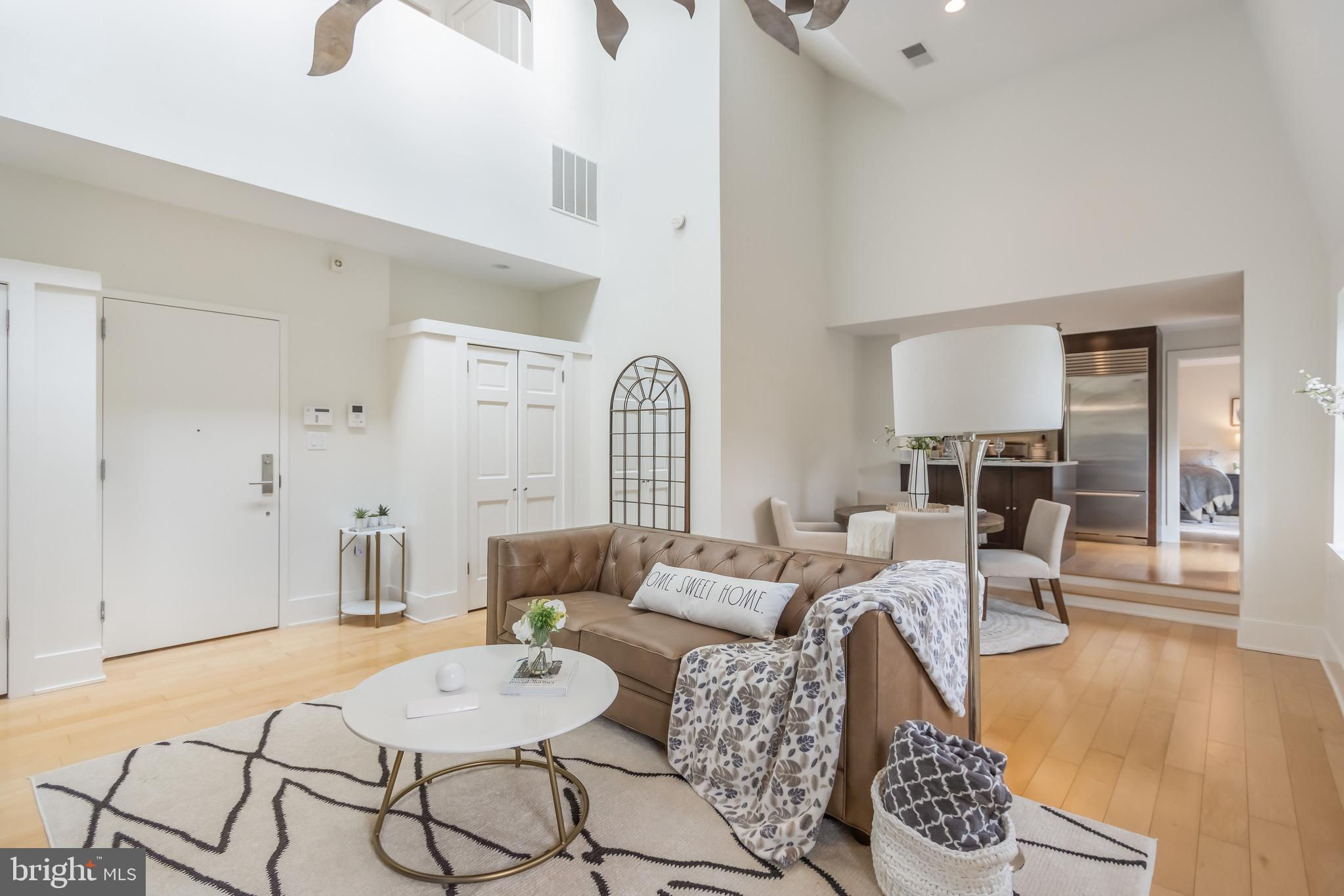 Sunlight filled penthouse in stunning Woodley Park Condo. Fully renovated in 2010. 2 BR suites + Den & a half bath. 2-story living & dining room with skylight. Modern open kitchen features large island, marble countertop & stainless steel appliances. Hardwood floor in living and dining area. Brand new luxury vinyl plank floor in 2 bedrooms. Private balconies off primary bedroom suite. In-unit washer/dryer. 1 assigned Parking Included! Convenient location, easy access to shopping & dinings. Close to the zoo & walk to Metro. Fresh paint throughout. Move in ready!