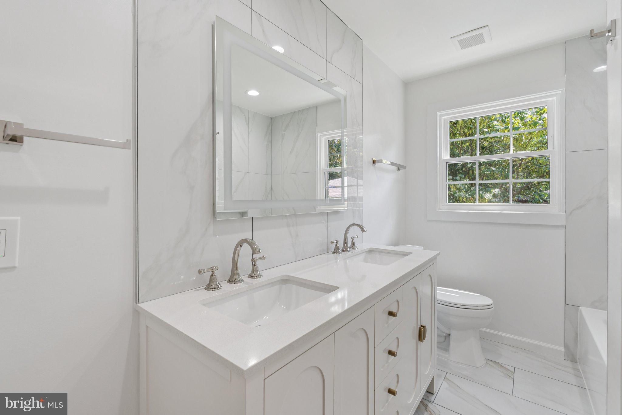 Classic Elegance Meets Natural Serenity in Forest Hills Welcome to 2827 Ellicott Street NW, a distinguished residence nestled at the end of a quiet cul-de-sac on a generous 9,300 square foot lot, facing Rock Creek Park. This timeless Tudor-Colonial blends classic architectural detail with generous room sizes, abundant windows, and a seamless connection to its lush natural surroundings—offering a tranquil retreat in the heart of the coveted Forest Hills neighborhood. Inside, natural light floods every corner of this elegant home, showcasing sweeping views of the surrounding tree canopy. The gracious main level is ideal for both everyday living and entertaining, featuring a formal entry foyer, an expansive living room large enough for dual seating areas or a grand piano, a dining room with access to the rear deck, a versatile family room or office with fireplace, and a stylish powder room. The large kitchen is a chef’s delight, boasting quartz countertops, new stainless steel appliances, and abundant cabinet space. Upstairs, you’ll find four bedrooms and three beautifully renovated bathrooms, including a serene primary suite with its own private deck, a separate sitting or dressing area, and a luxurious en-suite bath. The fully finished lower level adds tremendous flexibility, with a recreation room with built-ins, a fifth bedroom, a fourth full bath, and a multi-purpose space perfect for a home gym, media room, or studio. This home offers unmatched access to nature and city life—mere steps from Soapstone Valley Trail and Rock Creek Park, while also walkable to Van Ness Metro, Bread Furst, Sfoglina, Rosedale Park, Calvert Woodley, the upcoming Mom’s Organic Market, and more. 2827 Ellicott Street NW is the perfect balance of peaceful living and urban convenience.