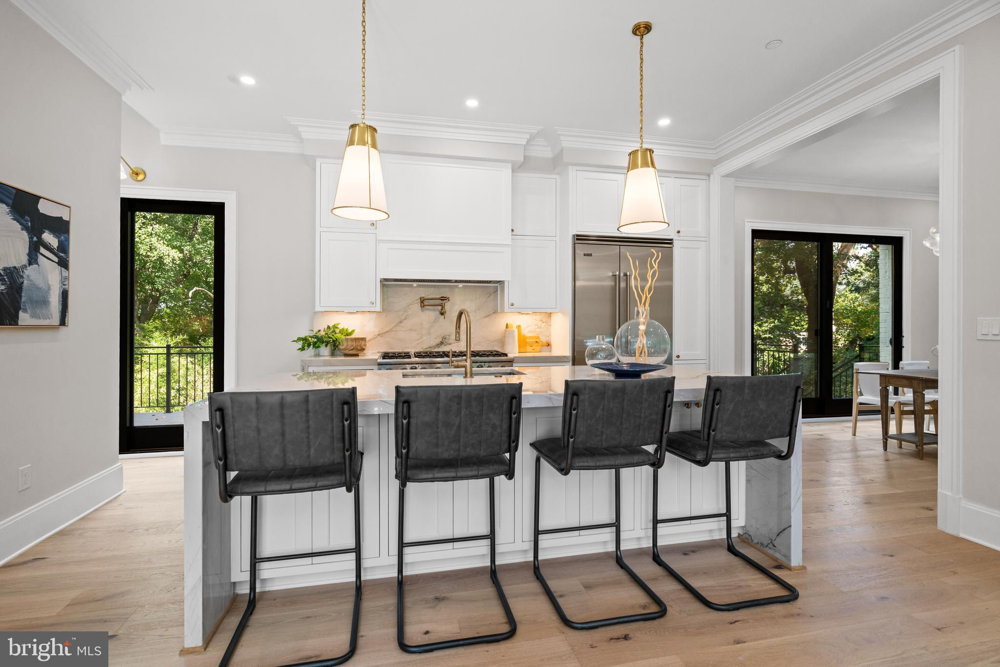 Revel in the grandeur of this newly built residence by Russel Pope award-winning builder Dilan Homes. Set on a graceful, tree-lined cul-de-sac, this 6BR | 6 FB | 2 HB haven offers over 6,500 sq. ft. of timeless elegance across four levels. A stately façade and sweeping approach set the tone for refined interiors where soaring ceilings, oversized windows, and exquisite finishes evoke a sense of quiet luxury. The chef’s kitchen with marble island and butler’s pantry opens to expansive living and dining spaces, perfect for both intimate gatherings and grand entertaining. A serene primary suite with dual walk-in closets and a spa-inspired bath anchors the upper level, while additional en-suite bedrooms and a versatile loft provide comfort throughout. The finished lower level with recreation room, guest suites, and covered terrace completes this exceptional offering. Perfectly positioned in one of Washington’s most coveted neighborhoods, this home combines privacy with convenience. Nestled among mature trees and distinguished residences, it feels worlds away while being only minutes from downtown DC, fine dining, shopping, and Rock Creek Park’s trails. A rare opportunity to enjoy the serenity of a retreat without sacrificing urban accessibility.