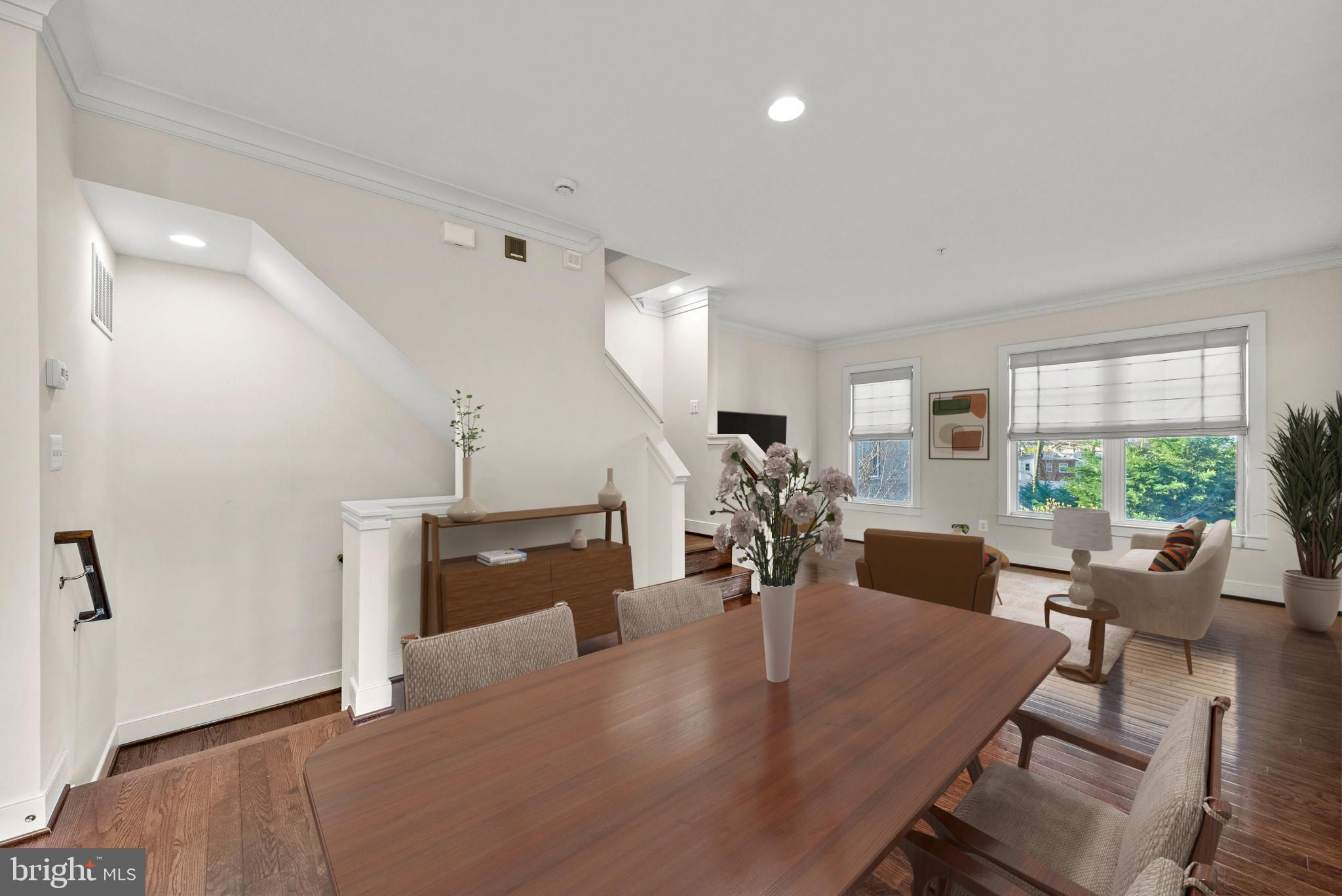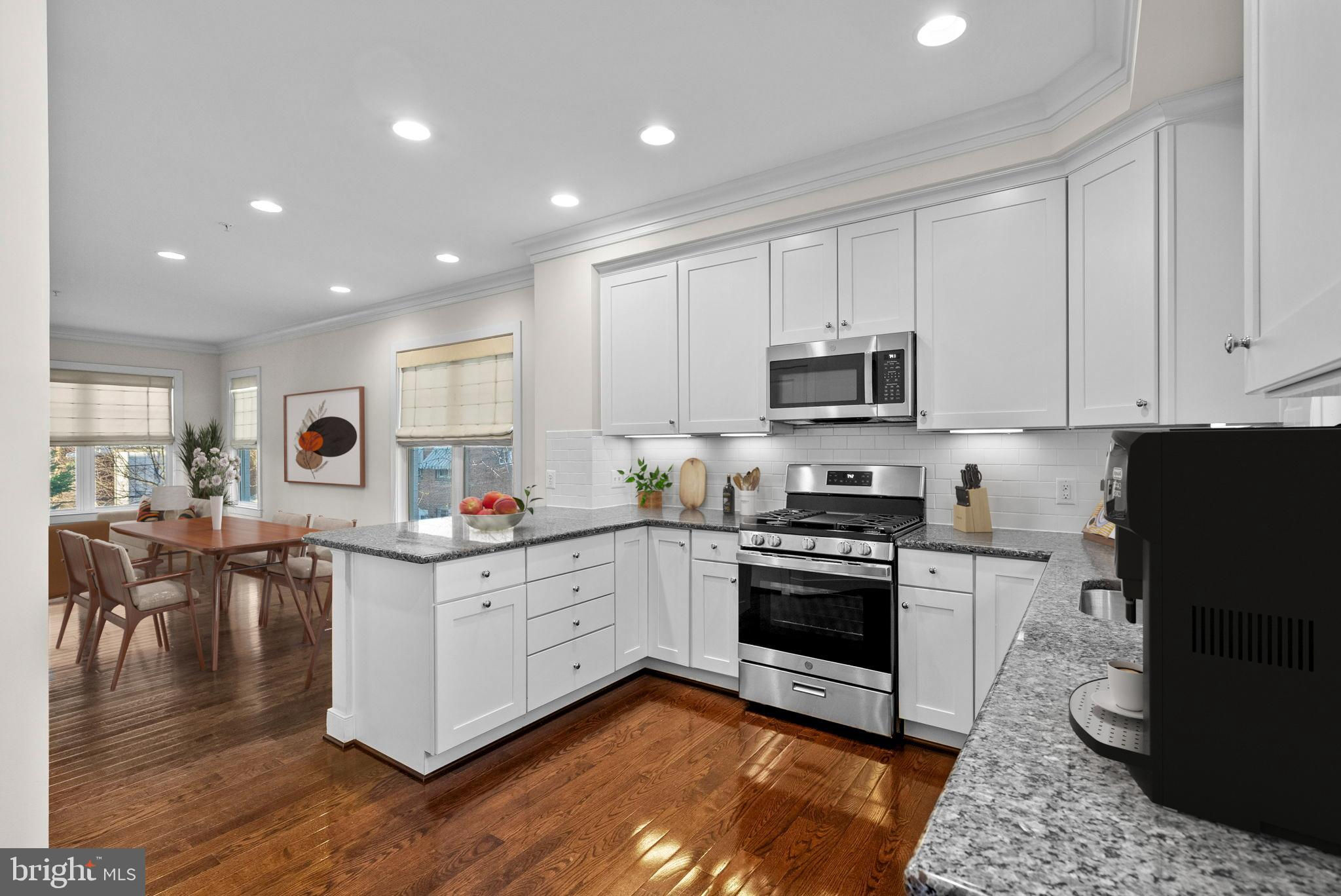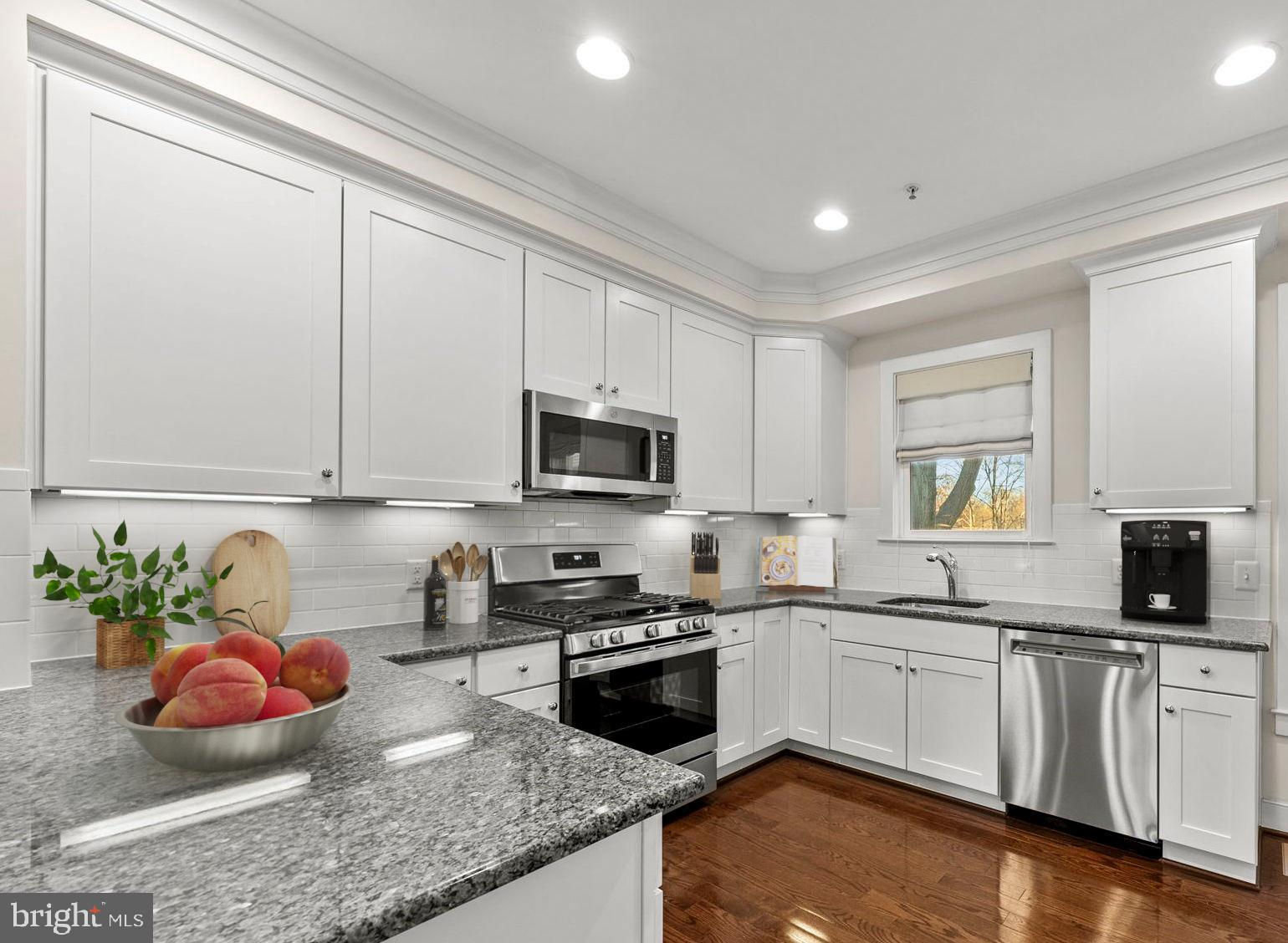 $30K Price Reduction! Don't miss this beautifully maintained end-unit townhouse tucked away in a quiet enclave in the heart of Chancellor's Row! This four-level LEED-certified townhouse features an entry-level home office/home gym and garage, open living/dining area with three exposures and expansive windows, a spacious kitchen with granite counters, and brand-new stainless steel appliances. The third level includes the primary bedroom with a large ensuite bath and walk-in closet and the second bedroom also with an ensuite bath. The top floor is the perfect recreation room with a bonus third bedroom and bath - ideal for house guests to have their floor of the house! Enjoy your morning coffee, or an evening cocktail, or grow an urban garden on the expansive rooftop deck with sweeping city views. One of the many benefits of the Chancellor's Row neighborhood is the lush community landscaping, snow removal, and trash collection are included in the monthly HOA fee. Ideally located a few blocks to Brookland Metro, Monroe Street Market, and all the eateries along 12th Street. Just announced Trader Joes under construction nearby!