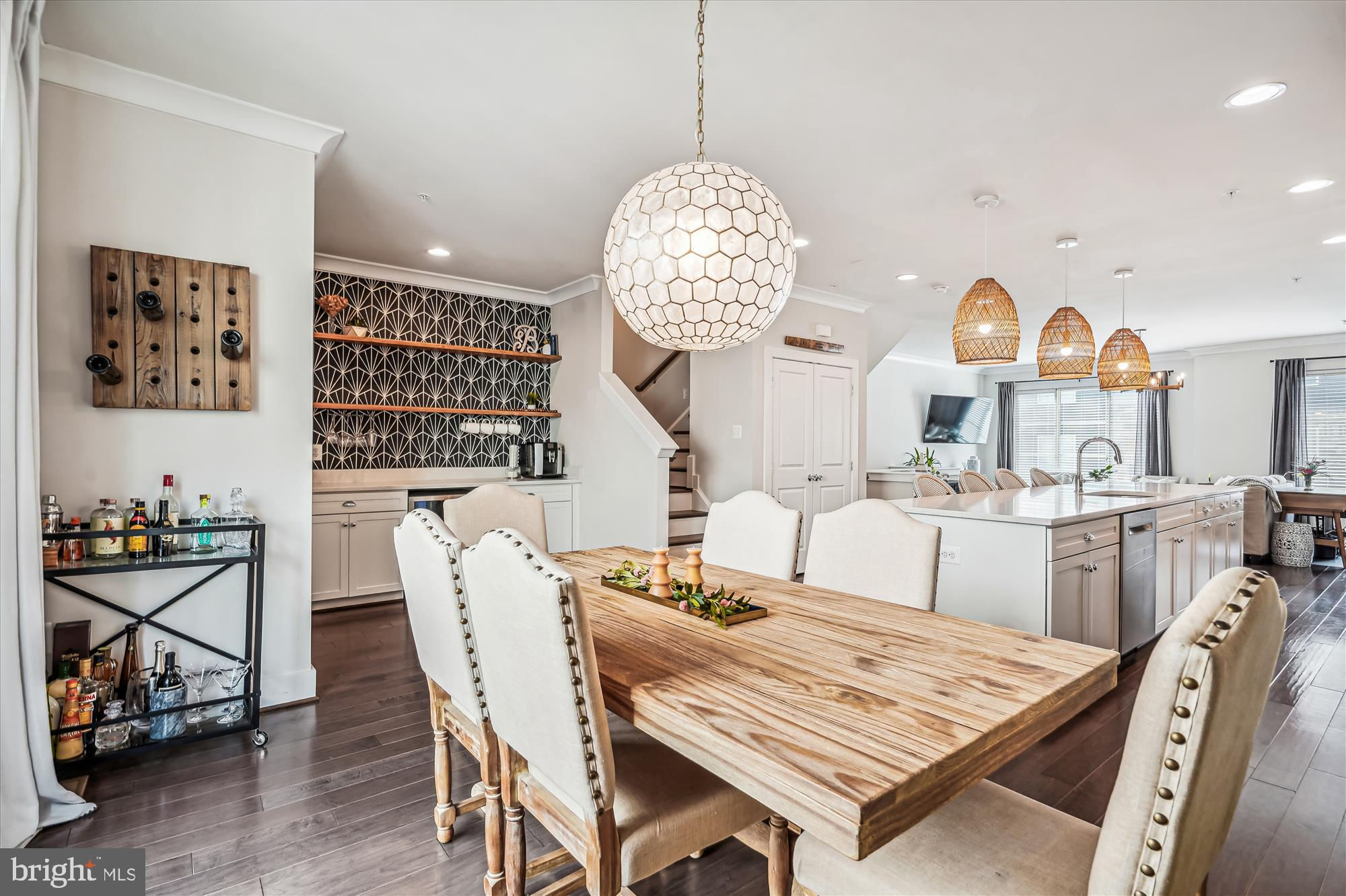 Just in time for the weekend, BEAUTIFUL PRICE ADJUSTMENT ON A BEAUTIFUL HOME! Absolutely stunning contemporary townhome with every luxurious high-end design appointment you could want! With over 2500 square feet of light-filled open spaces, this home is conveniently located in South Alexandria, a wonderful new development with new grocery store and retail, located just down the road from Huntington Metro, less than ten minutes from all the fun of Old Town, and only a short 20 minute drive to DC. This home is not only made for the conveniences and coziness needed for every day living, but it's perfect for entertaining. The high ceilings, immaculate hardwoods on every level, and more detail- oriented architectural features such as crown moldings and designer light fixtures frame an elegant scene. The gourmet kitchen is right out of the pages of a magazine with Bosch stainless steel appliances including a BRAND NEW French-door, double-drawer refrigerator, five-burner stove top, and designer hood, HUGE seating island, custom cabinets, quartz counters, decorative island pendant lighting, and a large pantry. The gracious dining room has views of the spacious deck where you can grill your perfect summer meal and enjoy it with friends while crafting your perfect cocktail at the bar or pairing it with the ideal wine from the wine refrigerator. The built-in display shelves of the butler's pantry/wine bar with bold wall covering highlights the high-end look of this entertaining space. Relax in the living room with elegant pendant chandelier or create a space for a convenient home office. If you want to get even more comfy, head downstairs to the family room and watch the big game with friends. The family room has endless possibilities to accomodate your lifestyle- home gym, telecommuter's dream office, or play room with an adjoining powder room and access to the two car garage. Three bedrooms and two full baths along with a laundry closet comprise the upper level. The primary suite with dual walk-in closets, soaring cathedral ceilings, and spectacular spa bath is the perfect place to relax after a long day. With a large soaking tub, dual quartz vanity, large marble glass shower with bench and separate toilet room, there is no more zen-like space to start and end your days. The remaining two bedrooms each with large closets, share a beautiful hall bath with quartz vanity and custom tile shower/tub. Want the ultimate outdoor space with incredible views to enjoy a quiet Sunday morning coffee or host the ultimate summer dinner parties? Then this roof top deck is where you need to be! This coveted private outdoor space has enough room for a small garden, cozy firepit, or to dine alfresco with 20 of your closest friends and family. This home is so elegant, open, light and airy - it's truly the ideal contemporary home with all the warmth and style you could ever dream possible. But that's not all - a dog park for your fur-babies and a playground with the coolest climbing apparatus you've ever seen make your shared outdoor living experience even more fun! This home is a spectacular heaven nestled just south of Old Town Alexandria, with easy access to Route 1, 495 / 295 / 395, the GW Parkway, Fort Belvoir, The Pentagon, Washington DC, the City of Alexandria, Arlington, and even the nearby Huntington Metro Station. Not to mention the ALDI grocery store just a block away! Be sure to check out the interactive floorplan under the tour / video link and then set up your in-person showing!