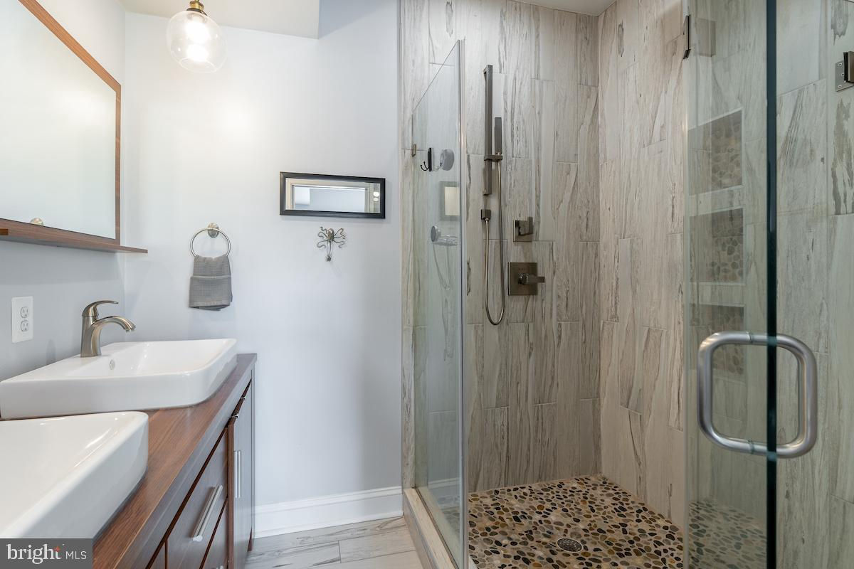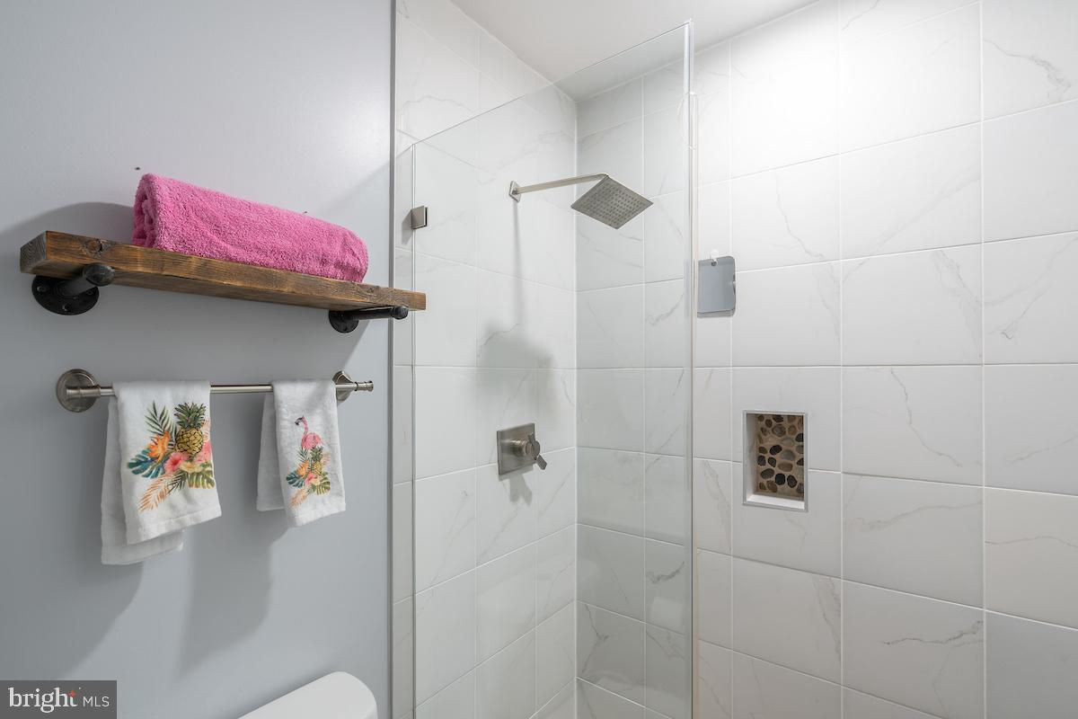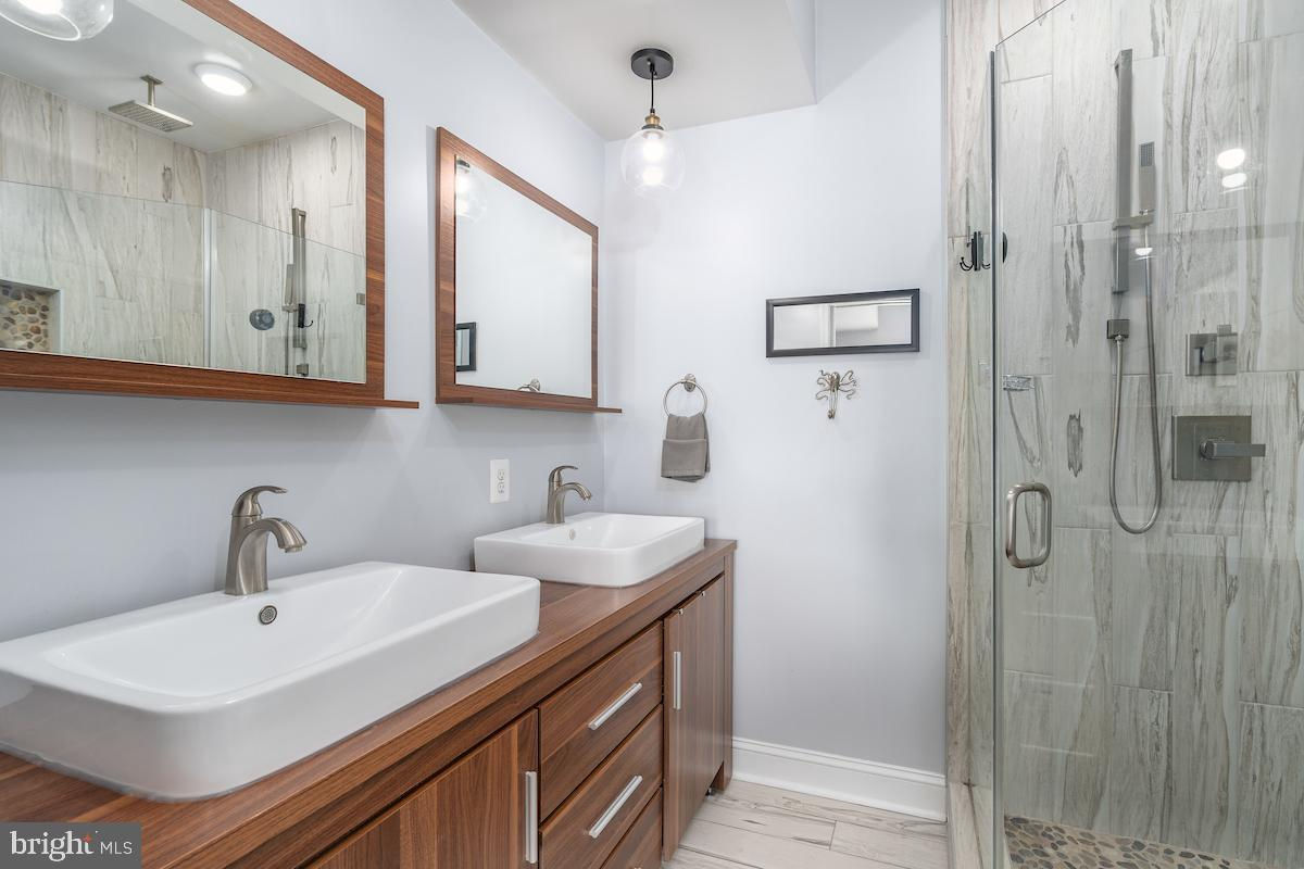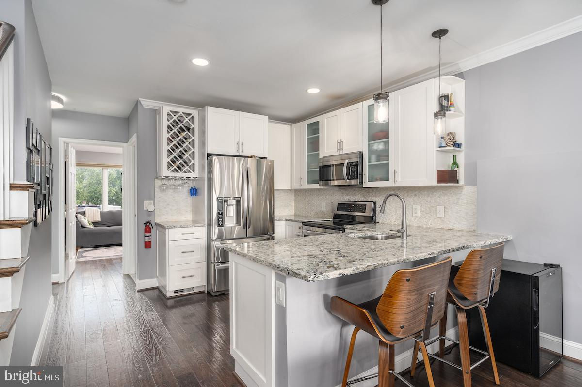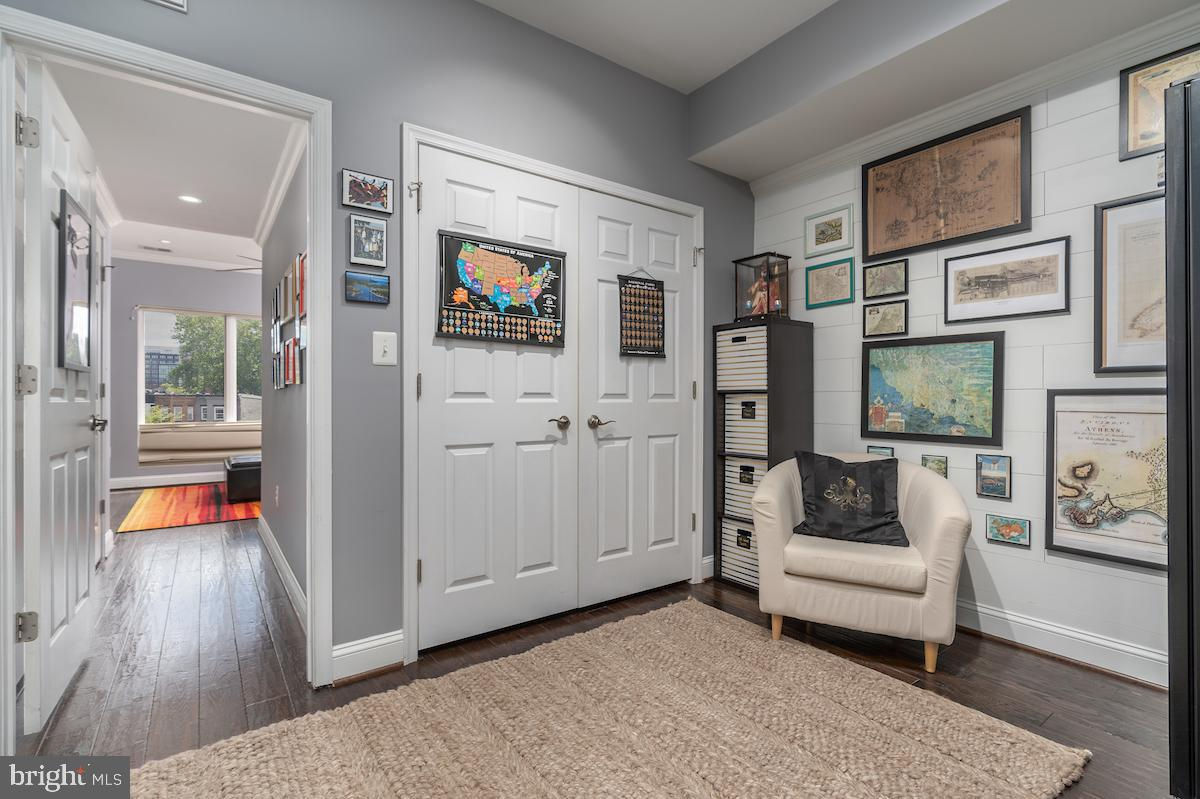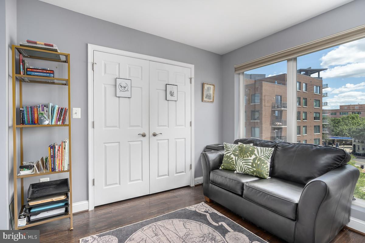 This two-level condo features three bedrooms plus a den and a private rooftop deck. The home boasts hardwood floors throughout, a kitchen equipped with LG appliances, quartz countertops, and soft-close cabinets. The primary suite includes a Juliet balcony and an en-suite bathroom with a double sink vanity and a rainfall shower. The second bedroom, located at the front, has a bay window and an adjacent full bath. The third bedroom also features a Juliet balcony and a nearby full bathroom. The den, situated between the primary suite and the second bedroom, offers a convenient workspace. The private rooftop deck provides sweeping city views. The property, renovated in 2015, is located just 10 minutes from Union Station and is within walking distance of the NOMA Metro station, Trader Joe's, and Harris Teeter.