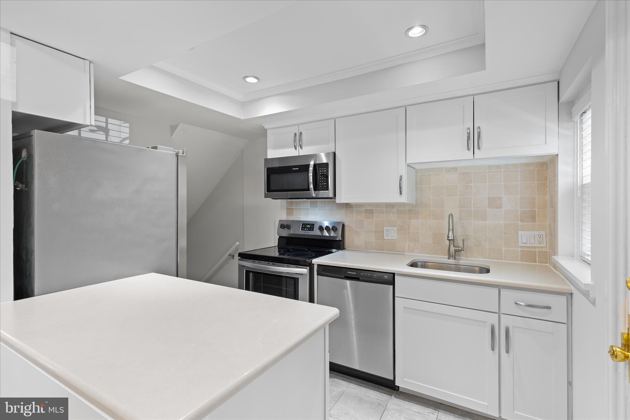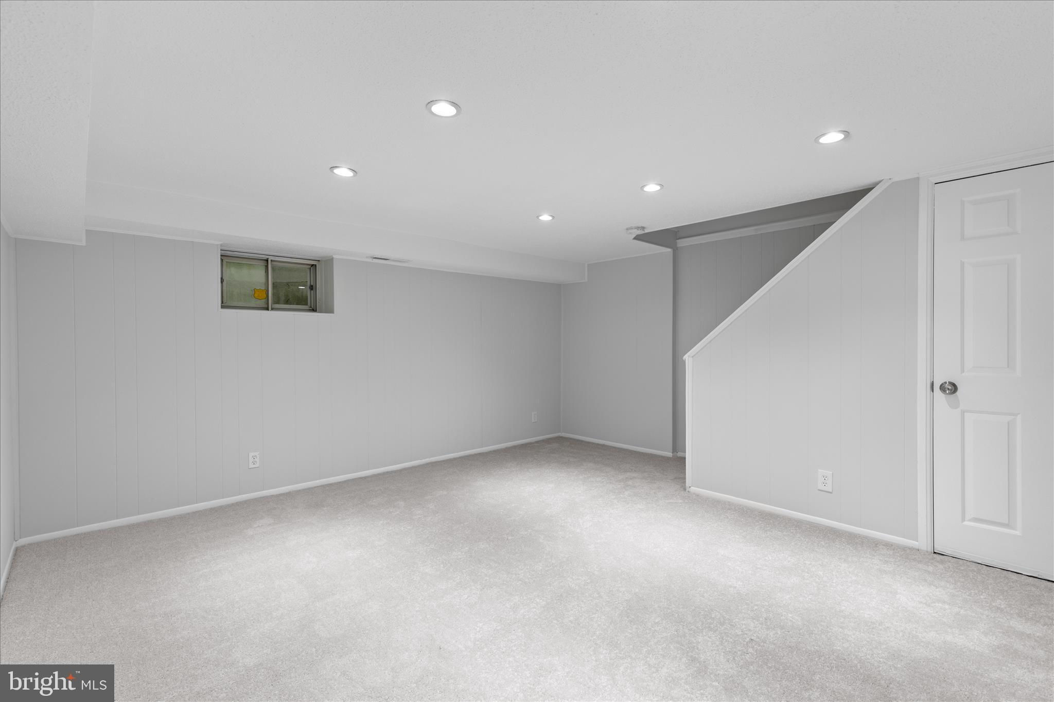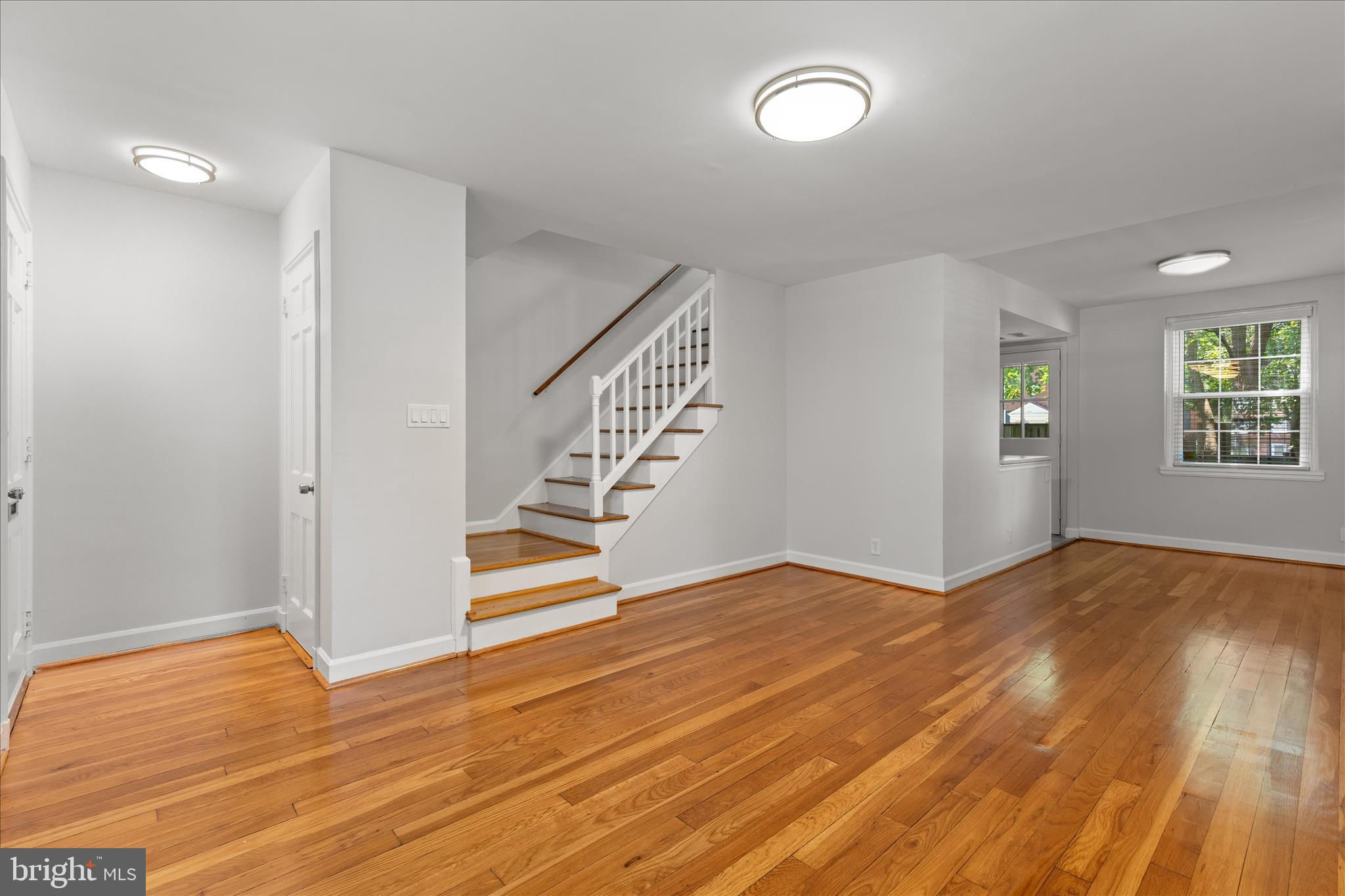 Fully renovated Clarendon II end unit 3 LEVEL TOWN HOUSE is exceptionally verdant and peaceful. It has only one neighbor, and is somewhat removed from Columbus St. The flourishing and easy maintenance garden has two substantial trees, providing shade and privacy – perfect for BBQs or cocktails. Lawns, flower beds and mature trees wrap around the two other sides of the house – in effect an extension to the private garden, and idyllic for pets to play in. The re-varnished original white oak floors on the upper two floors are shown off with plentiful light provided by this end unit’s extra windows. The finished basement has new carpet downstairs, and the walls and ceilings of the entire house are newly re-painted and has full size washer /dryer. The kitchen has been entirely renovated recently, with newer updated Frigidaire stainless steel appliances, practical newer quartz countertops, and newer cabinets. Most of the old kitchen wall has been removed, a countertop now linking kitchen and dining room. The large basement room is ideal for a recreation/entertainment space, a third bedroom, or home gym. The smaller downstairs room offers the option of a guest room or office. The esthetically pleasing gable roof provides huge storage space in the attic, without the flooding risk of flat roofs. There is plentiful parking both at the back (resident-only) and front of the house. Full access to Fairlington Village amenities, with the nearest swimming pool (50 yards) and tennis courts (30 yards) only a few steps away. The HOA is also responsible for the roof and all exterior elements of the house. Fairlington is a dog owner’s paradise, with plentiful parks (including nearby Shirlington dog park), even a doggy swimming day in the pools.. It is also extremely cyclist-friendly, with access to DC (via Crystal City), almost entirely via Four-Mile Run and the Mt. Vernon trails. Fairlington also features excellent public transportation access, with frequent WMATA buses that connect to the Pentagon metro station, and nearby Arlington ART and Alexandria DASH bus lines. Visit soon, before this unique unit is snapped up.