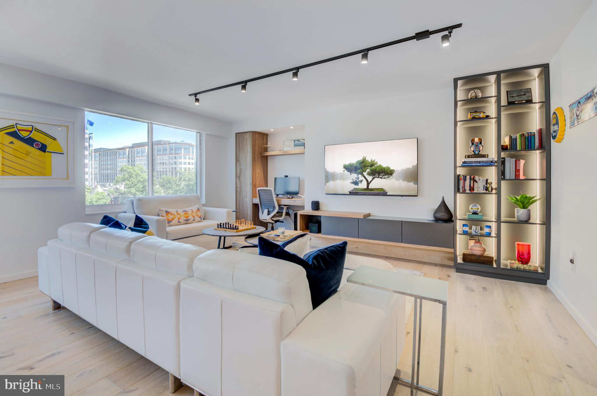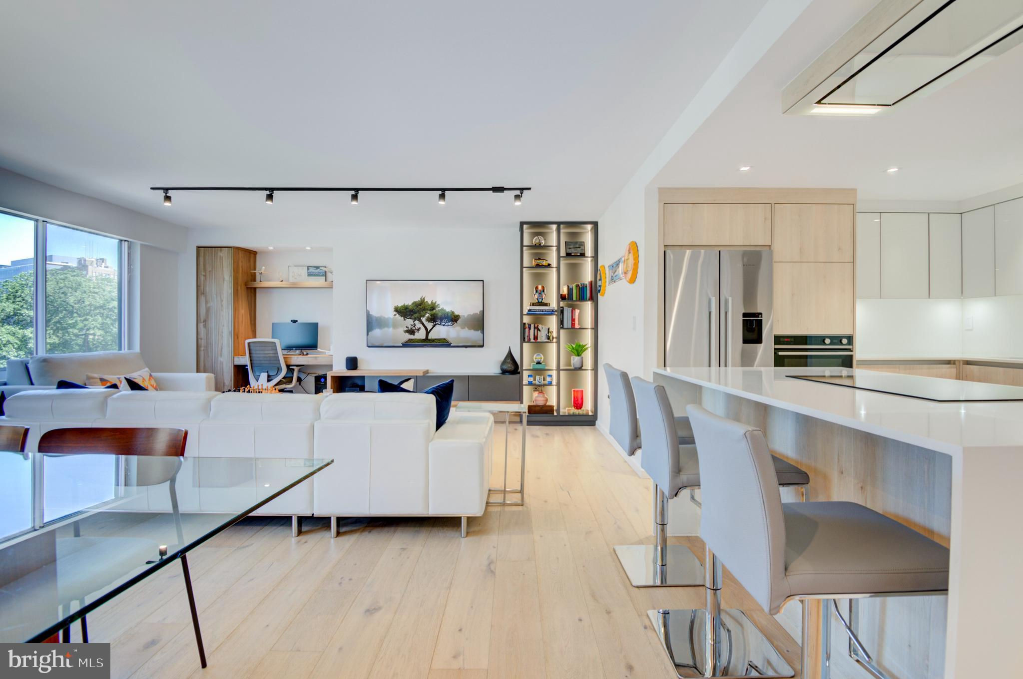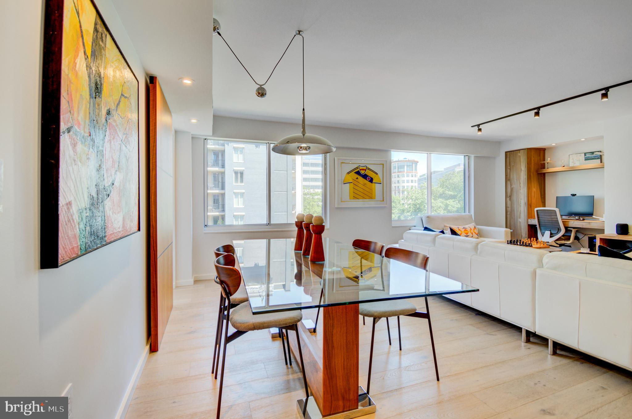 Fully renovated high-end condo in coveted West End location, no expense spared and no detail overlooked—truly unique! This spacious and bright unit combines the best of both worlds with a brand new interior in a historic building, situated right off Washington Circle. The stunning condo features European white oak flooring, spa-like baths, a contemporary kitchen, custom lighting, remote-control window coverings, a built-in entertainment center and workspace, and a custom walk-in closet. The top-to-bottom renovation includes new HVAC and windows! The pet-friendly building offers a community courtyard, and a large storage unit is included. Conveniently located near Georgetown and George Washington universities and hospitals, the World Bank, IMF, and the State Department. Equinox gym, Whole Foods, Trader Joe's, CVS, shopping, and dining options such as Imperfecto, the Saga, Yours Truly, Mercy Me, Tatte, and Bluestone Lane are within blocks. Separately deeded parking is available for purchase (see separate MLS listing).