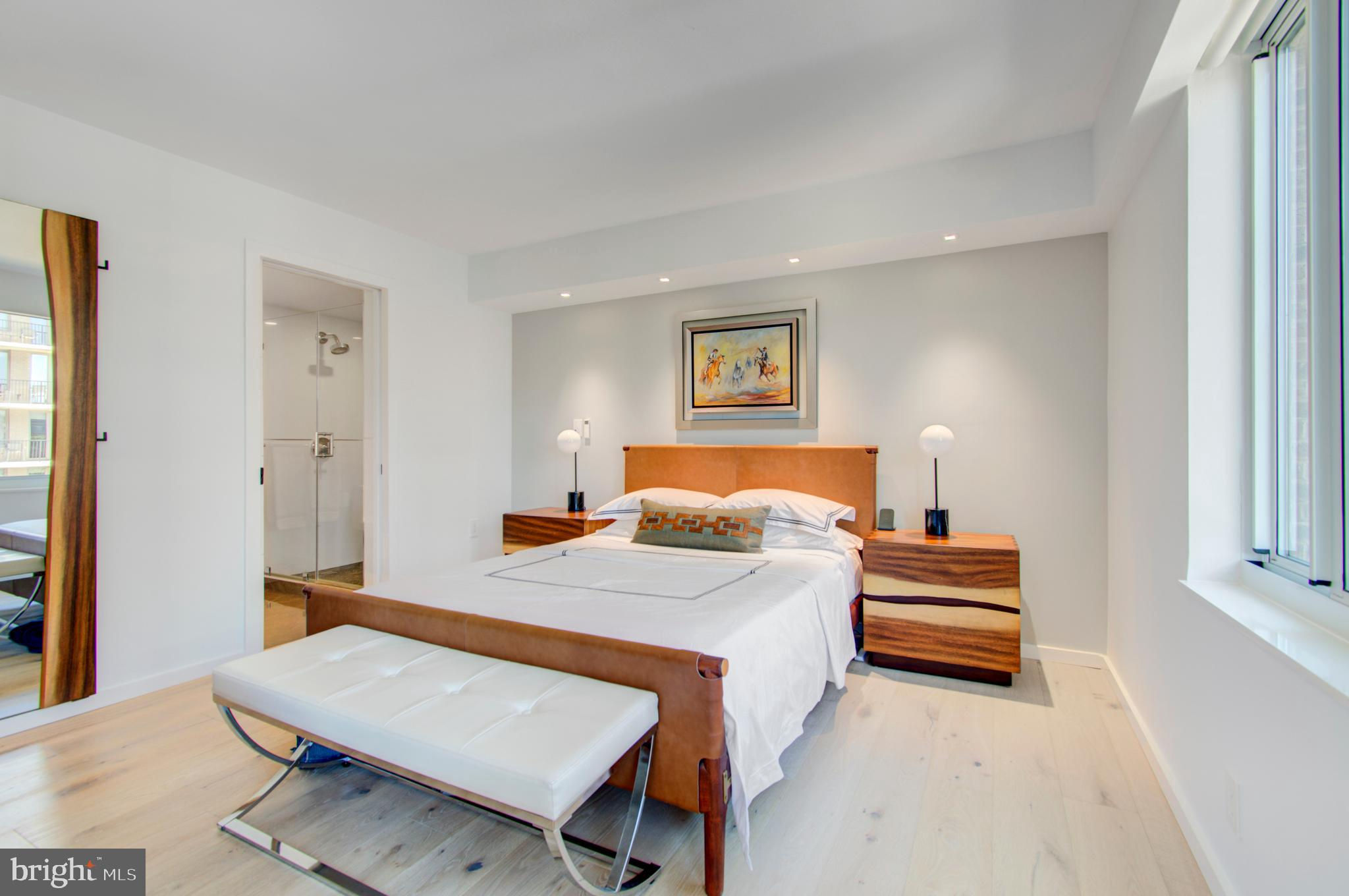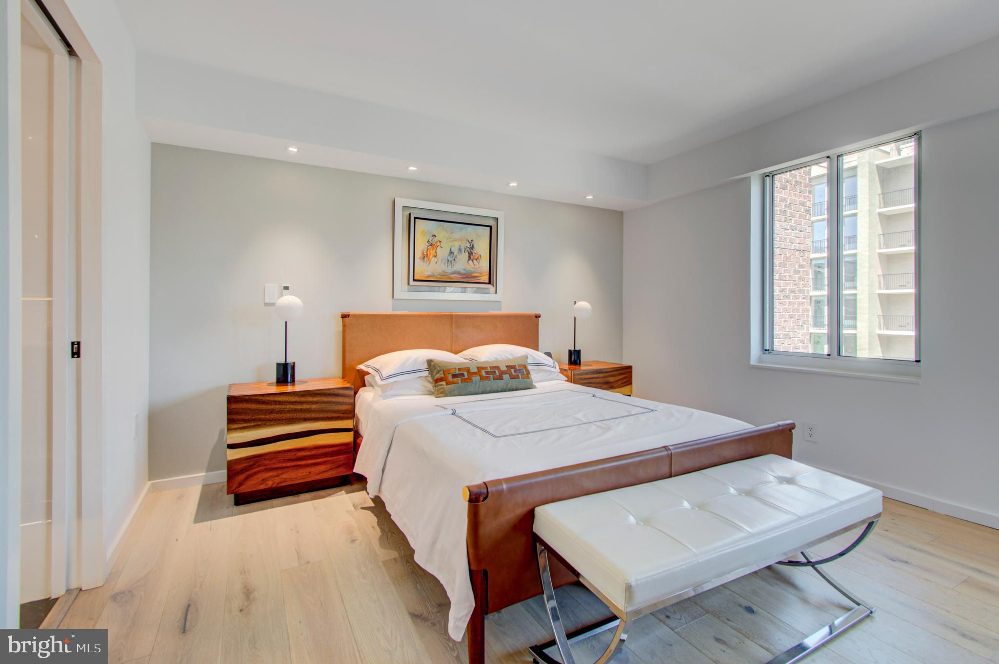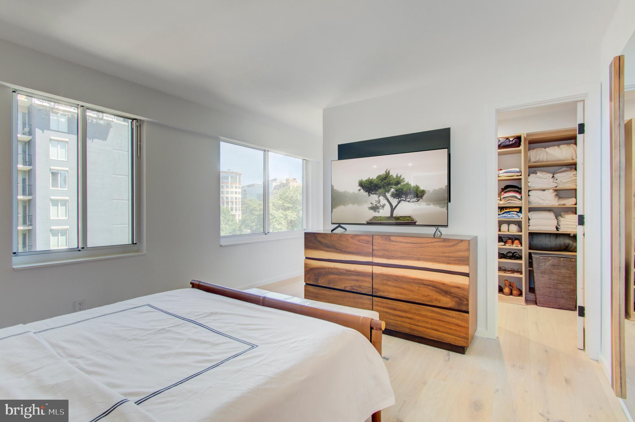 Fully renovated high-end condo in coveted West End location, no expense spared and no detail overlooked—truly unique! This spacious and bright unit combines the best of both worlds with a brand new interior in a historic building, situated right off Washington Circle. The stunning condo features European white oak flooring, spa-like baths, a contemporary kitchen, custom lighting, remote-control window coverings, a built-in entertainment center and workspace, and a custom walk-in closet. The top-to-bottom renovation includes new HVAC and windows! The pet-friendly building offers a community courtyard, and a large storage unit is included. Conveniently located near Georgetown and George Washington universities and hospitals, the World Bank, IMF, and the State Department. Equinox gym, Whole Foods, Trader Joe's, CVS, shopping, and dining options such as Imperfecto, the Saga, Yours Truly, Mercy Me, Tatte, and Bluestone Lane are within blocks. Separately deeded parking is available for purchase (see separate MLS listing).