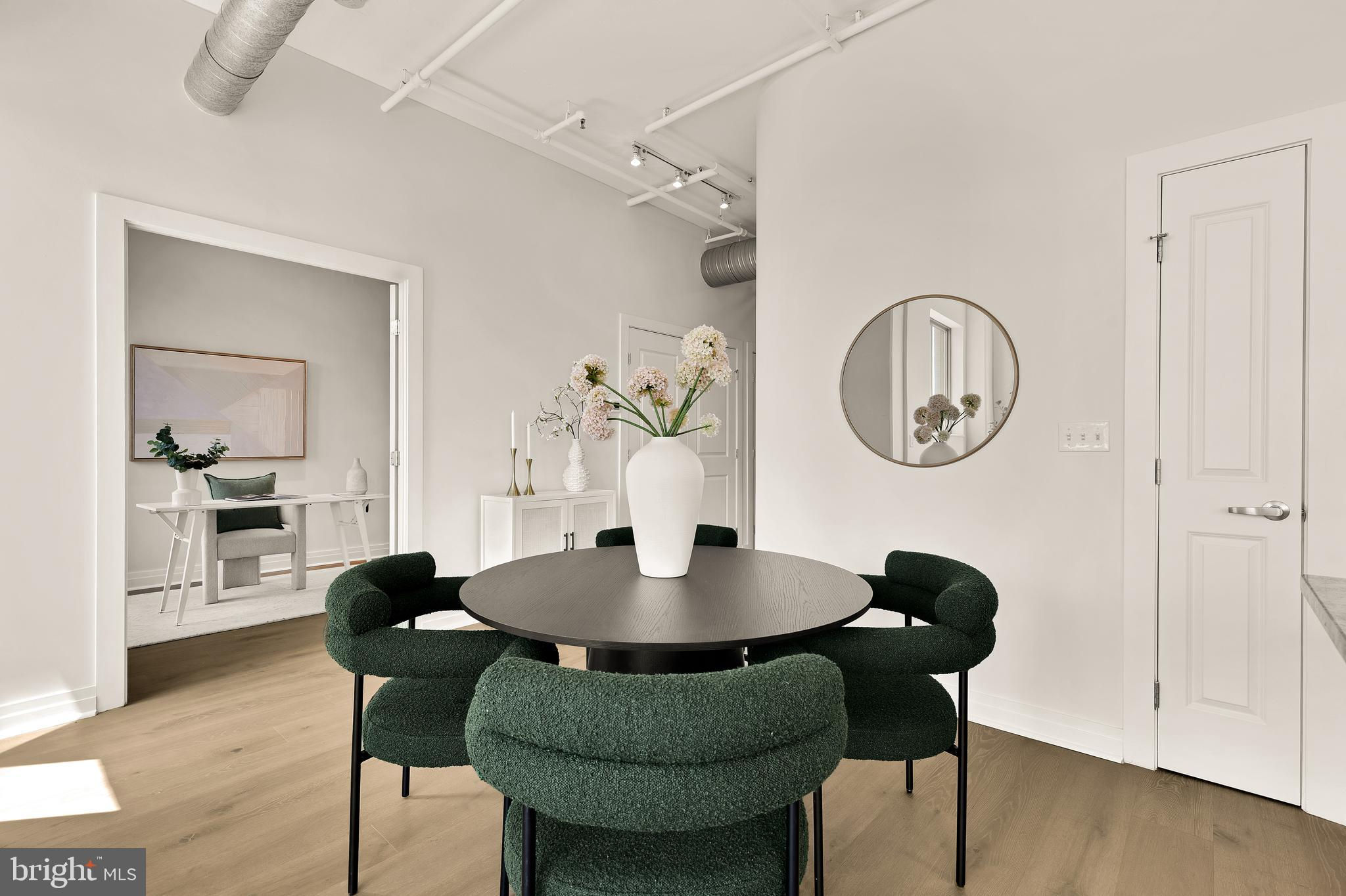 Penthouse perfection awaits at 301 Massachusetts Ave NW #1103, where high ceilings, oversized windows, and sweeping city views create a dramatic backdrop for everyday living. This 2-bedroom, 2-bath, 1-den stunner spans over 1,200 square feet of open, sun-soaked space with chic industrial touches and a smart, flowing layout. The sleek kitchen features stainless steel appliances, gas cooking, kitchen island, and built-in wine fridge, ideal for casual dining or cocktails with friends. A proper foyer, ample closet space, newer HVAC, and updated flooring round out the comforts. Set in The Sonata—a boutique, pet-friendly building with concierge service, an included garage parking space, and a rooftop deck with skyline views—this home puts you blocks from Union Station, Metro, NoMa hotspots, and Mount Vernon Square. Bold, bright, and beautifully elevated.