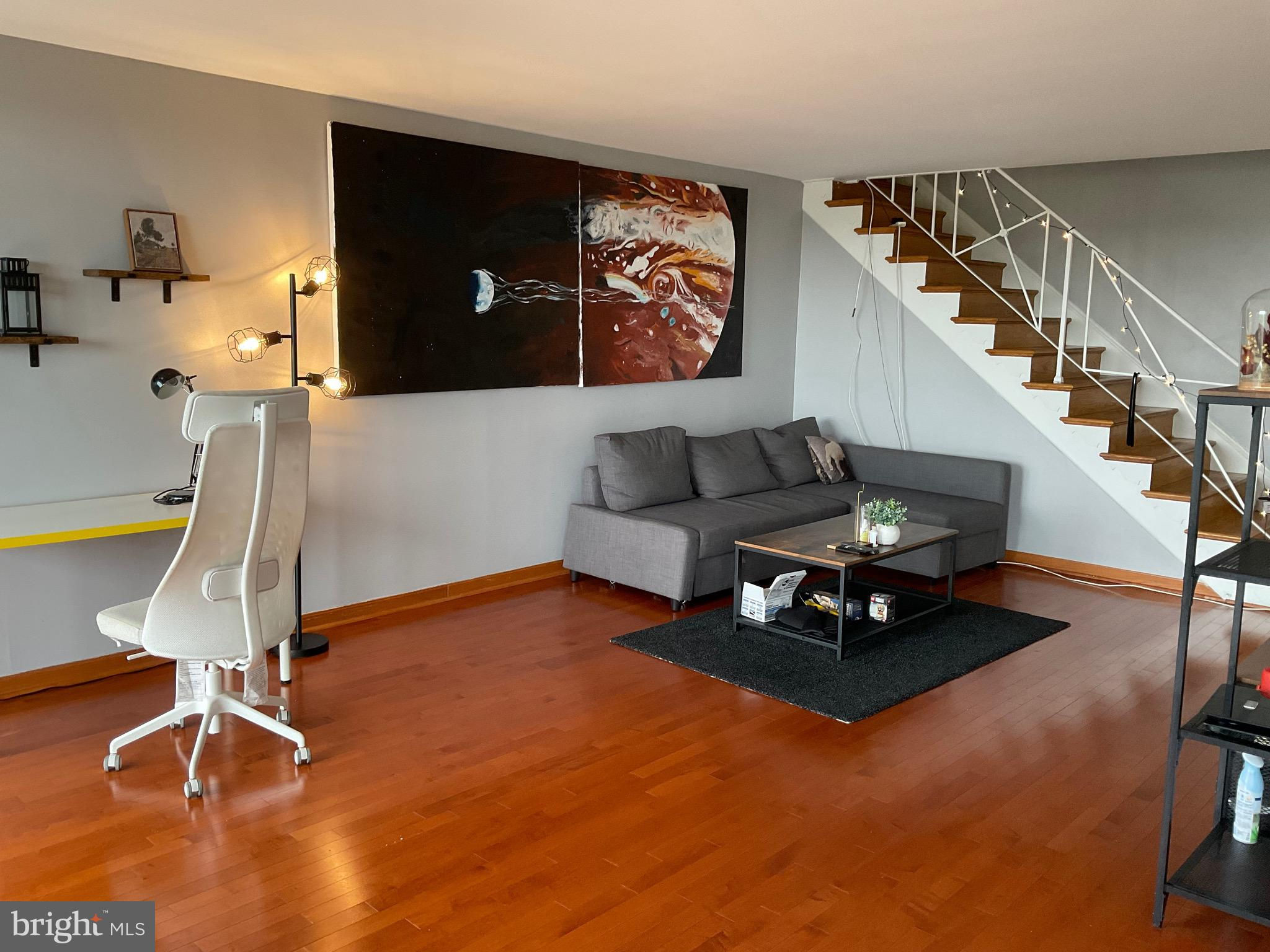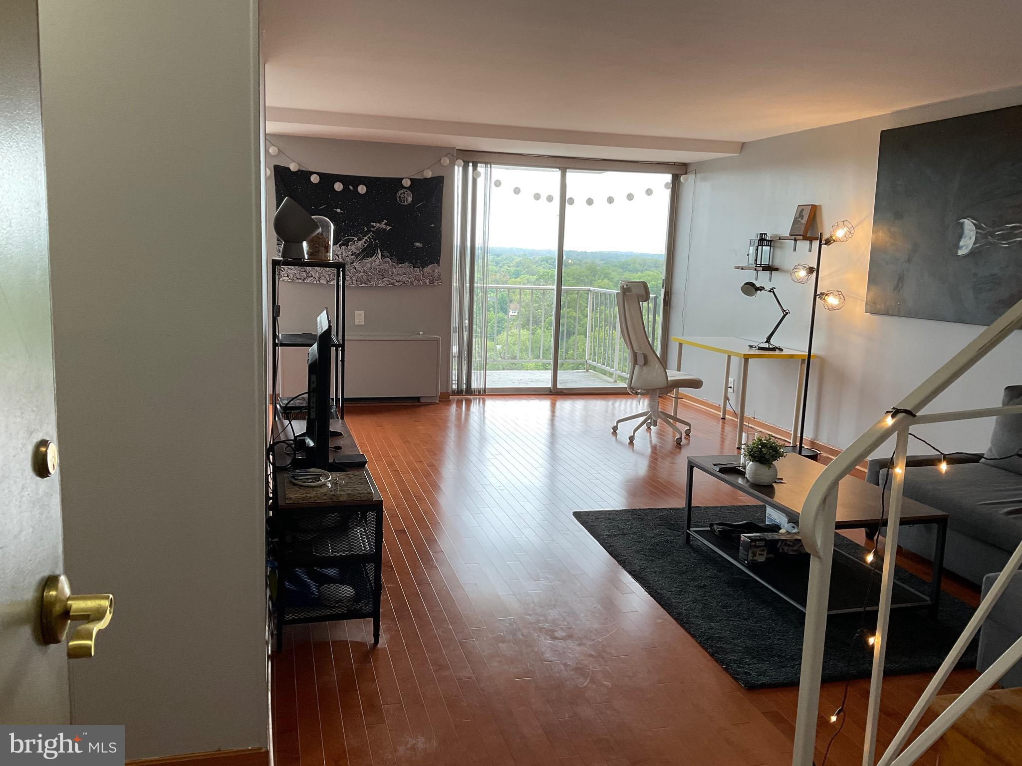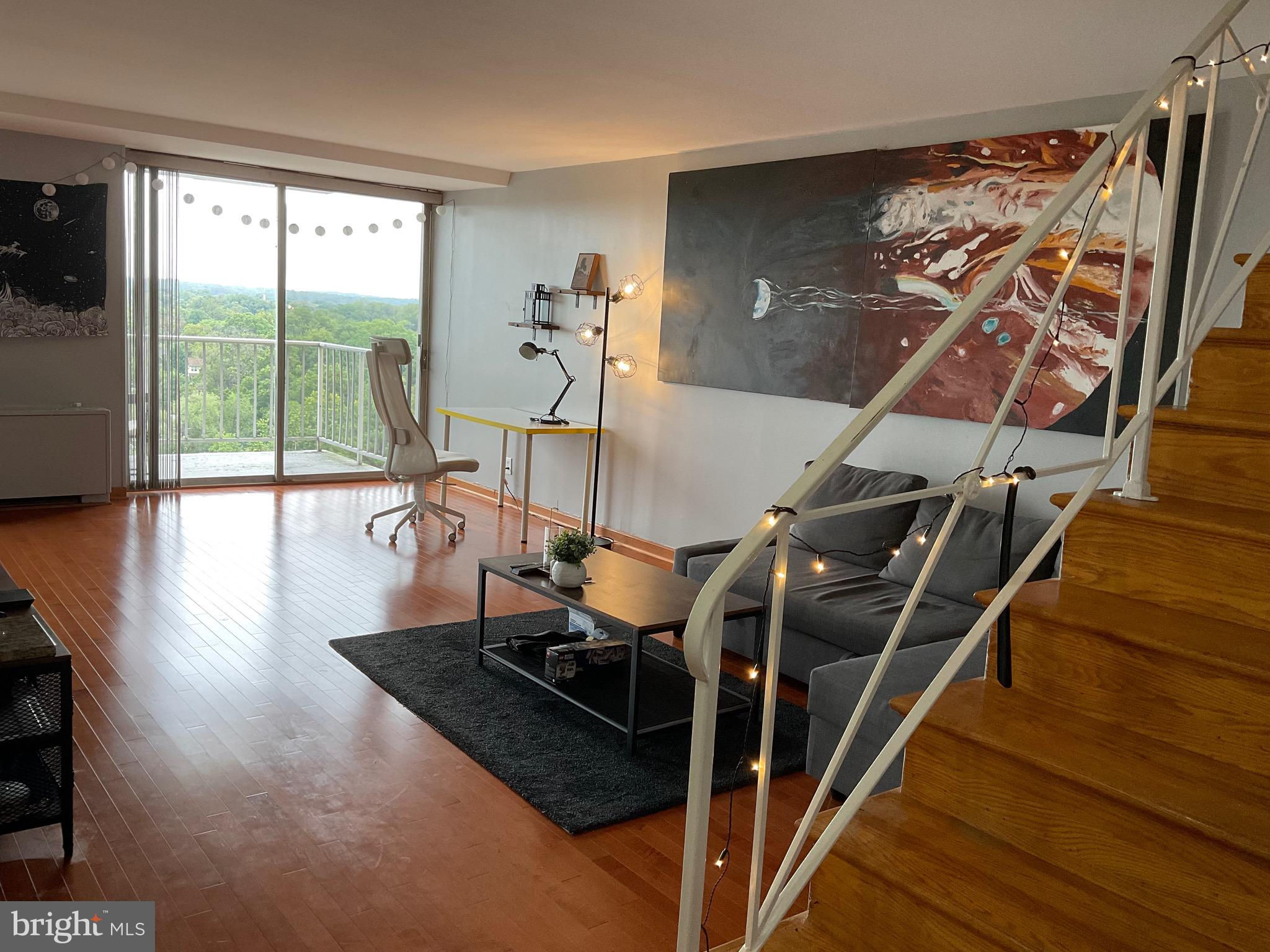 NEW PRICE—$15,000 TOTAL PRICE REDUCTION!!—Welcome to the "townhouse in the sky" residence in The Fountains! This 11th floor one bedroom condo is one of the largest boasting nearly 1,000SF within this building and is a bi-level unit showcasing living/dining/kitchen on the 11th floor with private bedroom along with a full bathroom upstairs on the 12th floor including a separate entrance accessible directly from the 12th floor for convenience. The main level on the 11th floor features hardwood flooring and an oversized balcony with breathtaking views overlooking the green space. As you go upstairs the hardwood flooring continues to the carpeted bedroom ensuite on the 12th floor . A powder room is adjacent to the kitchen area. Kitchen has been updated in the recent years featuring granite countertops and stainless steel appliance package. The Fountains is an amenity rich community featuring a 24/7 front desk concierge, outdoor pool with grilling area, fitness center, basketball and tennis courts, and much more. As a bonus this fabulous one of a kind residence includes an assigned/deeded underground garage parking space ($20,000 value!) and an assigned storage space. Condo fees include ALL UTILITIES making this an amazing value. Enjoy walking distance convenience to shopping/dining and easy access to all major routes including metro bus directly in front of building to metro station only a couple of miles away. Minutes from future Inova medical complex (former Landmark Mall). Come enjoy what the west end of Alexandria has to offer! Schedule your private tour and don't miss this opportunity! $10k grant program with special financing available through United Bank, contact listing agent for details.