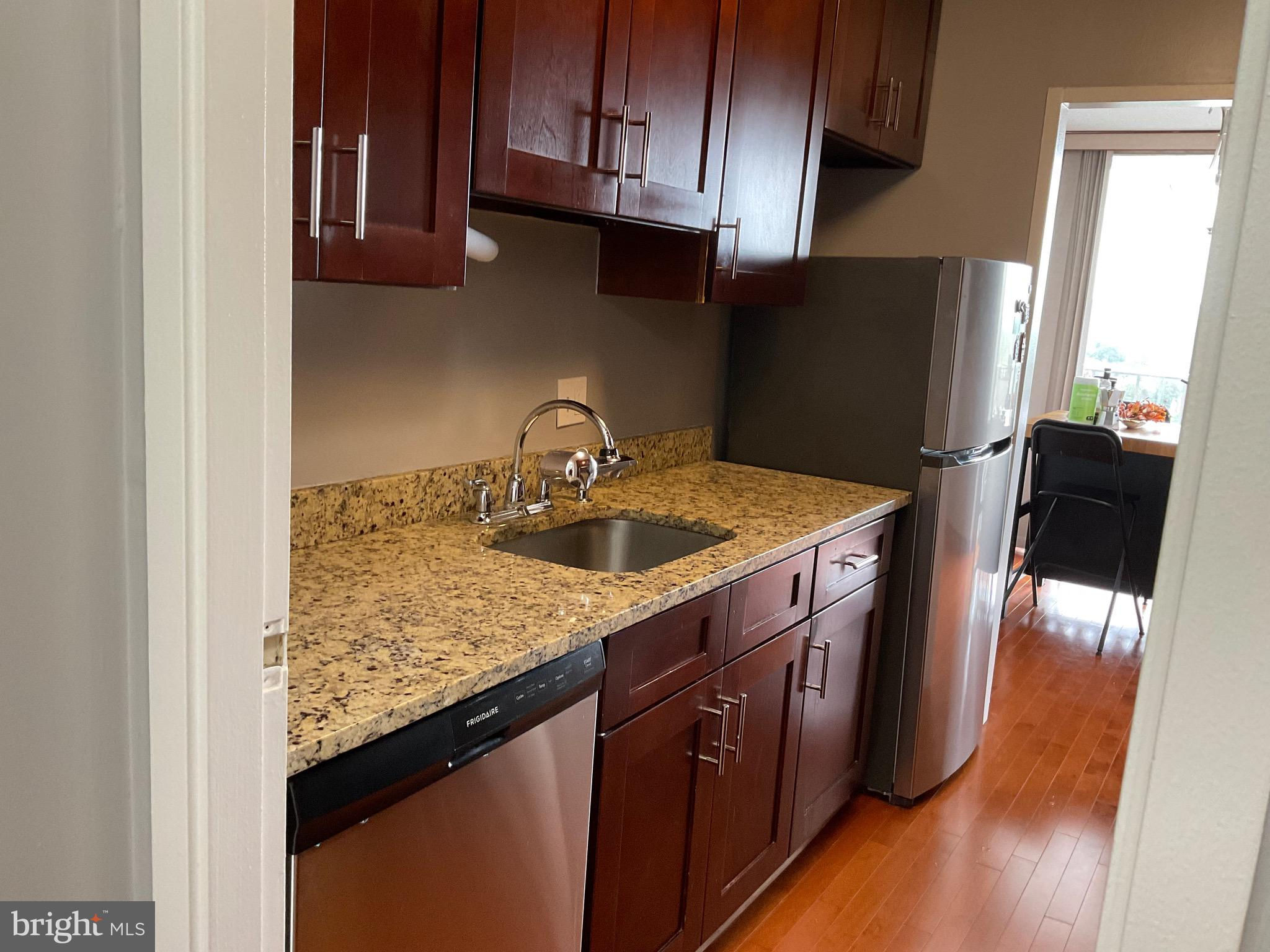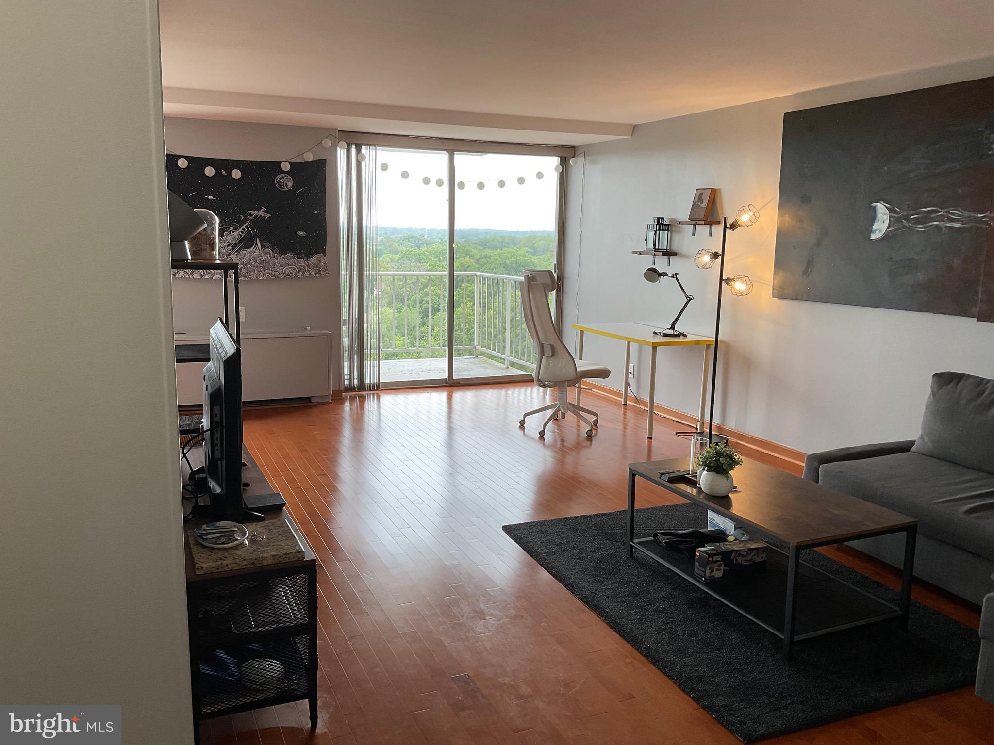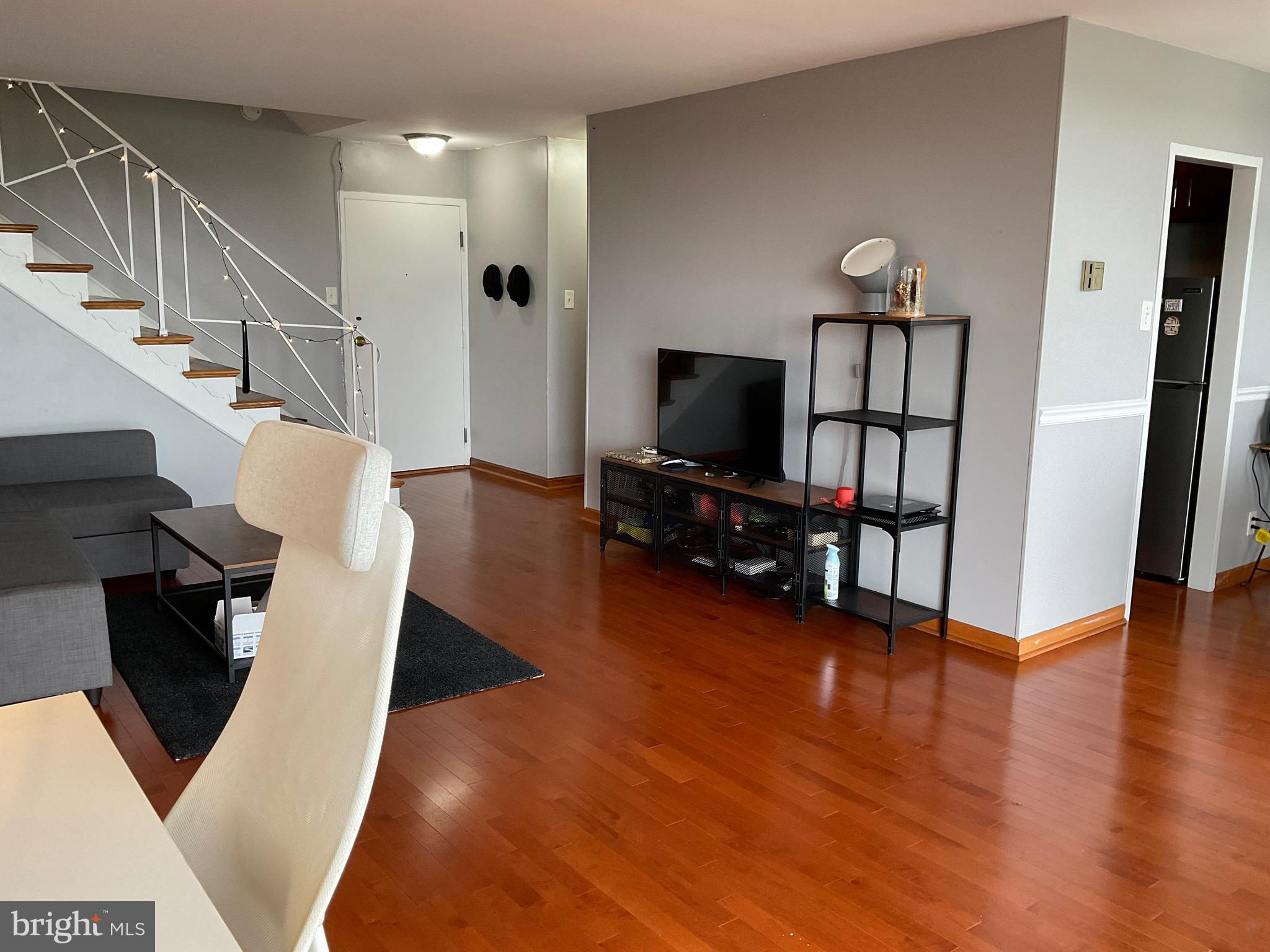 NEW PRICE—$15,000 TOTAL PRICE REDUCTION!!—Welcome to the "townhouse in the sky" residence in The Fountains! This 11th floor one bedroom condo is one of the largest boasting nearly 1,000SF within this building and is a bi-level unit showcasing living/dining/kitchen on the 11th floor with private bedroom along with a full bathroom upstairs on the 12th floor including a separate entrance accessible directly from the 12th floor for convenience. The main level on the 11th floor features hardwood flooring and an oversized balcony with breathtaking views overlooking the green space. As you go upstairs the hardwood flooring continues to the carpeted bedroom ensuite on the 12th floor . A powder room is adjacent to the kitchen area. Kitchen has been updated in the recent years featuring granite countertops and stainless steel appliance package. The Fountains is an amenity rich community featuring a 24/7 front desk concierge, outdoor pool with grilling area, fitness center, basketball and tennis courts, and much more. As a bonus this fabulous one of a kind residence includes an assigned/deeded underground garage parking space ($20,000 value!) and an assigned storage space. Condo fees include ALL UTILITIES making this an amazing value. Enjoy walking distance convenience to shopping/dining and easy access to all major routes including metro bus directly in front of building to metro station only a couple of miles away. Minutes from future Inova medical complex (former Landmark Mall). Come enjoy what the west end of Alexandria has to offer! Schedule your private tour and don't miss this opportunity! $10k grant program with special financing available through United Bank, contact listing agent for details.