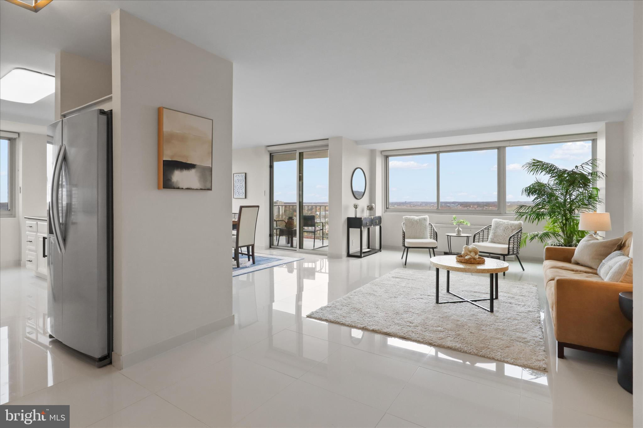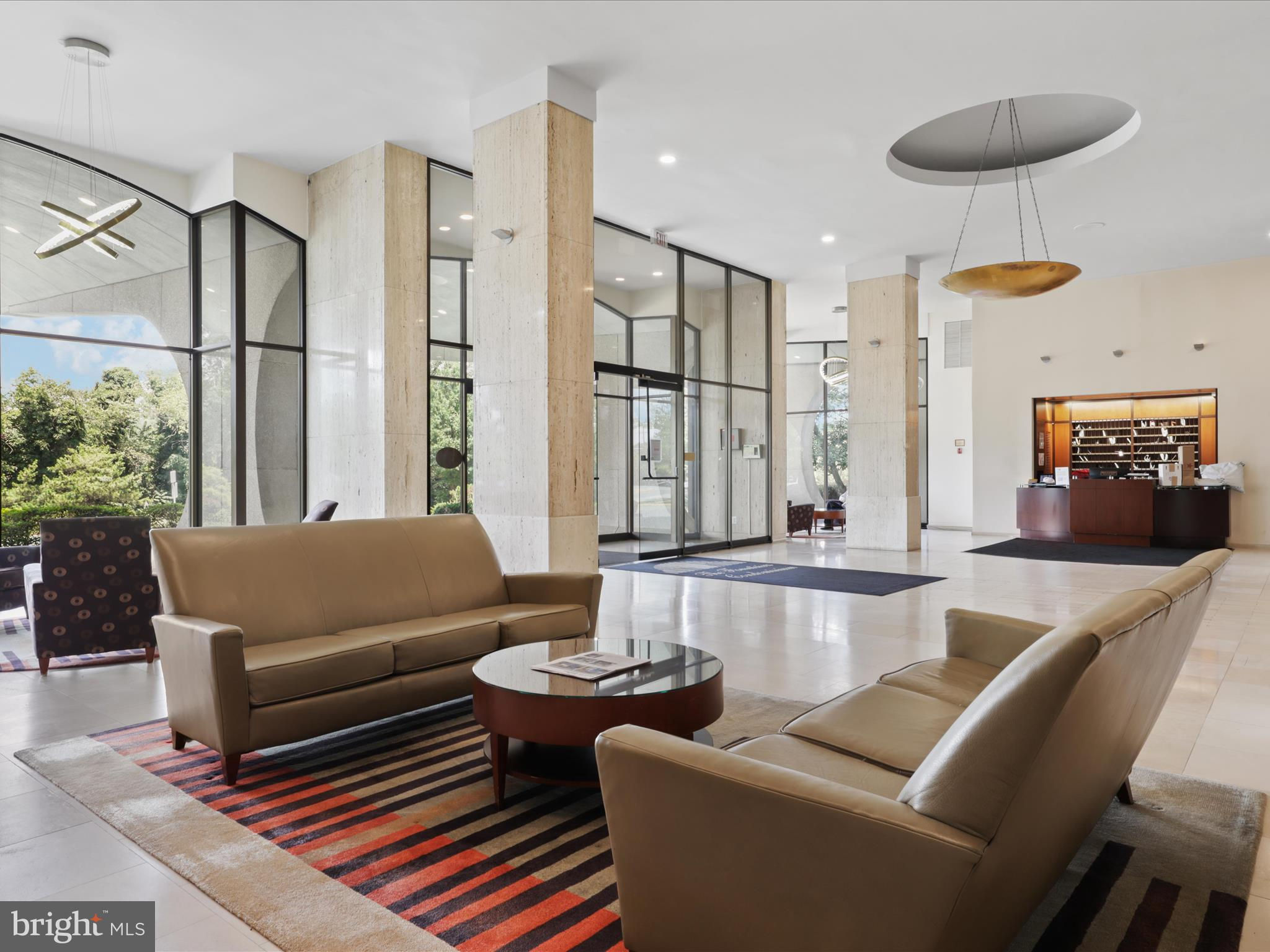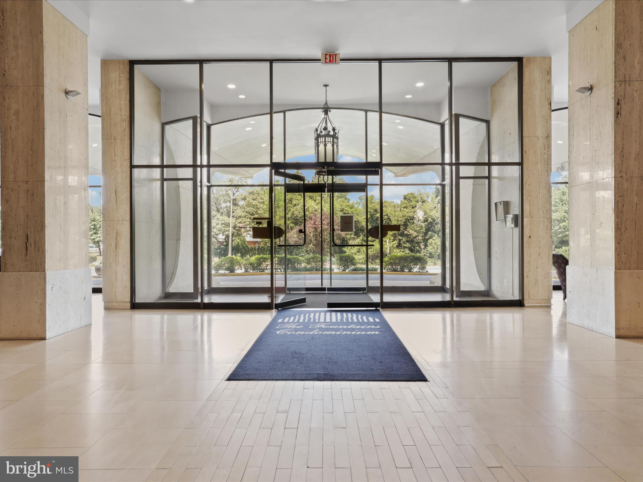 Welcome to a sophisticated urban living experience in #1605 at The Fountains in Alexandria. This exceptionally updated and stylish 1,225 sq ft condo boasts a seamless blend of modern luxury and stylish features - Easy, elegant one-level living at its finest. With 2 spacious bedrooms and 2 beautifully renovated bathrooms, this condo is designed for comfort with all of the modern conveniences. The primary ensuite bathroom and a newly renovated open kitchen exemplify elegance, complemented by newer oversized windows fitted with smart electronic silhouette blinds operated by remote control, flooding the space with natural light. The interior features exquisite marble floors and tile baseboards throughout, enhanced by recessed and stylish lighting, creating an ambiance of refined sophistication with gas cooking, wine refrigerator as well as a built-in kegerator. The updated kitchen is perfect for culinary enthusiasts, while the open-concept living area extends effortlessly to a private balcony through the newer sliding glass doors, ideal for enjoying the outdoors and serene views. Additional updates include fresh paint throughout, newer windows and balcony sliding door, plus all newer HVAC convectors for year-round comfort. Added convenience of a deeded garage parking space and an additional storage area. Residents at The Fountains enjoy a wealth of amenities, including a pool, barbecue area, common courtyard, and a fitness room. The building features an outdoor pool, indoor sauna, bike storage, party room, and tennis court for an active lifestyle. With a front desk/concierge service and secure grounds, peace of mind is ensured. With great commuting options and around the corner from the new state-of-the-art medical campus Inova Healthplex at the former Landmark Mall site you'll also discover an array of dining and shopping options all just a stone's throw away. Embrace the vibrant community and luxurious amenities that make #1605 in The Fountains an exceptional place to call home.