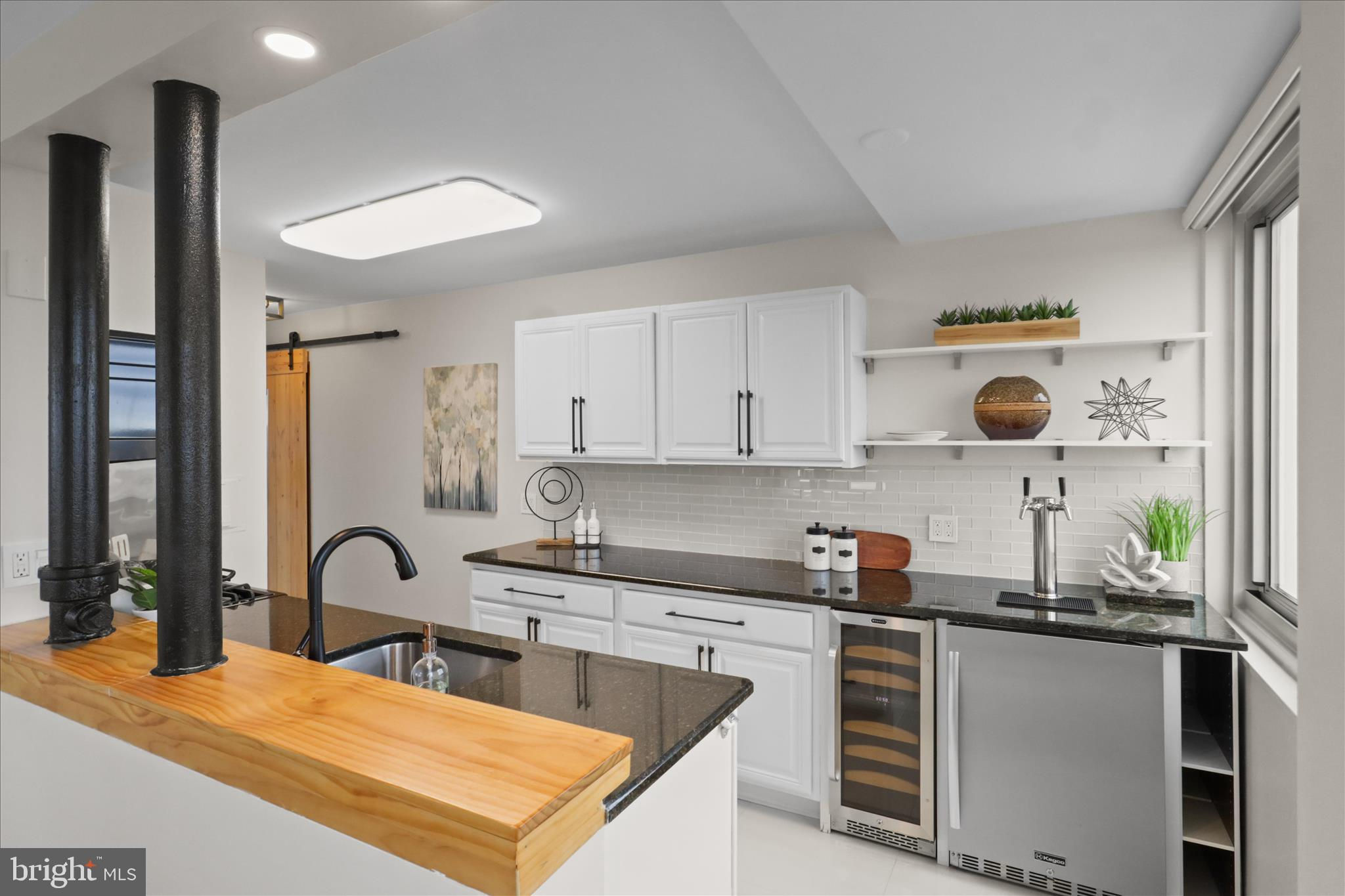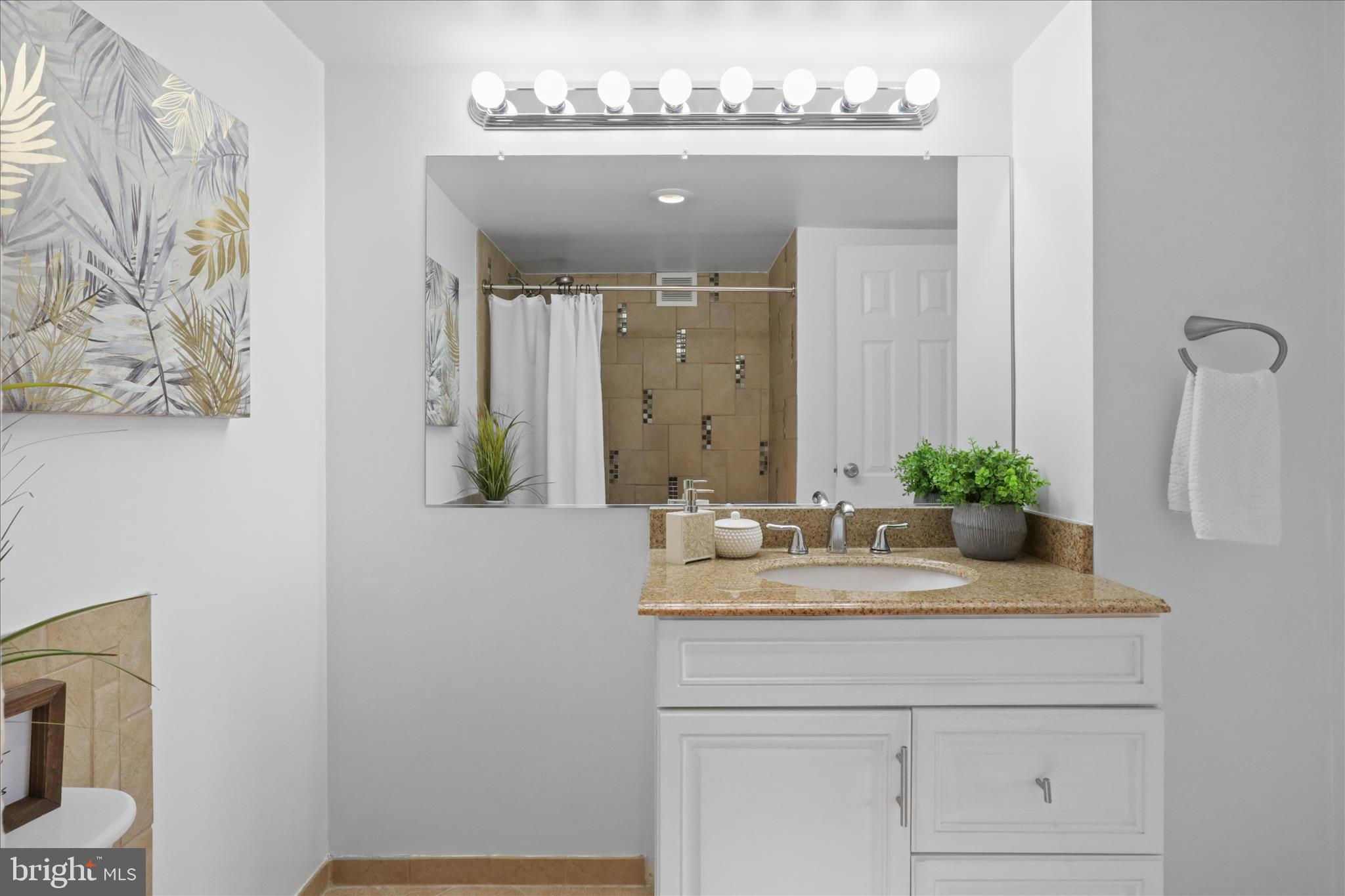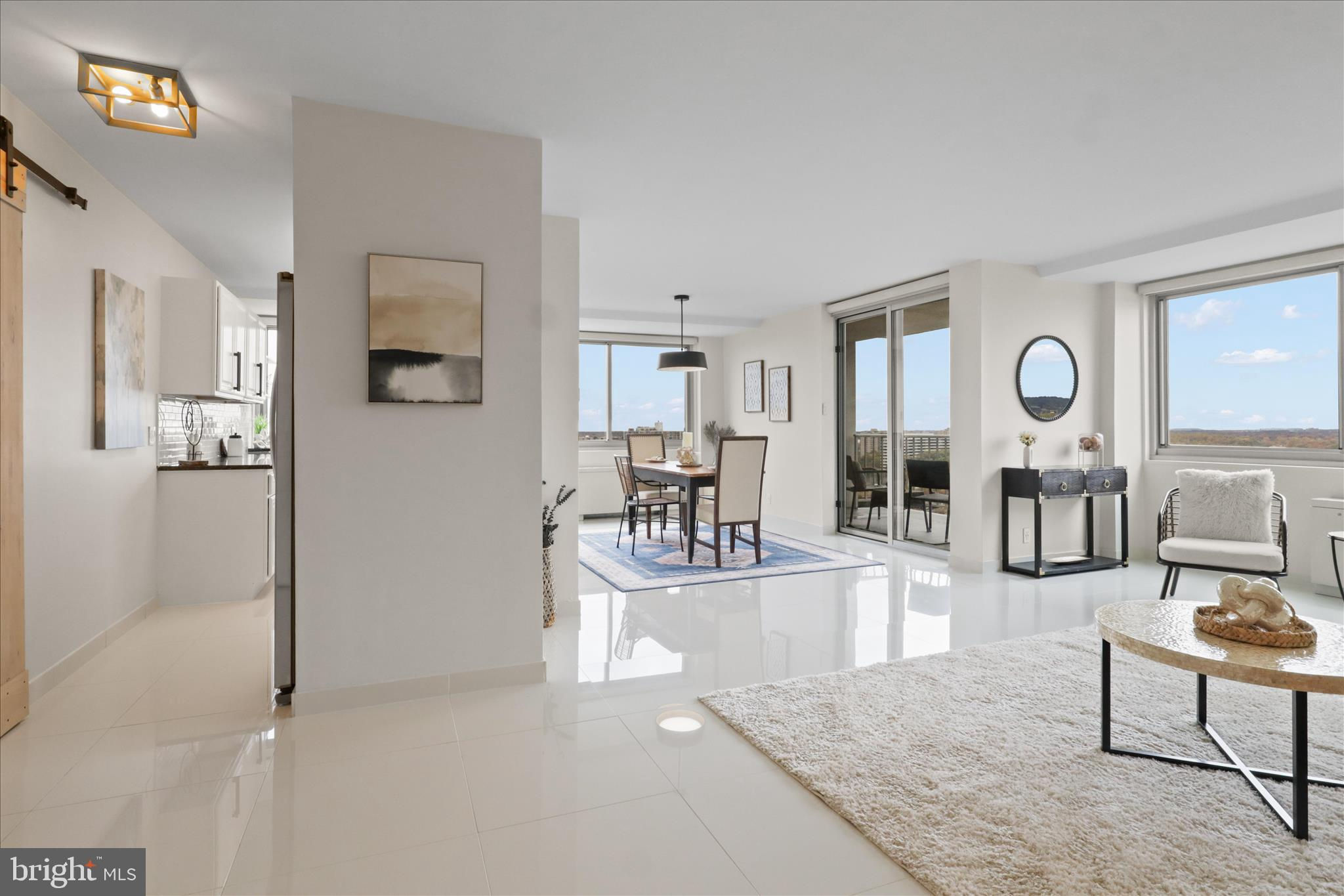 Welcome to a sophisticated urban living experience in #1605 at The Fountains in Alexandria. This exceptionally updated and stylish 1,225 sq ft condo boasts a seamless blend of modern luxury and stylish features - Easy, elegant one-level living at its finest. With 2 spacious bedrooms and 2 beautifully renovated bathrooms, this condo is designed for comfort with all of the modern conveniences. The primary ensuite bathroom and a newly renovated open kitchen exemplify elegance, complemented by newer oversized windows fitted with smart electronic silhouette blinds operated by remote control, flooding the space with natural light. The interior features exquisite marble floors and tile baseboards throughout, enhanced by recessed and stylish lighting, creating an ambiance of refined sophistication with gas cooking, wine refrigerator as well as a built-in kegerator. The updated kitchen is perfect for culinary enthusiasts, while the open-concept living area extends effortlessly to a private balcony through the newer sliding glass doors, ideal for enjoying the outdoors and serene views. Additional updates include fresh paint throughout, newer windows and balcony sliding door, plus all newer HVAC convectors for year-round comfort. Added convenience of a deeded garage parking space and an additional storage area. Residents at The Fountains enjoy a wealth of amenities, including a pool, barbecue area, common courtyard, and a fitness room. The building features an outdoor pool, indoor sauna, bike storage, party room, and tennis court for an active lifestyle. With a front desk/concierge service and secure grounds, peace of mind is ensured. With great commuting options and around the corner from the new state-of-the-art medical campus Inova Healthplex at the former Landmark Mall site you'll also discover an array of dining and shopping options all just a stone's throw away. Embrace the vibrant community and luxurious amenities that make #1605 in The Fountains an exceptional place to call home.
