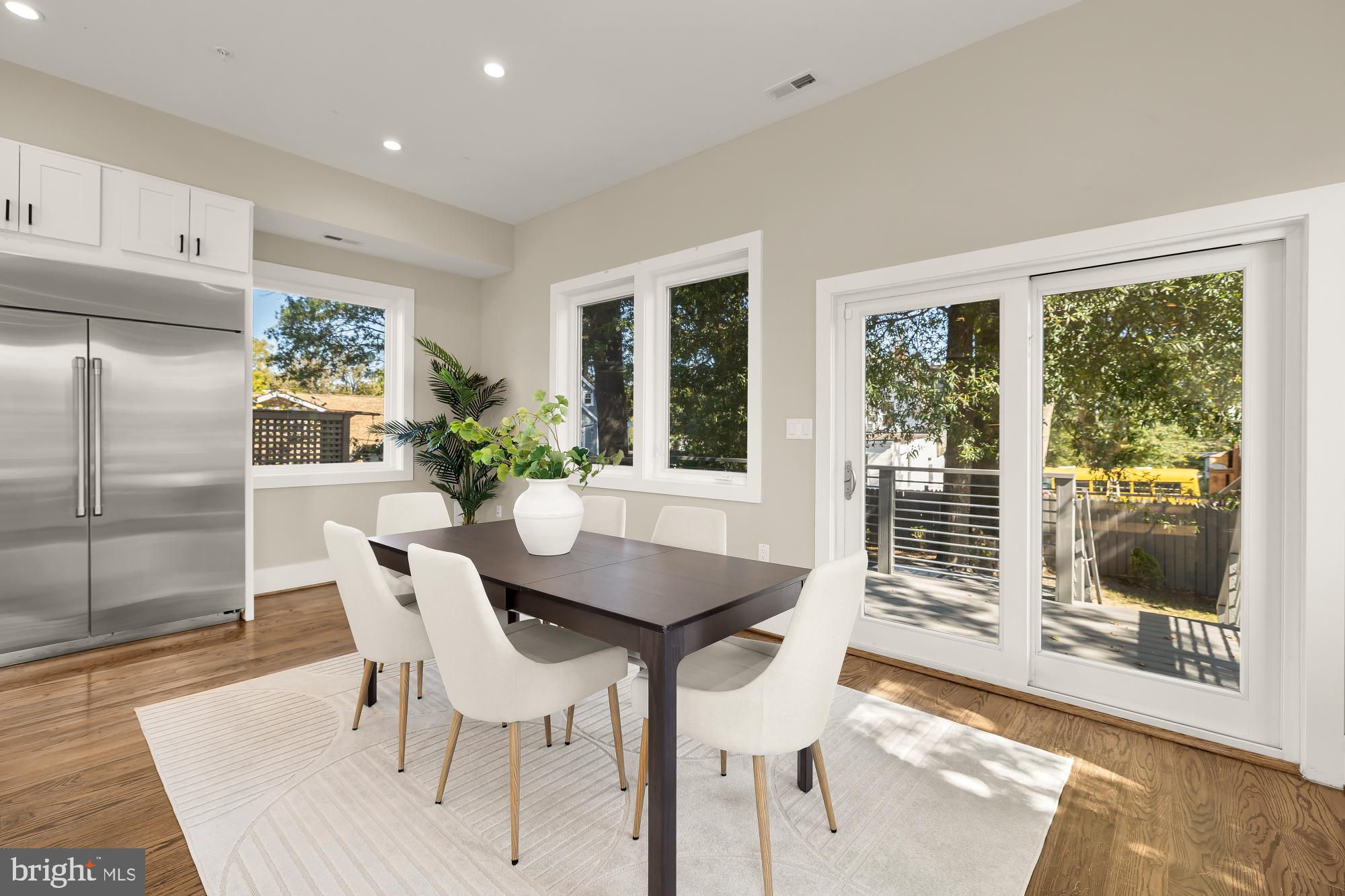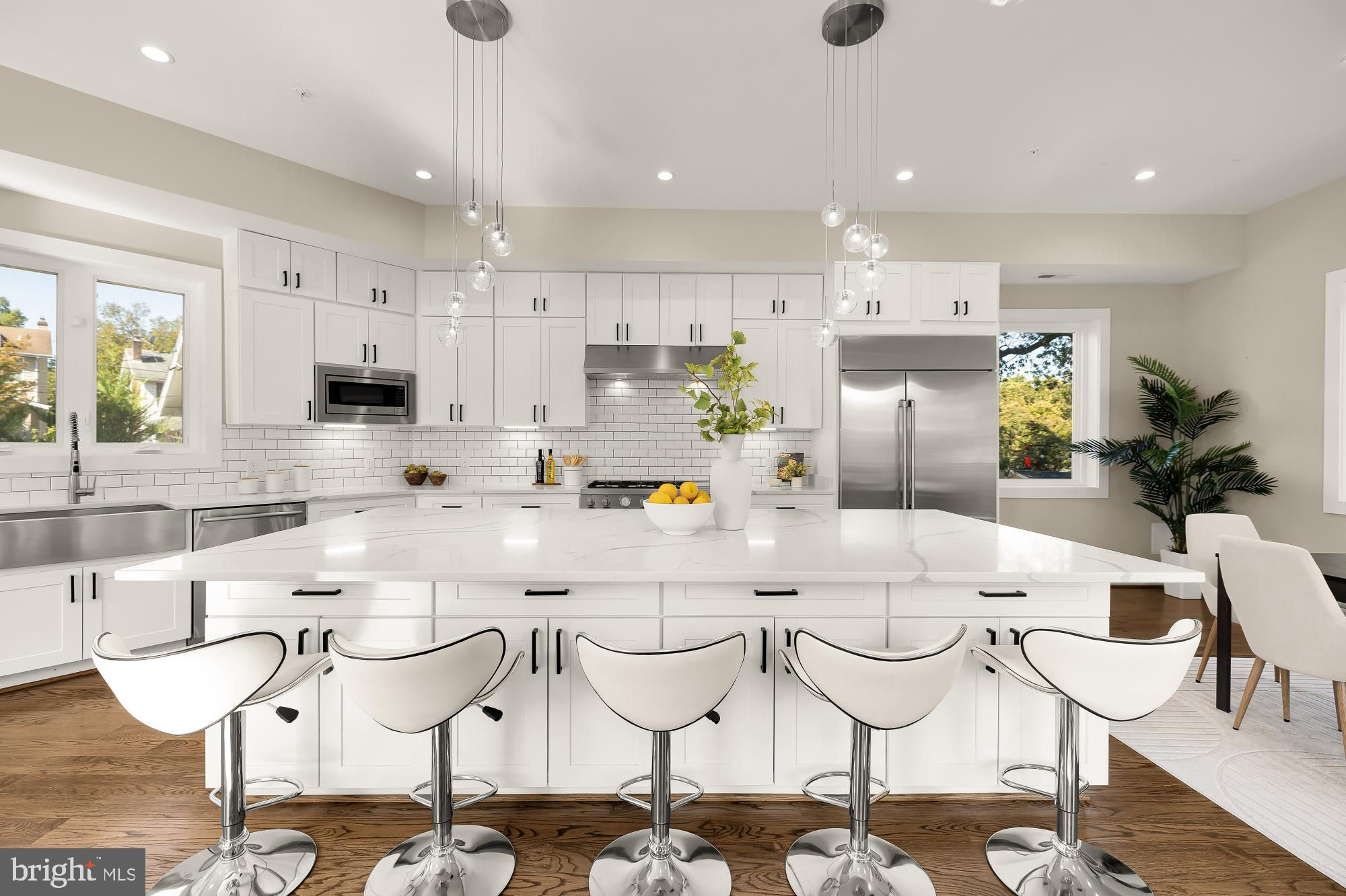 Open Saturday 12:30-2:30pm. Welcome to an exceptional living experience in this contemporary home with a thoughtfully designed floor plan. Built in 2020, this light-filled property offers modern style and functionality, boasting bright open living space, high ceilings, hardwood floors throughout, and a kitchen that is a chef's dream. The welcoming foyer opens to the oversized living room, floor to ceiling windows, leading you to the dining area, and a stunning kitchen with top of the line stainless steel appliances (professional 48in. F.Bertazzoni Italia 6 burner gas range with griddle, CAFÉ Smart Built-In Side-by-Side Refrigerator, Thermador dishwasher, wine fridge, built-in microwave), an oversized island with extra storage and seating, soft closed white shaker cabinets, premium countertops, plus a breakfast area and family room. The main level also includes a half bath for convenience. Go through the sliding doors to your deck and fully fenced private backyard, with hot tub and a patio that is perfect for a night around a fire pit or a dinner al fresco. Upstairs you'll find 4 spacious bedrooms and 3 full bathrooms, with a convenient laundry room with more storage and Electrolux W/D. The primary suite is a quiet retreat, with a walk-in closet, private balcony to sip your morning coffee or tea, and an ensuite bathroom with dual sink vanity and a large shower. The basement offers a versatile rec room which is perfect for a media room, golf simulator, home gym, or play area. It also has tons of storage, a half bathroom, den/bedroom/office, and outside entrance. There is a driveway right out front for easy parking, plus a Tesla Universal EV charger. Many smart home updates including automatic wifi/remote controlled blinds on the main level, solar panels for very low electric bills, 2 zoned HVAC systems with nest thermostats, and much more. This home is a rare find in a vibrant neighborhood with great local spots, restaurants, entertainment, groceries, farmers market, library, historical & cultural sites, and easy access to commuter routes, facilitating commutes to downtown, Union Market District, Brookland, MD and surrounding areas, plus public transportation and bus routes, & minutes to metro stations. Just a few blocks to parks, including Langdon's rec center & pool, playground, dog park, tennis courts, community garden, and the National Arboretum includes expansive gardens and walking trails for outdoor enthusiasts.
