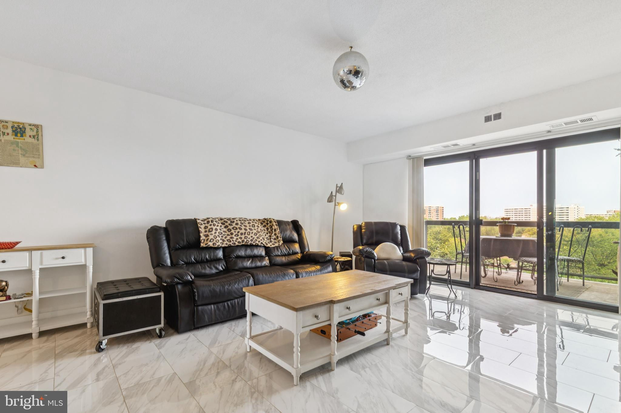 DISCOVER this charming 2 BEDROOMS 2 BATHS apartment in the very desirable WATERGATE LANDMARK COMPLEX, 5th floor unit, Building 3 of the Landmark community in Alexandria! This contemporary unit, situated in a secure high-rise building is filled with natural light thanks to its floor to ceiling windows. The spacious living area features a combined dining and living space with French doors that lead to THE SECOND BEDROOM WITH ITS FULL BATHROOM offering flexibility to use it as a home office if needed IN WHICH UNLIKE MANY APARTMENTS,THE BEDROOMS ARE SEPARATED BY THE LIVING ROOM plus with an adjacent full bath. The master bathroom has a modern vanity and shower surround. The well-equipped kitchen includes essential appliances such as self-cleaning oven, and dishwasher, along with the convenience of an in-unit washer and dryer. Step outside to your private balcony and enjoy lovely tree-top views and of the many amenities. The Watergate community offers an impressive range of amenities for relaxation and recreation, including INDOOR AND OUTDOORS POOLS, FITNESS CENTER, SQUASH PICKLEBALL, VOLLEY and BASKETBALL COURTS, BARBECUES AREAS, GYM ,SAUNAS ,CHILDREN PLAYGROUND, CARBAY AREA with 24-hour security and a gated entrance, peace of mind is ensured. You will find a chic lobby, a 24-hour concierge . This lease is particularly convenient as it includes all utilities, electricity, water, heating and provides access to the extensive amenities within this exceptional gated community, truly unique in the DMV area .The A/C unit is only 1 year old and is covered by a service maintenance contract, which can be transferred to the new owner. For added convenience there is also ON SITE , A GENERAL STORE, BEAUTY SALON,LIBRARY, GAME ROOM , PARTY ROOM Getting around is easy with the complimentary shuttle service to the Metro and local shopping. Plus, you will be just minutes away from DC, Alexandria, the Pentagon, and National Airport. This is a pet-friendly community with 24-hour patrol services.