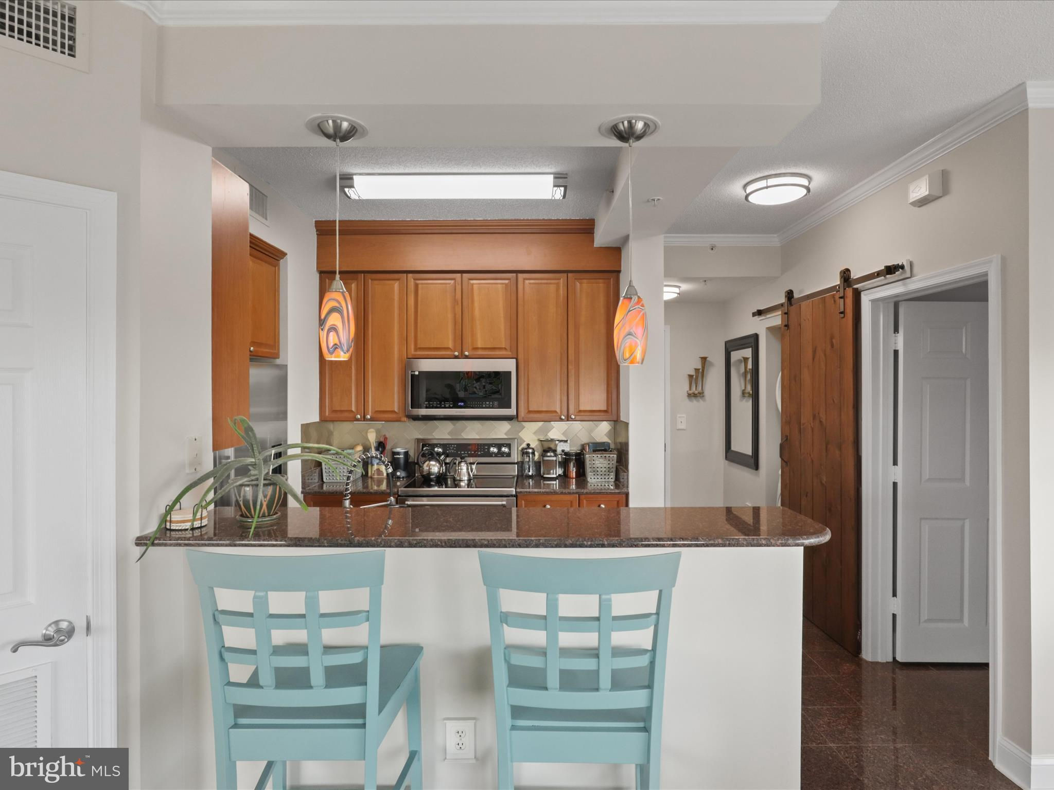 Penthouse, Unique, Strikingly Elegant, one-of-a-kind exceptional floorplan: 1 BR+ DEN/1FB+ Powder Room is designed to appeal to any discerning bon vivant. A 400 Sq. F. Wrap Around Terrace w/ Savor Breathtaking/Unobstructed Views w/ two wide floor-to-ceiling sliding window doors is appointed to fit 2 sets of outdoor furniture and ideal for entertaining a large circle of friends. Seamlessly recessed into ceiling adjustable to your needs & desires, LED light fixtures throughout w/ trendy outlets & 'ELK' handmade pendants. Custom made roller shades throughout. Brand New, High-End, Stunning, Spa like Bathroom w/ 'Adessi' porcelain tiles and Impeccable Illumination is ready to wash away the stresses of the day. Enjoy LED Wall -Mounted Medicine Storage Cabinet bathroom and Bluetooth stereo speaker exhaust fan with LED light fixtures in both bathrooms. You will appreciate Space maximizing custom made closets by 'Closets by Design' throughout the condo that create efficiency and a sense of empowerment. Enjoy SS ‘Kenmore’ Kitchen appliances ('Fisher Paykel' Fridge), ‘Samsung’ Washer/Dryer w/ custom made barn door. Brand New Plush Medium Grade Carpet in the Primary BR + Den. The unit is in mint condition, freshly painted to light grey 'Crushed Ice' including 'Ultra White' ceilings. Enjoy New 'Kohler' toilets along w/ 5'5 baseboards. Rent includes: Water/Gas/Sewer/Trash/Parking, FP & Heating/AC system seasonal inspections/filter replacement & reduced price in unit service. This luxury condominium w/ 24/7 concierge is perfectly located in the heart of Alexandria w/ direct access to I-395 and 4 miles away from Amazon's National Landing HQ2, a prime living location! NHP has a fabulous exercise room with sauna & locker room, heated community pool, picnic area w/ firepits and grilles, business center, community room, lounge area, management. *Super locale bordering Arlington & Falls Church*Close to many restaurants, shopping, etc. Enjoy Express & Daily Metro bus & DASH bus service to King Street Metro and easy access to major transportation routes for convenient commuting! The Gateway Alexandria anchored by a Harris Teeter grocery store is open & ready to serve (in walking distance!). A pet friendly community. Condominium accepts 1 dog any weight, or two pets max weight 35 lbs. each at maturity. Great place to call it "HOME' & be the 1st to submit your application. Owner is a RE licensee
