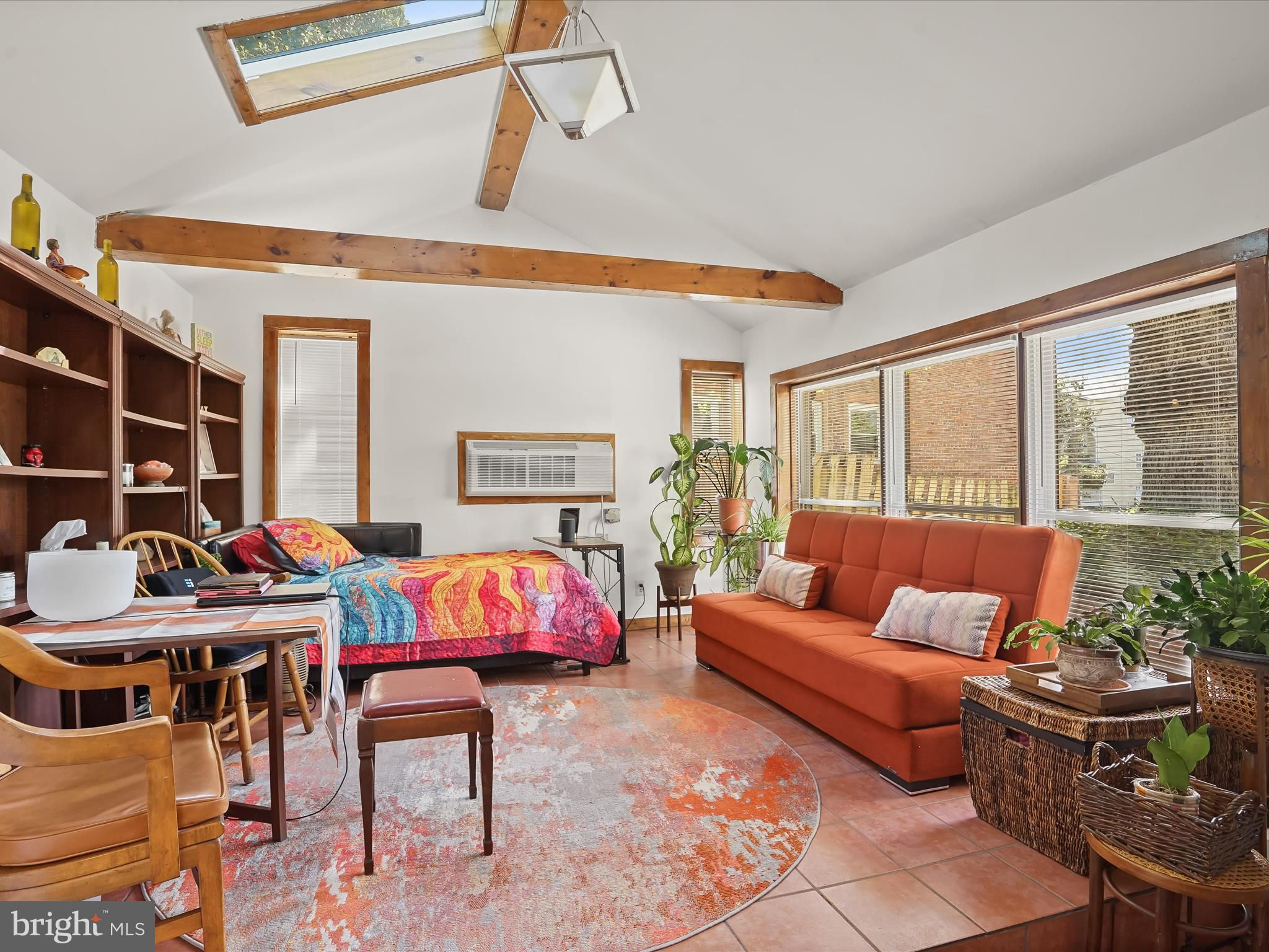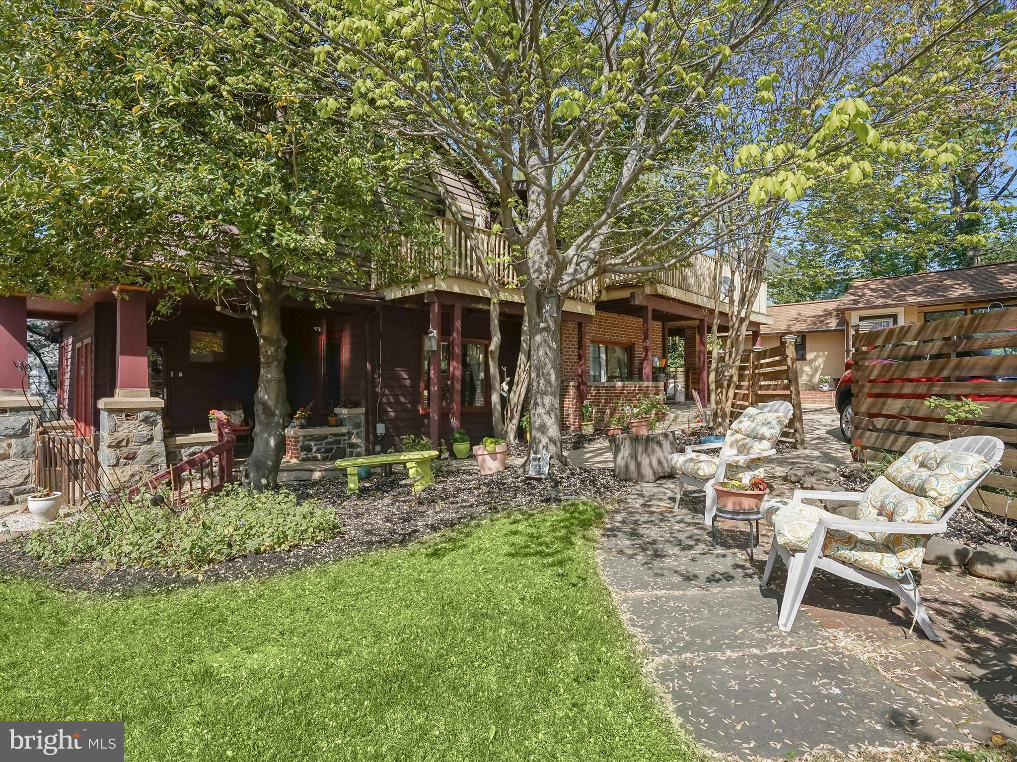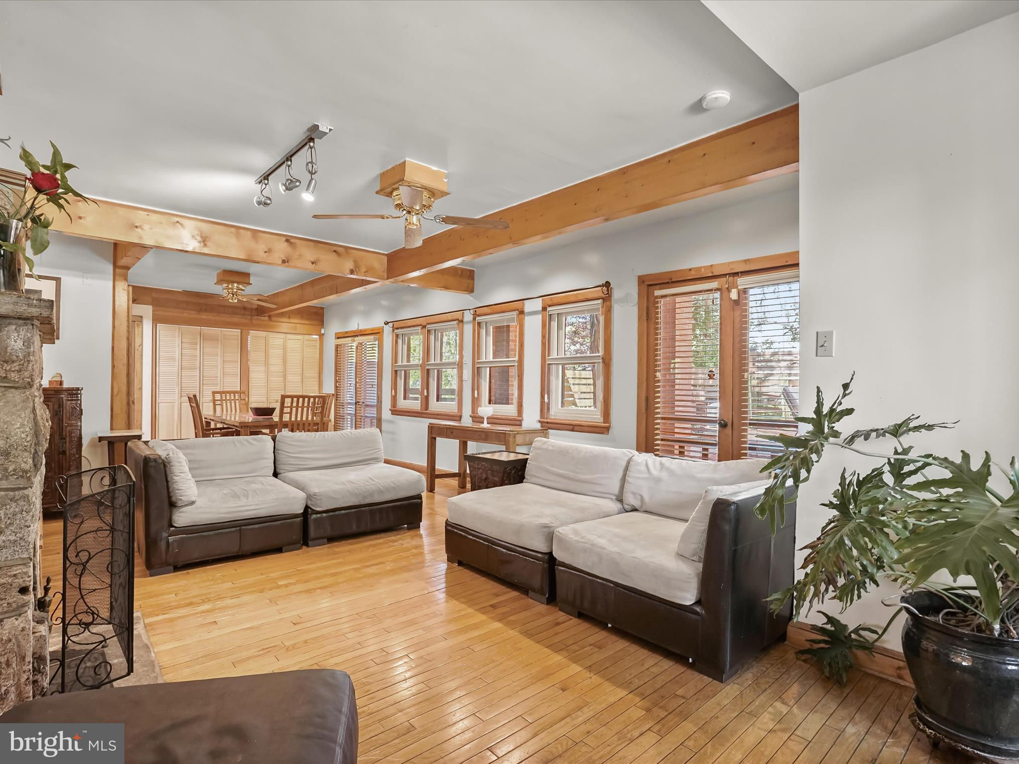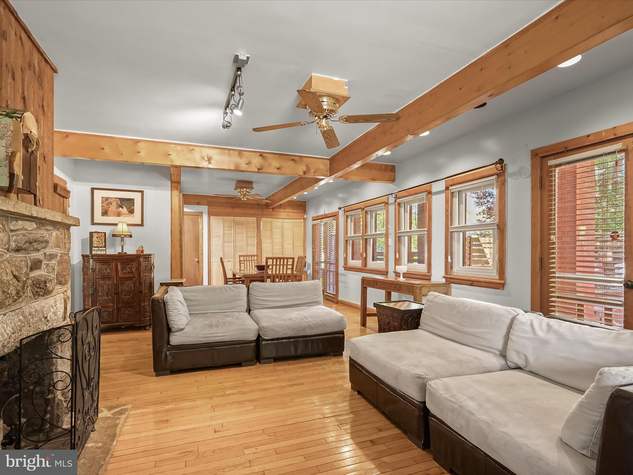 Nestled in the sought-after Woodbridge/Brookland community, this exquisite residence offers a rare blend of architectural elegance, modern amenities, and serene outdoor spaces. From the moment you arrive, the meticulously landscaped grounds and sophisticated curb appeal set the tone for the grandeur within. Step inside the main level and be greeted by rich hardwood floors, intricate architectural details, and a flood of natural light pouring through large windows adorned with plantation shutters. The formal dining room flows effortlessly into the gourmet kitchen, where a stone-surround gas fireplace, picture window with garden views, and recessed lighting create an inviting ambiance for entertaining. The kitchen is a chef’s dream, featuring a central island with breakfast bar, stainless steel appliances, double sink, glass tile backsplash, ceramic tile flooring, ample cabinetry, and not one but two casual dining areas or sitting areas—perfect for intimate mornings and peaceful evenings. The living room, also boasting a stone-surround gas fireplace, offers exposed wood beams and direct access to the rear patio—ideal for relaxing or hosting guests in style. Upstairs, the luxurious primary suite is a true retreat, complete with a spacious sitting area, a vaulted ceiling, access to a private balcony, exposed beams, a skylight, and a spa-inspired en suite bath featuring double vanities and a walk-in, sauna-style shower. Two additional bedrooms and a beautifully appointed hall bath with a jetted soaking tub complete the upper level. The fully finished lower level offers exceptional flexibility. It features its own kitchen, bath, laundry, and potential for two additional bedrooms. With a private entrance, it’s perfect for guests, extended family, or an income-generating rental. Completing this extraordinary property is a charming detached carriage house, thoughtfully converted into a studio with a full kitchen, bath, cathedral ceilings with exposed beams, skylight, ceramic tile flooring, and a cozy front porch—ideal for a guest suite, rental, or creative space. Conveniently located near major commuter routes, including US-1, US-50, metro stops, and I-695. This exceptional home offers upscale city living with space, privacy, and timeless elegance.