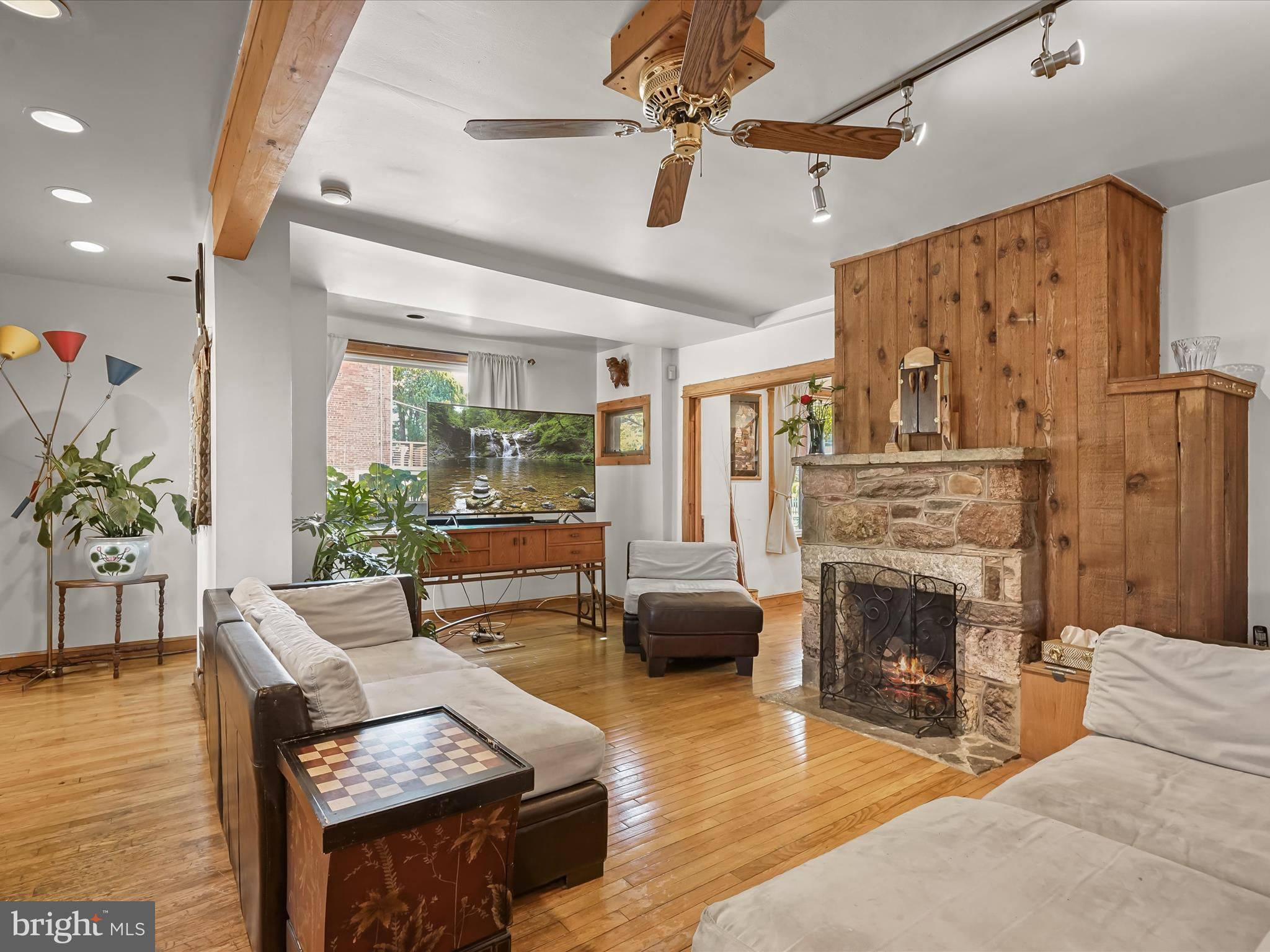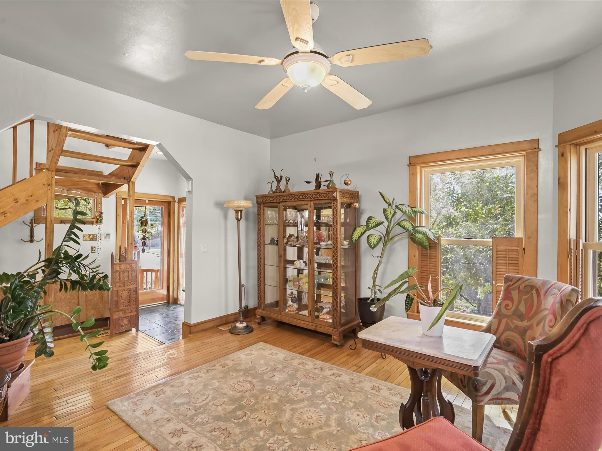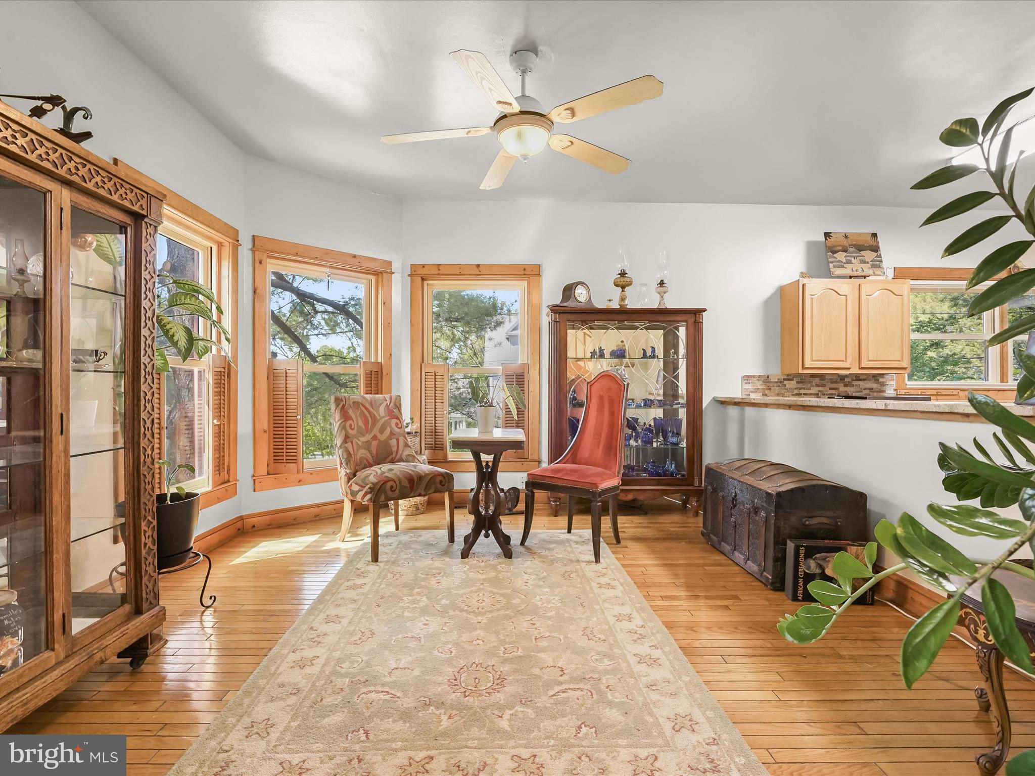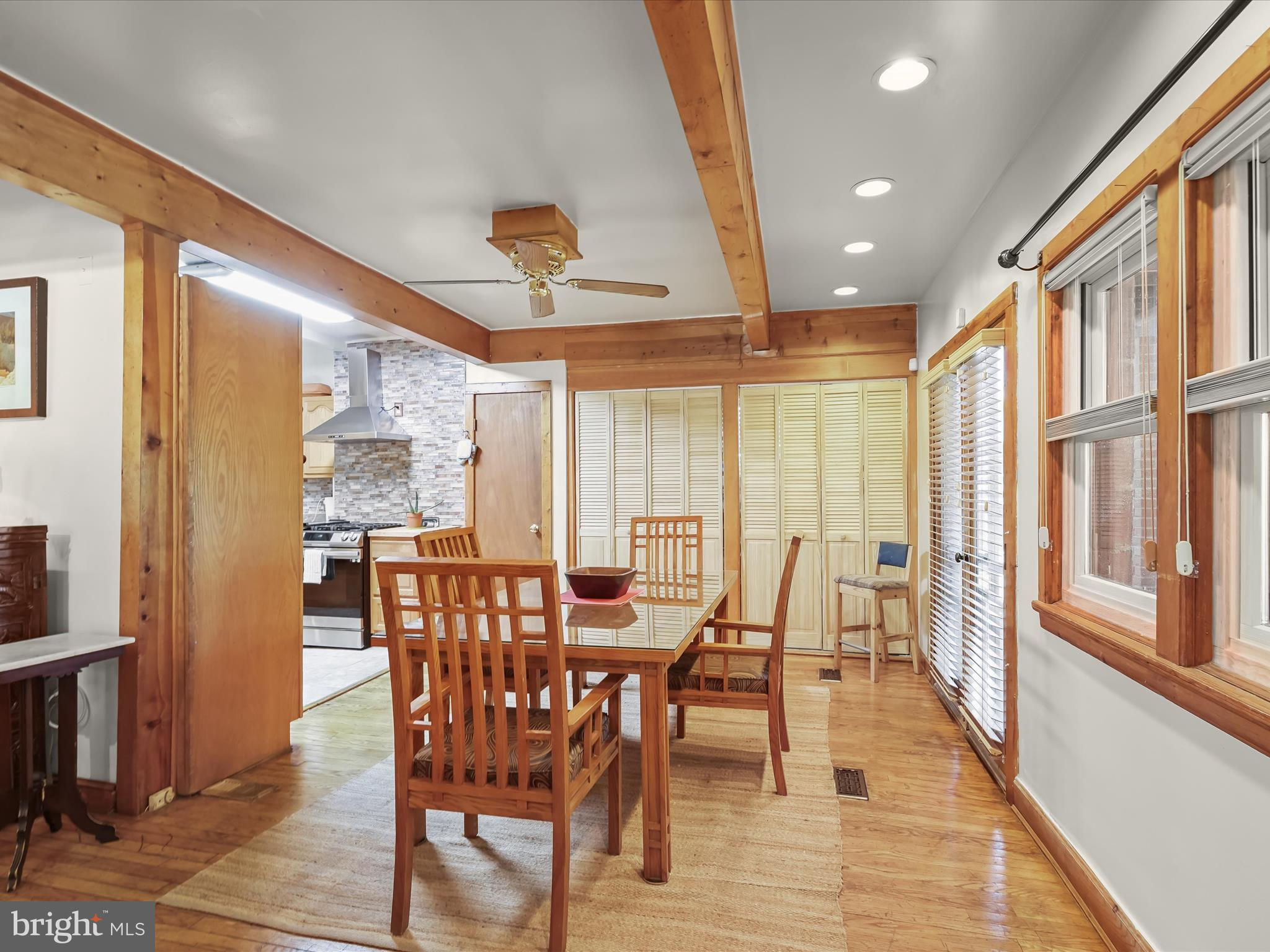 Nestled in the sought-after Woodbridge/Brookland community, this exquisite residence offers a rare blend of architectural elegance, modern amenities, and serene outdoor spaces. From the moment you arrive, the meticulously landscaped grounds and sophisticated curb appeal set the tone for the grandeur within. Step inside the main level and be greeted by rich hardwood floors, intricate architectural details, and a flood of natural light pouring through large windows adorned with plantation shutters. The formal dining room flows effortlessly into the gourmet kitchen, where a stone-surround gas fireplace, picture window with garden views, and recessed lighting create an inviting ambiance for entertaining. The kitchen is a chef’s dream, featuring a central island with breakfast bar, stainless steel appliances, double sink, glass tile backsplash, ceramic tile flooring, ample cabinetry, and not one but two casual dining areas or sitting areas—perfect for intimate mornings and peaceful evenings. The living room, also boasting a stone-surround gas fireplace, offers exposed wood beams and direct access to the rear patio—ideal for relaxing or hosting guests in style. Upstairs, the luxurious primary suite is a true retreat, complete with a spacious sitting area, a vaulted ceiling, access to a private balcony, exposed beams, a skylight, and a spa-inspired en suite bath featuring double vanities and a walk-in, sauna-style shower. Two additional bedrooms and a beautifully appointed hall bath with a jetted soaking tub complete the upper level. The fully finished lower level offers exceptional flexibility. It features its own kitchen, bath, laundry, and potential for two additional bedrooms. With a private entrance, it’s perfect for guests, extended family, or an income-generating rental. Completing this extraordinary property is a charming detached carriage house, thoughtfully converted into a studio with a full kitchen, bath, cathedral ceilings with exposed beams, skylight, ceramic tile flooring, and a cozy front porch—ideal for a guest suite, rental, or creative space. Conveniently located near major commuter routes, including US-1, US-50, metro stops, and I-695. This exceptional home offers upscale city living with space, privacy, and timeless elegance.