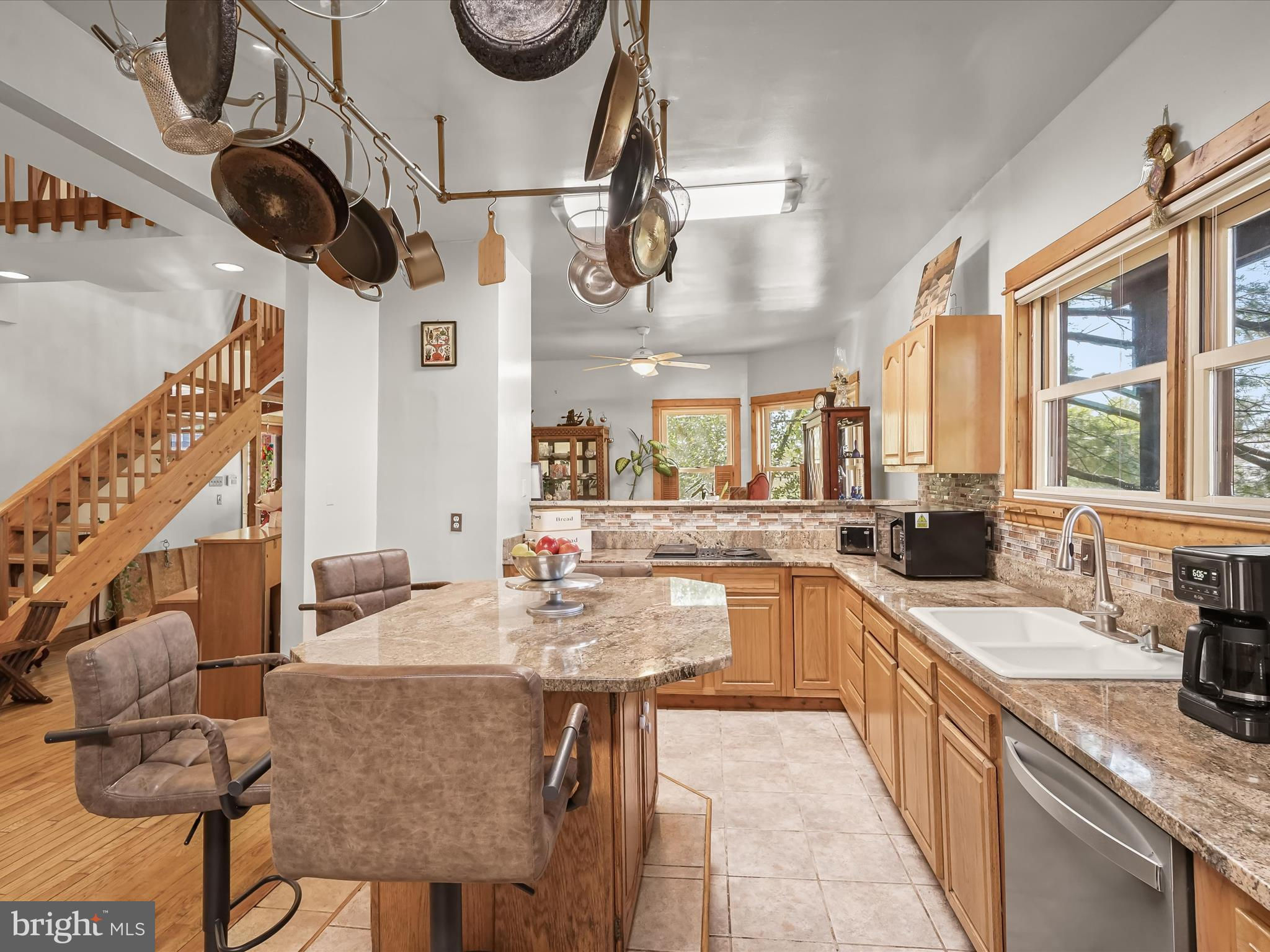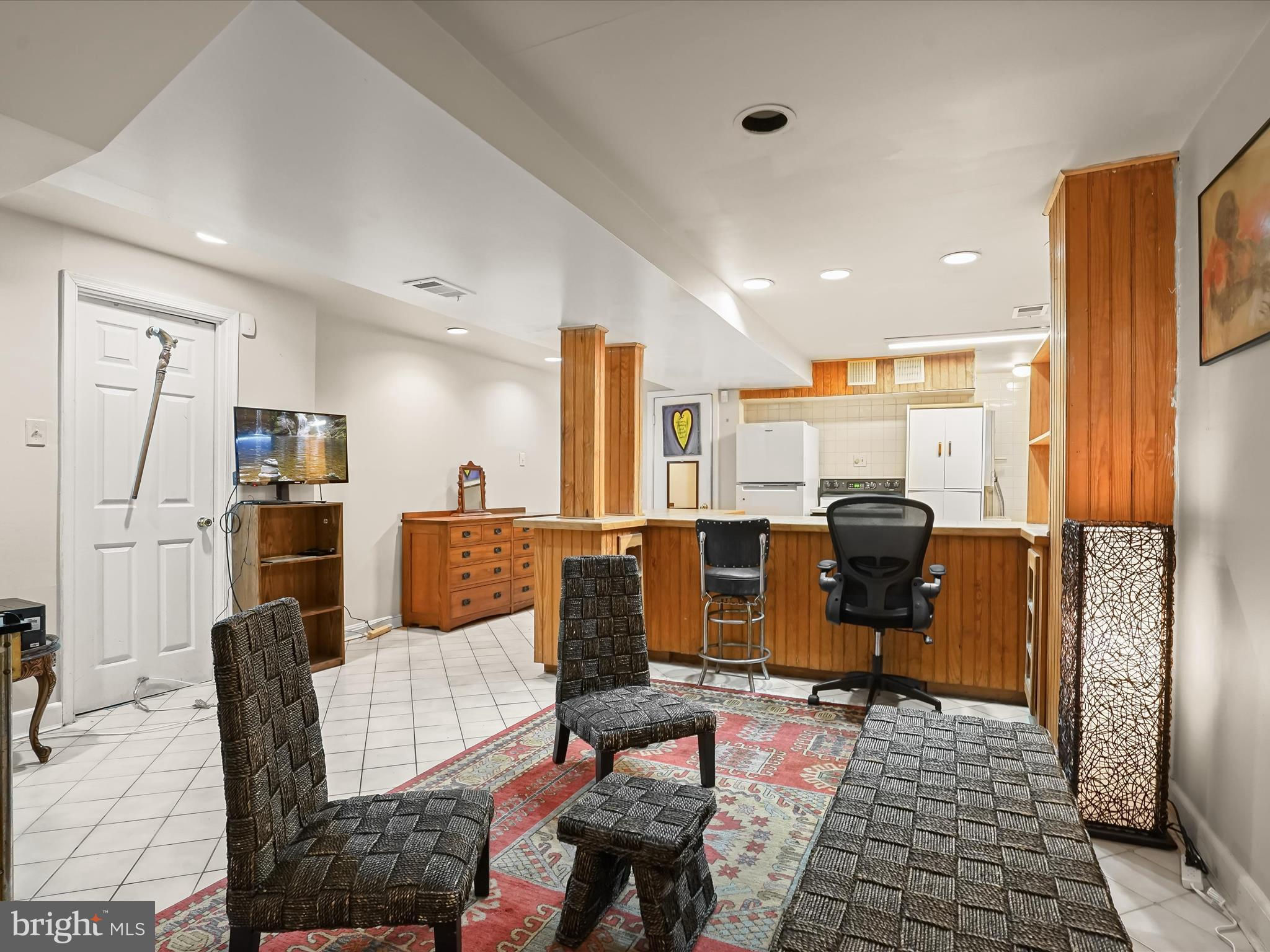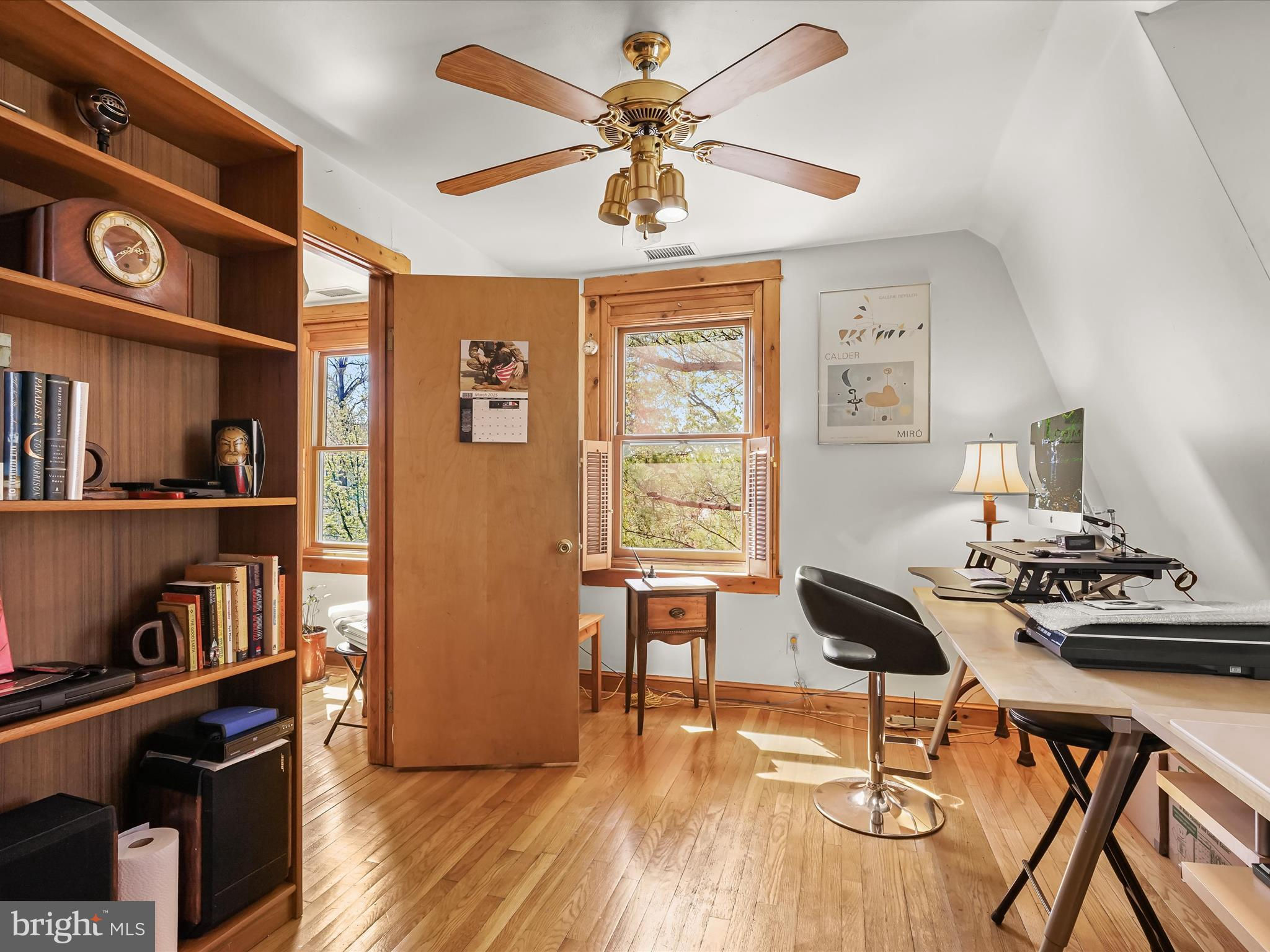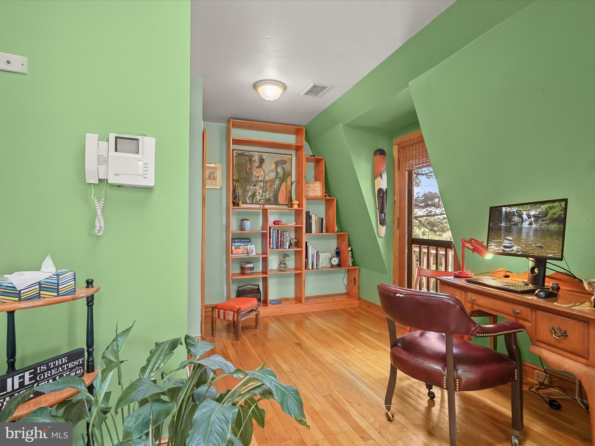 Nestled in the sought-after Woodbridge/Brookland community, this exquisite residence offers a rare blend of architectural elegance, modern amenities, and serene outdoor spaces. From the moment you arrive, the meticulously landscaped grounds and sophisticated curb appeal set the tone for the grandeur within. Step inside the main level and be greeted by rich hardwood floors, intricate architectural details, and a flood of natural light pouring through large windows adorned with plantation shutters. The formal dining room flows effortlessly into the gourmet kitchen, where a stone-surround gas fireplace, picture window with garden views, and recessed lighting create an inviting ambiance for entertaining. The kitchen is a chef’s dream, featuring a central island with breakfast bar, stainless steel appliances, double sink, glass tile backsplash, ceramic tile flooring, ample cabinetry, and not one but two casual dining areas or sitting areas—perfect for intimate mornings and peaceful evenings. The living room, also boasting a stone-surround gas fireplace, offers exposed wood beams and direct access to the rear patio—ideal for relaxing or hosting guests in style. Upstairs, the luxurious primary suite is a true retreat, complete with a spacious sitting area, a vaulted ceiling, access to a private balcony, exposed beams, a skylight, and a spa-inspired en suite bath featuring double vanities and a walk-in, sauna-style shower. Two additional bedrooms and a beautifully appointed hall bath with a jetted soaking tub complete the upper level. The fully finished lower level offers exceptional flexibility. It features its own kitchen, bath, laundry, and potential for two additional bedrooms. With a private entrance, it’s perfect for guests, extended family, or an income-generating rental. Completing this extraordinary property is a charming detached carriage house, thoughtfully converted into a studio with a full kitchen, bath, cathedral ceilings with exposed beams, skylight, ceramic tile flooring, and a cozy front porch—ideal for a guest suite, rental, or creative space. Conveniently located near major commuter routes, including US-1, US-50, metro stops, and I-695. This exceptional home offers upscale city living with space, privacy, and timeless elegance.