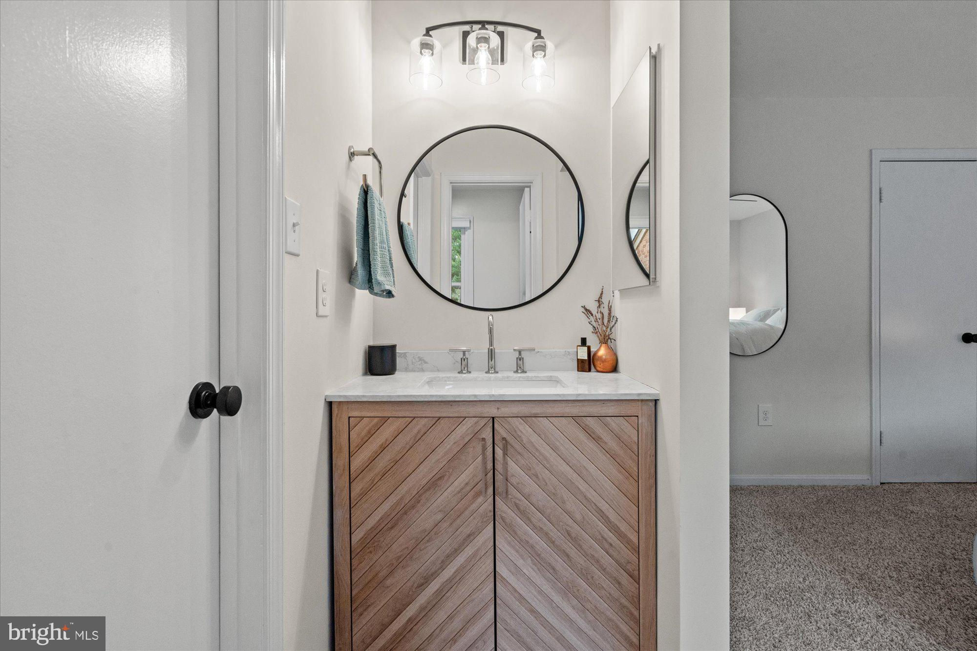 Newly renovated, 3 story townhome located in a private, park-like setting of Alexandria. The two bedroom/2.5 bath townhome is light filled throughout with lovely nature views to the rear tree-filled walking path, leading to lovely parks for walking. This just under 2000 square foot home enjoys a spacious, open concept living room/dining room on the main level. The stunning new, eat-in chef's kitchen looks out to mature trees. Head upstairs to 2 ensuite bedrooms on the second floor, with ample storage and closet space. Downstairs, from the main floor, is a huge family room/multi use space with a wood burning fireplace. Cozy for a family movie, or a perfect office/workout space. Conveniently located laundry and half bath on the lower level, and patio doors leading you out to a private patio, fenced in, perfect for entertaining, gardening or relaxing. This home has been meticulously maintained. All major items have all been taken care of - kitchen and bath renovation 1.5 years ago, roof replaced (2021), brand new Energy Efficient Windows (2020), and HVAC (2017). Great community, neighborhood with one reserved parking spot and one unreserved parking spot. Low HOA, $130/month, covering lawn, trash, parking, tree and gazebo maintenance and snow removal. Enjoy everything Alexandria has to offer, minutes to old town Alexandria or 395. Convenient to metro, shops & restaurants + dog park, this fantastic location is just minutes away from Duke St Metro, Pentagon City, Amazon Headquarters & Washington ,DC.