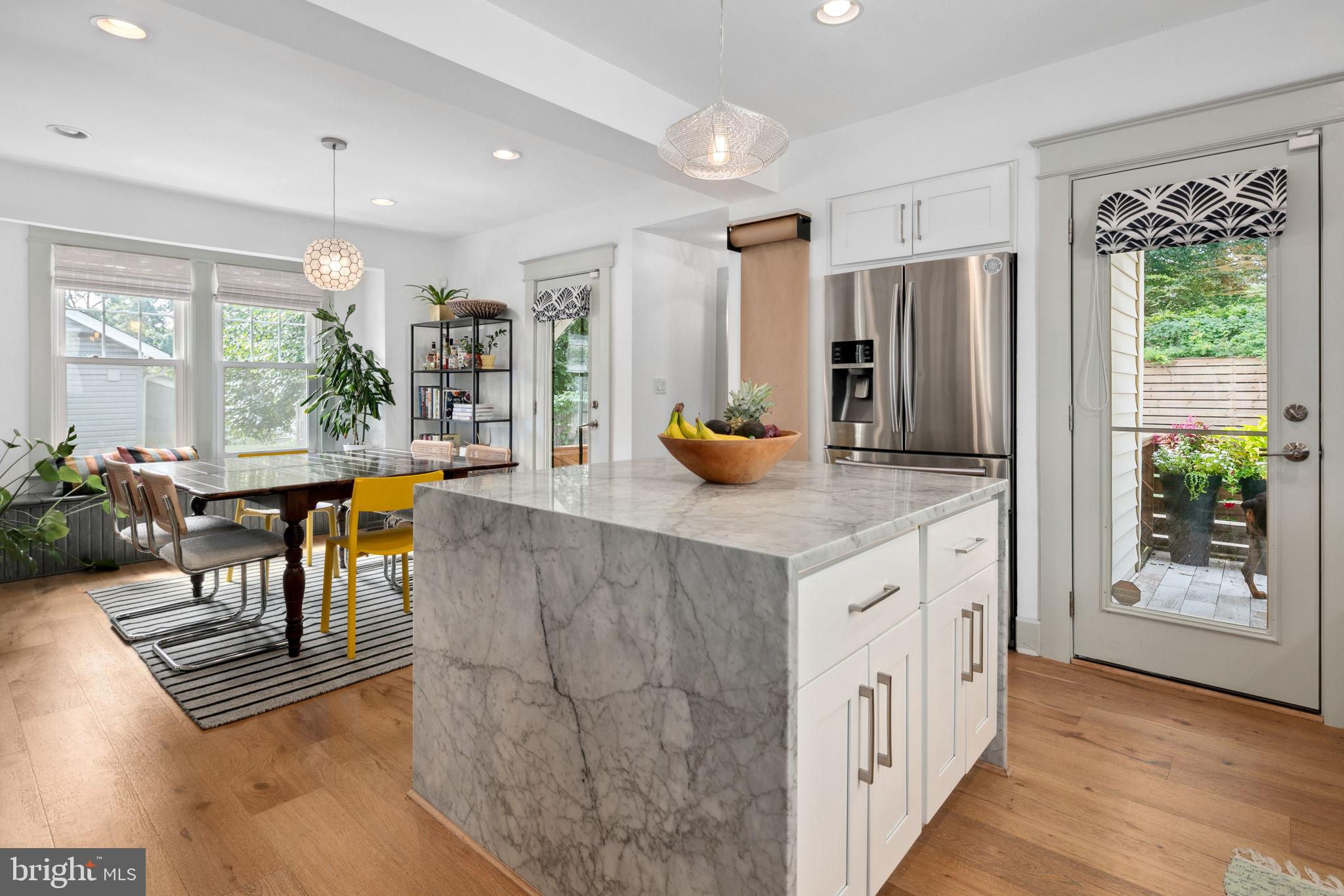 Fabulous 1920s single family home in Woodridge combining charming original details with super stylish, thoughtful updates and renovations. Warm hardwood floors throughout, lots of windows and ample natural light. Spacious living and dining rooms with great flow, leading to the gorgeous gourmet kitchen featuring stainless steel appliances, marble countertops, and a large center island with waterfall counter. Main level also includes a beautifully customized power room. Large bedrooms upstairs with plenty of closet space, and luxurious baths with custom glass and tiling. Fully finished lower level for additional recreation space, laundry room, plus an additional full bed and bath. Enjoy the outdoors on the welcoming front porch, or the rear porch, patio and backyard, which feature a custom-built stock tank pool and fire pit - perfect for outdoor entertaining. The home is just minutes from Langdon Park where you will find playgrounds, basketball courts, tennis courts, recreation center and a newly built swimming pool. Stroll to Ritas Ice and Zeke’s Coffee for a quick treat. Quick access to Colmar Manor Park, Riverdale Park, Fort Lincoln Shoppes, Rhode Island Row, Union Market and Ivy City makes this an ideal location to enjoy all that our wonderful city has to offer. Welcome home!