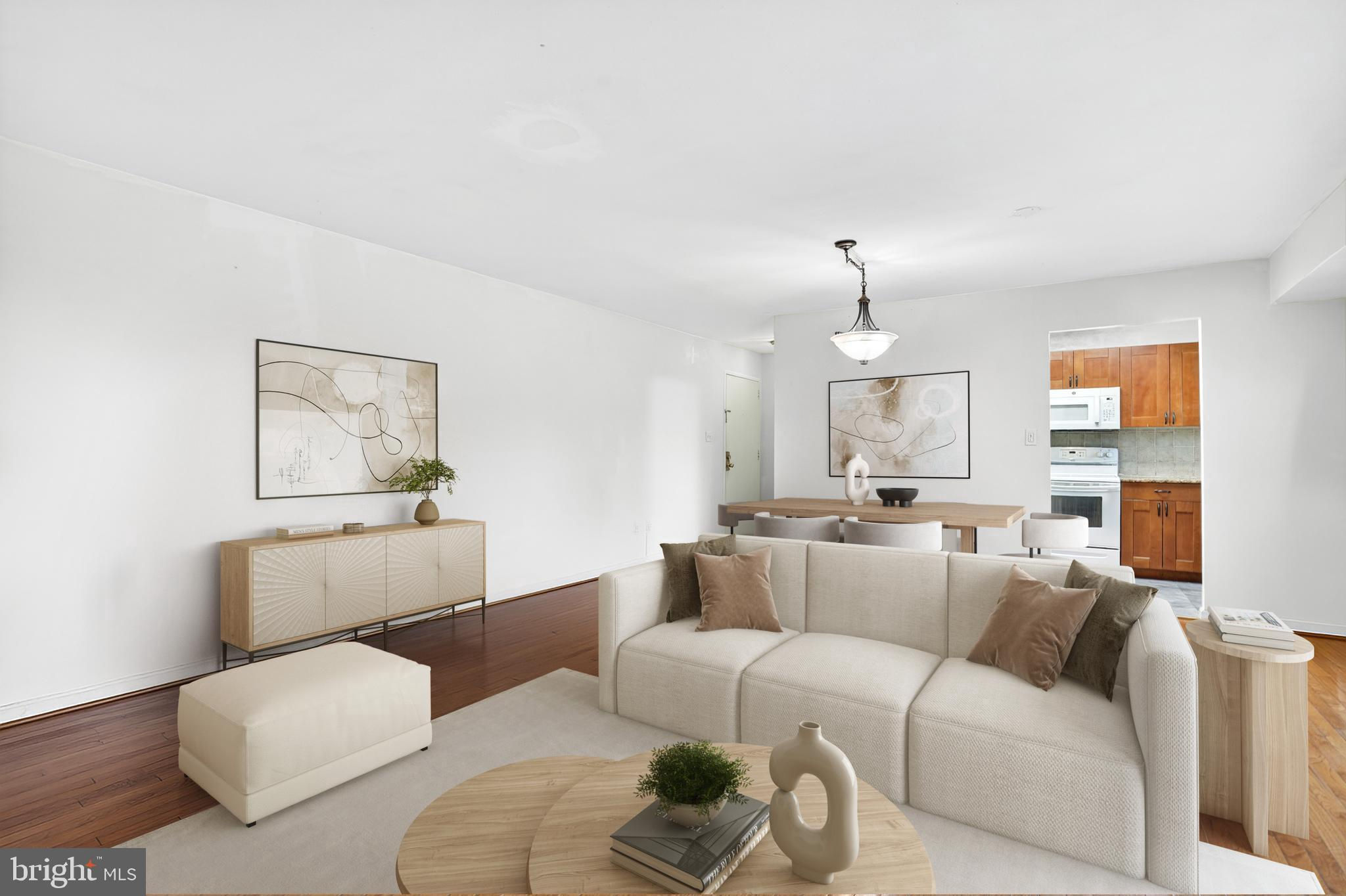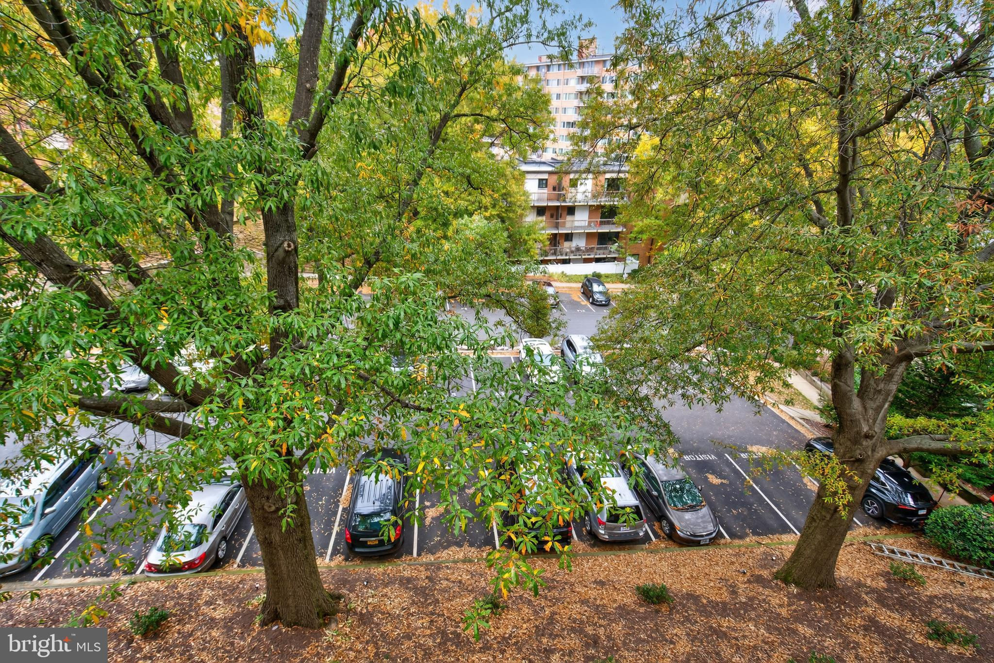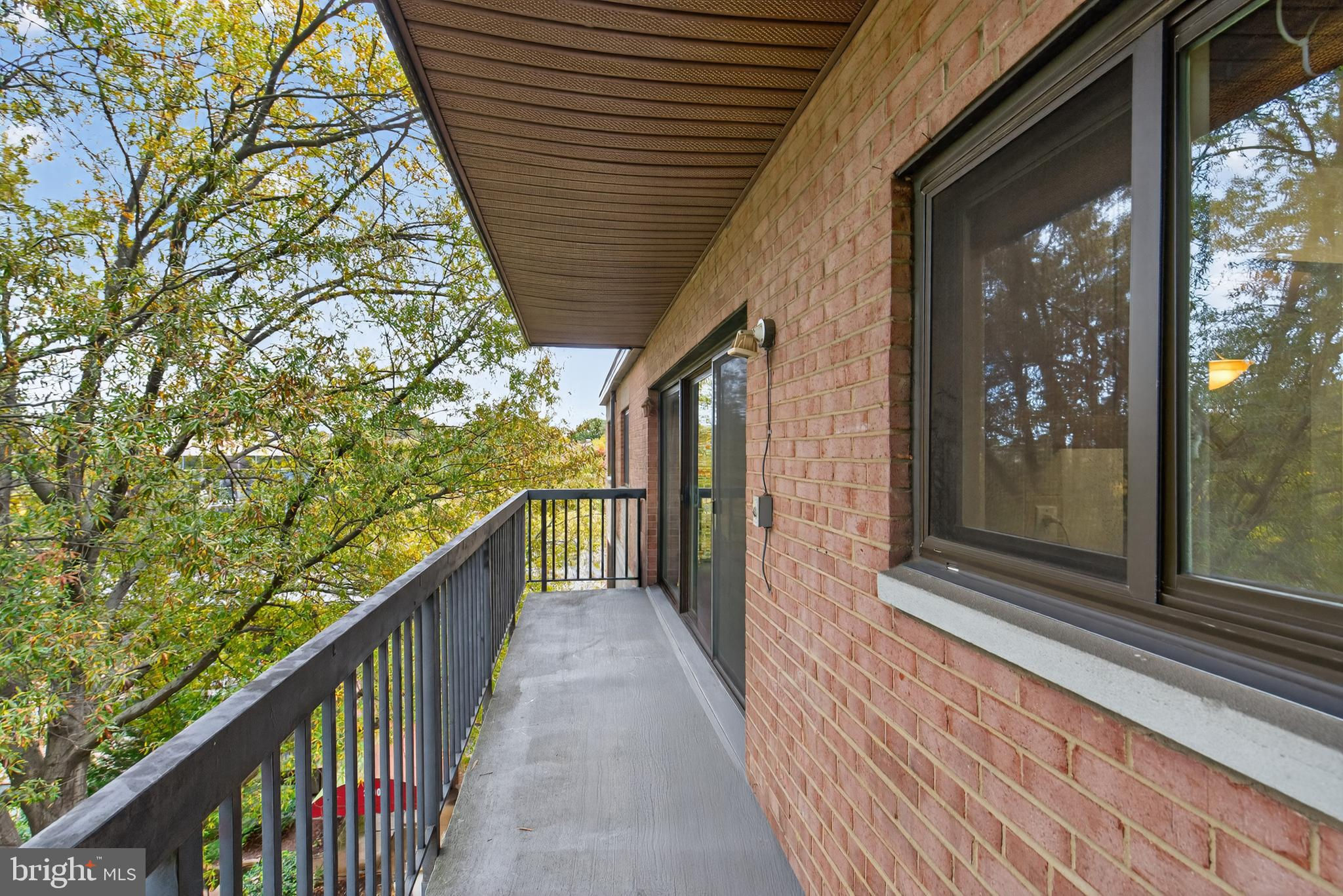 Don’t miss this delightful 2-bedroom, 2-bath penthouse-level unit nestled within the charming Bolling Brook Condominiums. Step inside to a bright and airy interior where hardwood floors flow gracefully throughout the main living spaces. The well-appointed kitchen features updated wood cabinetry, tiled flooring, granite worktops, a tiled backsplash, and white appliances, including a new refrigerator and dishwasher (2025). Beyond the kitchen, the inviting living and dining area opens to an expansive balcony framed by mature trees, a tranquil retreat ideal for enjoying your morning coffee or relaxing as the sun sets. The owner’s suite features a ceiling fan, ample closet space and a newly added en-suite bath with a custom tiled walk-in shower. A secondary bedroom is filled with natural light and features mirrored closet doors for an added touch of brightness and space. Across the hall, the updated full bath (2025) impresses with contemporary finishes and a tub/shower combo. Additional comforts include a full-sized washer and dryer and an assigned parking space, ensuring both ease and convenience in everyday living. Ample visitor parking is available throughout the community. Residents enjoy access to a lovely pool, playground, and beautifully landscaped grounds shaded by mature trees. Perfectly situated, this home is just two blocks from Harris Teeter, Starbucks, a fitness center, and a selection of restaurants, adding convenience to this prime location.
