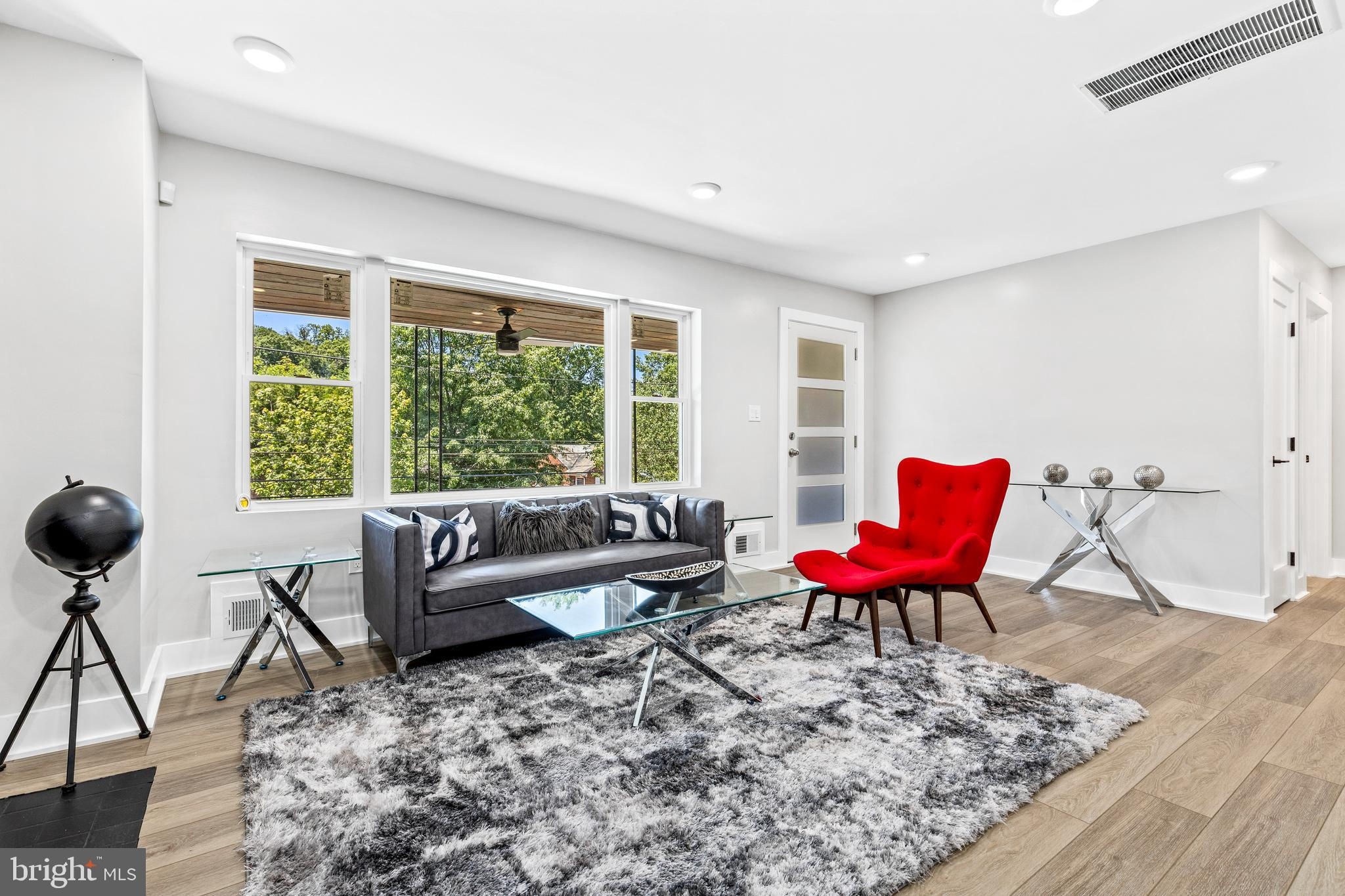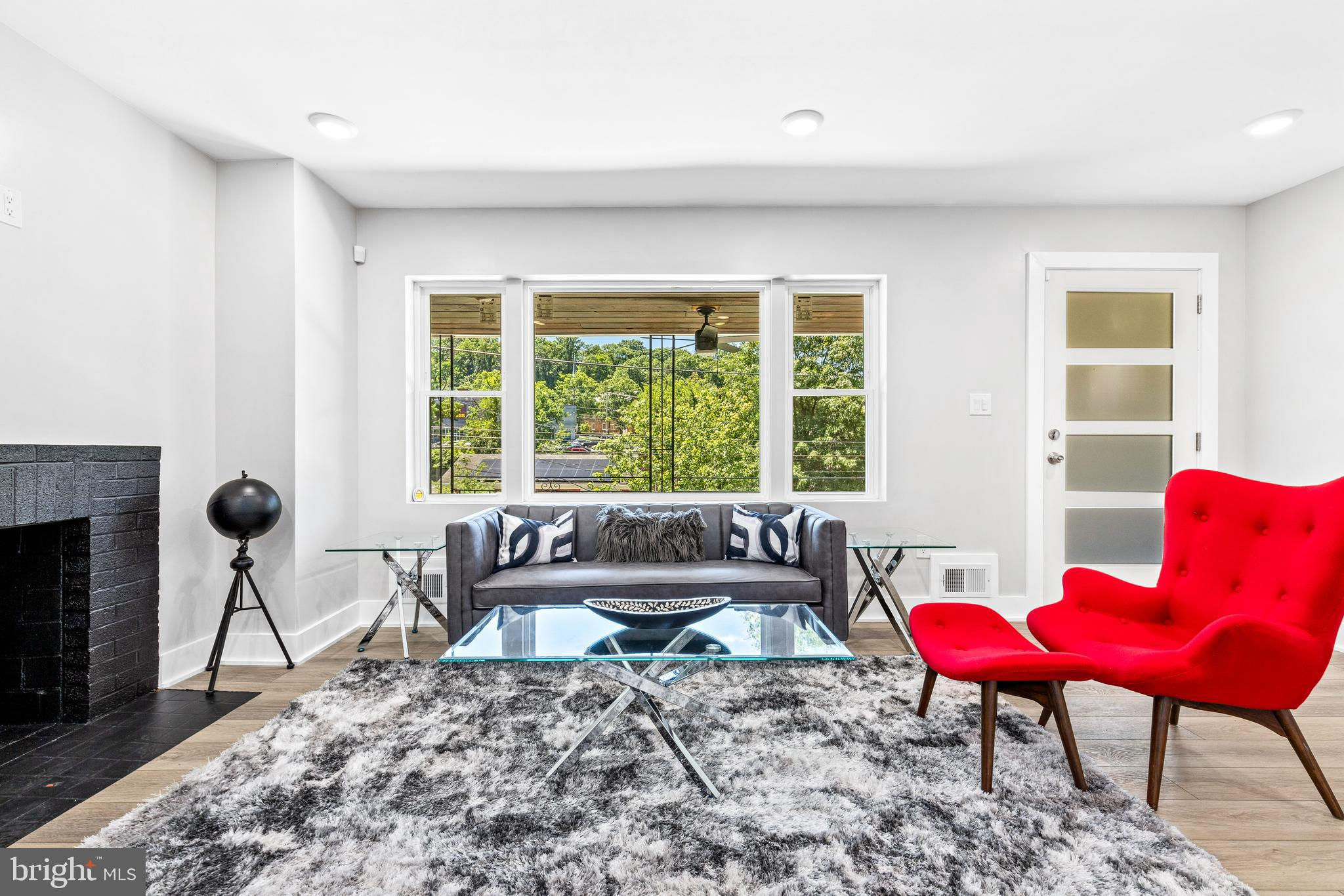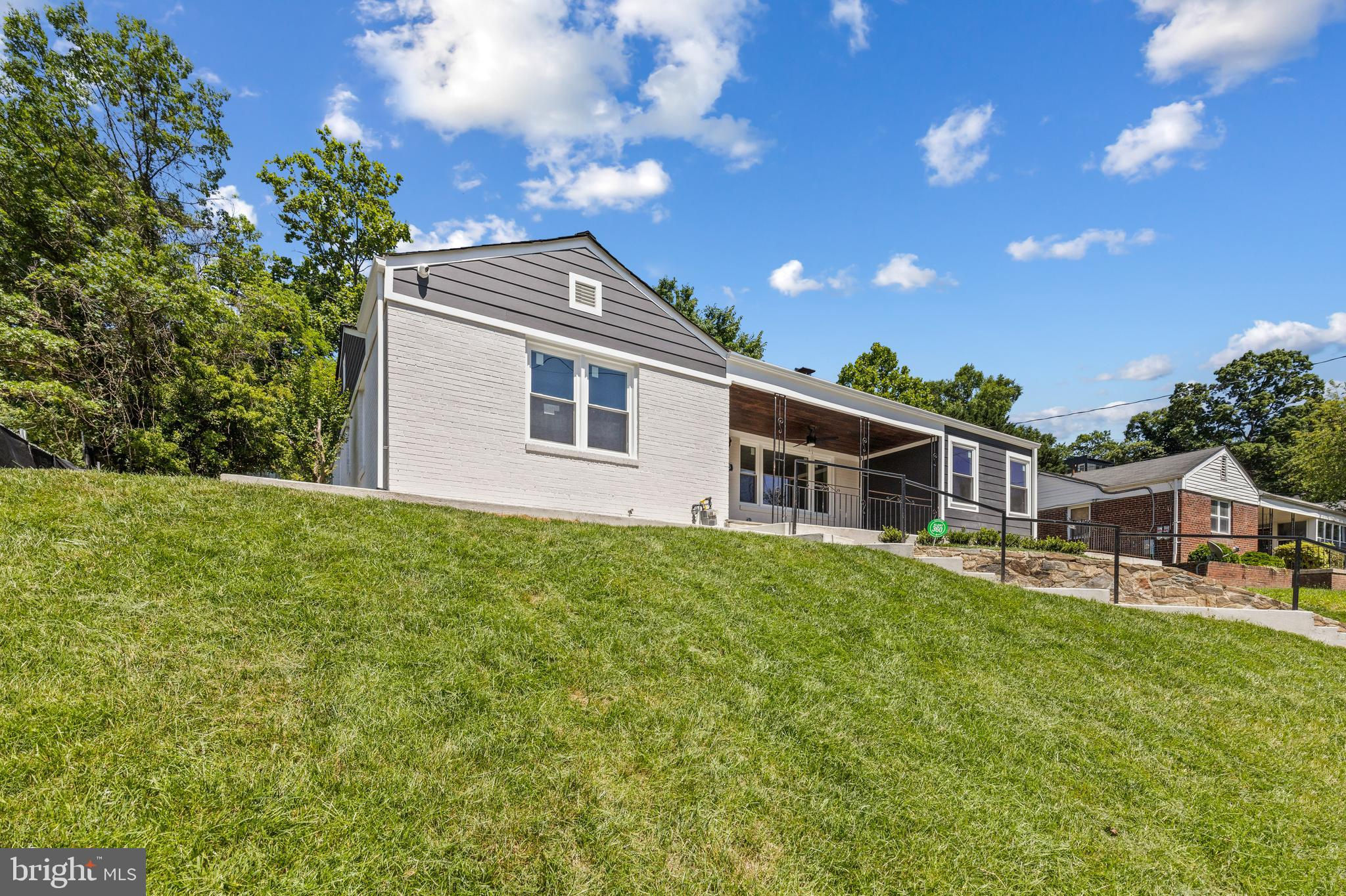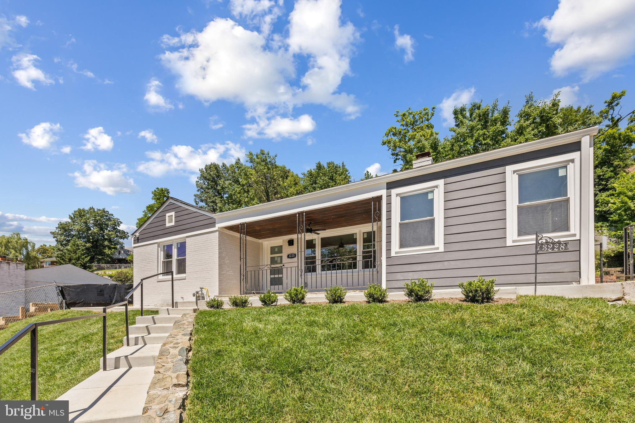 Beautiful Top to Bottom High-end Renovation in Hill Crest featuring 4 bedrooms, 3 Bathrooms, Garage, plus a HUGE 12,000+ sqft Lot! Renovations include all new interior features, new electrical, plumbing, HVAC and Roof. Start and end your day on the charming front porch with a ceiling fan inviting you to sit down and relax while overlooking the greenery of your front lawn. Step inside to the contemporary ambiance of the interior, featuring beautiful floors for timeless style and easy upkeep, tall ceilings, recessed lighting, and plenty of windows throughout pouring in natural light. The main level has a transitional floor plan with a living room centered by a handsome fireplace mantle. The bright living room opens to the kitchen and dining area boasting plenty of cabinets, gas cooking, and quartz countertops and backsplash. From the kitchen, escape to your backyard where you can garden, grill and play to your heart’s content. The oversized deck on top of the garage is perfect for dinners al fresco and additional outdoor enjoyment. The main level is completed by 3 sunlit bedrooms and 2 spa-like bathrooms including a primary bedroom with dual closets and an en-suite bathroom. Journey downstairs to the finished lower level with a den, 4th bedroom, full bathroom, garage access, laundry access, and a wet bar area designed for entertaining with a microwave, sink, and wine refrigerator. Conveniently located on a serene street in popular Hill Crest, you'll feel as though you are miles away from the city while being just steps from dining and shopping of Capitol Hill. Easy commute as you're just minutes from 295, 495, Navy Yard, and the National Harbor.