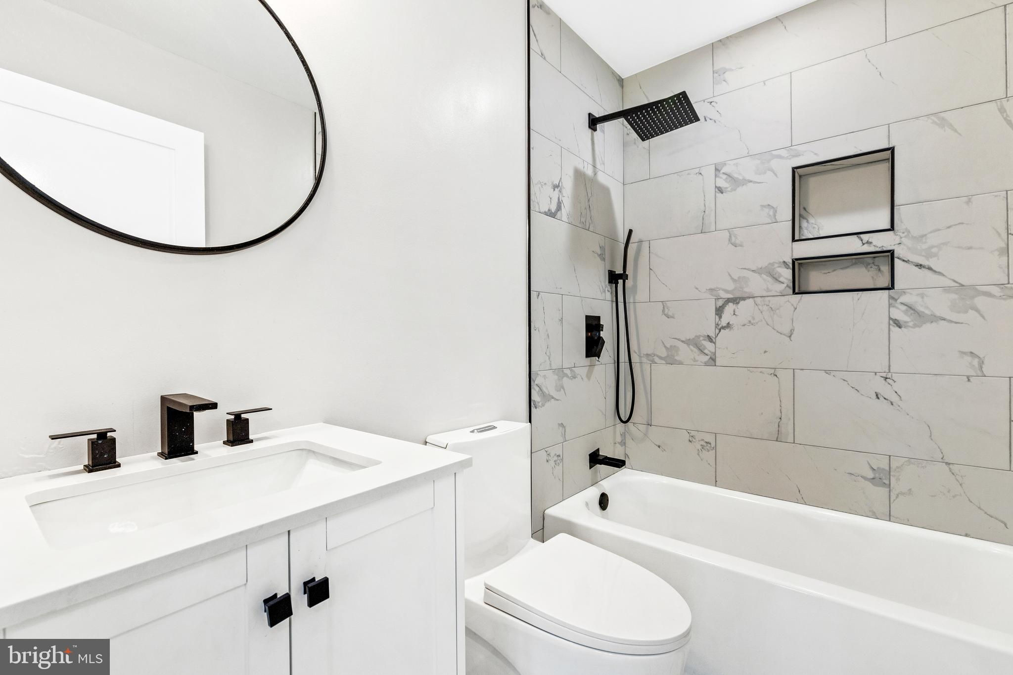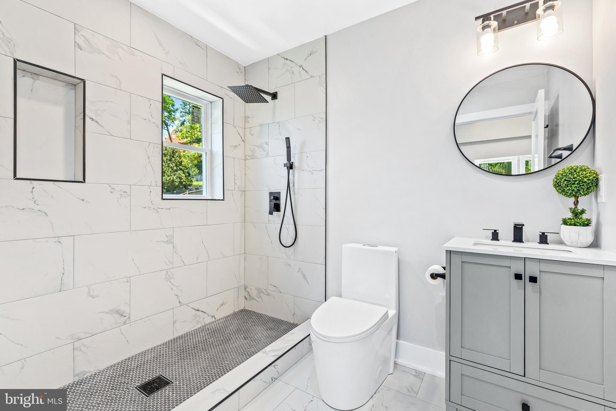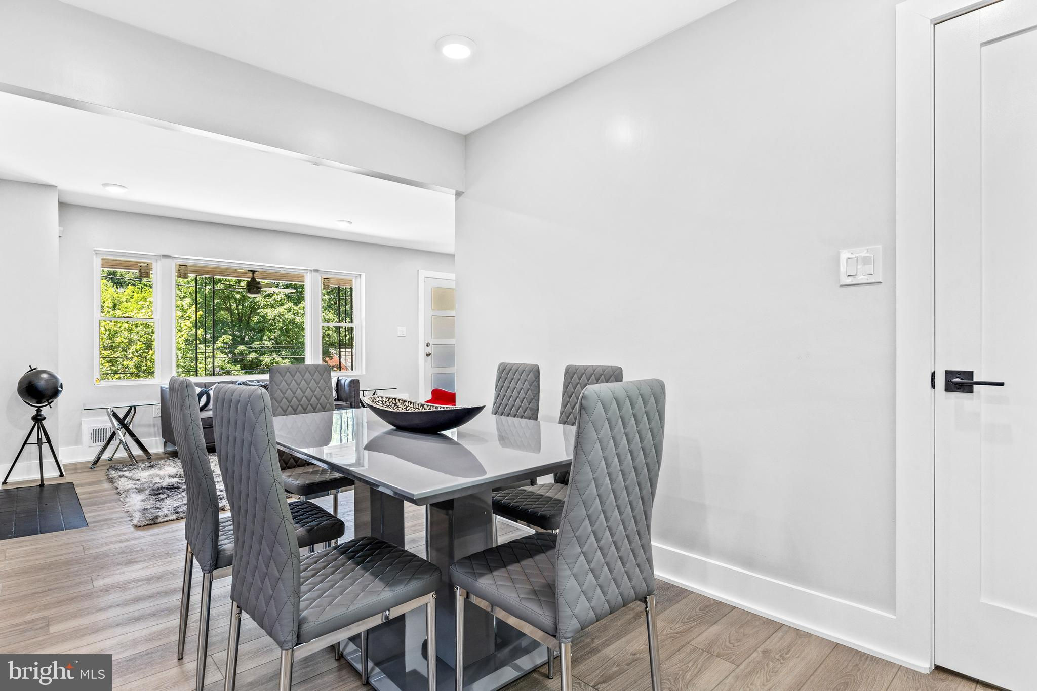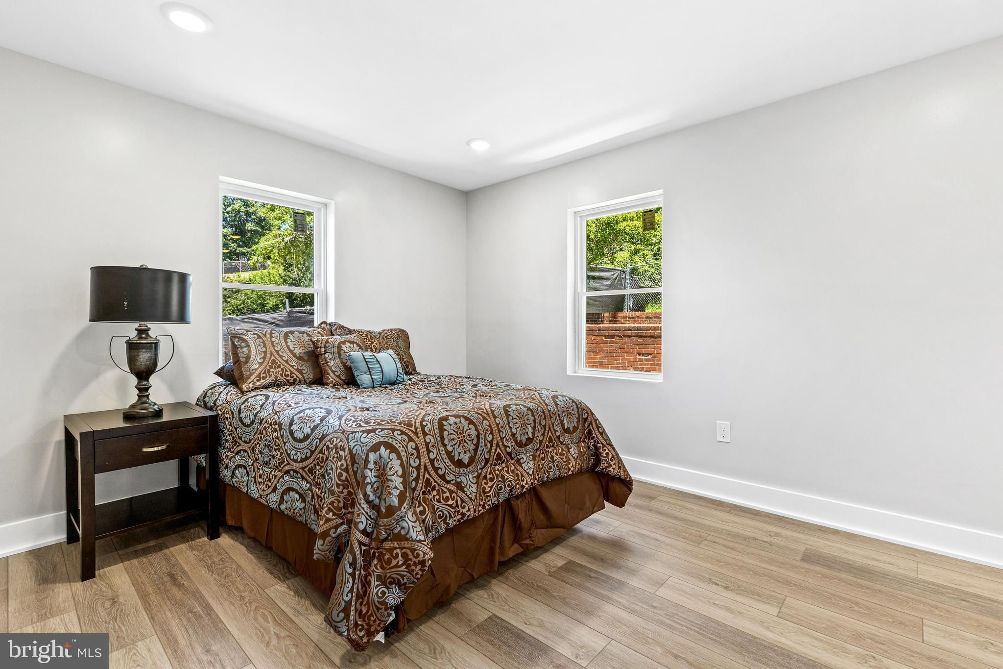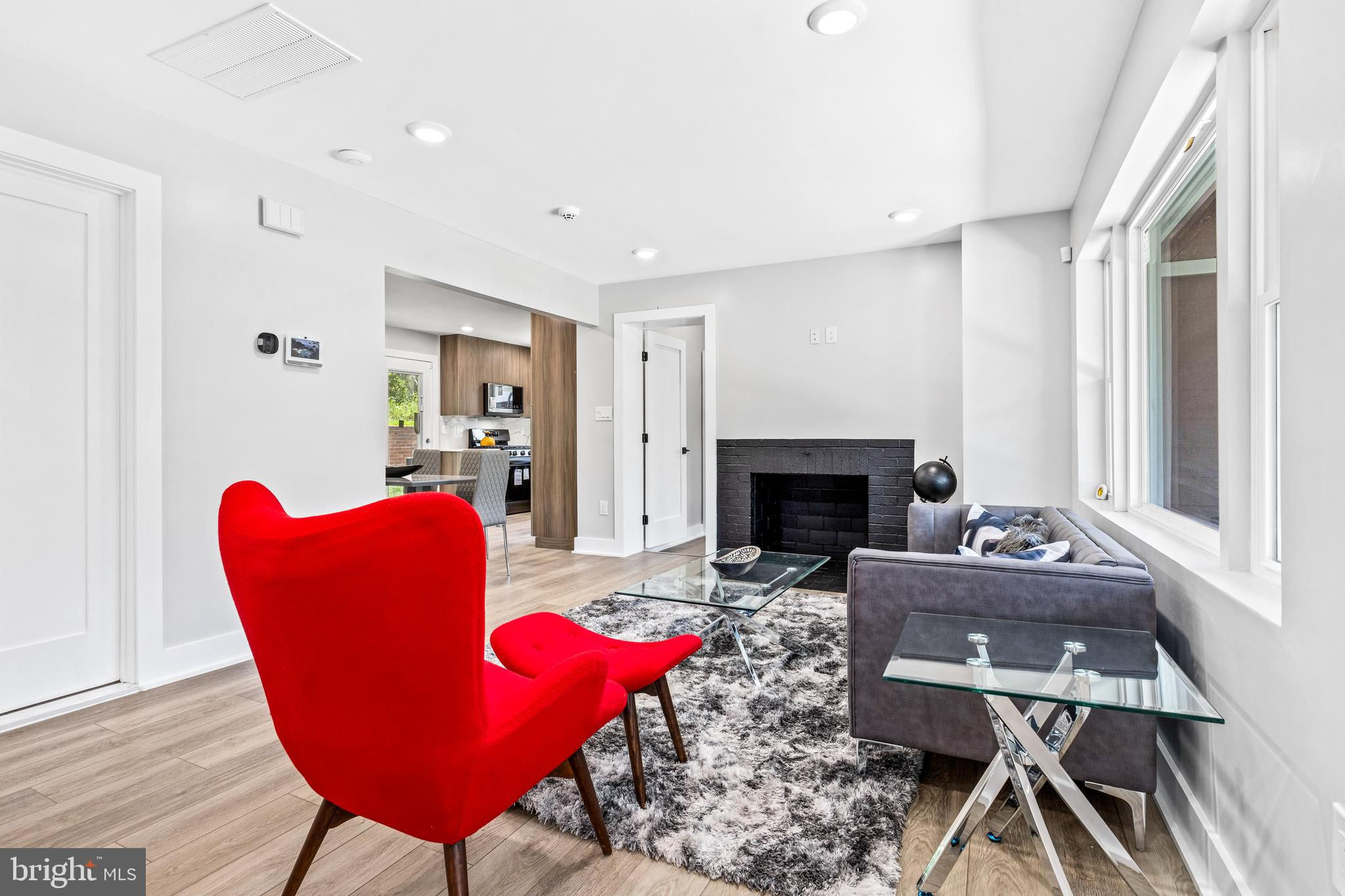 Beautiful Top to Bottom High-end Renovation in Hill Crest featuring 4 bedrooms, 3 Bathrooms, Garage, plus a HUGE 12,000+ sqft Lot! Renovations include all new interior features, new electrical, plumbing, HVAC and Roof. Start and end your day on the charming front porch with a ceiling fan inviting you to sit down and relax while overlooking the greenery of your front lawn. Step inside to the contemporary ambiance of the interior, featuring beautiful floors for timeless style and easy upkeep, tall ceilings, recessed lighting, and plenty of windows throughout pouring in natural light. The main level has a transitional floor plan with a living room centered by a handsome fireplace mantle. The bright living room opens to the kitchen and dining area boasting plenty of cabinets, gas cooking, and quartz countertops and backsplash. From the kitchen, escape to your backyard where you can garden, grill and play to your heart’s content. The oversized deck on top of the garage is perfect for dinners al fresco and additional outdoor enjoyment. The main level is completed by 3 sunlit bedrooms and 2 spa-like bathrooms including a primary bedroom with dual closets and an en-suite bathroom. Journey downstairs to the finished lower level with a den, 4th bedroom, full bathroom, garage access, laundry access, and a wet bar area designed for entertaining with a microwave, sink, and wine refrigerator. Conveniently located on a serene street in popular Hill Crest, you'll feel as though you are miles away from the city while being just steps from dining and shopping of Capitol Hill. Easy commute as you're just minutes from 295, 495, Navy Yard, and the National Harbor.