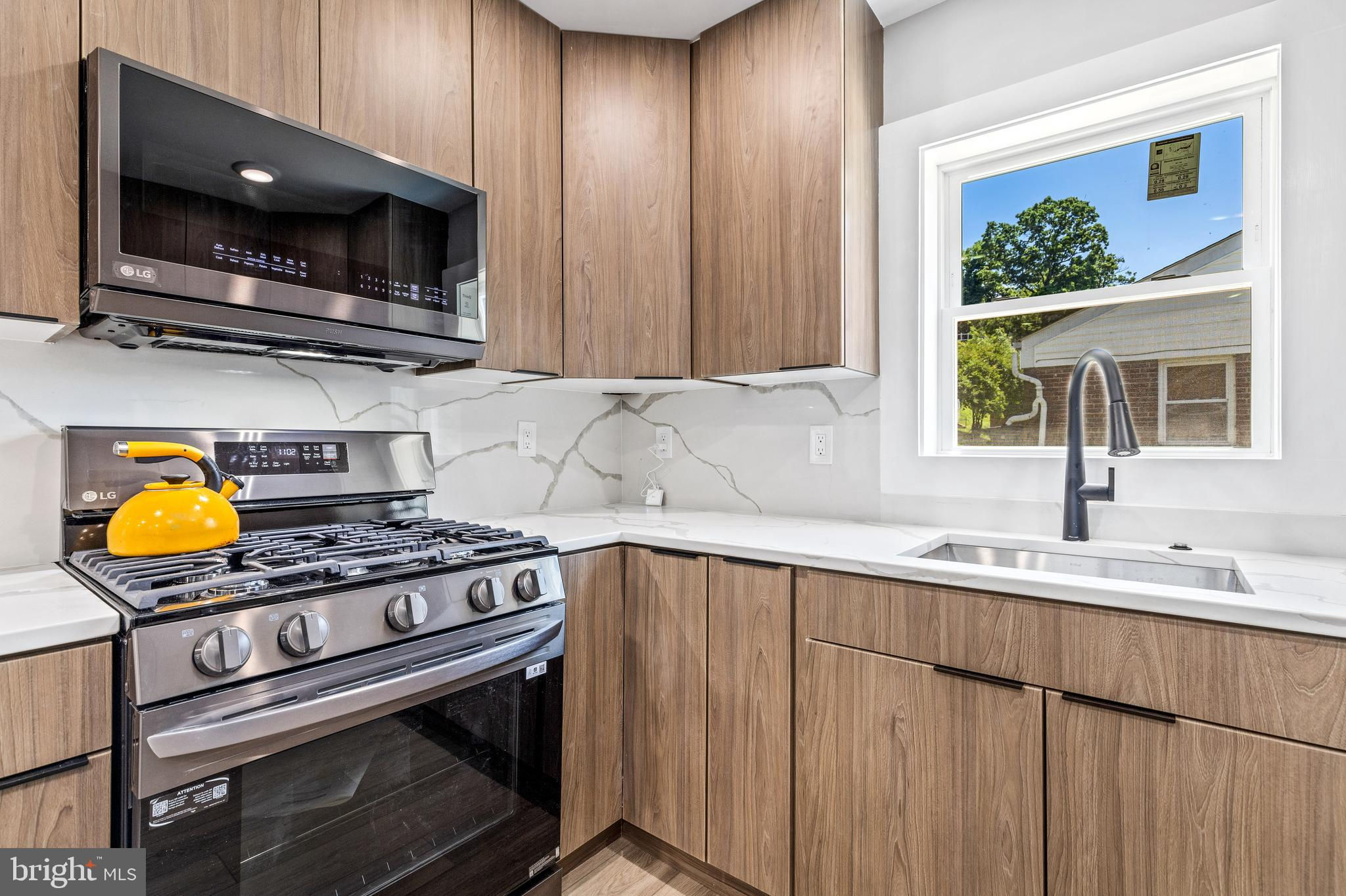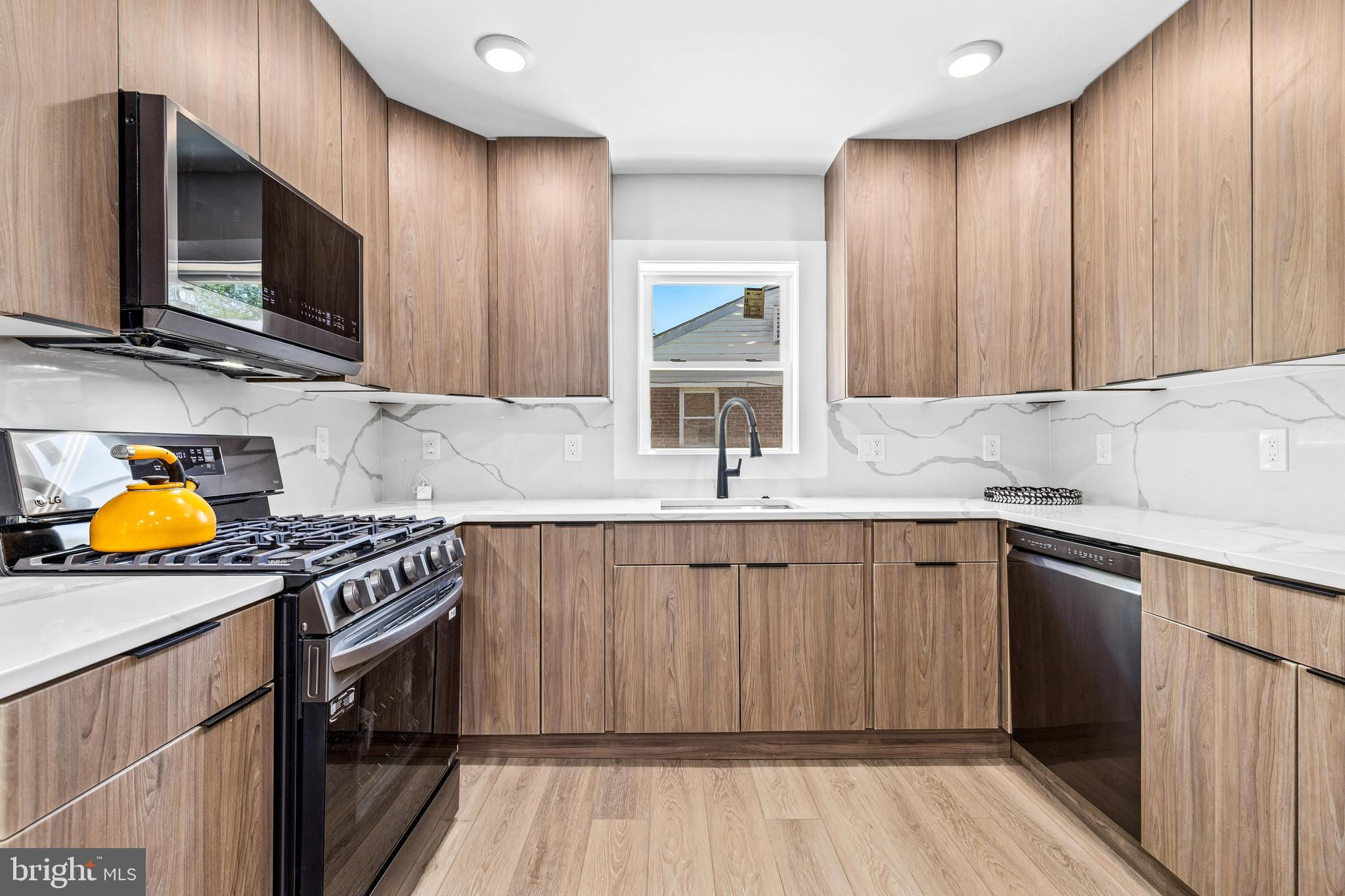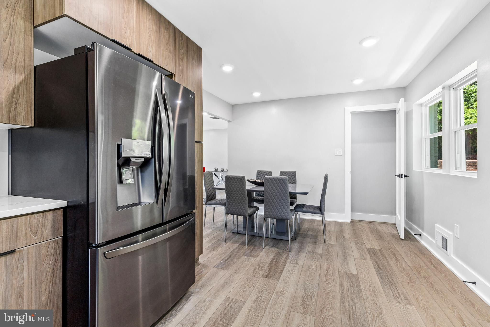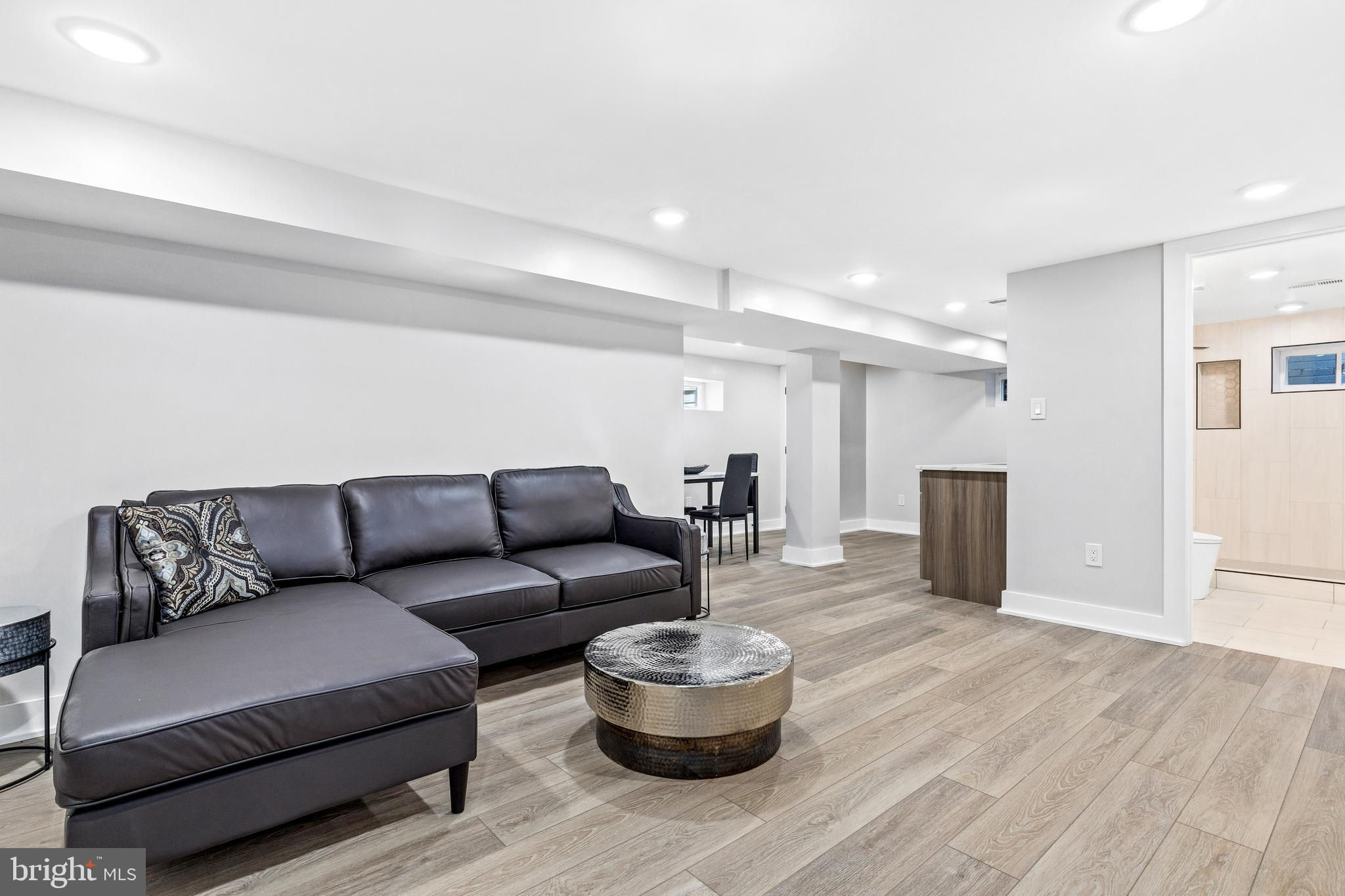Beautiful Top to Bottom High-end Renovation in Hill Crest featuring 4 bedrooms, 3 Bathrooms, Garage, plus a HUGE 12,000+ sqft Lot! Renovations include all new interior features, new electrical, plumbing, HVAC and Roof. Start and end your day on the charming front porch with a ceiling fan inviting you to sit down and relax while overlooking the greenery of your front lawn. Step inside to the contemporary ambiance of the interior, featuring beautiful floors for timeless style and easy upkeep, tall ceilings, recessed lighting, and plenty of windows throughout pouring in natural light. The main level has a transitional floor plan with a living room centered by a handsome fireplace mantle. The bright living room opens to the kitchen and dining area boasting plenty of cabinets, gas cooking, and quartz countertops and backsplash. From the kitchen, escape to your backyard where you can garden, grill and play to your heart’s content. The oversized deck on top of the garage is perfect for dinners al fresco and additional outdoor enjoyment. The main level is completed by 3 sunlit bedrooms and 2 spa-like bathrooms including a primary bedroom with dual closets and an en-suite bathroom. Journey downstairs to the finished lower level with a den, 4th bedroom, full bathroom, garage access, laundry access, and a wet bar area designed for entertaining with a microwave, sink, and wine refrigerator. Conveniently located on a serene street in popular Hill Crest, you'll feel as though you are miles away from the city while being just steps from dining and shopping of Capitol Hill. Easy commute as you're just minutes from 295, 495, Navy Yard, and the National Harbor.