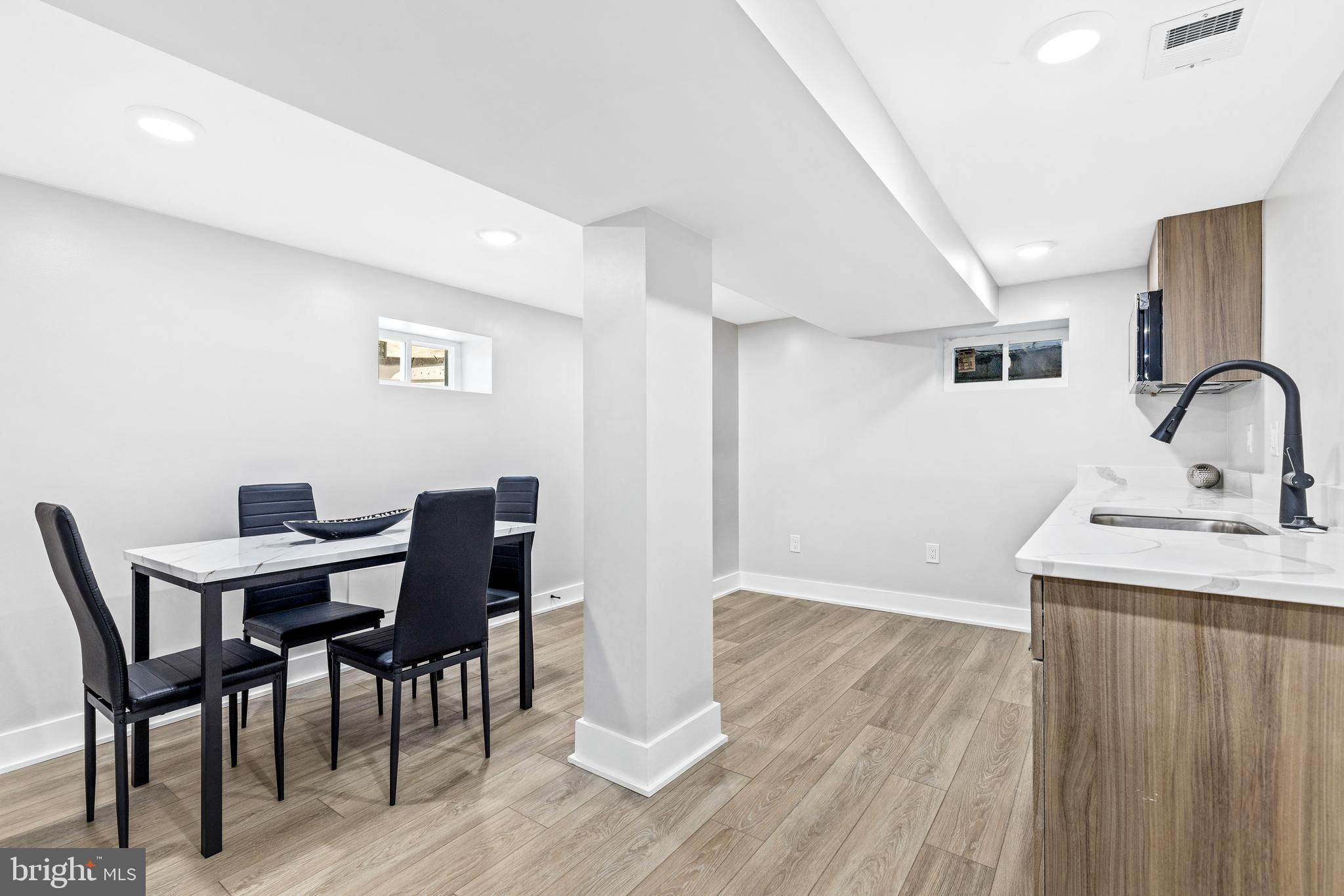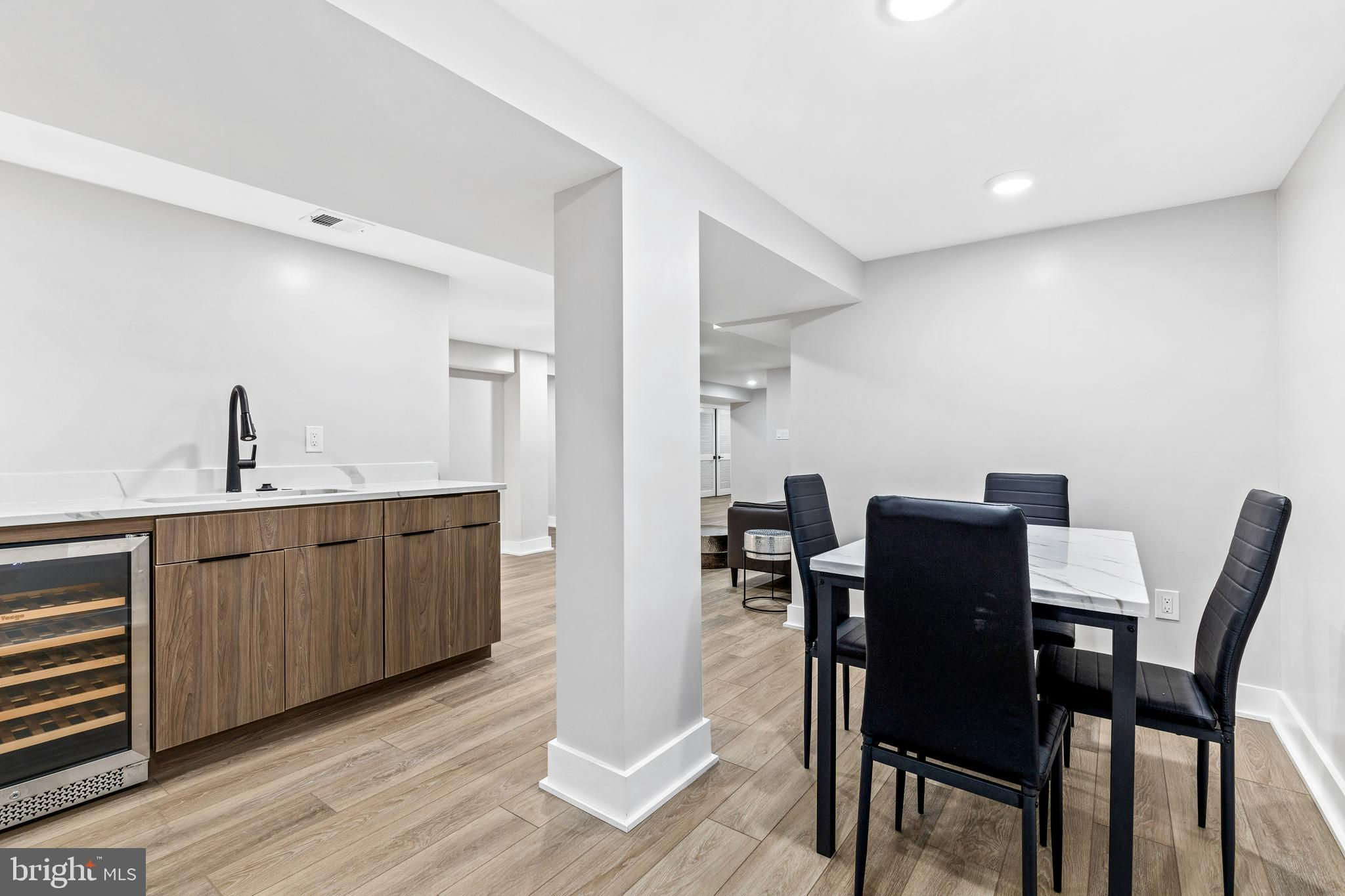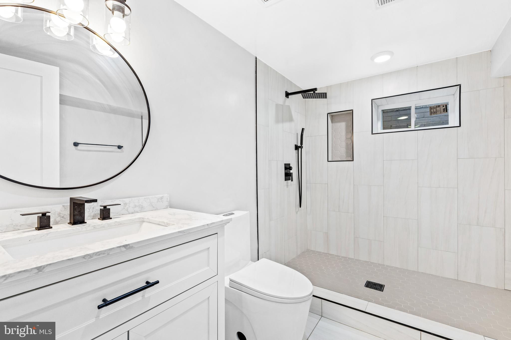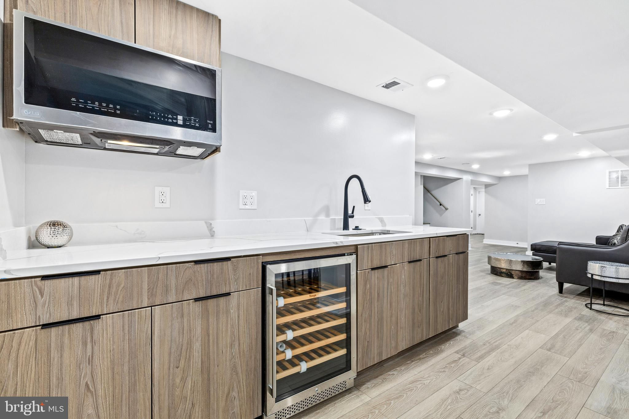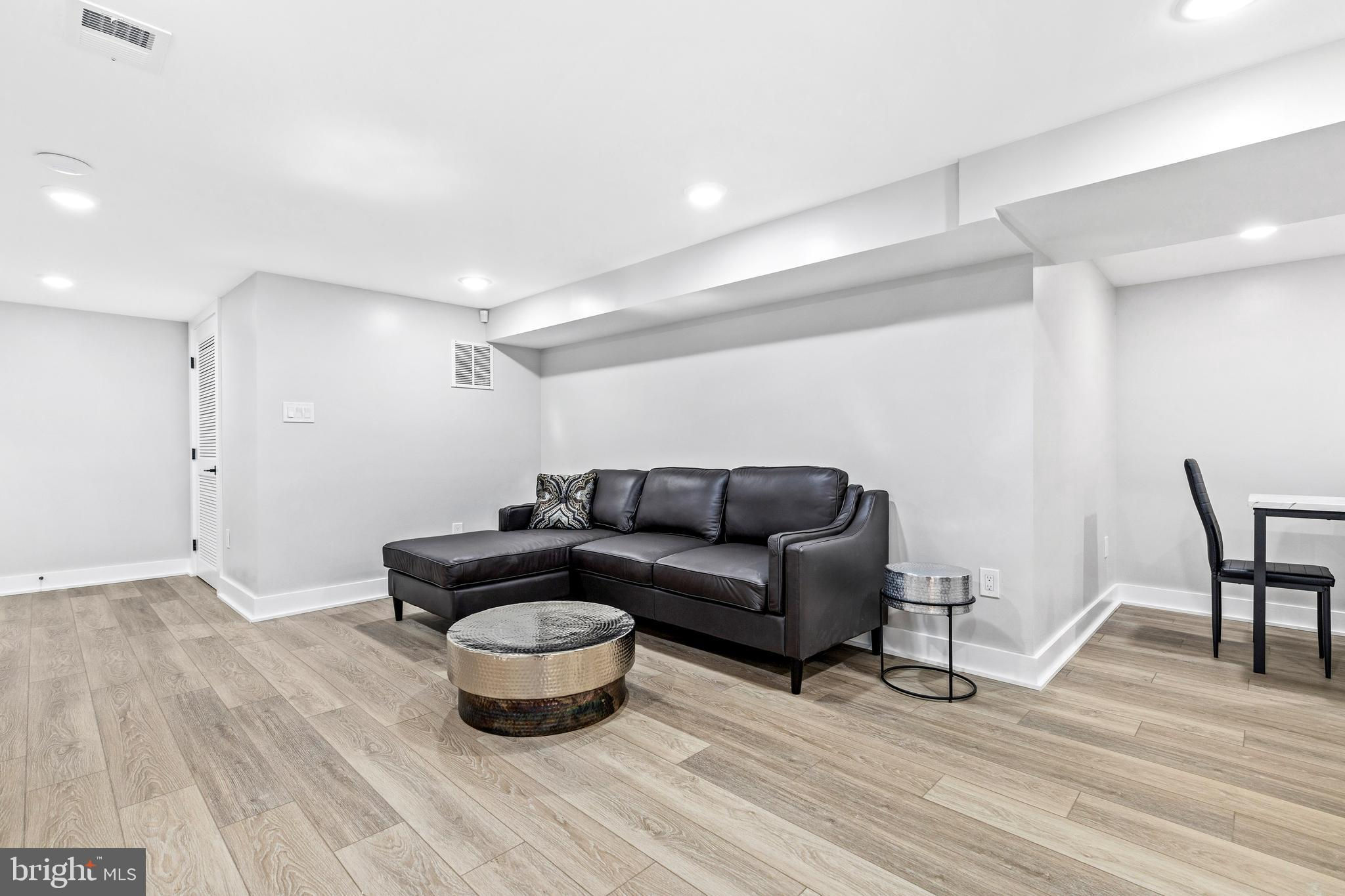 Beautiful Top to Bottom High-end Renovation in Hill Crest featuring 4 bedrooms, 3 Bathrooms, Garage, plus a HUGE 12,000+ sqft Lot! Renovations include all new interior features, new electrical, plumbing, HVAC and Roof. Start and end your day on the charming front porch with a ceiling fan inviting you to sit down and relax while overlooking the greenery of your front lawn. Step inside to the contemporary ambiance of the interior, featuring beautiful floors for timeless style and easy upkeep, tall ceilings, recessed lighting, and plenty of windows throughout pouring in natural light. The main level has a transitional floor plan with a living room centered by a handsome fireplace mantle. The bright living room opens to the kitchen and dining area boasting plenty of cabinets, gas cooking, and quartz countertops and backsplash. From the kitchen, escape to your backyard where you can garden, grill and play to your heart’s content. The oversized deck on top of the garage is perfect for dinners al fresco and additional outdoor enjoyment. The main level is completed by 3 sunlit bedrooms and 2 spa-like bathrooms including a primary bedroom with dual closets and an en-suite bathroom. Journey downstairs to the finished lower level with a den, 4th bedroom, full bathroom, garage access, laundry access, and a wet bar area designed for entertaining with a microwave, sink, and wine refrigerator. Conveniently located on a serene street in popular Hill Crest, you'll feel as though you are miles away from the city while being just steps from dining and shopping of Capitol Hill. Easy commute as you're just minutes from 295, 495, Navy Yard, and the National Harbor.