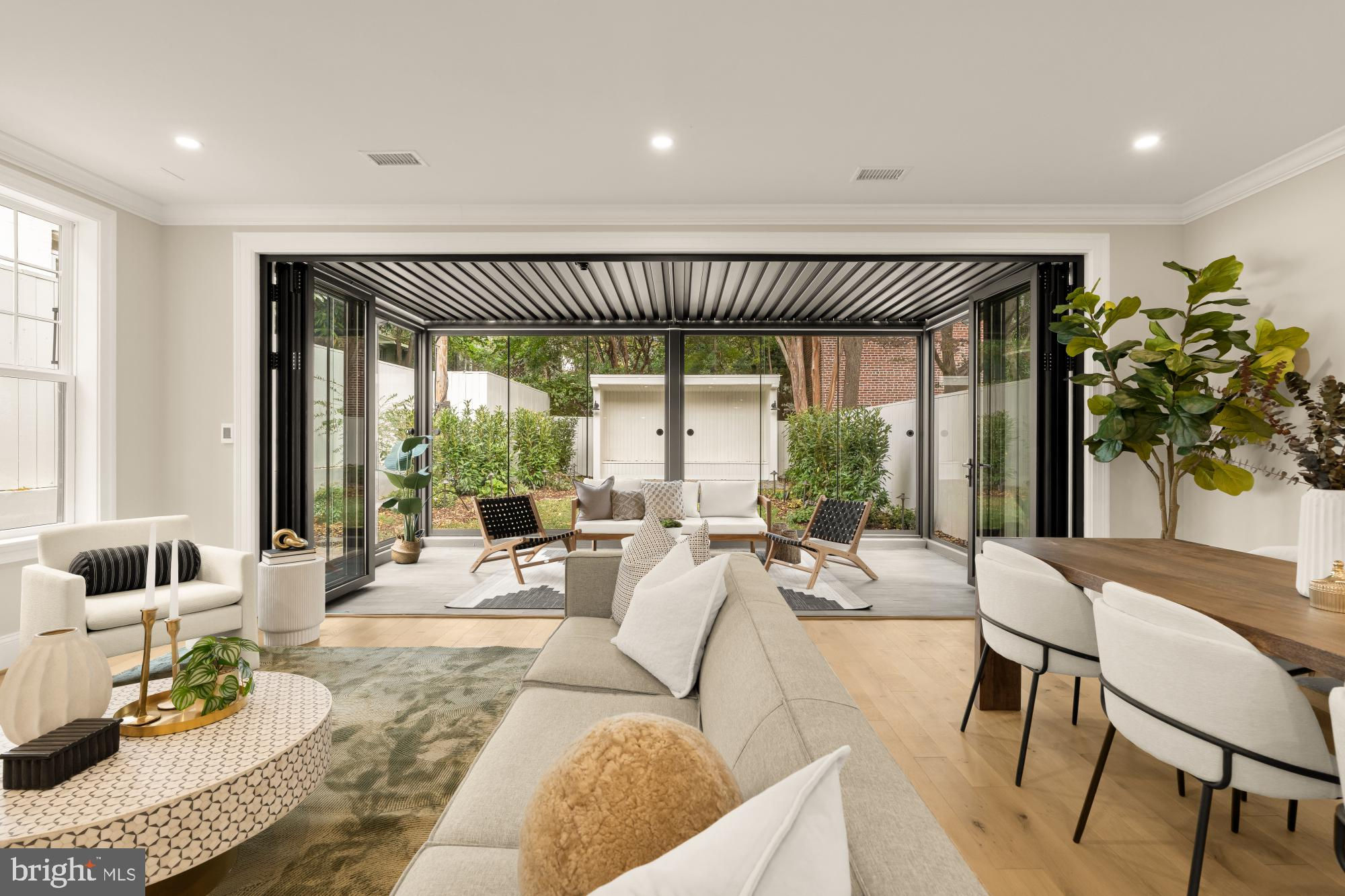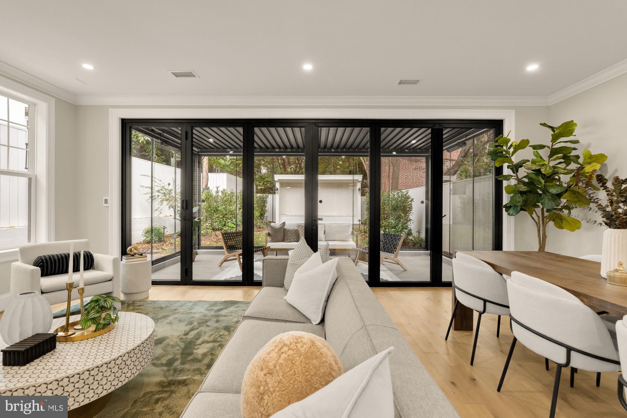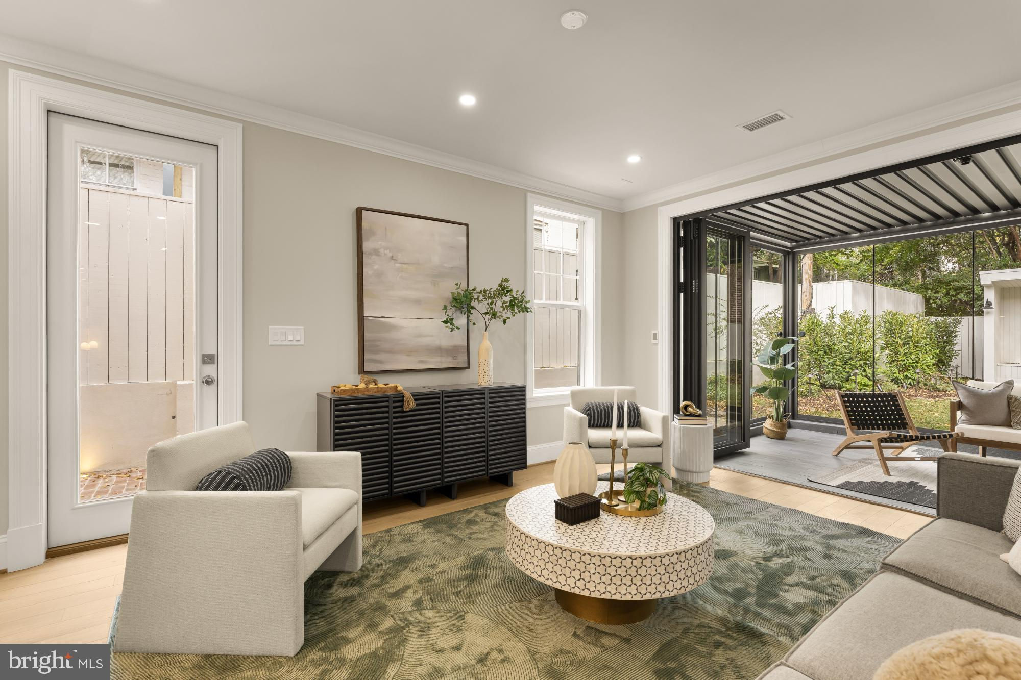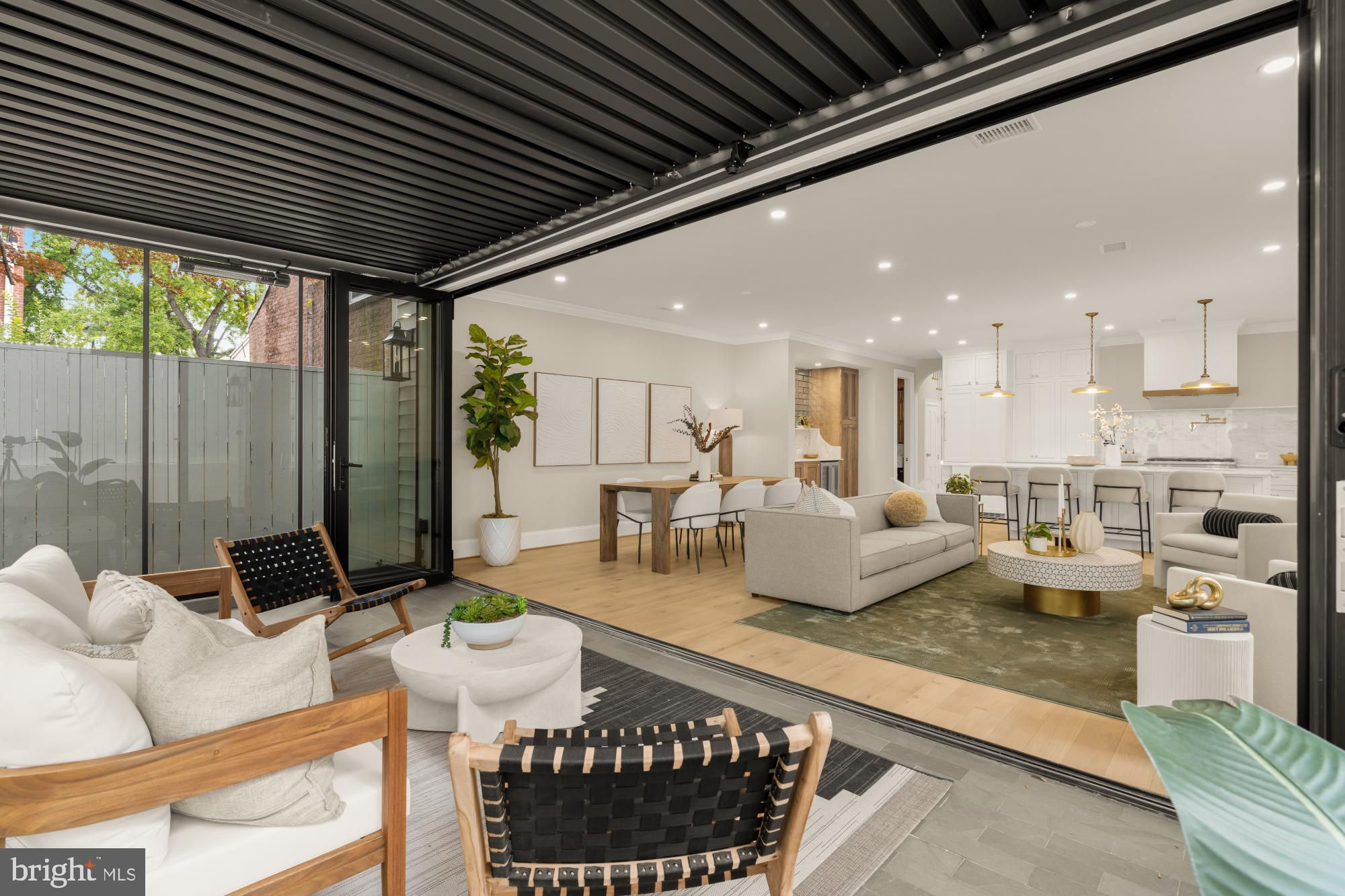Welcome to 3277 Prospect St NW, a masterfully designed and revitalized home with 4 bedrooms, 3.5 baths, and private parking in the heart of Georgetown. Originally built in 1880, the builder meticulously renovated the home from 2024-2025 with an eye for historic preservation and elevated design finishes that make this home one of a kind, particularly for those who delight in hospitality and bringing people together. Upon entering, the home graciously welcomes you with its hardwood floors throughout, high ceilings, arches, and a light-filled living room with a marble surrounds gas fireplace. The wainscoting and crown moulding pay homage to the home’s history, along with pocket doors that connect to the dining room. The French doors in the dining room also offer versatile options for the space, as it leads to the wine cellar underneath the staircase and the remarkable and breathtakingly beautiful addition to the home. The stunning kitchen boasts a large island that will surely be the heart of the home, custom cabinetry, Carrara marble, Liebherr and Miele appliances, and polished nickel Perrin & Rowe finishes. The wet bar with copper sink and a wine cooler is the perfect space for hosting guests, and it may also become a butler’s pantry for everyday use. Most notably, the additional living room and dining area are enclosed by rare to find folding doors that usher you to the sunroom with heated floor tiles and sliding glass doors. There is a side door that leads to a wrought iron gate and the brick paved driveway as well as to the backyard, which is a peaceful oasis with mature landscaping and floor lighting throughout the brick pathway. The sunroom may also be turned to an open pergola, and the exterior addition’s siding is made of Hardiplank. With the exception of the front exterior, this beautiful home has brand new windows throughout. The upper level has 4 very generously sized bedrooms and large closet spaces. Two of the four bedrooms have their own en-suite baths with heated marble floors and marble walls as well. 3277 Prospect St NW is conveniently close to the exciting shops and restaurants of M St NW and Wisconsin Ave NW and is also located mere steps from locally owned and beloved favorites such as Cafe Milano, Peacock Cafe, and La Bonne Vache along Prospect St NW. The perfect marriage of historic charm and modern and elevated bespoke touches, 3277 Prospect St NW is the place to call home. NOTE: Square footage is estimated by third party.