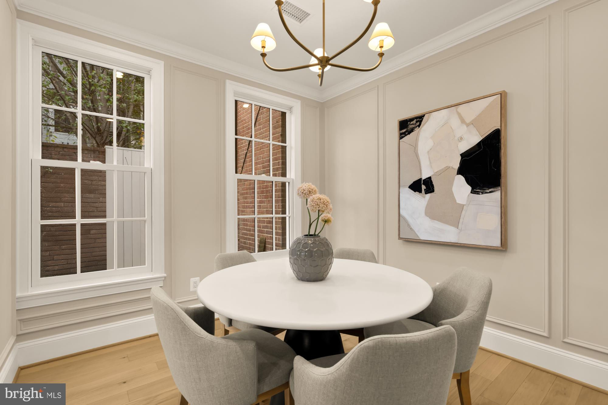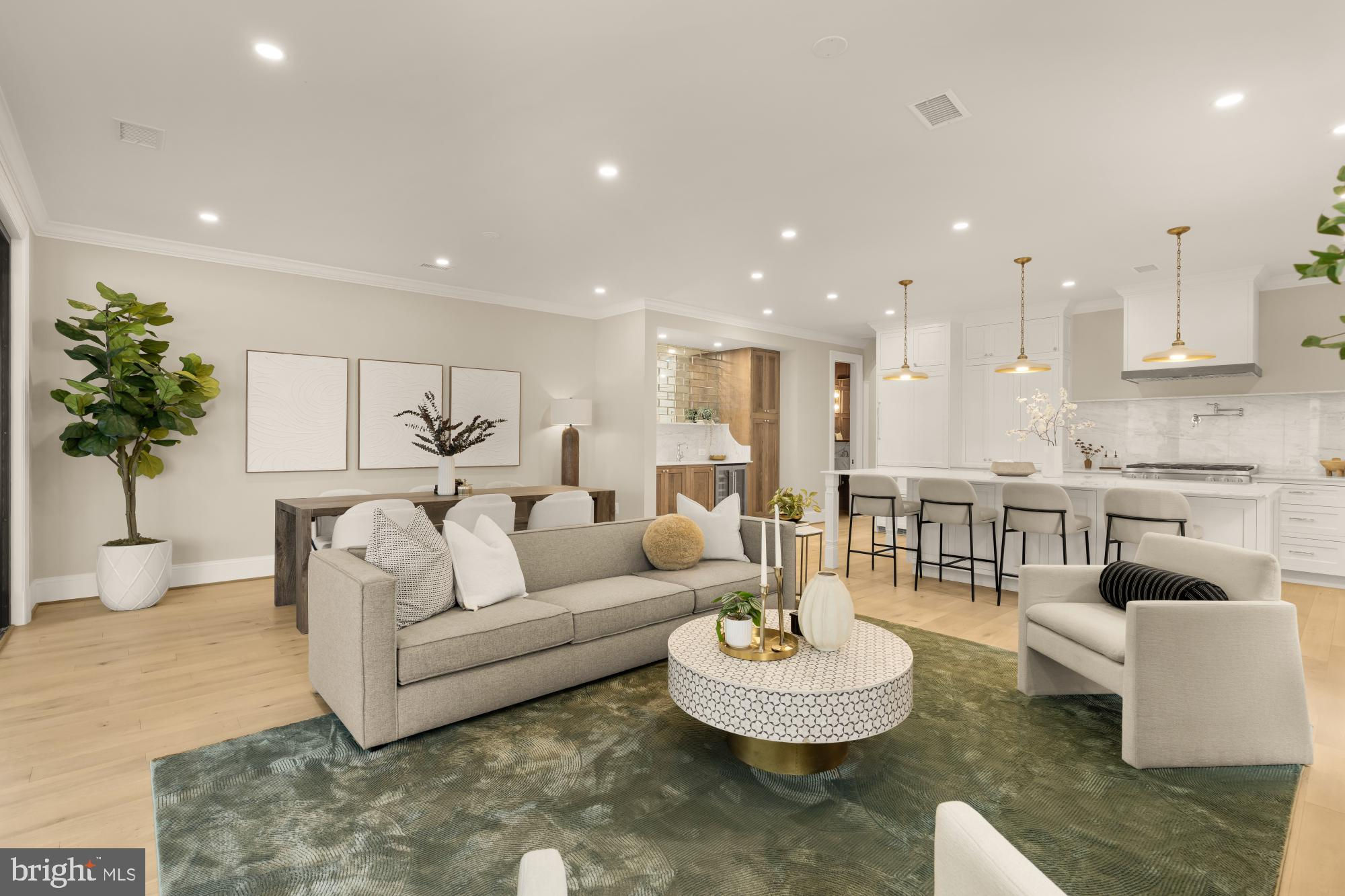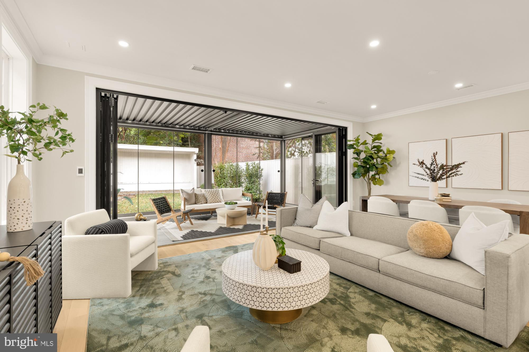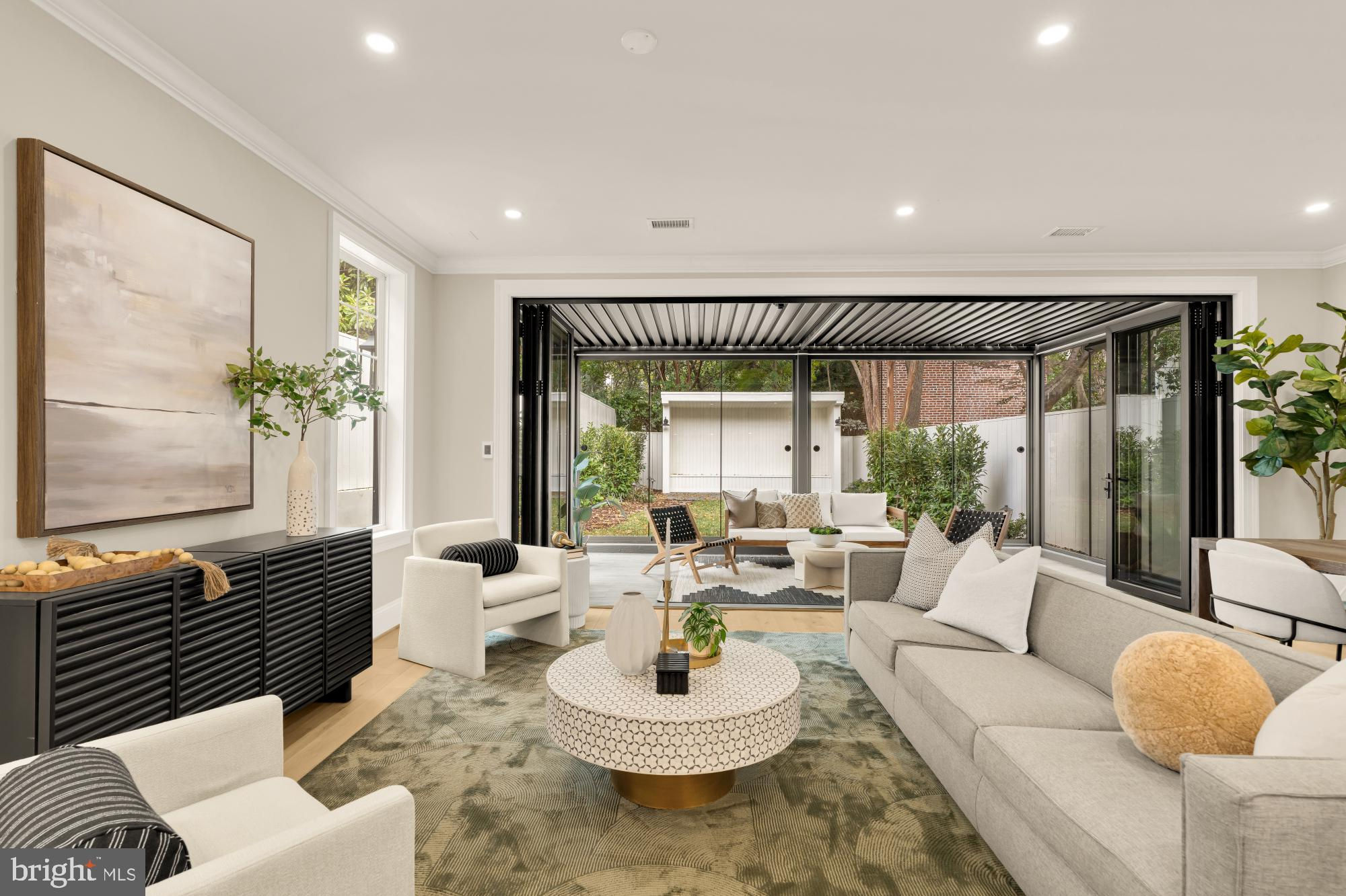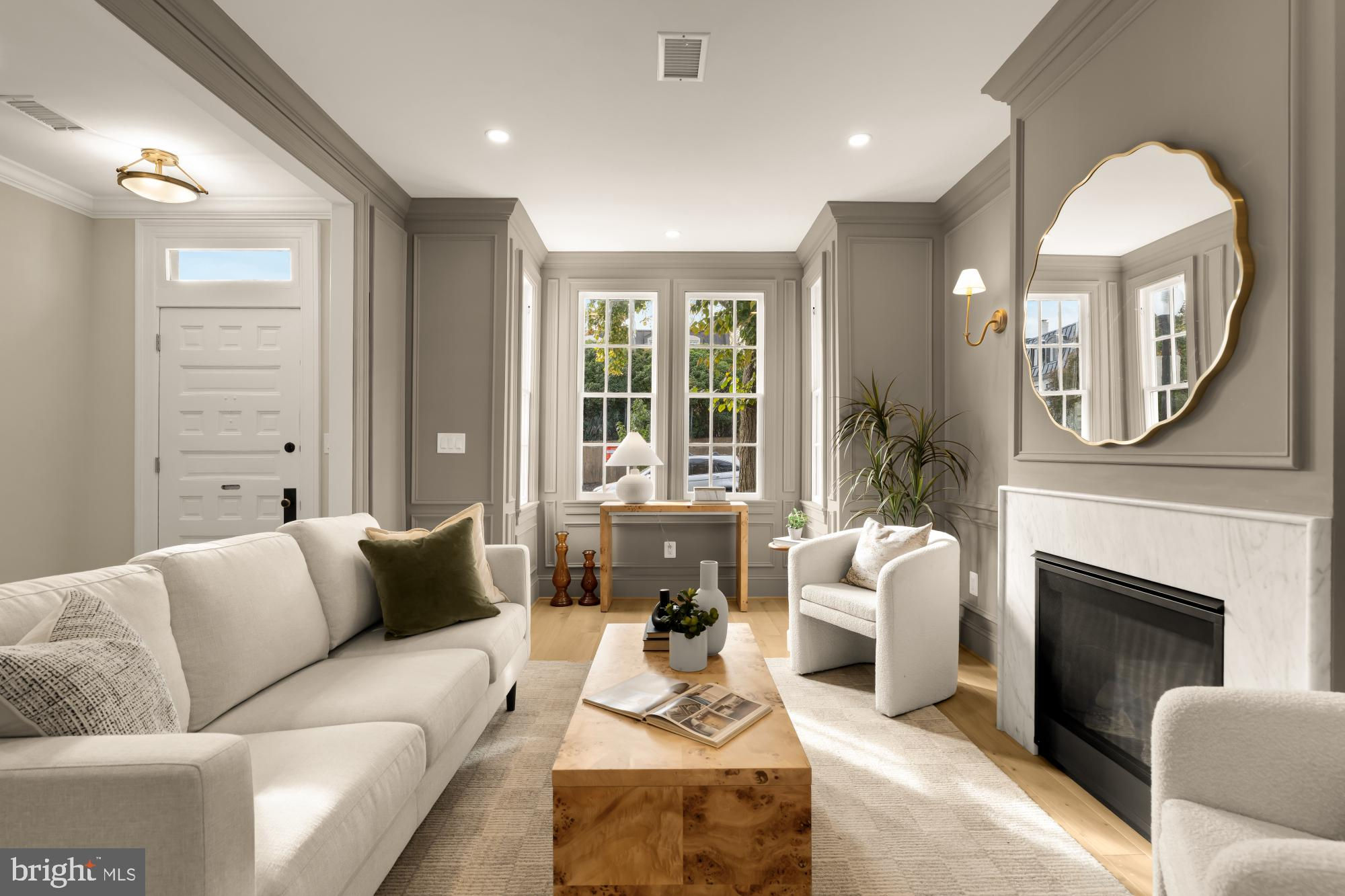 Welcome to 3277 Prospect St NW, a masterfully designed and revitalized home with 4 bedrooms, 3.5 baths, and private parking in the heart of Georgetown. Originally built in 1880, the builder meticulously renovated the home from 2024-2025 with an eye for historic preservation and elevated design finishes that make this home one of a kind, particularly for those who delight in hospitality and bringing people together. Upon entering, the home graciously welcomes you with its hardwood floors throughout, high ceilings, arches, and a light-filled living room with a marble surrounds gas fireplace. The wainscoting and crown moulding pay homage to the home’s history, along with pocket doors that connect to the dining room. The French doors in the dining room also offer versatile options for the space, as it leads to the wine cellar underneath the staircase and the remarkable and breathtakingly beautiful addition to the home. The stunning kitchen boasts a large island that will surely be the heart of the home, custom cabinetry, Carrara marble, Liebherr and Miele appliances, and polished nickel Perrin & Rowe finishes. The wet bar with copper sink and a wine cooler is the perfect space for hosting guests, and it may also become a butler’s pantry for everyday use. Most notably, the additional living room and dining area are enclosed by rare to find folding doors that usher you to the sunroom with heated floor tiles and sliding glass doors. There is a side door that leads to a wrought iron gate and the brick paved driveway as well as to the backyard, which is a peaceful oasis with mature landscaping and floor lighting throughout the brick pathway. The sunroom may also be turned to an open pergola, and the exterior addition’s siding is made of Hardiplank. With the exception of the front exterior, this beautiful home has brand new windows throughout. The upper level has 4 very generously sized bedrooms and large closet spaces. Two of the four bedrooms have their own en-suite baths with heated marble floors and marble walls as well. 3277 Prospect St NW is conveniently close to the exciting shops and restaurants of M St NW and Wisconsin Ave NW and is also located mere steps from locally owned and beloved favorites such as Cafe Milano, Peacock Cafe, and La Bonne Vache along Prospect St NW. The perfect marriage of historic charm and modern and elevated bespoke touches, 3277 Prospect St NW is the place to call home. NOTE: Square footage is estimated by third party.