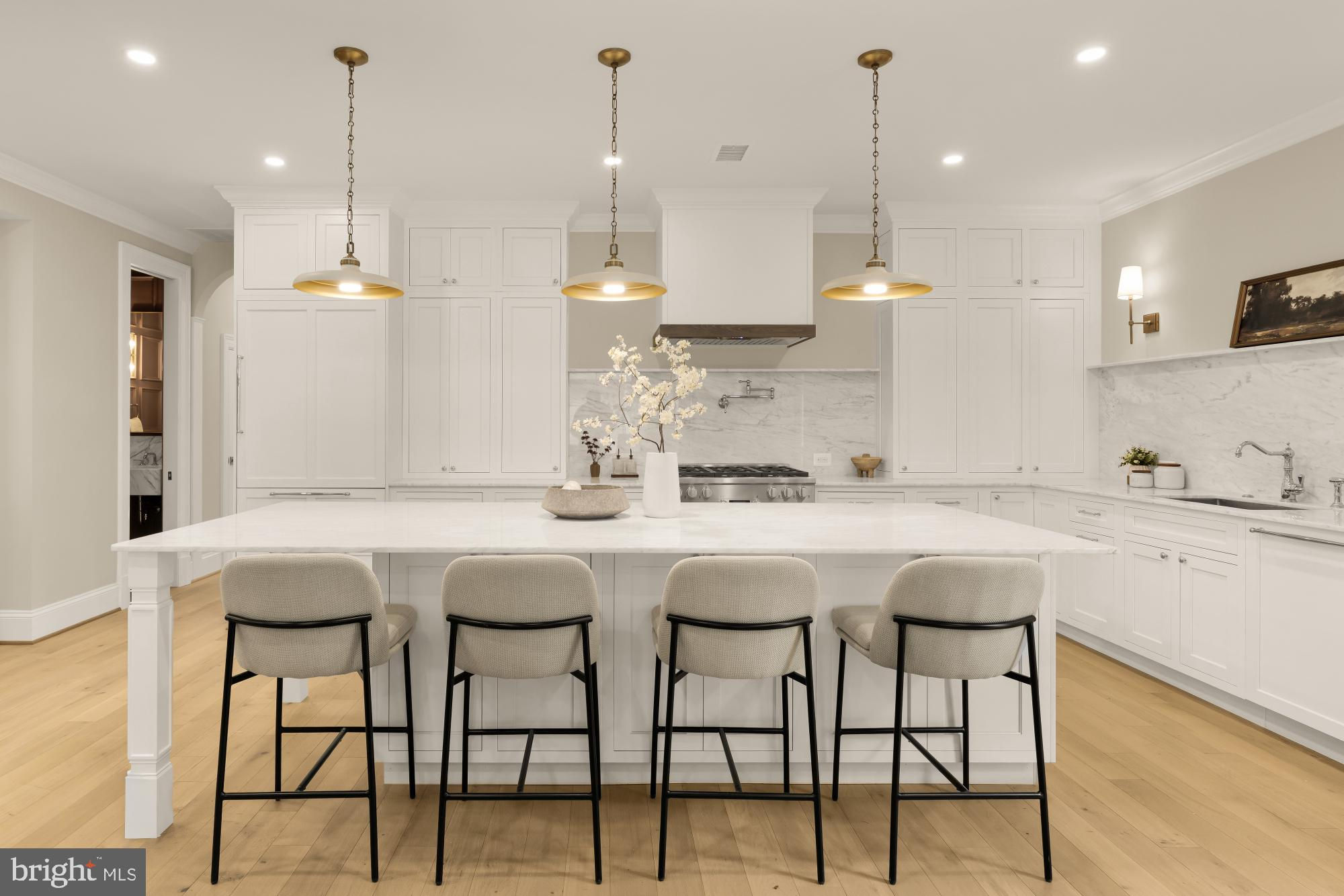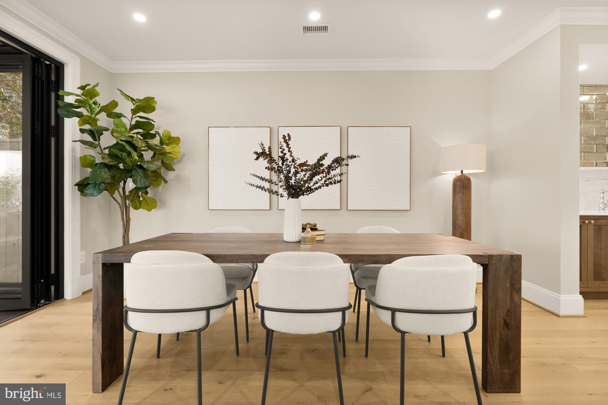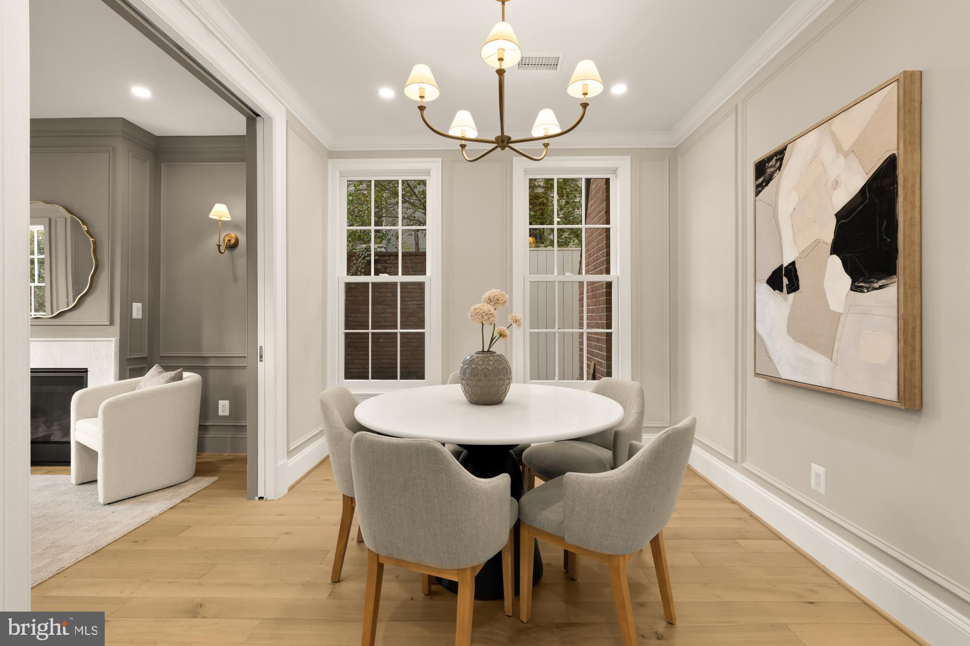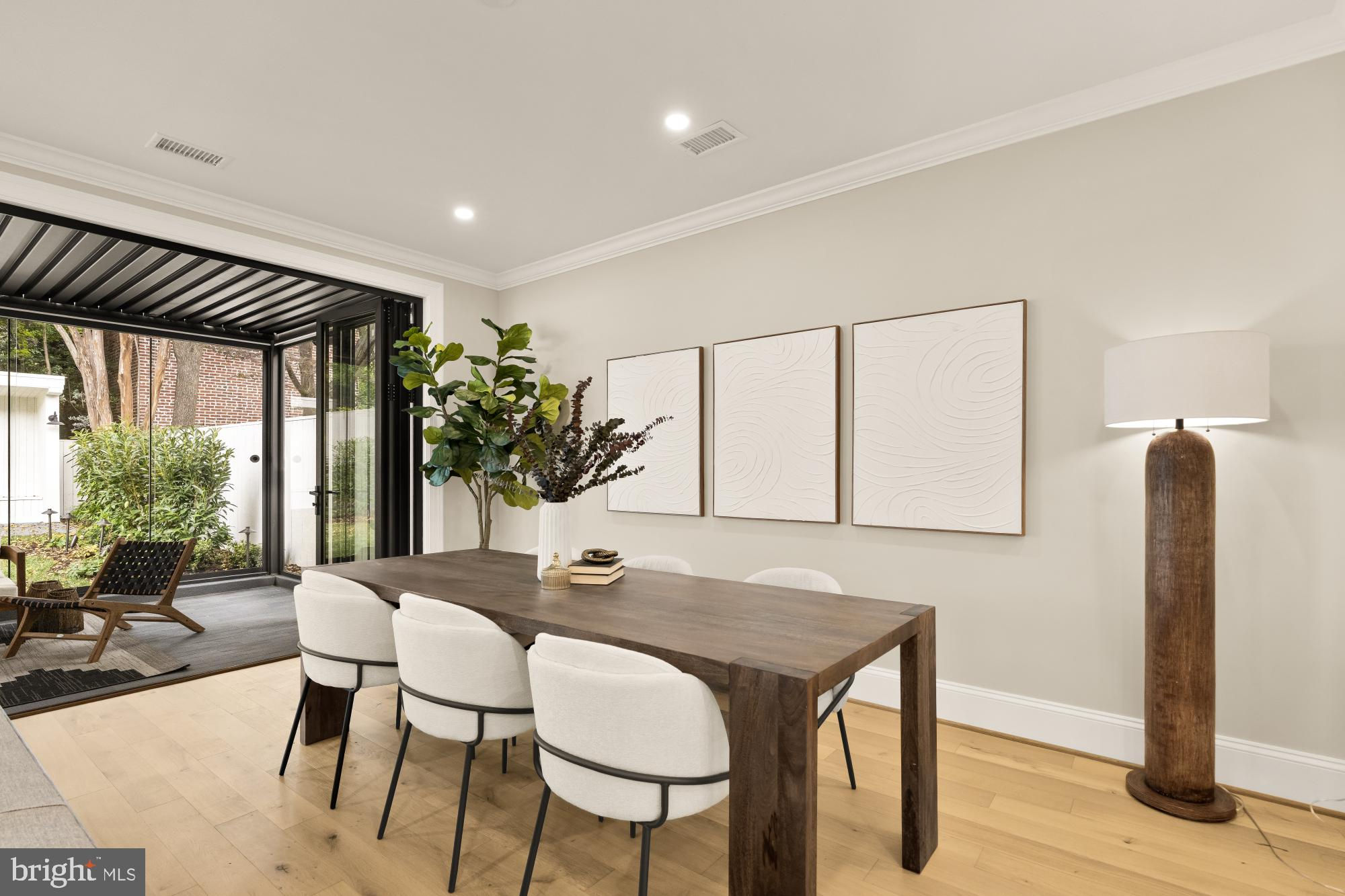 Welcome to 3277 Prospect St NW, a masterfully designed and revitalized home with 4 bedrooms, 3.5 baths, and private parking in the heart of Georgetown. Originally built in 1880, the builder meticulously renovated the home from 2024-2025 with an eye for historic preservation and elevated design finishes that make this home one of a kind, particularly for those who delight in hospitality and bringing people together. Upon entering, the home graciously welcomes you with its hardwood floors throughout, high ceilings, arches, and a light-filled living room with a marble surrounds gas fireplace. The wainscoting and crown moulding pay homage to the home’s history, along with pocket doors that connect to the dining room. The French doors in the dining room also offer versatile options for the space, as it leads to the wine cellar underneath the staircase and the remarkable and breathtakingly beautiful addition to the home. The stunning kitchen boasts a large island that will surely be the heart of the home, custom cabinetry, Carrara marble, Liebherr and Miele appliances, and polished nickel Perrin & Rowe finishes. The wet bar with copper sink and a wine cooler is the perfect space for hosting guests, and it may also become a butler’s pantry for everyday use. Most notably, the additional living room and dining area are enclosed by rare to find folding doors that usher you to the sunroom with heated floor tiles and sliding glass doors. There is a side door that leads to a wrought iron gate and the brick paved driveway as well as to the backyard, which is a peaceful oasis with mature landscaping and floor lighting throughout the brick pathway. The sunroom may also be turned to an open pergola, and the exterior addition’s siding is made of Hardiplank. With the exception of the front exterior, this beautiful home has brand new windows throughout. The upper level has 4 very generously sized bedrooms and large closet spaces. Two of the four bedrooms have their own en-suite baths with heated marble floors and marble walls as well. 3277 Prospect St NW is conveniently close to the exciting shops and restaurants of M St NW and Wisconsin Ave NW and is also located mere steps from locally owned and beloved favorites such as Cafe Milano, Peacock Cafe, and La Bonne Vache along Prospect St NW. The perfect marriage of historic charm and modern and elevated bespoke touches, 3277 Prospect St NW is the place to call home. NOTE: Square footage is estimated by third party.
