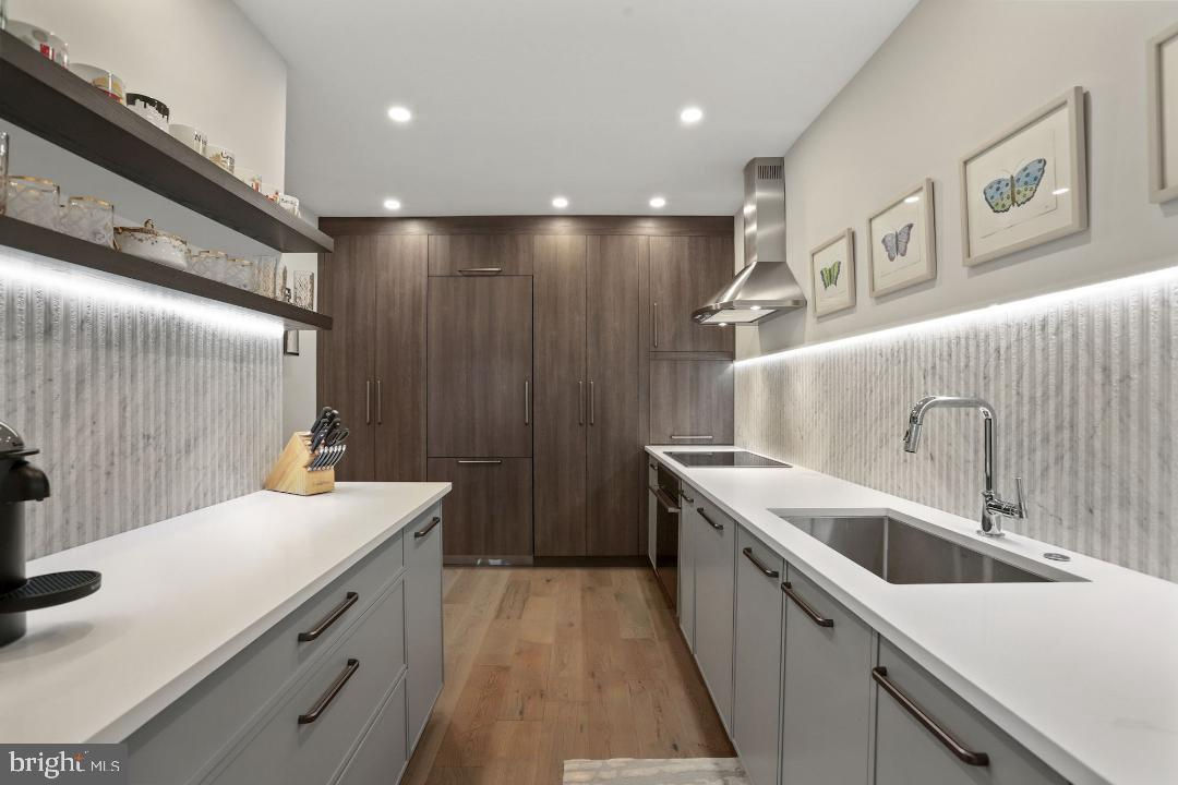 Welcome to this stunning 2 bedroom, 2.5 bathroom townhouse-style condo featuring 2 levels of luxury living in popular Sutton Place. This sought-after “C” level unit presents a private terrace with southern exposures. From the front patio, step inside this modern renovation designed for easy entertaining. The bright and airy living room is centered by a handsome fireplace and effortlessly transitions to the dining area. The sleek kitchen is a chef's dream with thoughtful built-in storage and cabinetry, Caesarstone countertops, and Architessa Pannelli Bianco Carrara Textured backsplash. Additional design details include plugs on one side of the kitchen that retract underneath the counters, Bosch refrigerator, GE Monogram Minimalist collection cooktop and oven, GE Monogram Smart Fully Integrated dishwasher, and an appliance barn to store coffee makers and additional items. The powder room on the main level is conveniently tucked away. From the living room, escape to your private rear patio for outdoor relaxation and dinners al fresco. The bedroom level has 2 bedrooms and 2 bathrooms including a primary bedroom with en-suite bathroom. The bathrooms are crisply tiled with natural stone floors, lighted mirrors, and recessed lighting. Sutton Place is a pet friendly, amenity rich condo featuring 2 Car Parking, 24 hour security gate, community pool, bike storage, BBQ area, and tennis courts. Condo fee includes cable and internet. Welcome home!
