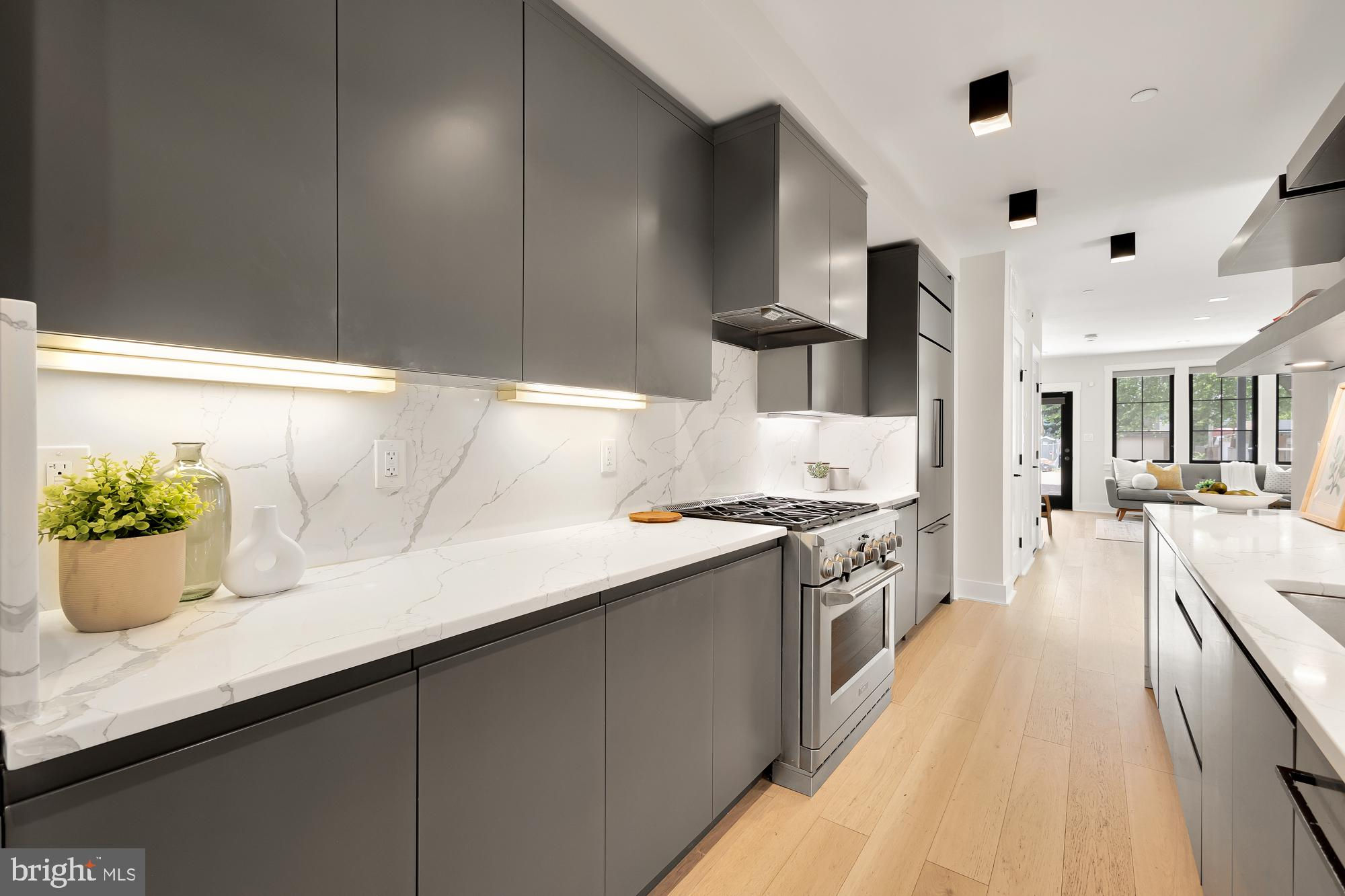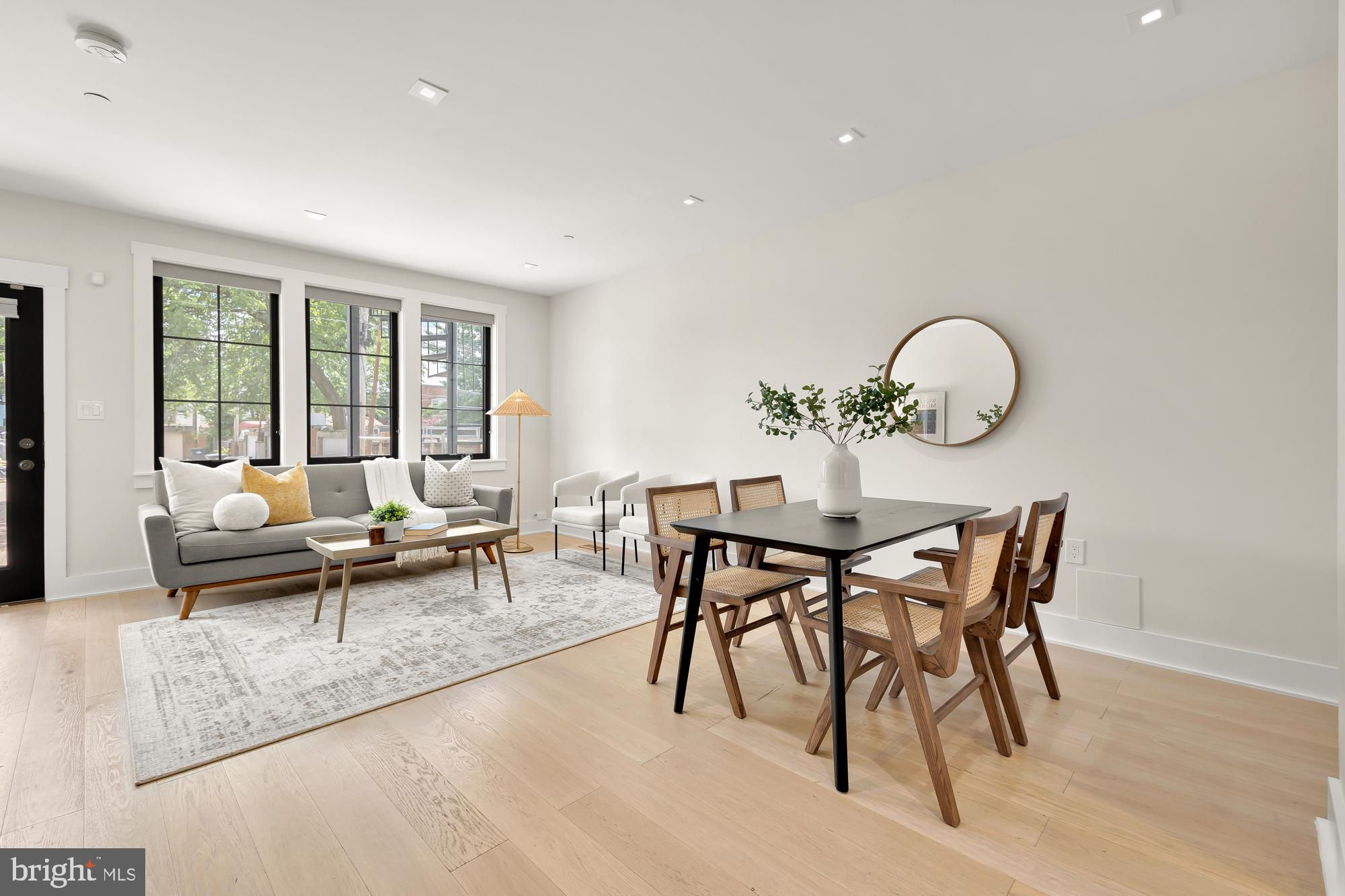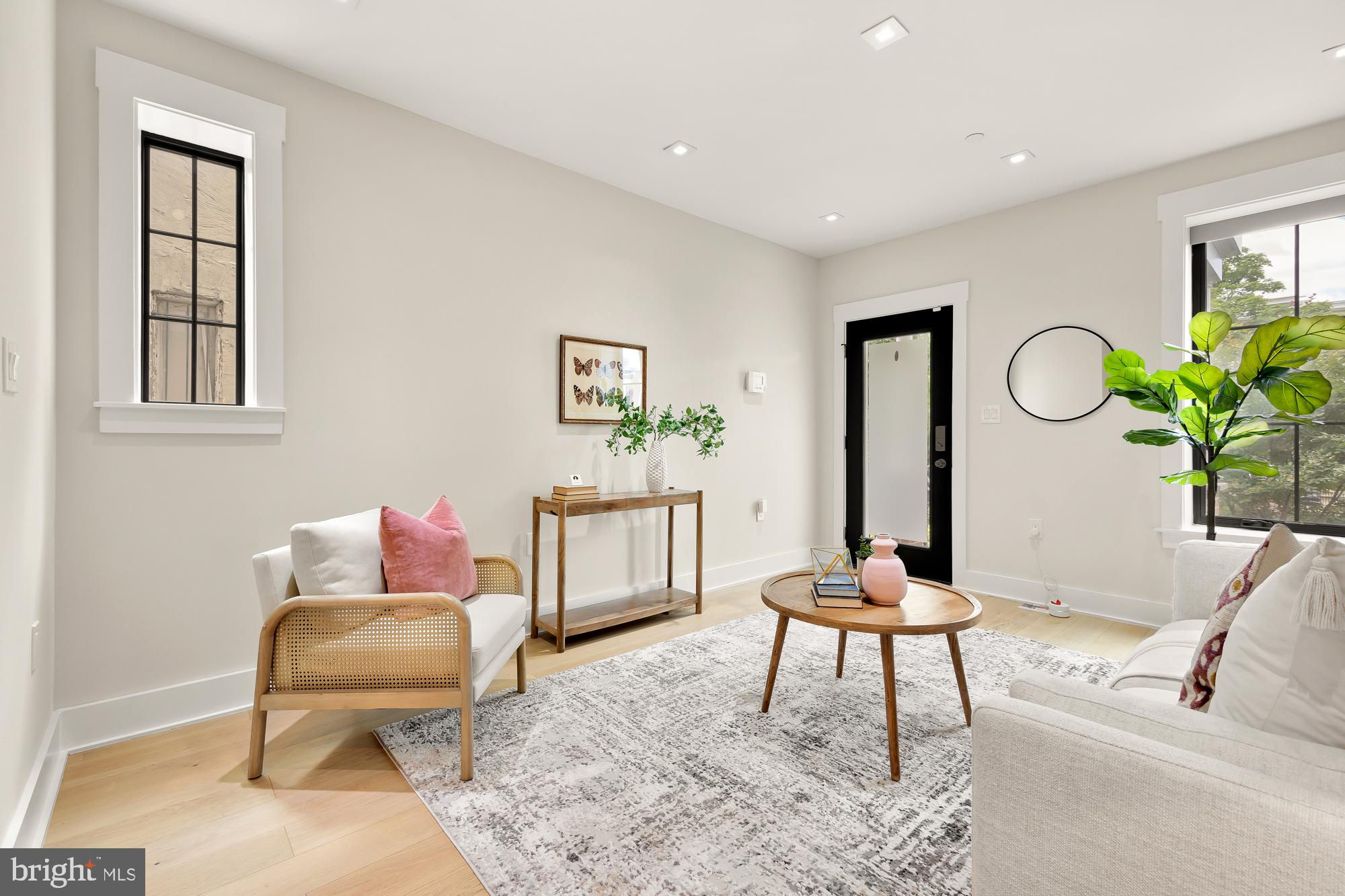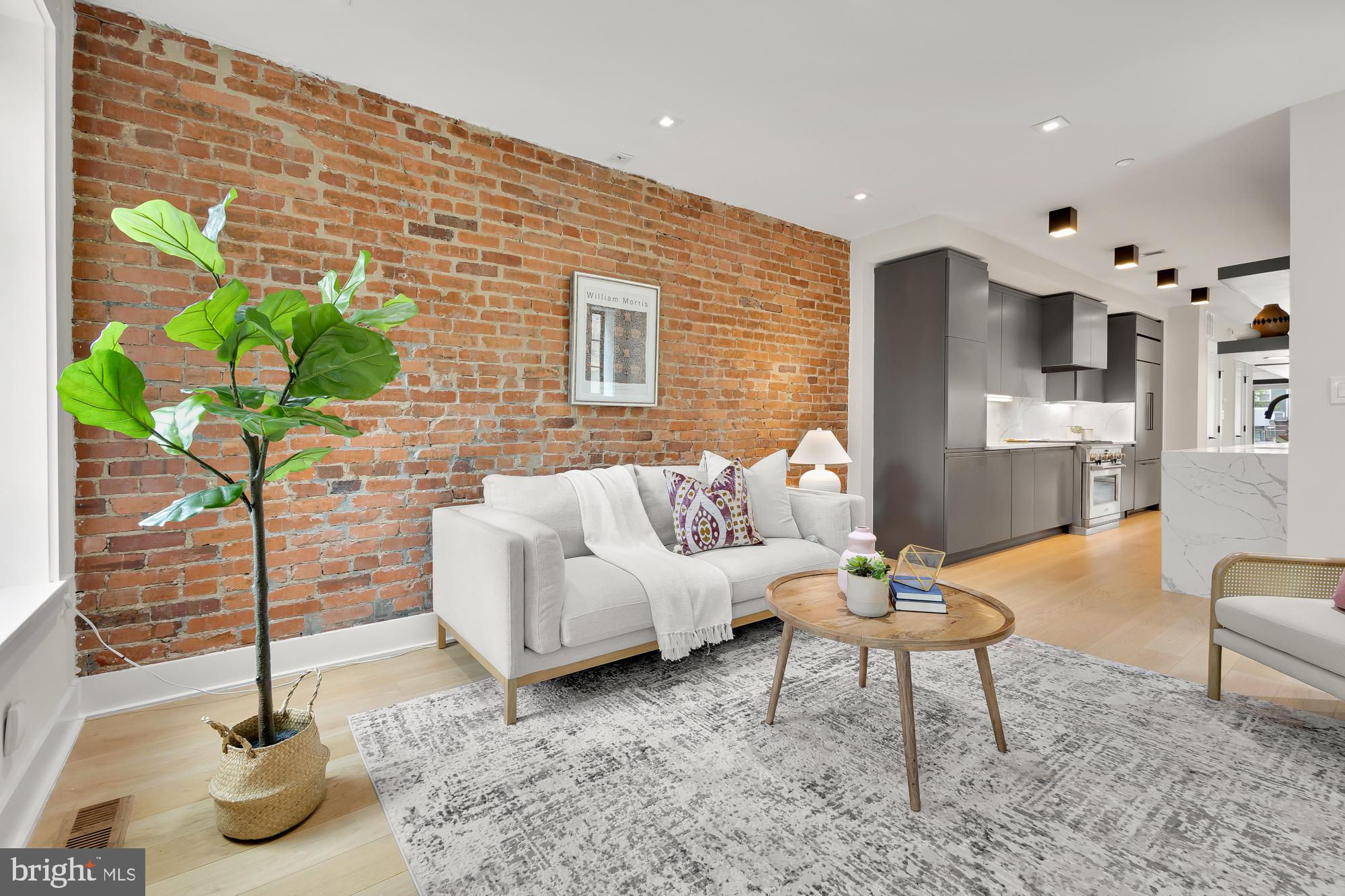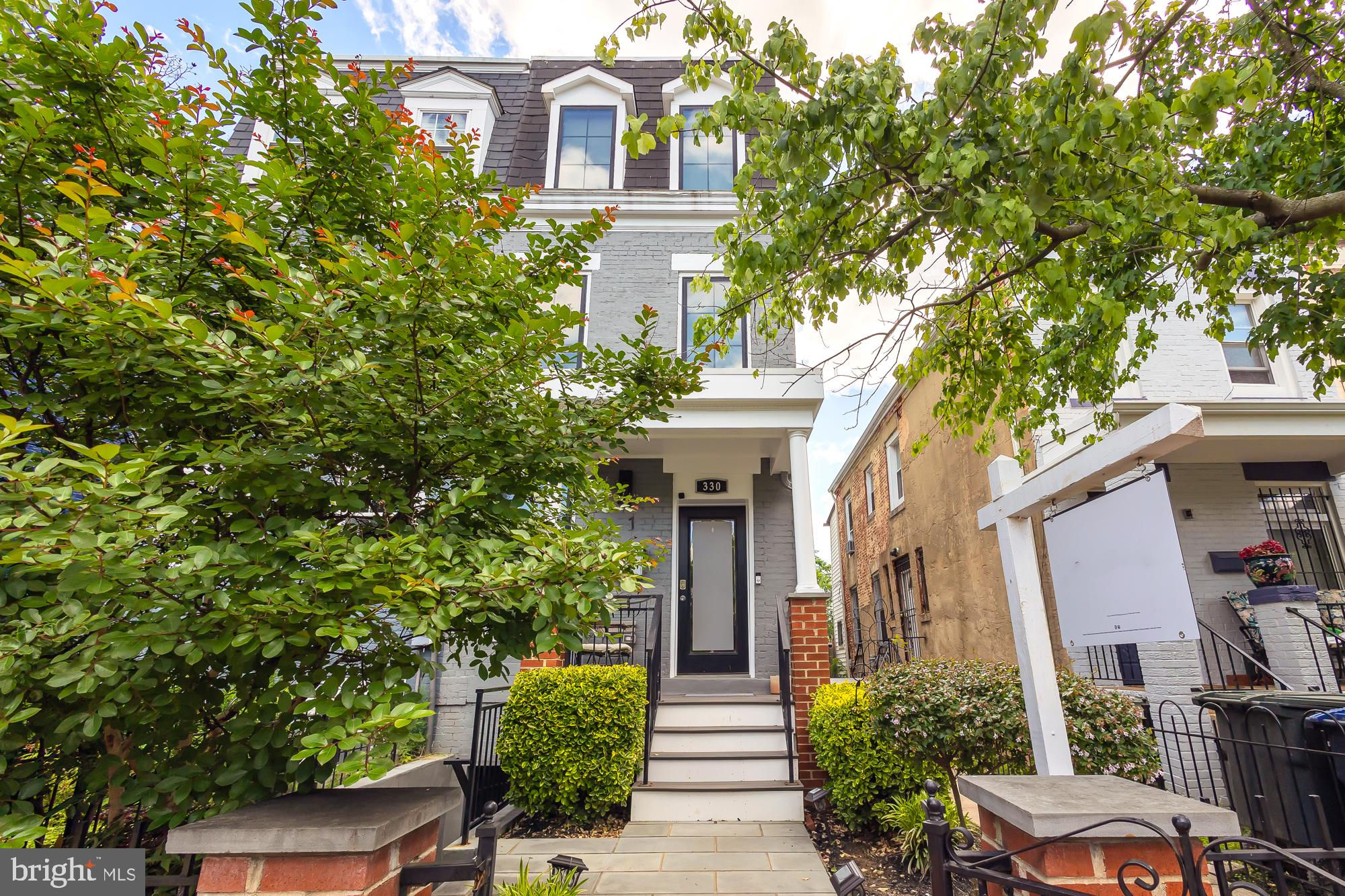 Modern & Luxurious, 330 16th St SE #1 is 1,500+ sq ft of perfection, with eye-catching, custom finishes. Walking through your private entrance you are greeted by wide plank white oak flooring, stunning exposed brick, and modern square recessed lighting. The chef’s kitchen is dazzling, there is no angle you won’t admire the sleek finishes and professional-grade Monogram appliances from. The kitchen boasts, rich gray cabinetry, open shelving, and white quartz, all illuminated under stylish black can lighting. Beyond the kitchen, the spacious family room is flooded with natural light, and adjoins an open dining area with direct outdoor access to the rear balcony, and private parking. The playful half bathroom adorned with green palms completes the main level. The primary suite is truly over-sized, and boasts a spa-like ensuite bathroom, as well as a walk-in closet. The home is rounded out with a second bedroom and immediately adjacent bathroom, completed with the same modern and stylish finishes. Premium amenities such as custom window treatments, and assigned parking are found here. Merely blocks away from Eastern Market, Trader Joe’s, Lincoln Park, and public transit, the home is never more than a few minutes to restaurants, shops, and entertainment. A unique offering in the city, 330 16th Street SE #1 lives like a townhome. The premium amenities, luxurious finishes, and an excellent location create one truly desirable package!