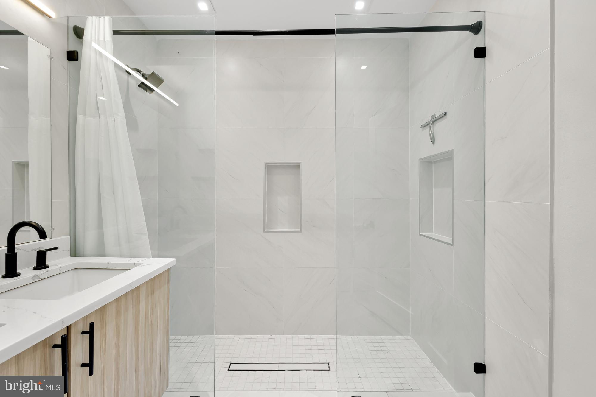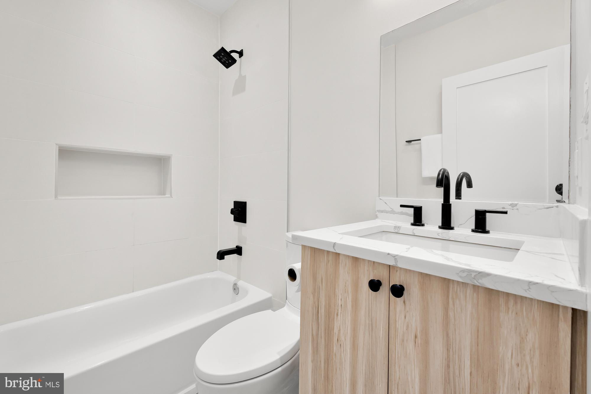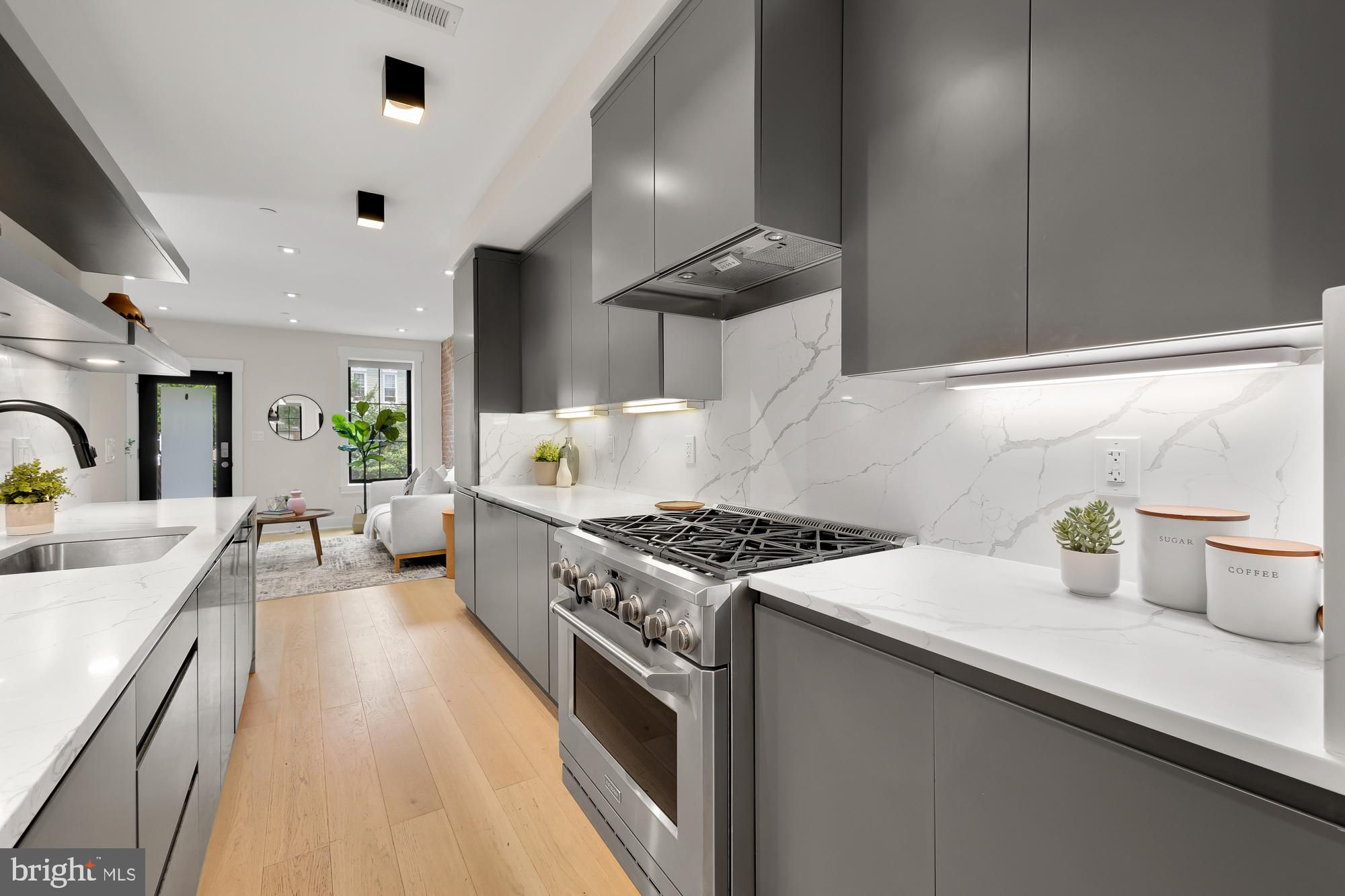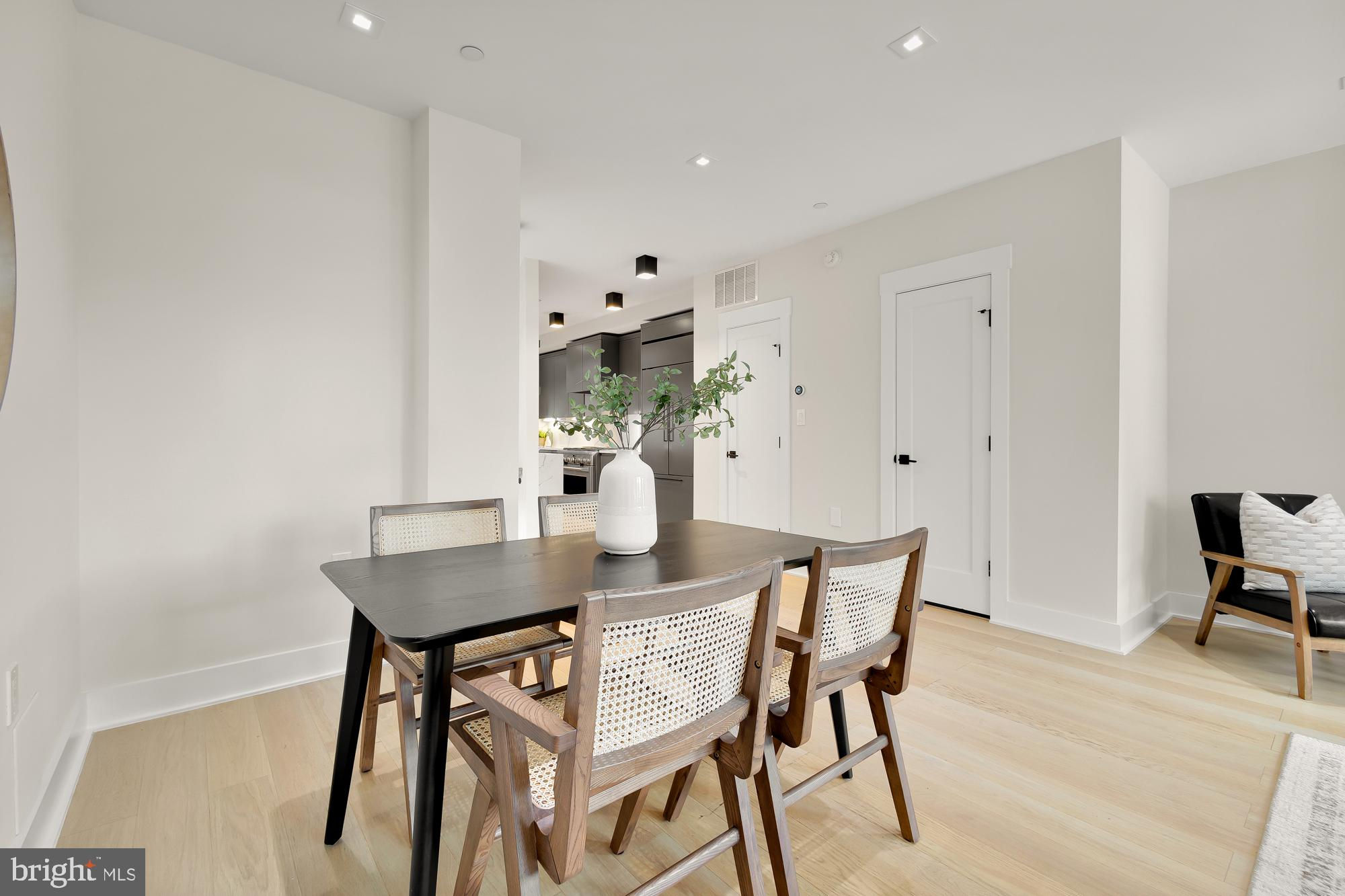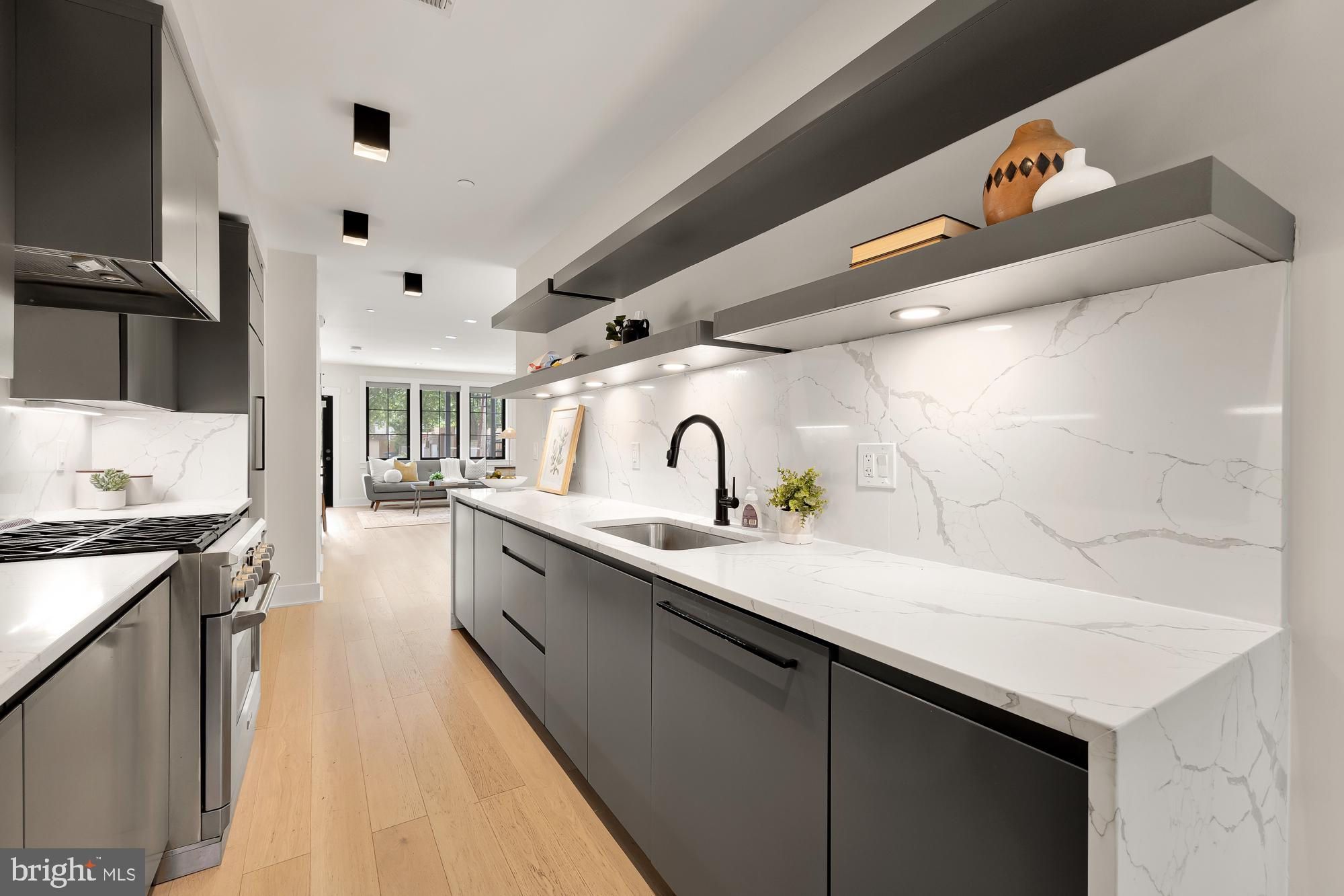 Modern & Luxurious, 330 16th St SE #1 is 1,500+ sq ft of perfection, with eye-catching, custom finishes. Walking through your private entrance you are greeted by wide plank white oak flooring, stunning exposed brick, and modern square recessed lighting. The chef’s kitchen is dazzling, there is no angle you won’t admire the sleek finishes and professional-grade Monogram appliances from. The kitchen boasts, rich gray cabinetry, open shelving, and white quartz, all illuminated under stylish black can lighting. Beyond the kitchen, the spacious family room is flooded with natural light, and adjoins an open dining area with direct outdoor access to the rear balcony, and private parking. The playful half bathroom adorned with green palms completes the main level. The primary suite is truly over-sized, and boasts a spa-like ensuite bathroom, as well as a walk-in closet. The home is rounded out with a second bedroom and immediately adjacent bathroom, completed with the same modern and stylish finishes. Premium amenities such as custom window treatments, and assigned parking are found here. Merely blocks away from Eastern Market, Trader Joe’s, Lincoln Park, and public transit, the home is never more than a few minutes to restaurants, shops, and entertainment. A unique offering in the city, 330 16th Street SE #1 lives like a townhome. The premium amenities, luxurious finishes, and an excellent location create one truly desirable package!