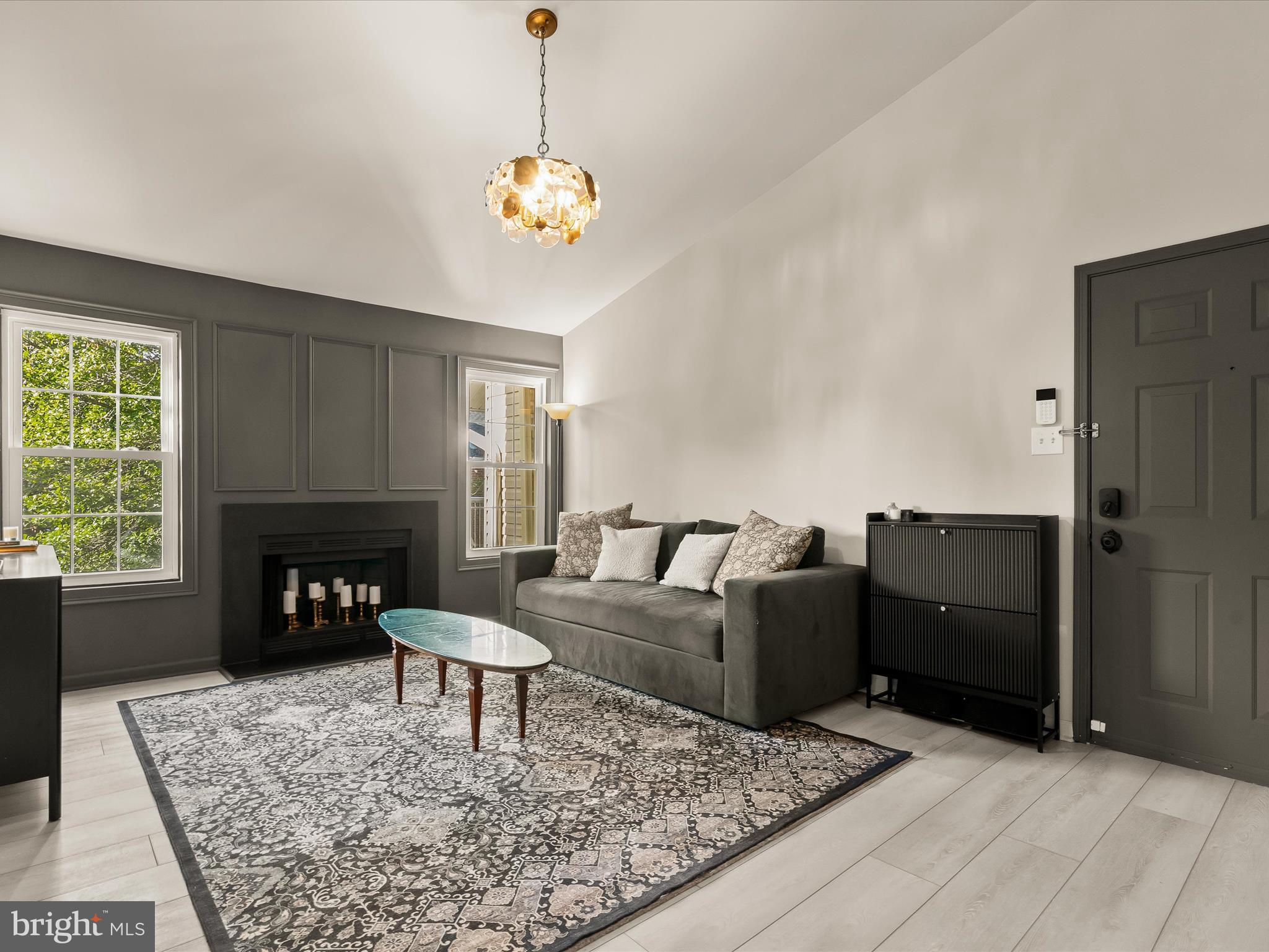 Urban Oasis in Alexandria Awaits! Don't miss the 3D Matterport Virtual Tour! Welcome to your spacious top-floor retreat at the highly coveted Pointe at Park Center, a gated community in the heart of Alexandria that blends convenience, comfort, and style. Nestled just moments from vibrant Shirlington, this serene enclave offers the perfect balance of quiet living and easy access to everything you love. Step inside to soaring vaulted ceilings and an airy open floor plan, where modern LVP floors, designer light fixtures, and abundant natural light set the tone. The sun-filled living room invites you to unwind by the wood-burning fireplace, beautifully accented with a sleek surround and custom millwork (2024). Just beyond, a flexible dining area doubles as a perfect home office and flows seamlessly to the oversized balcony, ideal for morning coffee or evening cocktails with lush, tree-lined views. The entire unit was newly repainted in 2024, in sophisticated hues that feel straight out of a designer’s playbook, bringing in warmth and modern allure. The stylish kitchen features crisp white cabinetry, gleaming new quartz countertops(2024), stainless steel appliances (2024), a spacious pantry (2024), and convenient counter seating, perfect for casual meals or entertaining friends. The generously sized bedroom offers natural light and a walk-in closet with space to spare. The en-suite bathroom feels like a boutique spa, complete with an oversized vanity, updated mirror and lighting (2024), a waterfall faucet, and ample storage. A bonus in-unit washer and dryer, tucked away with extra storage space, makes daily living effortless. Outside your door, enjoy community amenities including an outdoor swimming pool, a fitness center with new top-of-the-line equipment, a sauna, a bright and spacious clubhouse, a basketball/recreation area, a dedicated car wash station, and a convenient shuttle to the Pentagon City Metro Station. Two parking spaces convey as well. Explore nearby parks or stroll to Shirlington Village for award-winning dining at Busboys and Poets or Stellina Pizzeria, a night at the movies, or live performances at the Tony Award®-winning Signature Theatre. With immediate access to King Street, I-395, I-495, and I-66, not to mention multiple transit options, this home is as connected as it is private.