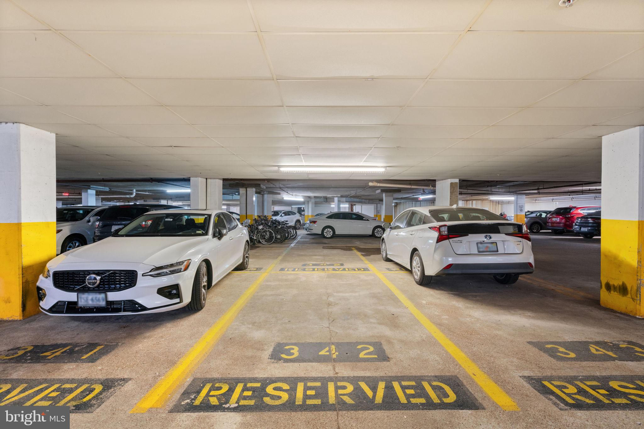 Welcome home! This 2 bedroom, 2 bathroom light and bright condo is the perfect escape after long day at work and your easy commute into the city. This 2nd level unit has been freshly painted, has all new carpet and is ready for you to make it your own. The bamboo flooring in the living room is the perfect accent to the light gray walls and is open to the dining room and kitchen, making entertaining natural and easy. The galley style kitchen is full of plenty of cabinet space, counter space and comes with stainless steel appliances. Moving into the primary bedroom #1, you'll find loads of counter space in the bathroom, a large mirror, oversized walk-in closet, tub and shower. Bedroom # 2 on the other side of the unit offers its own 2 closets, vanity and tub and shower. One of the nicest luxuries, is the in-unit side by side washer and dryer. Step outside to a spacious patio, perfect for an evening cocktail, and an extra storage closet off the patio. This unit comes with its own 2 assigned parking spaces in the underground garage with elevator up to the unit. The assigned spaces are #'s 342 and 342T. This neighborhood is a fully gated community with plenty of amenities including an outdoor pool, hot tub, sauna, fitness center, community/party room, grilling/picnic stations, playground, car washing station and daily shuttle to the Pentagon City Metro (M-F every half hour from 6:30-9:30am and 4:30-7:30pm). It's walking distance to Shirlington for an evening movie or dinner, the nearby XSport Fitness, and the newly built Silver Diner, Harris Teeter and Sushi Jin at King Street and Walter Reed Drive. Conveniently located less than one mile from the Bradlee Center and Bailey's Crossroads for all your shopping needs: Target, HomeGoods, World Market, CVS, TJMaxx, Burlington Coat Factory, Fresh Market, Starbucks, etc. Additionally, the community is just 4.5 miles away from popular Old Town Alexandria- straight down Route 7. Centrally located for acccessing the following military bases as well: The Pentagon (4.7 mi), Fort Belvoir (14.8 mi), Navy Yard (8.3 mi), Joint Base Anacostia (11 mi), Joint Base Myer-Henderson Hall / USMC (4.5 mi) and Joint Base Andrews (18.8 mi). Convenient commuting options too if you prefer to drive into the city by hopping right onto I-395 at King Street. You don't want to miss this one. Make sure to schedule a tour today!