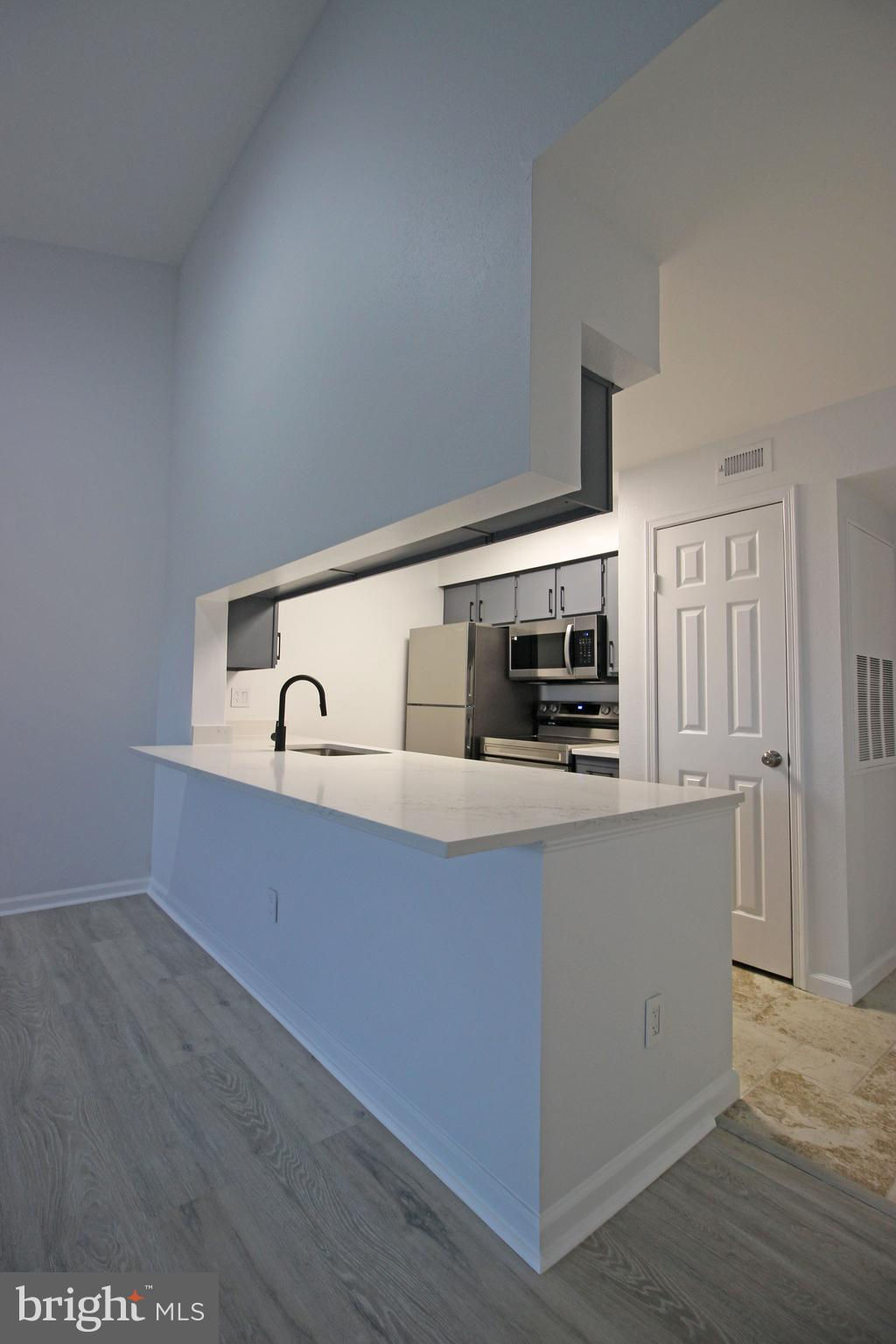 Stunningly Remodeled 1 Bedroom, 1 Bath + DEN Condo in Alexandria totaling 826 sq ft! ! TOP Floor Back Back on the market.......Condo with CATHERDRAL ceilings, UNDERGROUND assigned parking in an ELEVATOR building! Entering this amazing space you are welcomed by the brand new laminate flooring and freshly painted walls found throughout the home. Heading in further, you will find the modern kitchen boasting with brand new quartz countertops, stainless steel appliances, ample counter space & great cabinet space. The spacious living room follows, with its high cathedral ceiling, ample natural light & wood burning fireplace, this space will definitely set the tone for a welcoming & comfortable area. The bedroom features ample closet space and great natural light. The bathroom suite boasts a new and modern vanity, large closet space, bathtub & stackable washer/dryer. Enjoy the private views that the condo provides, as well as the great natural light coming through the ample windows & additional storage space. Enjoy the amenities the community has to offer such as the outdoor pool, community room, sauna, full gym, tot lot & picnic area just to name a few. An assigned garage parking space is included with this unit!