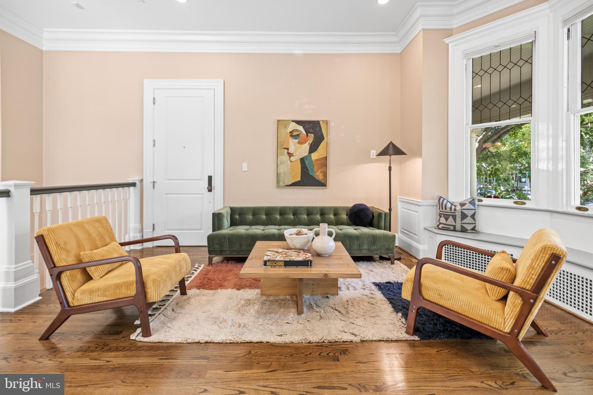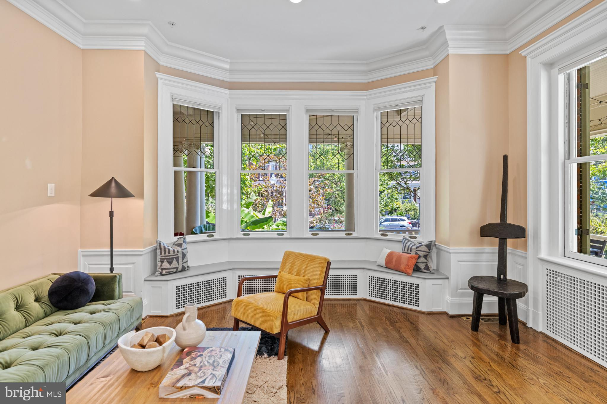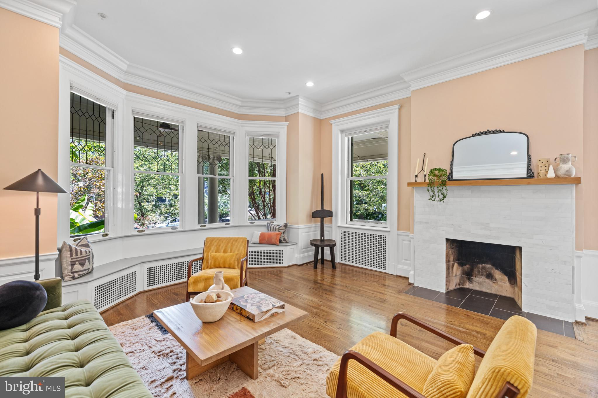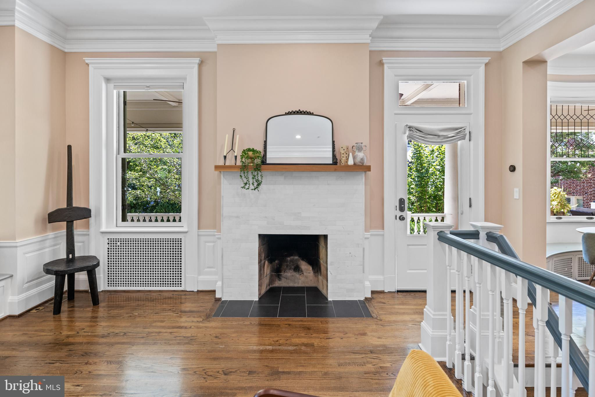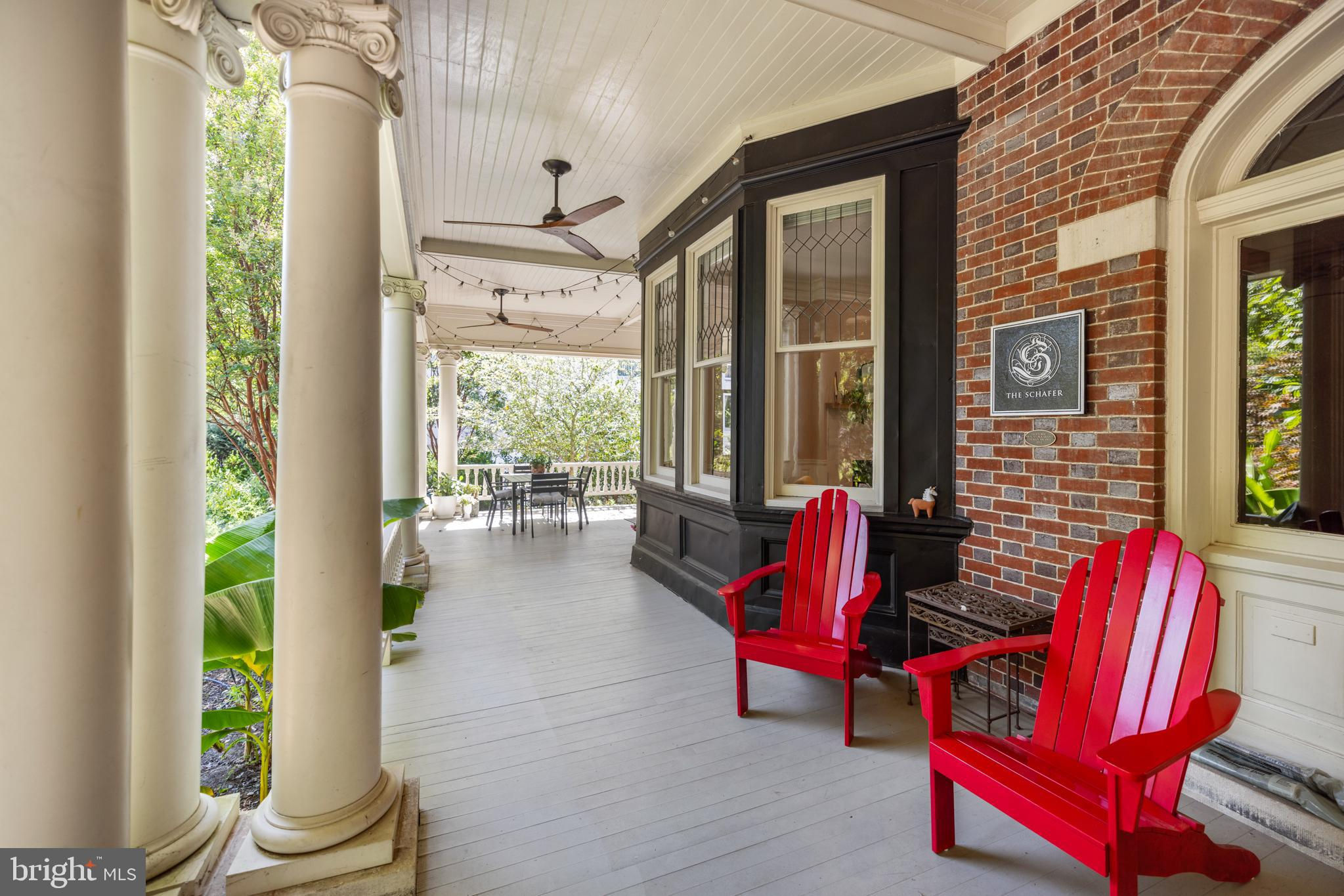 First opens Sat + Sunday Sept 14/15 from 1-4 PM! Discover "The Library," the largest unit in a meticulously restored 1909 mansion. This 2-bedroom, 2-bathroom condominium in the The Schafer seamlessly blends modern amenities with historic charm. Enter through your private entrance, you’ll be greeted by grand 11-foot ceilings and extensive trim-work. Natural sunlight floods the living areas through beautiful bay windows, offering enchanting views of the lush, south-facing garden. The living room, anchored by a gracious fireplace with custom marble tile and a walnut mantle, serves as a perfect backdrop for relaxation and entertaining. The fully restored 2012 interior features built-in seating, adding both functionality and style. The largest wrap-around porch in the building extends your living space outdoors, ideal for hosting, dinner outdoors, or simply enjoying the seasons. Parking and an electric charging station are included, pets are welcome in this vibrant community. "The Library" offers a unique opportunity to own a piece of Mount Pleasant’s storied past while enjoying the conveniences of modern urban living. You’ll be blocks to the true heart of Mount Pleasant— walk to the farmer’s market; the Zoo; fantastic restaurants like Elle, La Tejana, Joia Burger, Nido, Purple Patch, Ercilia’s, and so much more. Walk to Woodley Park (Red Line) or Columbia Heights (Green/Yellow Line) metro — a wonderful home base to commute.