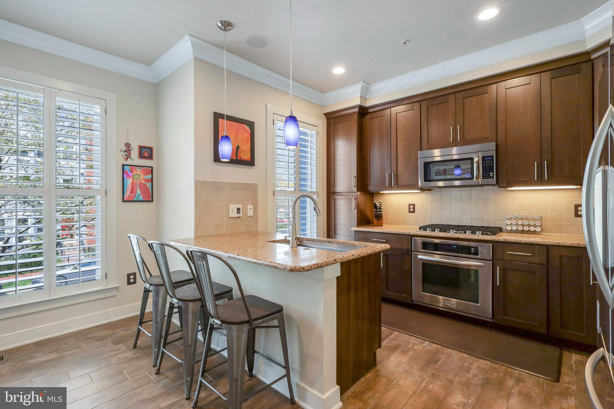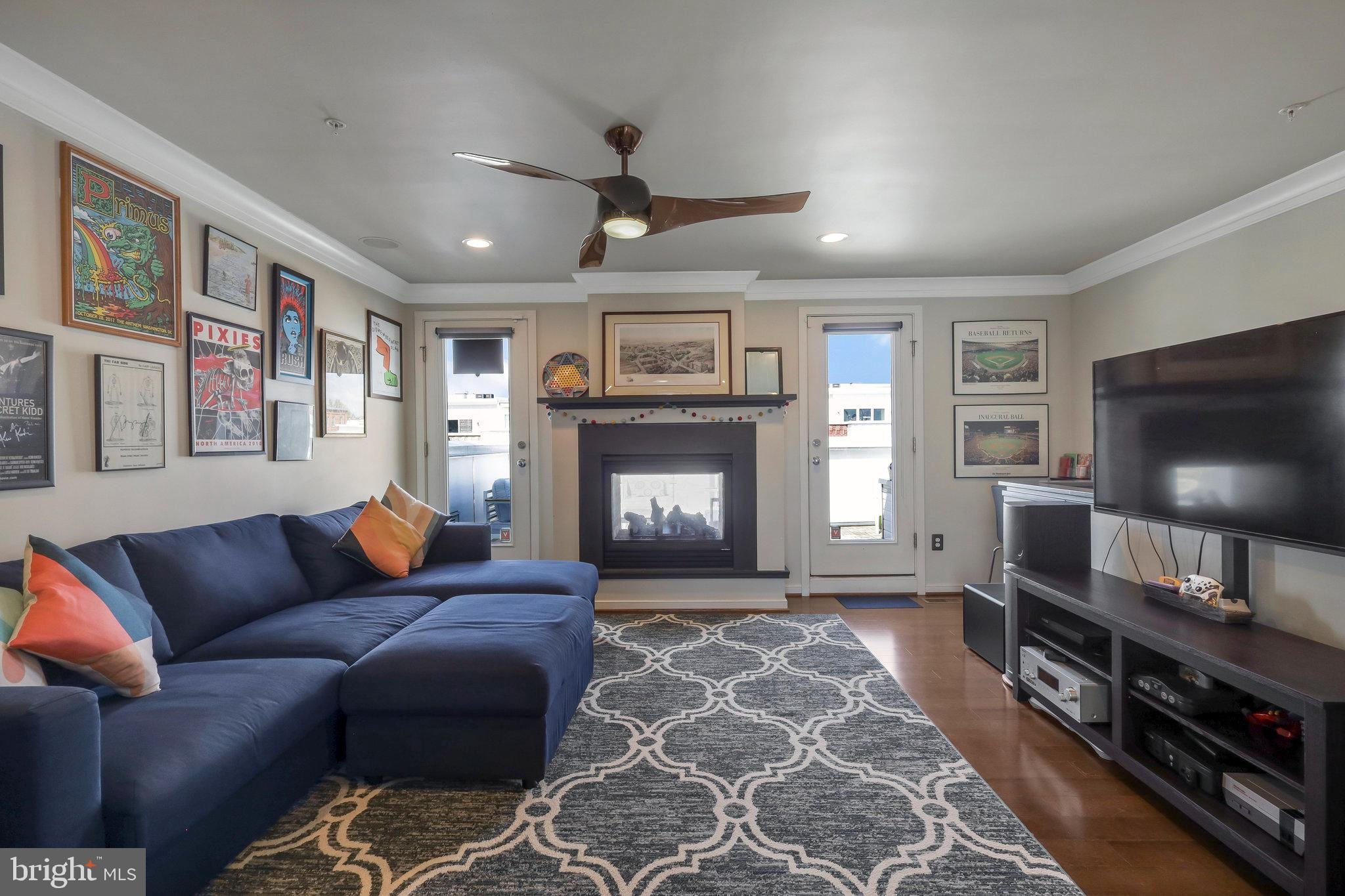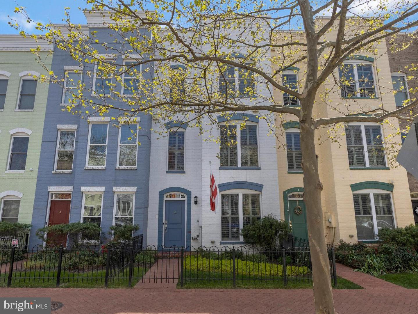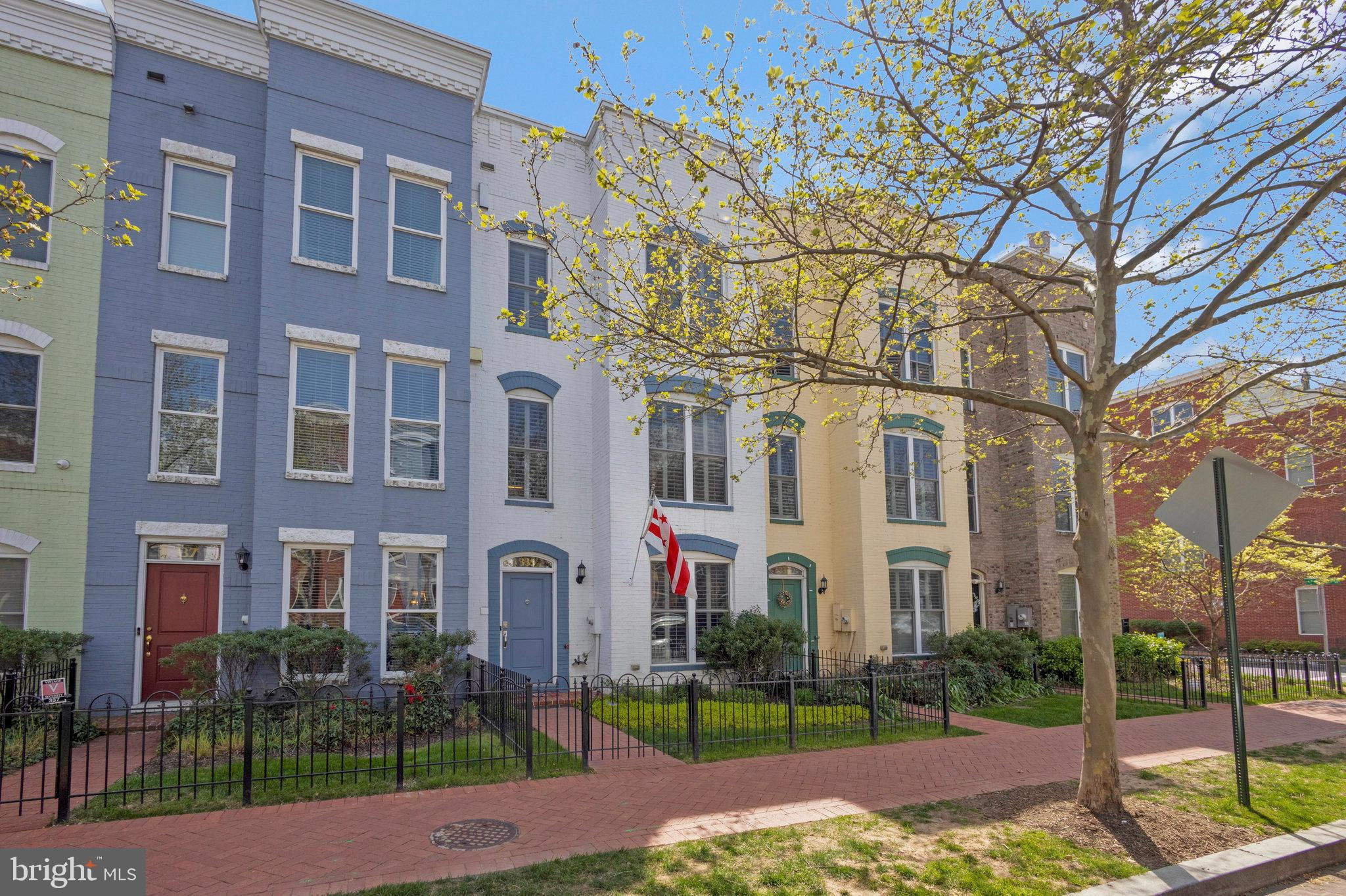 Welcome home to 335 I St SE in the Capitol Quarter neighborhood of Navy Yard DC. This stunning top of the line Banneker model with bay front windows features four bedrooms plus three and a half baths over four floors. Upgrades abound including wide plank wood floors, top tier stairs and bannisters, double sided fireplace and premium finishes. The gourmet eat-in kitchen includes granite countertops, stainless steel appliances, and a breakfast bar. The large living room/ dining room provides ample room for family gatherings or for entertaining friends. A first floor bedroom functions nicely as an office or den. Bedroom two and three have en-suite, nicely appointed bathrooms . The primary suite is large enough for a king-sized bed and includes a spa-like primary bathroom with multiple spray head shower, programmable heated floors and double vanity. The primary closets feature an abundance of built-in shelves and storage. The home also includes full-size front loading washer and dryer on the bedroom level, a large open living/family room on the top floor with double-sided fireplace leading to your rooftop deck with a remote controlled awning plus panoramic view of DC. Other upgrades include a whole-home bluetooth audio and intercom system including surround sound in the living room, recessed LED lighting, dual-zoned HVAC with smart thermostats, a balcony with natural gas grill off of the living room, Electrolux central vac, two car garage with storage cabinets, overhead storage racks and a high voltage outlet to accommodate electric vehicle charging. This 2011 EYA build is LEED certified and offers incredible space and convenience, all within walking distance from two Metro stops Navy Yard (Green) and Eastern Market (Blue/Silver/Orange), Nats Stadium, Audi Field, Yards Park, Eastern Market, The Capitol and a plethora of dining and entertainment options. A monthly HOA fee of $99.50 includes professional management, landscaping, mowing, snow removal, public space maintenance including the courtyards and tot lot playground plus alley maintenance.