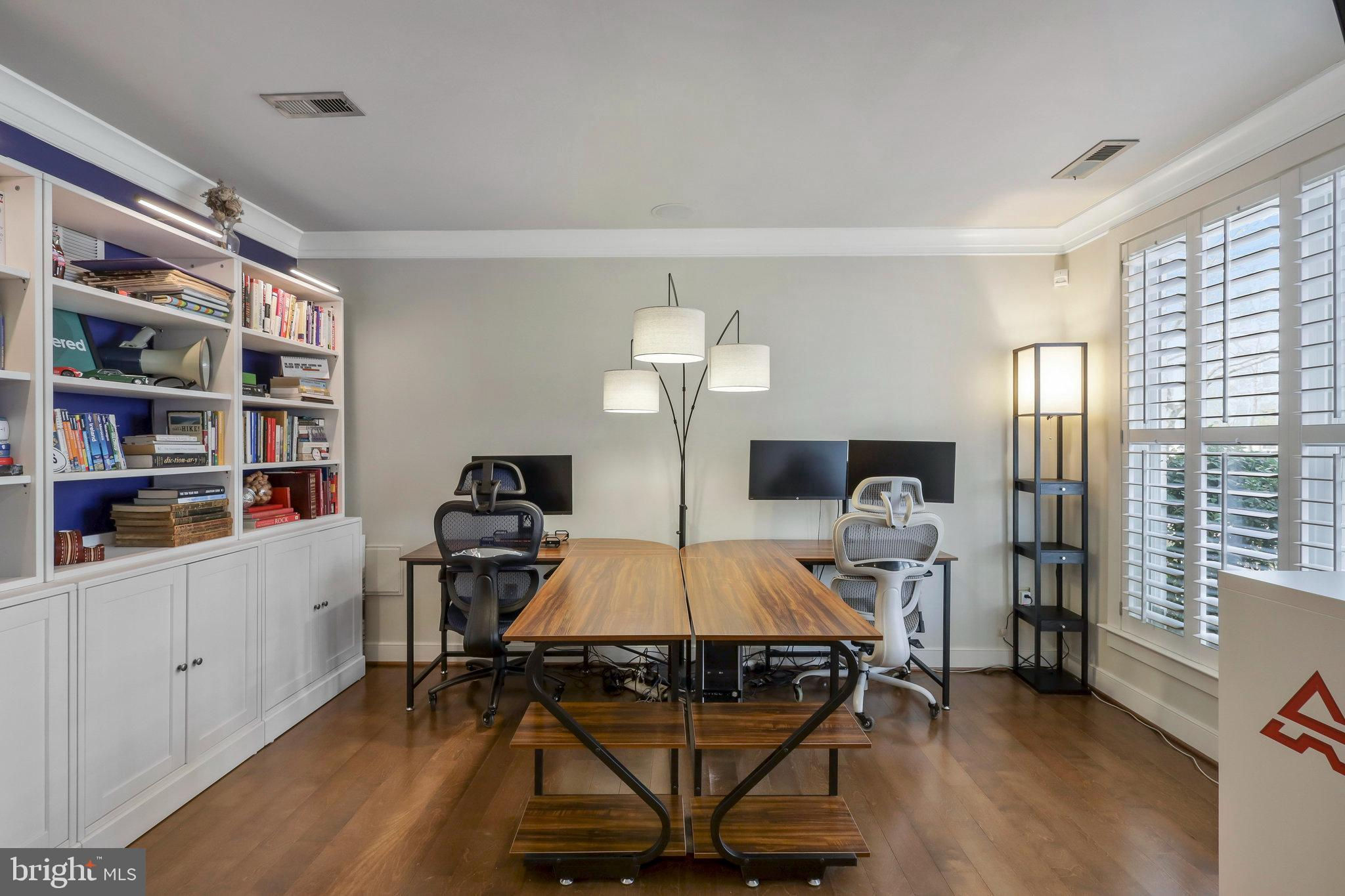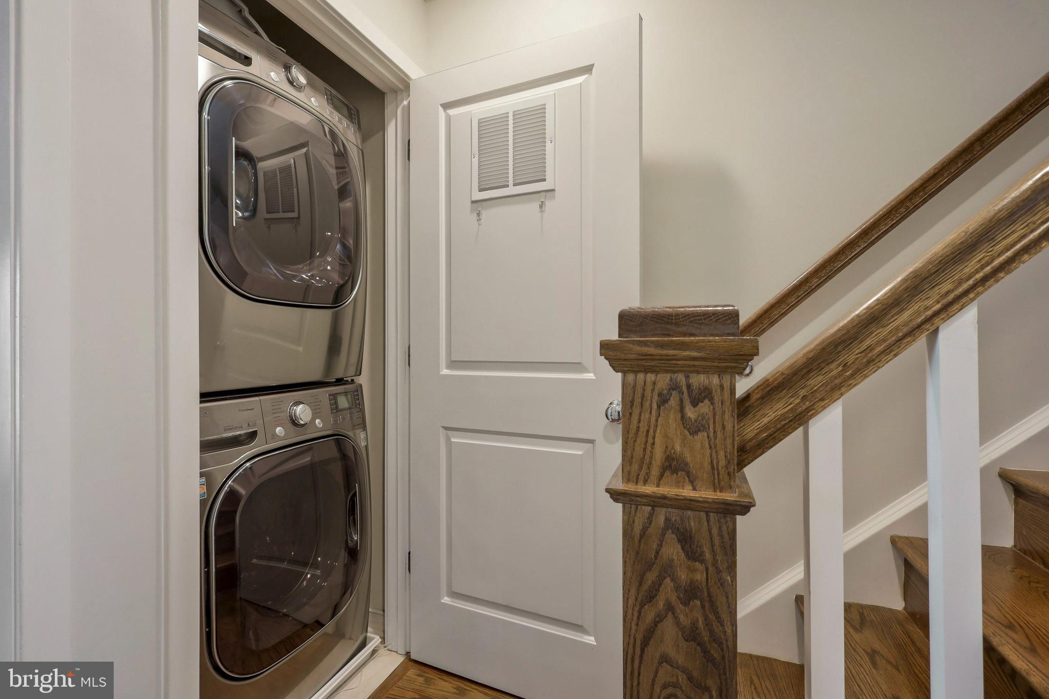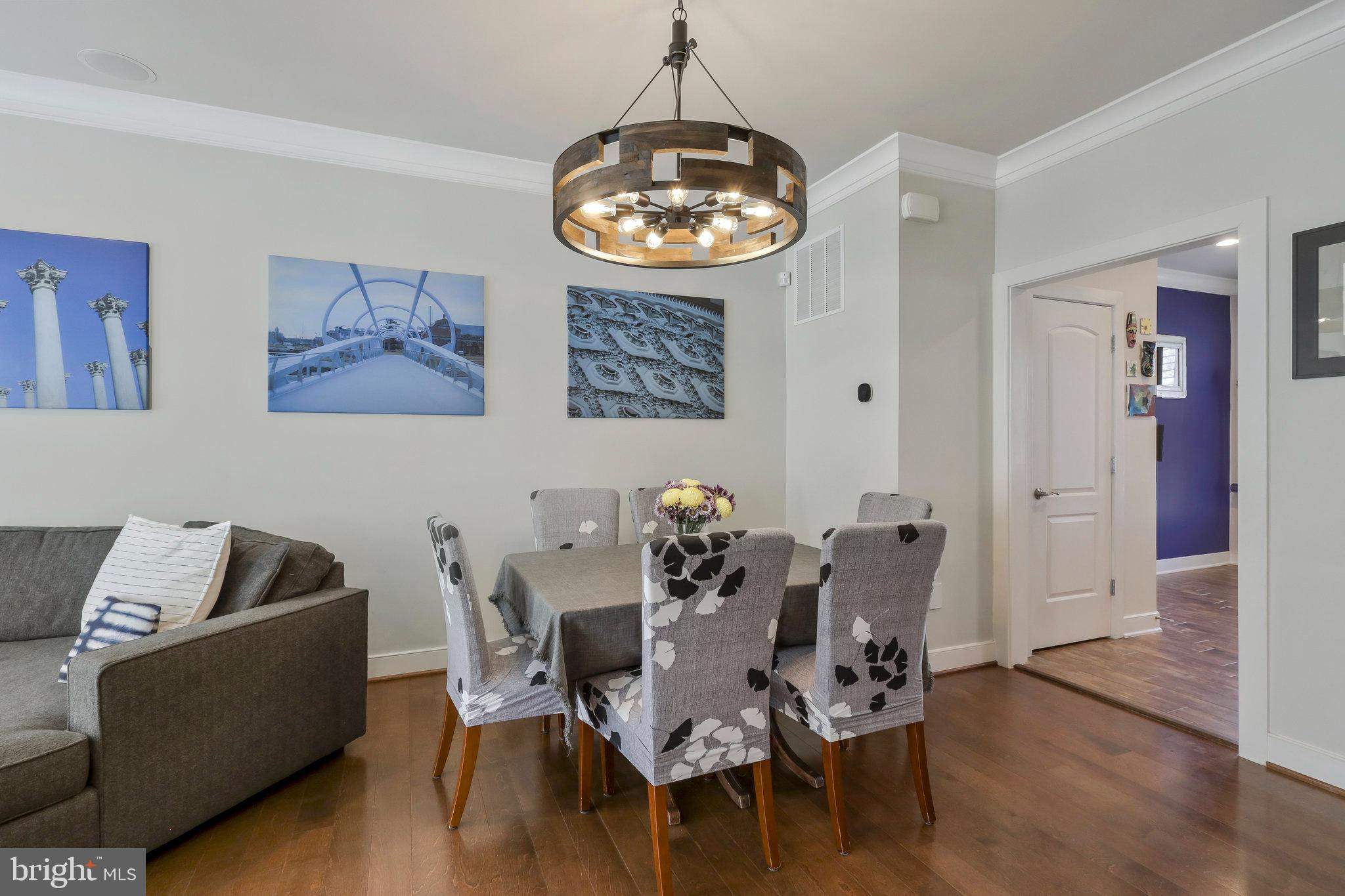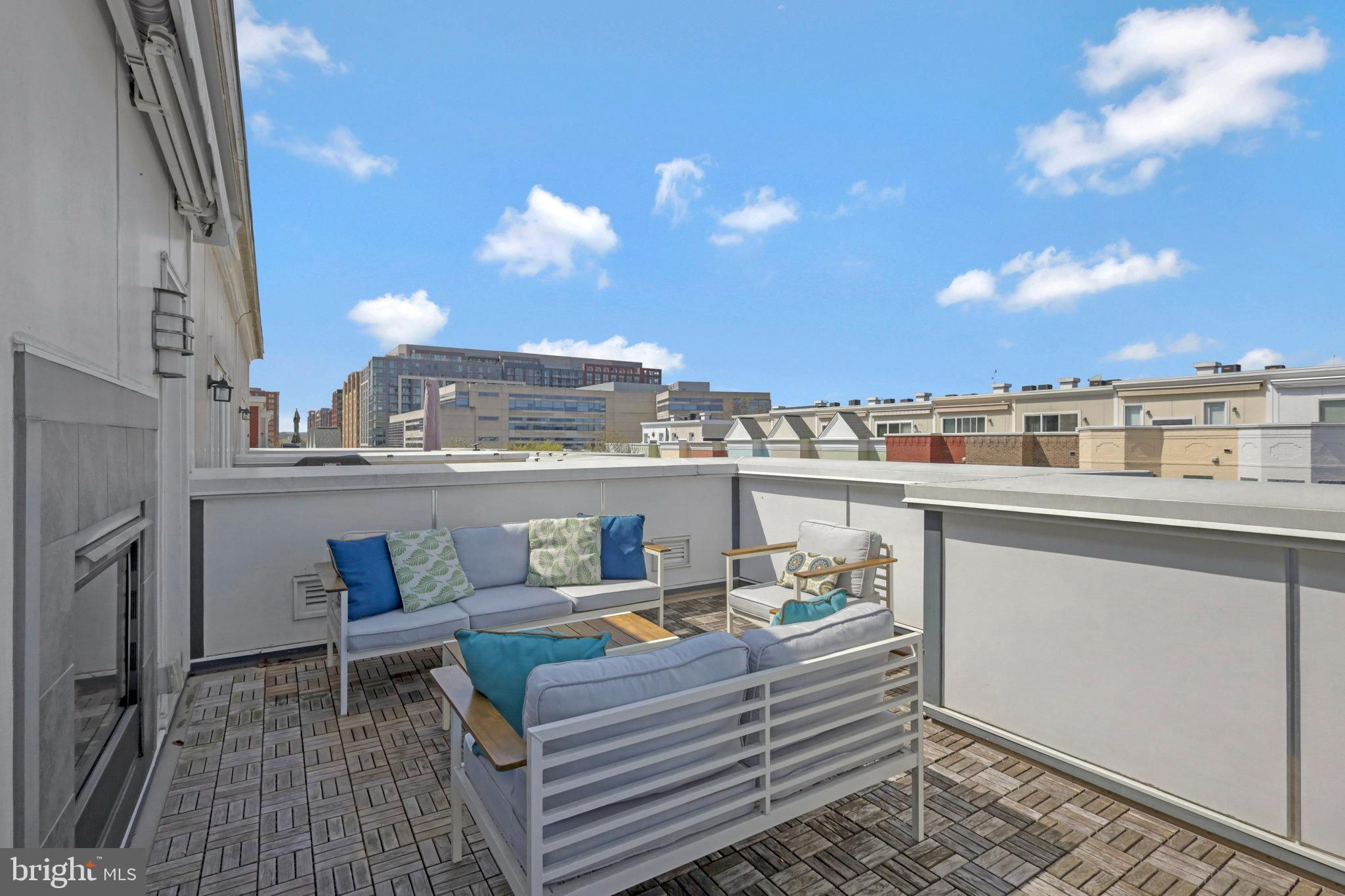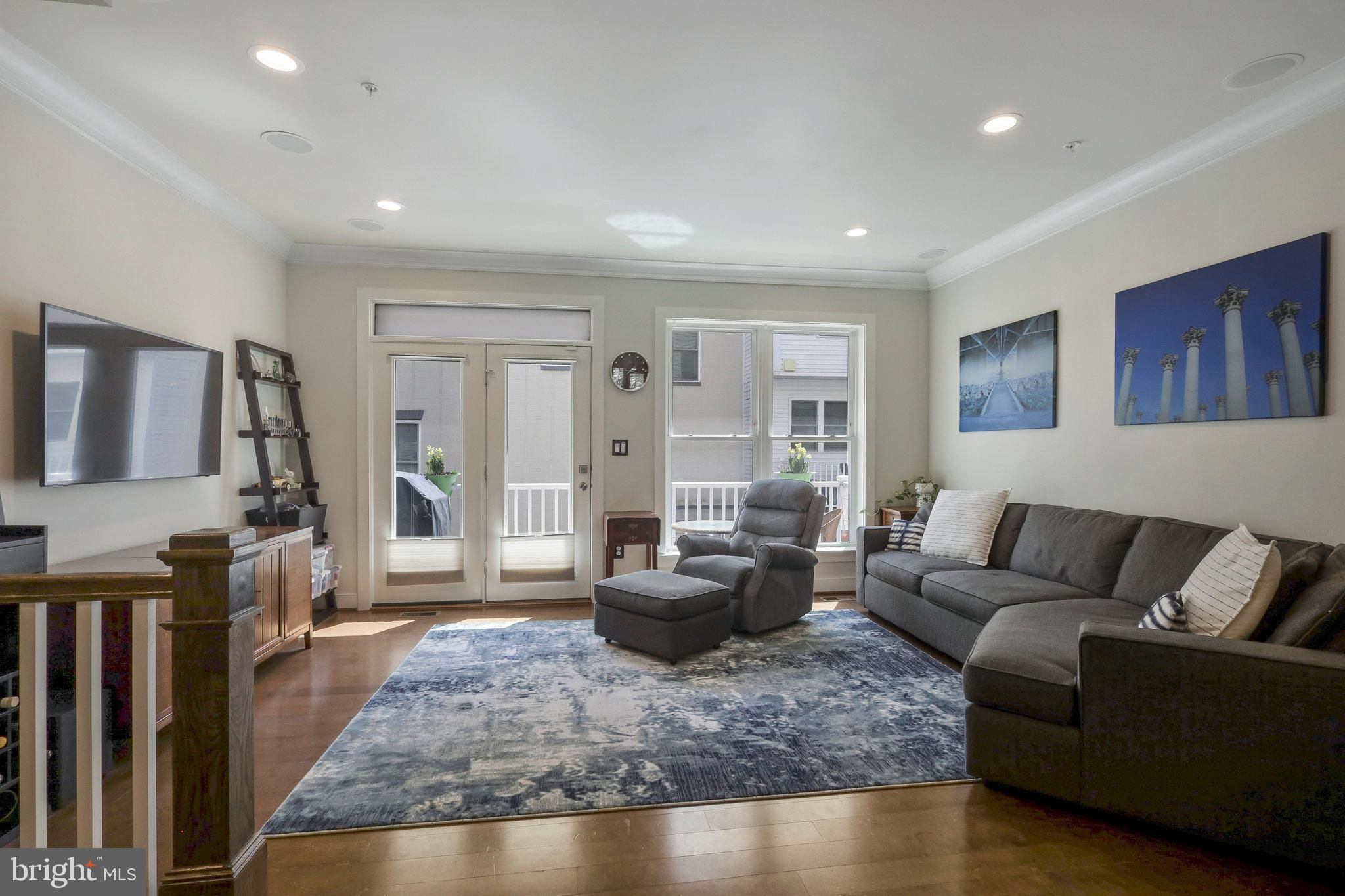 Welcome home to 335 I St SE in the Capitol Quarter neighborhood of Navy Yard DC. This stunning top of the line Banneker model with bay front windows features four bedrooms plus three and a half baths over four floors. Upgrades abound including wide plank wood floors, top tier stairs and bannisters, double sided fireplace and premium finishes. The gourmet eat-in kitchen includes granite countertops, stainless steel appliances, and a breakfast bar. The large living room/ dining room provides ample room for family gatherings or for entertaining friends. A first floor bedroom functions nicely as an office or den. Bedroom two and three have en-suite, nicely appointed bathrooms . The primary suite is large enough for a king-sized bed and includes a spa-like primary bathroom with multiple spray head shower, programmable heated floors and double vanity. The primary closets feature an abundance of built-in shelves and storage. The home also includes full-size front loading washer and dryer on the bedroom level, a large open living/family room on the top floor with double-sided fireplace leading to your rooftop deck with a remote controlled awning plus panoramic view of DC. Other upgrades include a whole-home bluetooth audio and intercom system including surround sound in the living room, recessed LED lighting, dual-zoned HVAC with smart thermostats, a balcony with natural gas grill off of the living room, Electrolux central vac, two car garage with storage cabinets, overhead storage racks and a high voltage outlet to accommodate electric vehicle charging. This 2011 EYA build is LEED certified and offers incredible space and convenience, all within walking distance from two Metro stops Navy Yard (Green) and Eastern Market (Blue/Silver/Orange), Nats Stadium, Audi Field, Yards Park, Eastern Market, The Capitol and a plethora of dining and entertainment options. A monthly HOA fee of $99.50 includes professional management, landscaping, mowing, snow removal, public space maintenance including the courtyards and tot lot playground plus alley maintenance.