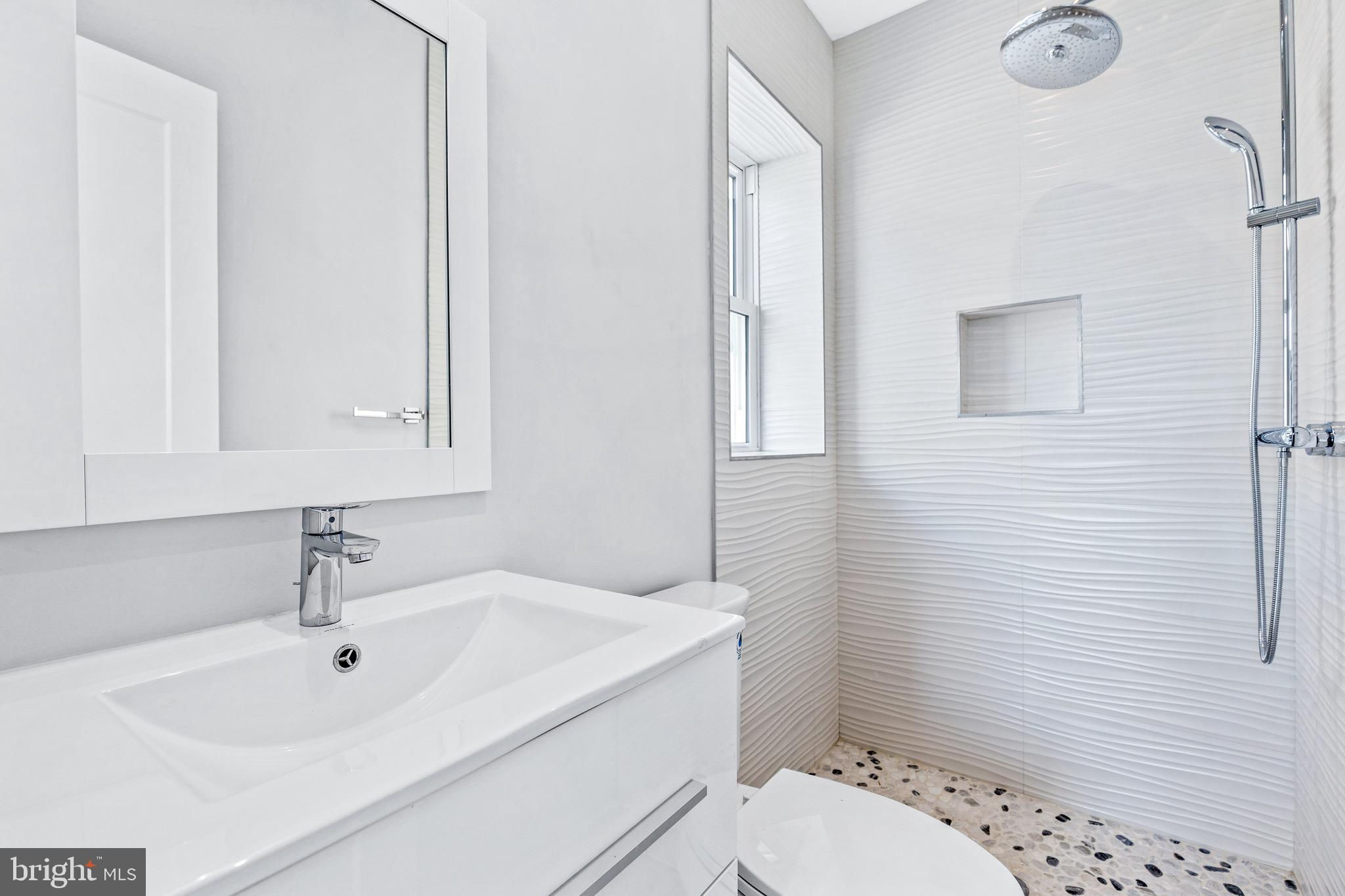 Experience modern living in this newly renovated gem, boasting an added third level. This end-of-row semi-detached townhouse offers a contemporary retreat in a quaint locale. Inside, discover 3 bedrooms complemented by 2 full baths, a kitchen adorned with stainless steel appliances, and a rear deck off the main level providing an intimate outdoor oasis. Enjoy the luxury of two balconies on the top floor, alongside ample natural light from three exposures. Situated next to the Common Good City Farm and The Park at Ledroit, and within easy walking distance to Whole Foods at Atlantic Plumbing, dozens of local restaurants and businesses in Shaw, and Metro, convenience meets sophistication in this urban sanctuary.