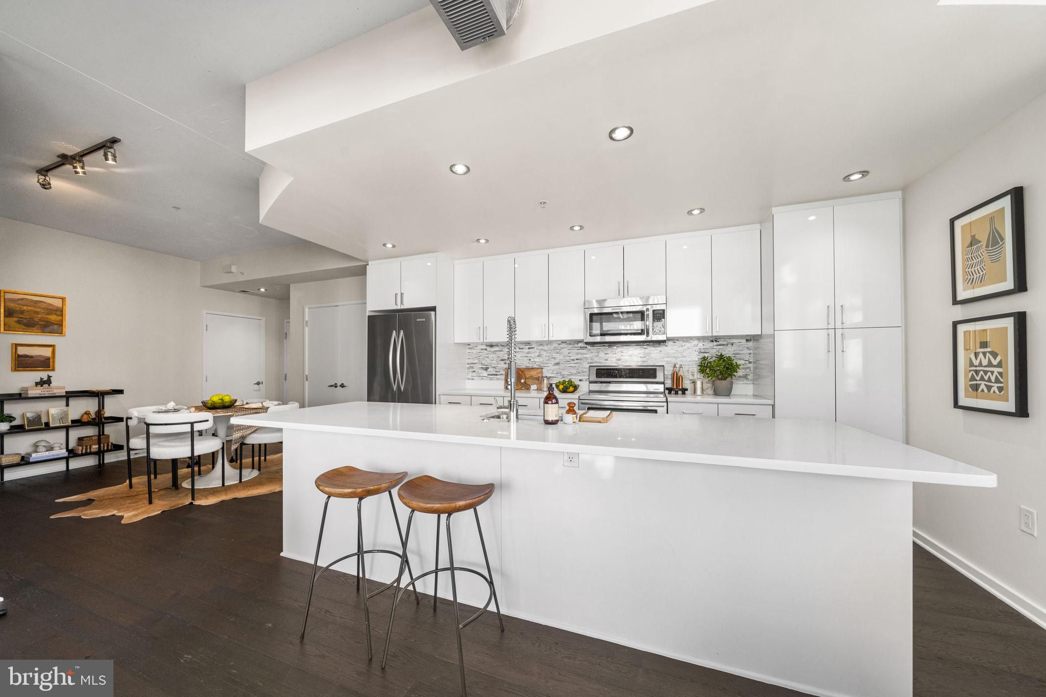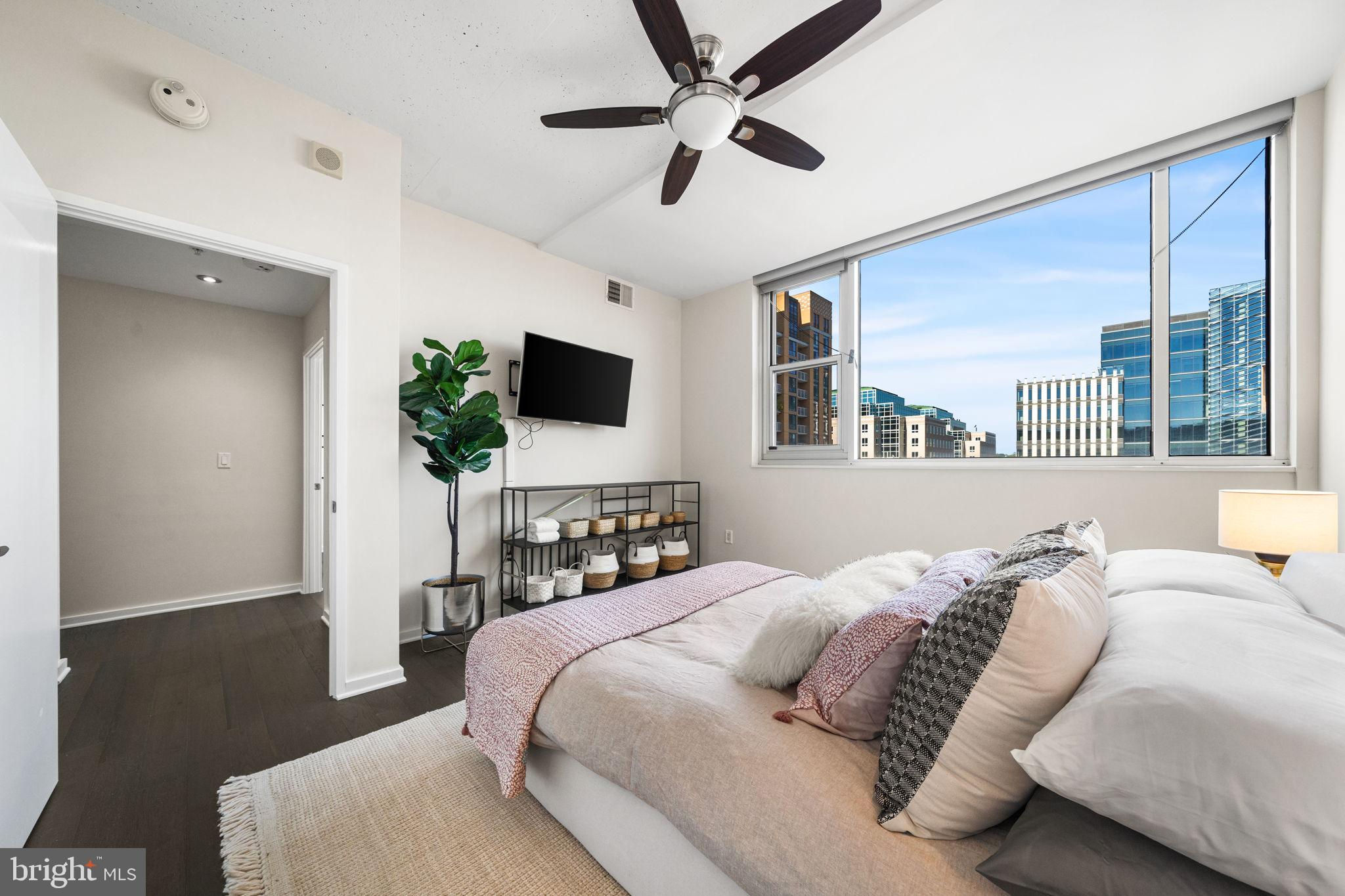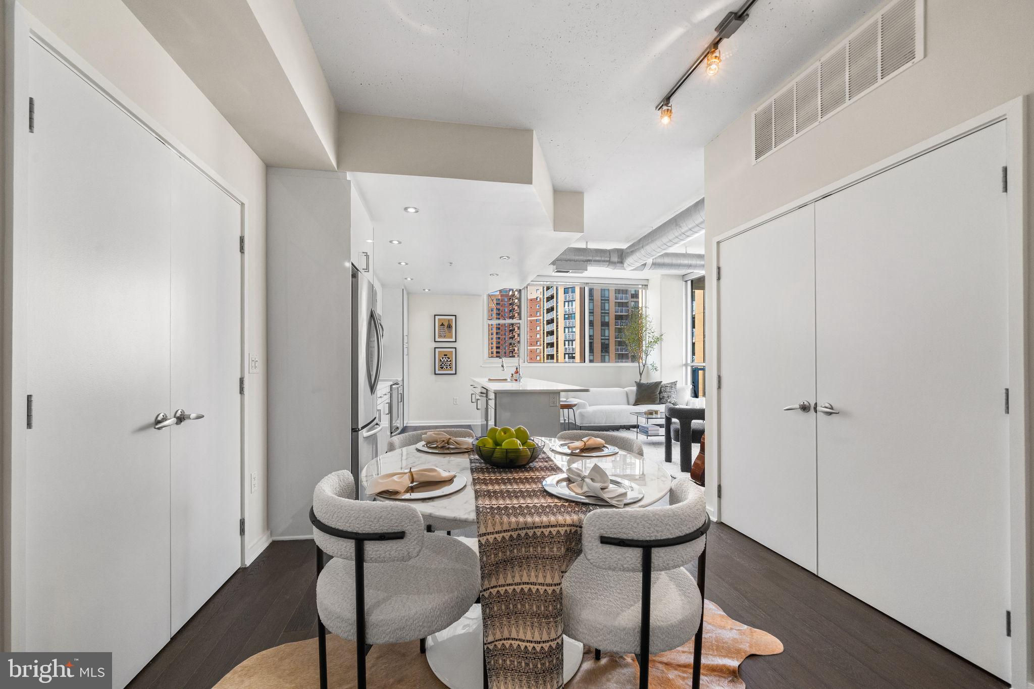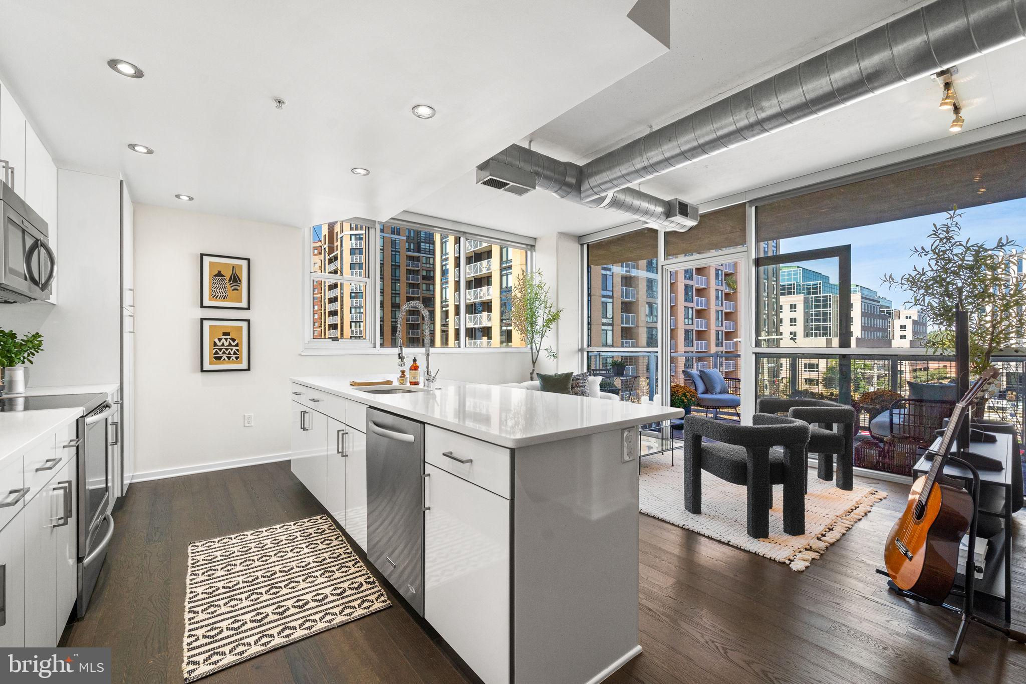 Tucked into the heart of Arlington’s Ballston-Virginia Square corridor, this condo in the desirable ARC 3409 building delivers polished metro living with no compromises. This two-bedroom, two-bath condo spans just over 1,000 square feet, but lives larger thanks to thoughtful design, walls of windows, and an open-concept layout for maximum flow. Interior finishes hit all the right notes including a sleek kitchen with flat-panel cabinetry, stainless steel appliances, and seated bar with quartz countertops that reflect the light. It opens seamlessly into the living area, where massive windows drench the space in natural light and private balcony access offers space for elegant entertaining. Spacious primary suite is anchored by a clean-lined en suite bath with tiled shower. Second bedroom, in-unit laundry and ample closet space make every inch of this home feel intentional. The desirable boutique building features concierge service, gym, and onsite parking, plus close proximity to local coffee shops, nightlife, greenspaces and Metro access. Find everything you’re looking for and more than you expect here, right where you want to be.Don’t miss the Open House Sat & Sun 1-4.